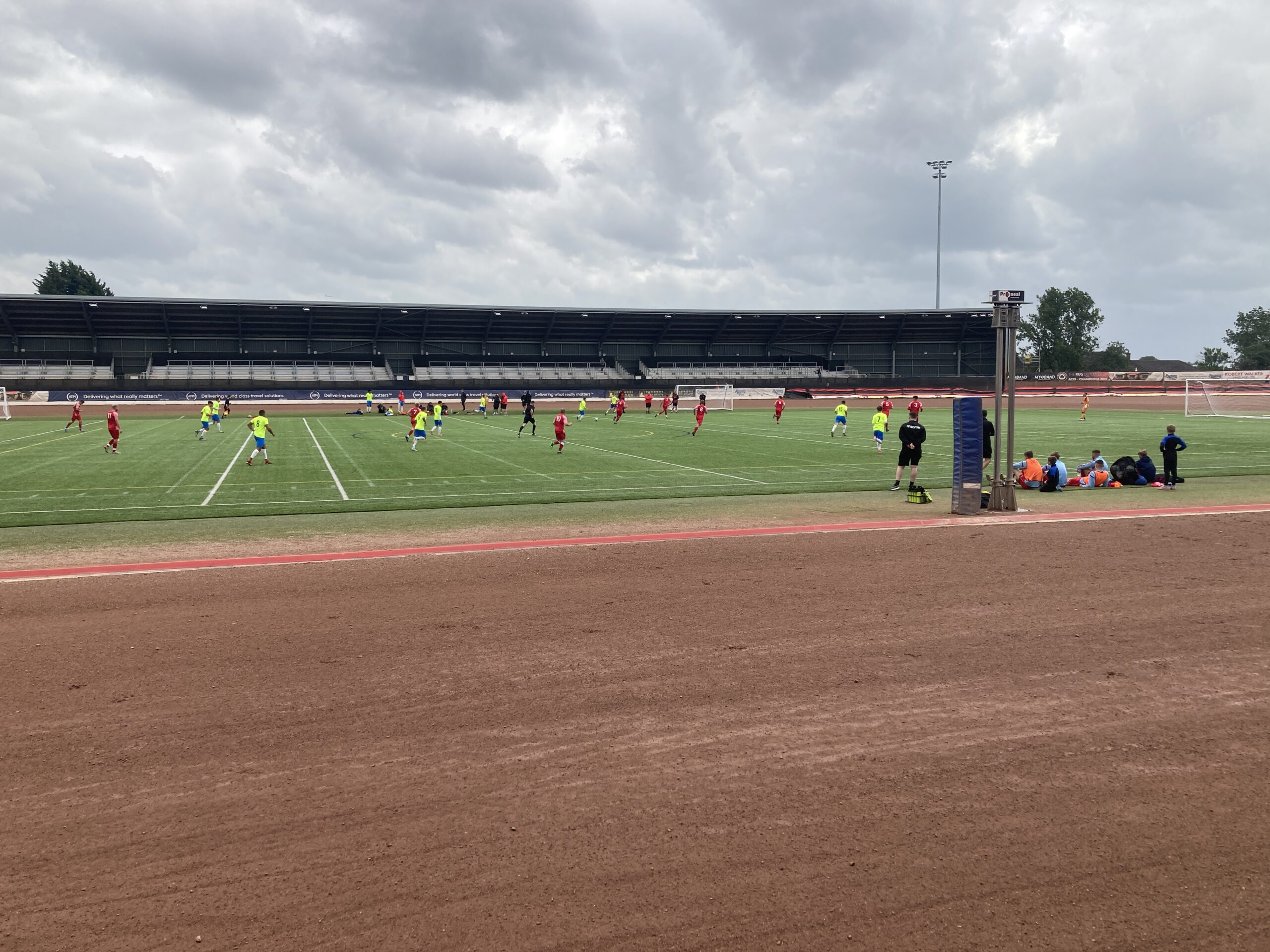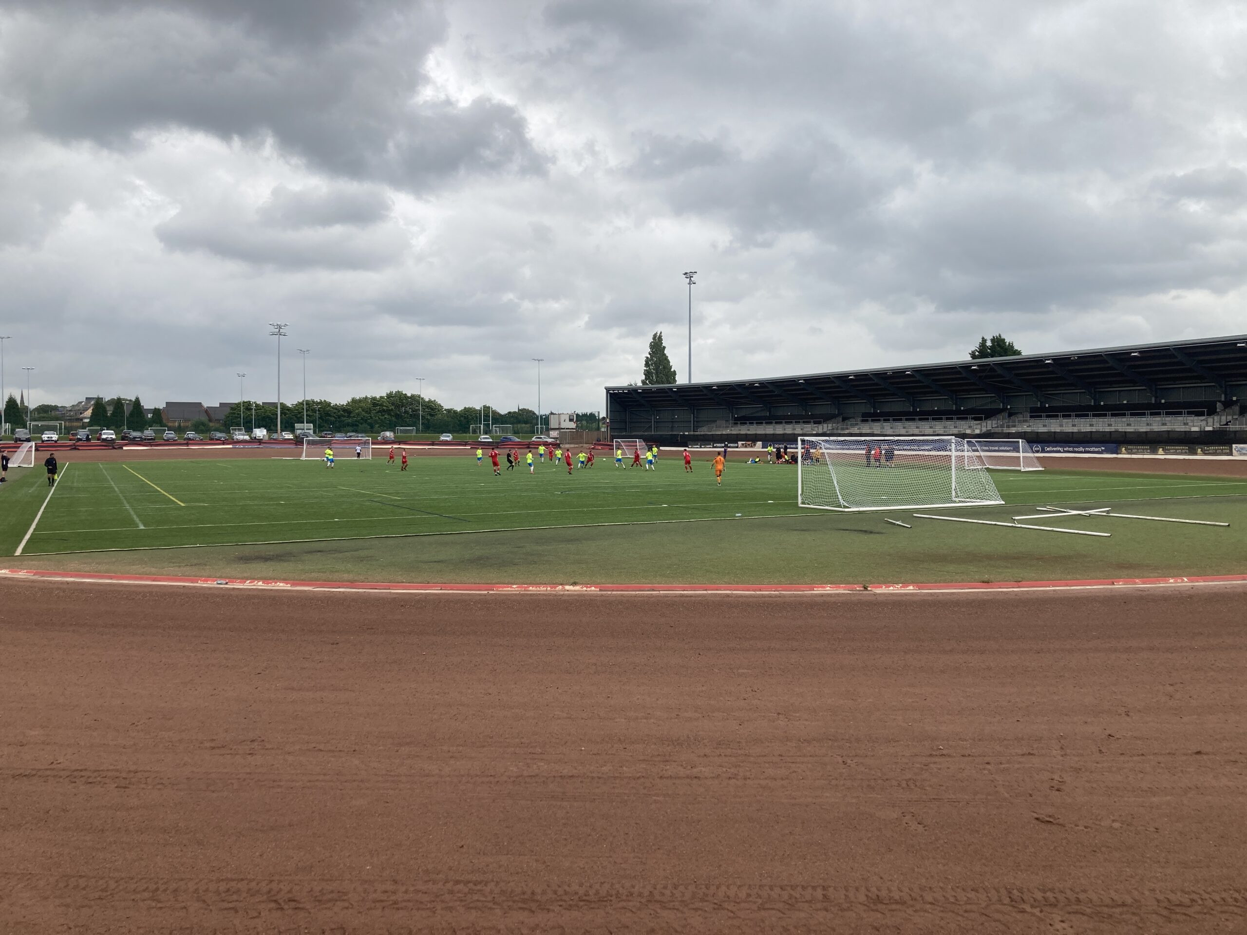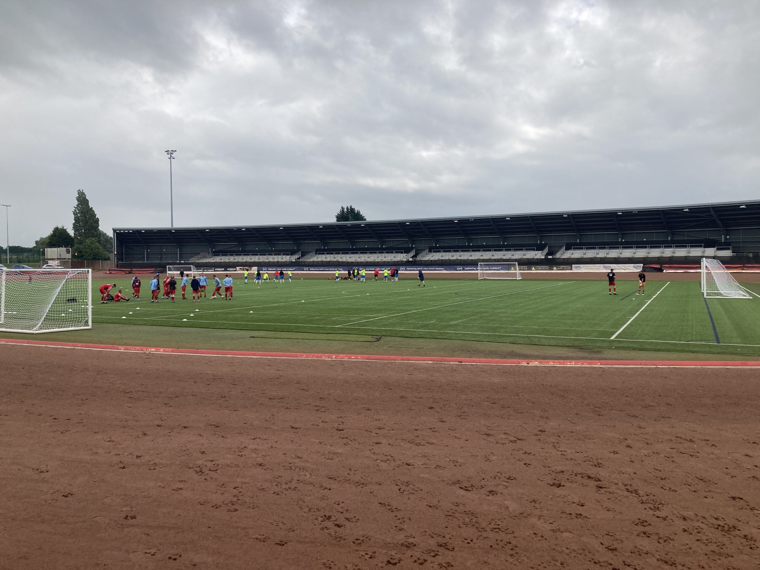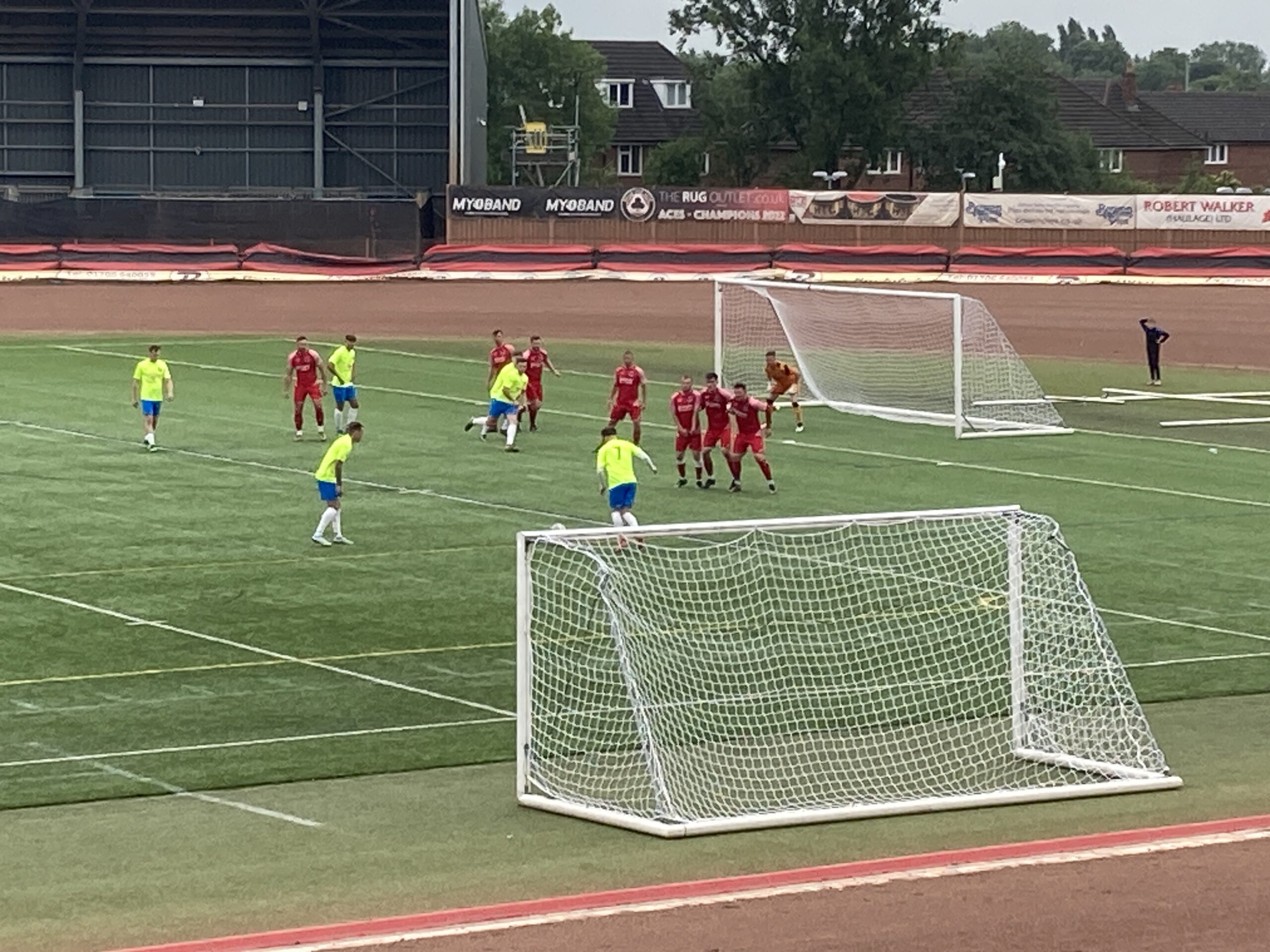 Belle Vue Speedway, the setting for today’s pre-season friendly between Abbey Hey FC and Padiham FC. It is the home of the Belle Vue Aces speedway club where matches usually take place on Monday. No football team plays here which makes today a significant visit!