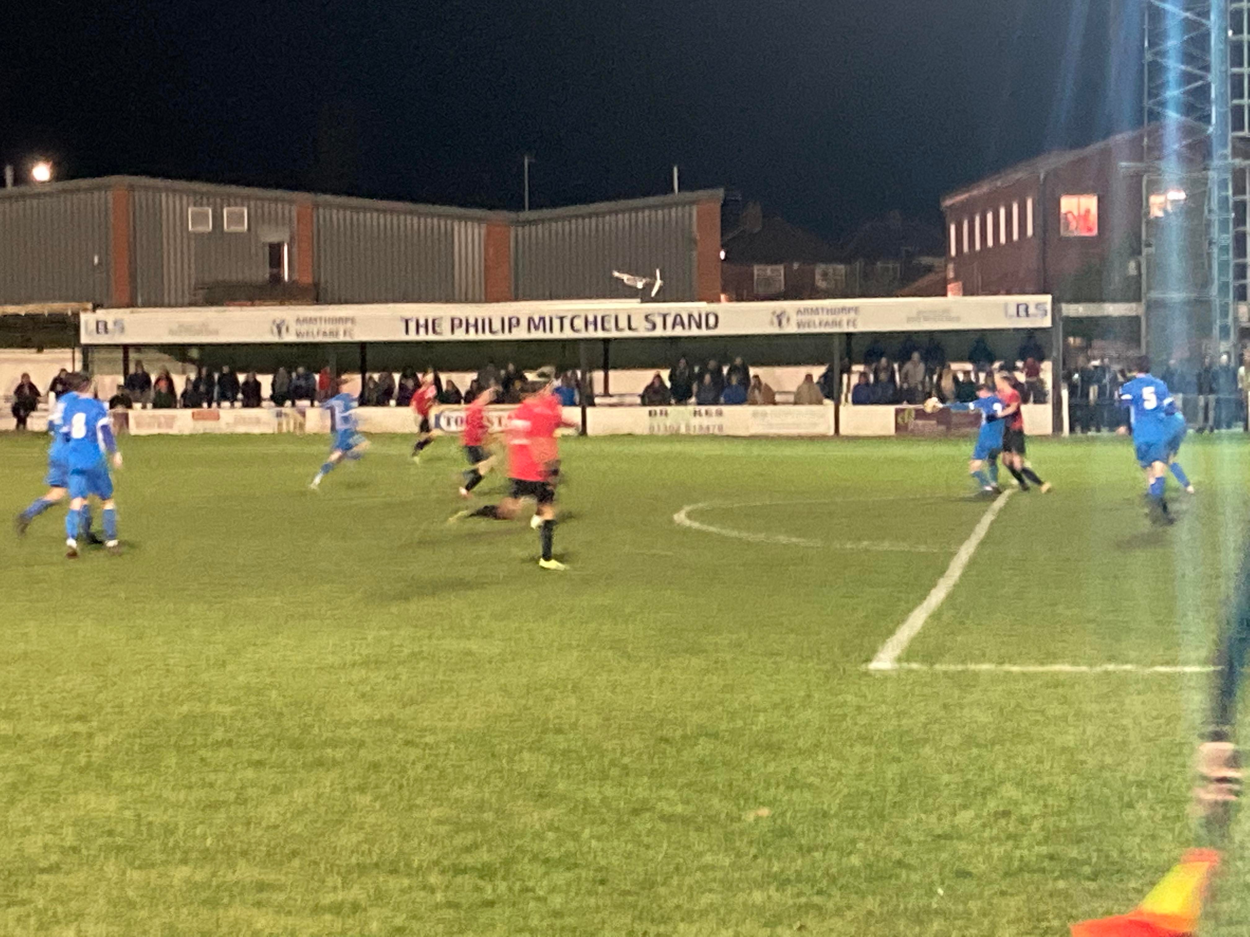 Second half, 49 minutes now and Armthorpe have a corner, in it comes… Headed at goal… It’s off the line… Or is it? Armthorpe think it did… Nothing given! Armthorpe get it back and work it out to the left, it’s crossed in… All the way out for a goal kick. I didn’t think it had crossed the line and Match Days Joe’s replay certainly confirmed that.