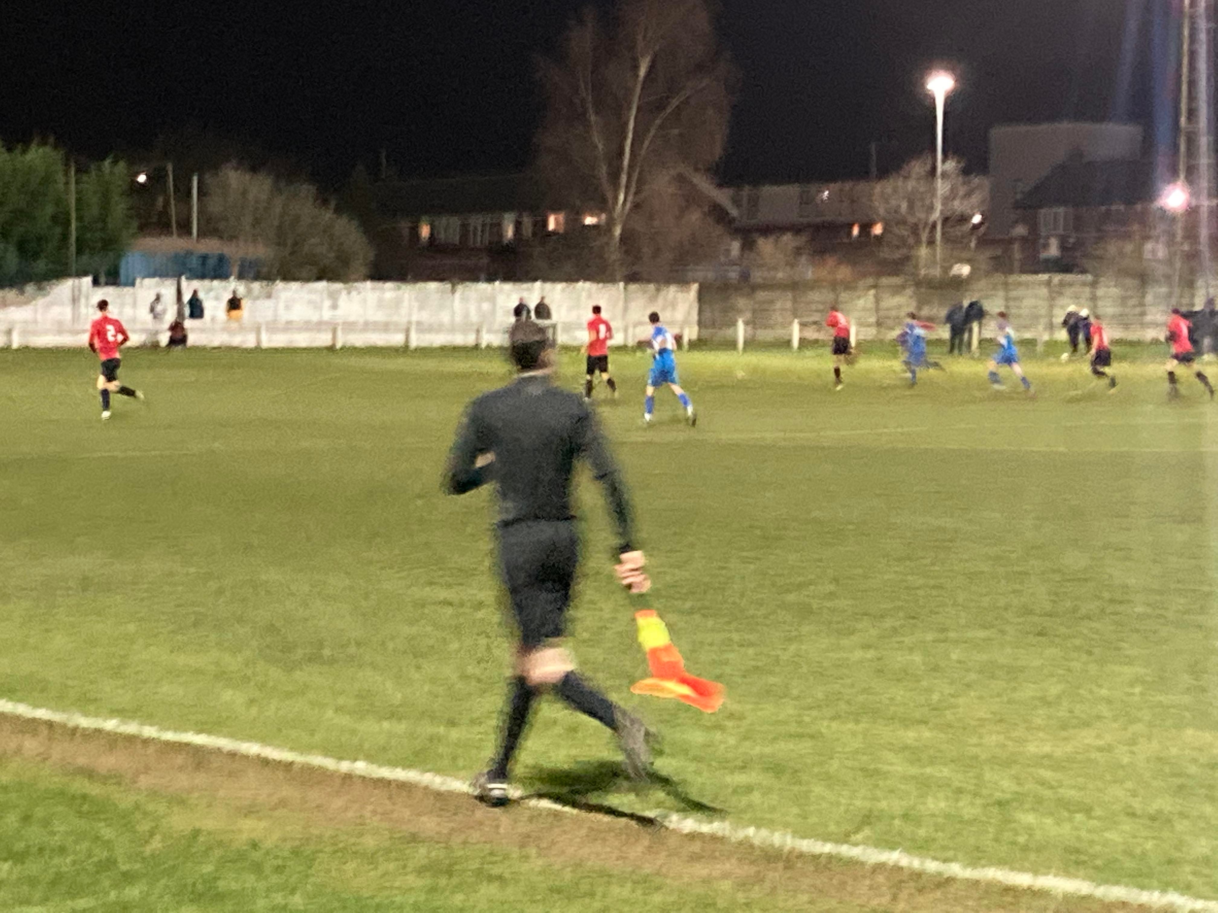 The Referee blows for half time straight from the resulting kick off and the Referee is being approached by an unhappy Armthorpe coach… He’s been shown a Yellow Card for his protests… But he’s not finished yet and he’s going to have to be careful… He’s removed himself from the situation thankfully.