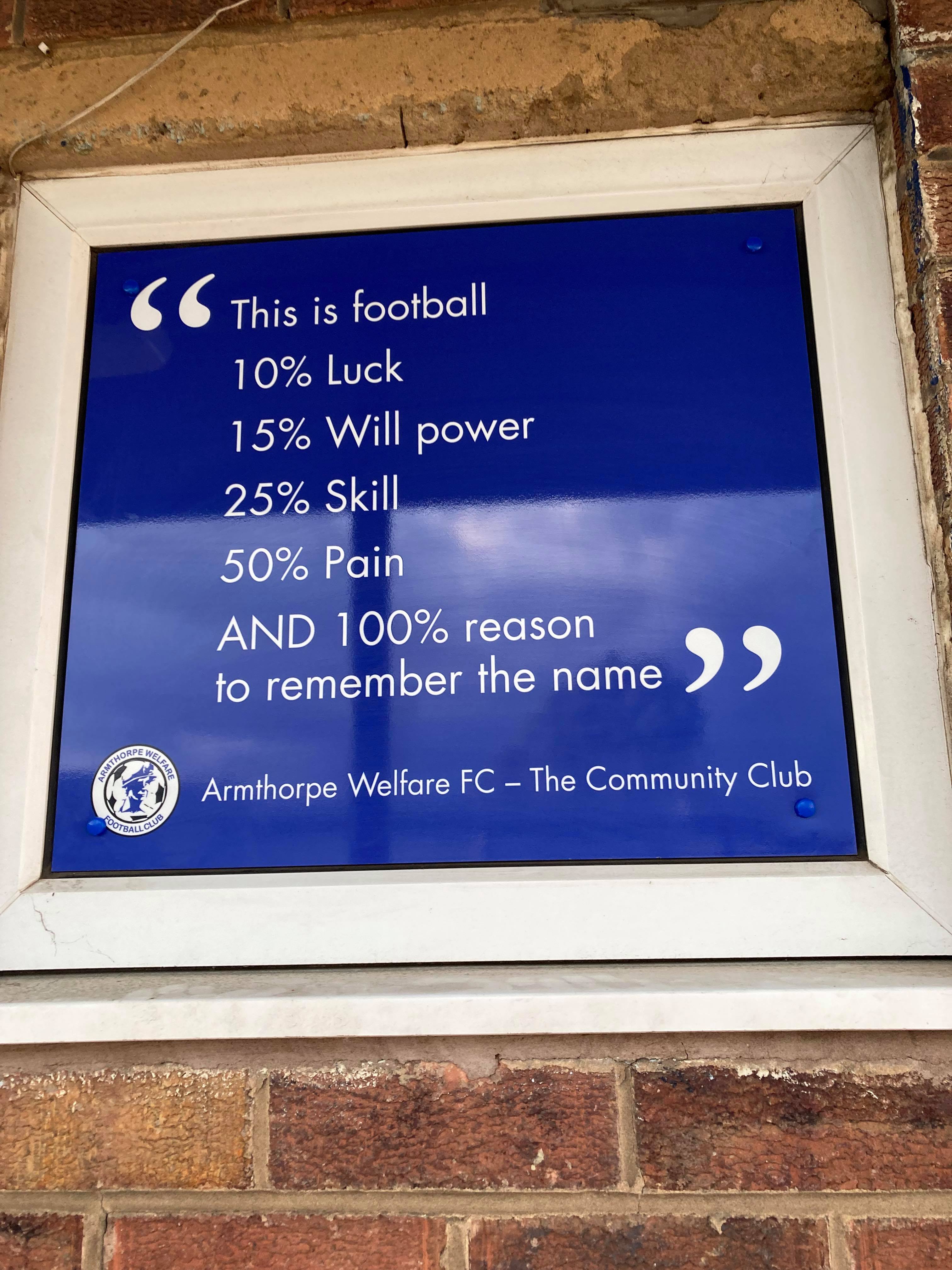 • The Ground: 7.5/10 – It’s a nice little ground! I love the quotes at the front of the ground!! it gives the ground a great personality! A lovely little bar and stand as well!!