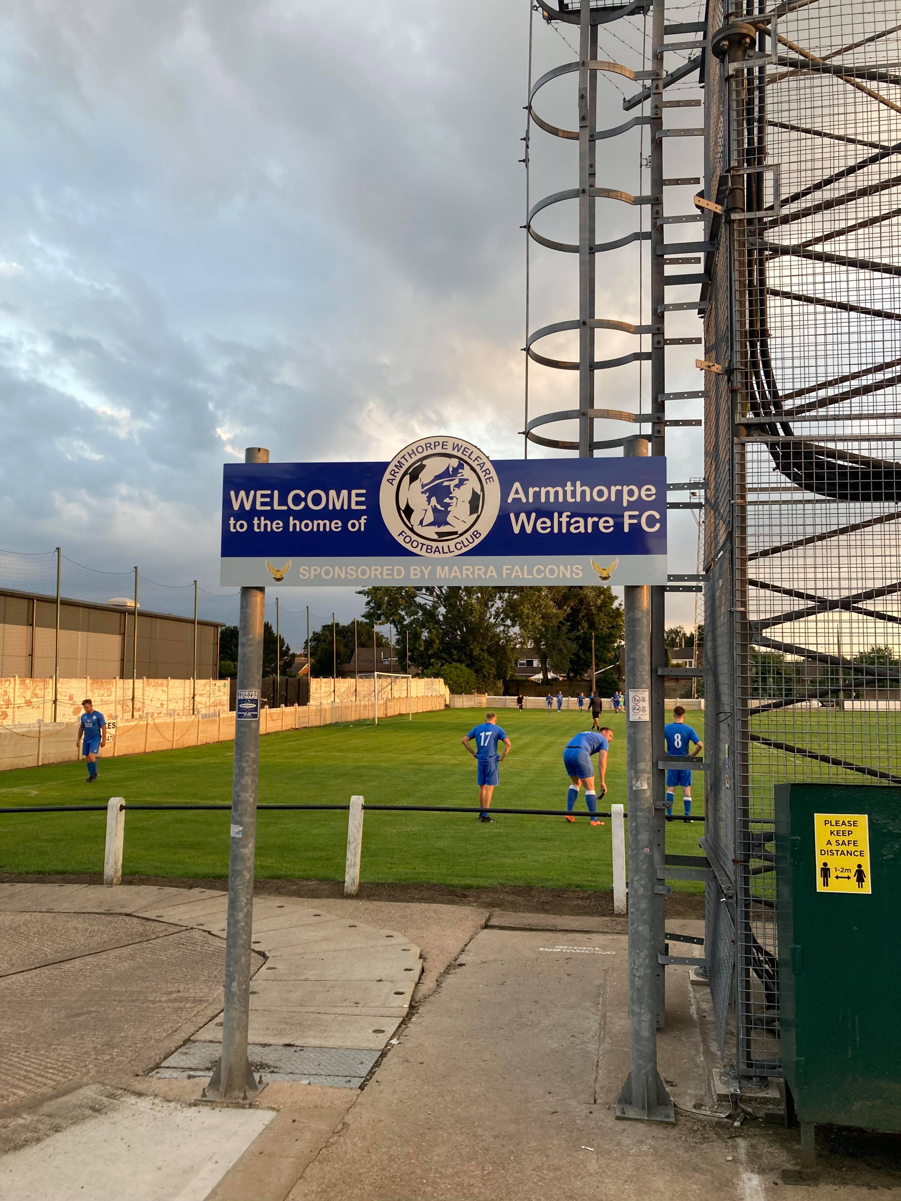 The Marra Falcons Stadium, home of Armthorpe Welfare based in Doncaster, South Yorkshire and play at Step 6 of the non league system in the Northern Counties East League Division One. The Pre-Season games are stacking up and England are in a EUROS FINAL!!!! To take my nerves away from the big day, tonight’s destination is Armthorpe for their match against Sutton Rovers.