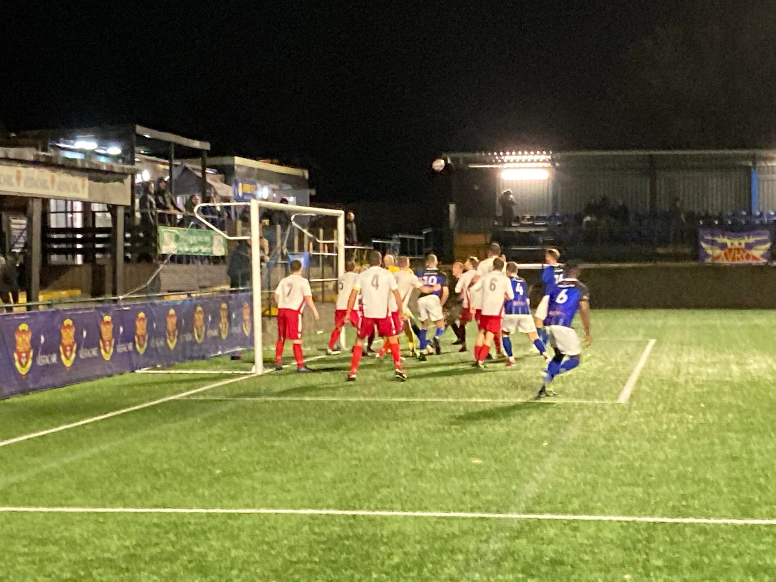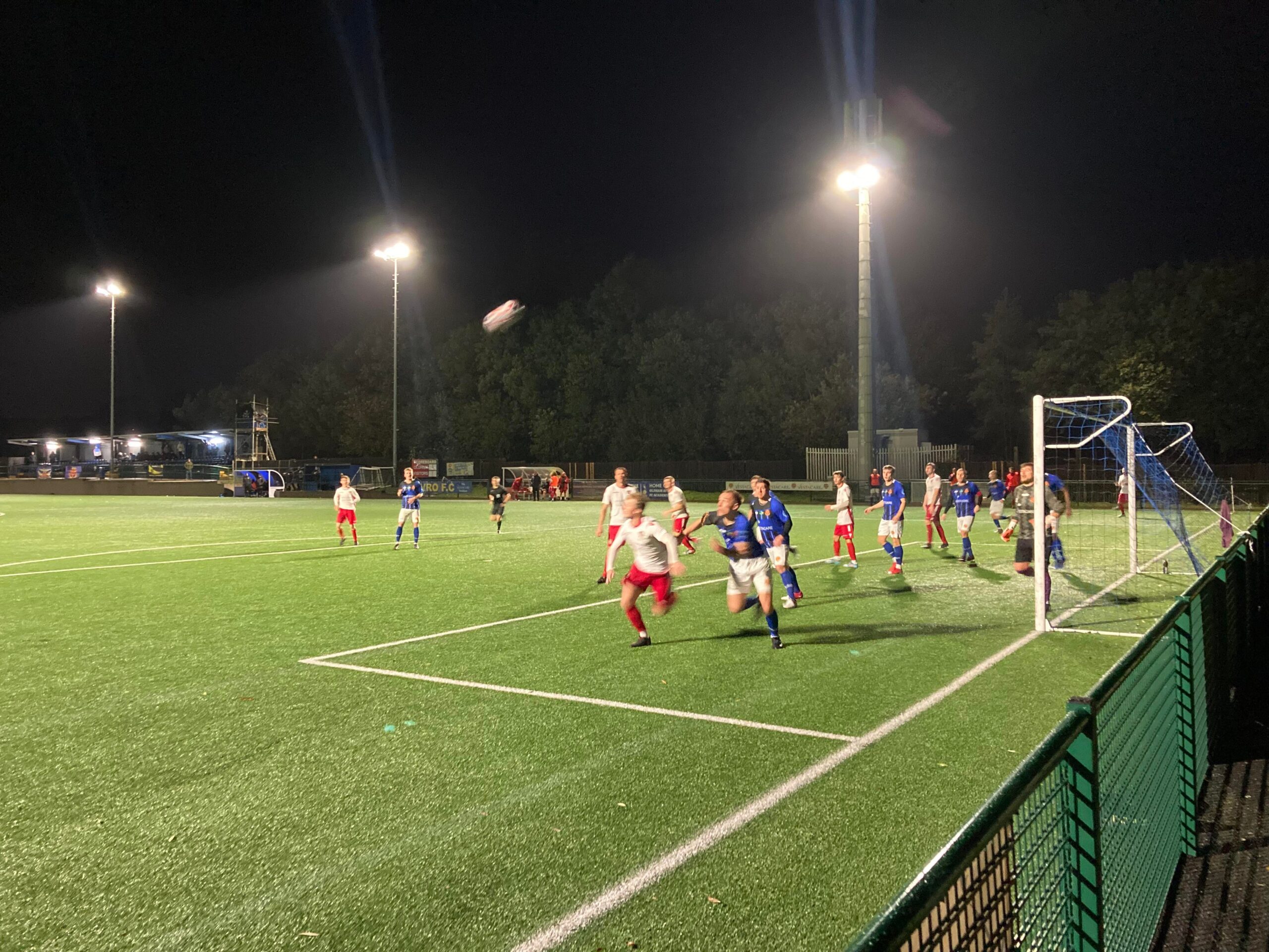 65th minute and as the game goes on, it’s looking more and more likely that it will finish 0-0… But it’s a corner for Avro, the players have packed the goal line, in it comes… All the way in… OH! The keeper parries it wide for another, in it comes again… Off the bar and out for a goal kick. So close!
