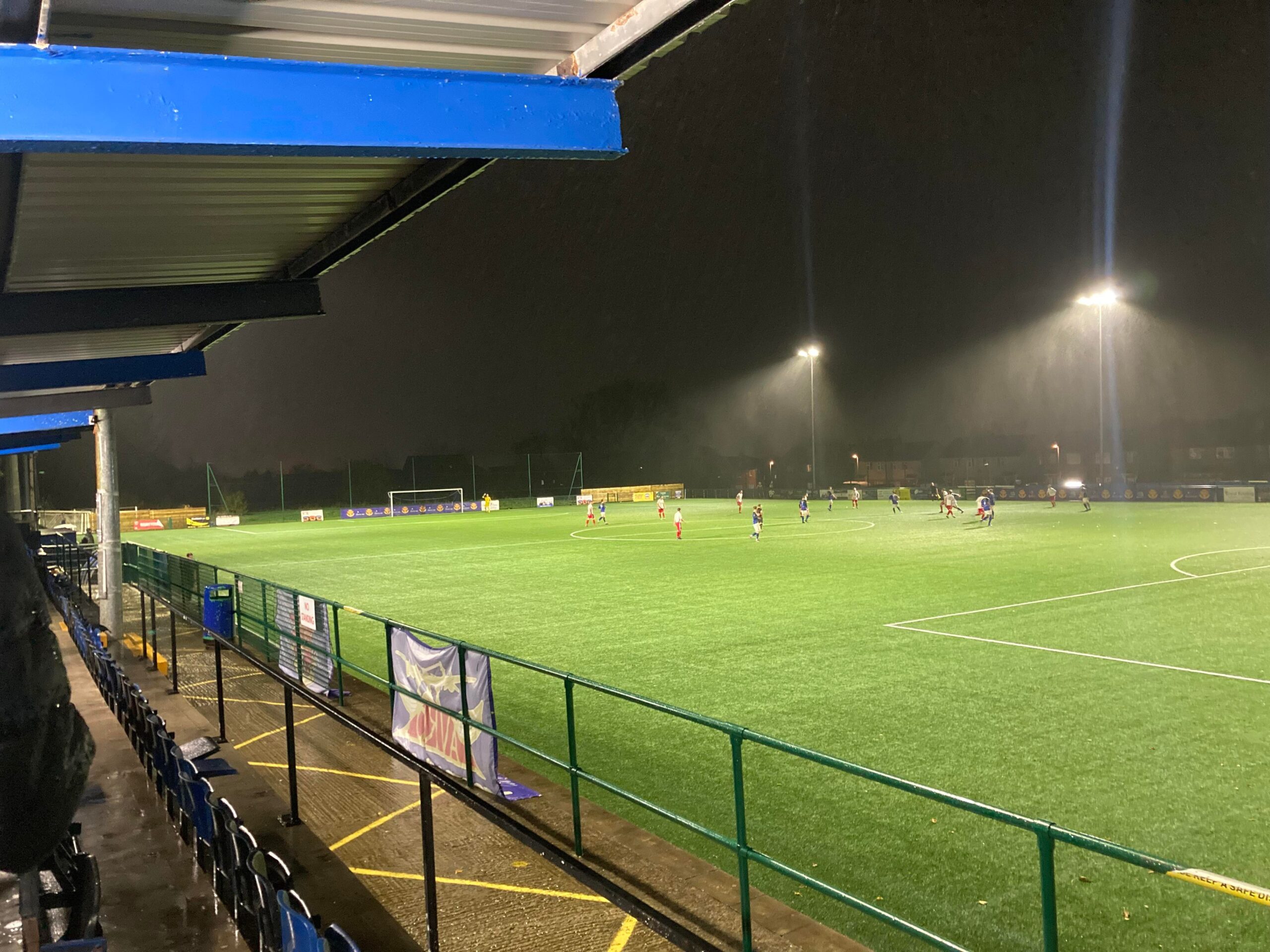 Kick Off… OH MY WORD! That is sensational!! I’m on about the food by the way what a burger that is! 265 grounds up and this is the best food I’ve ever tasted at a football ground hopefully so far! As for the football… I really don’t like that rain… Not the day to be a Goalkeeper!
