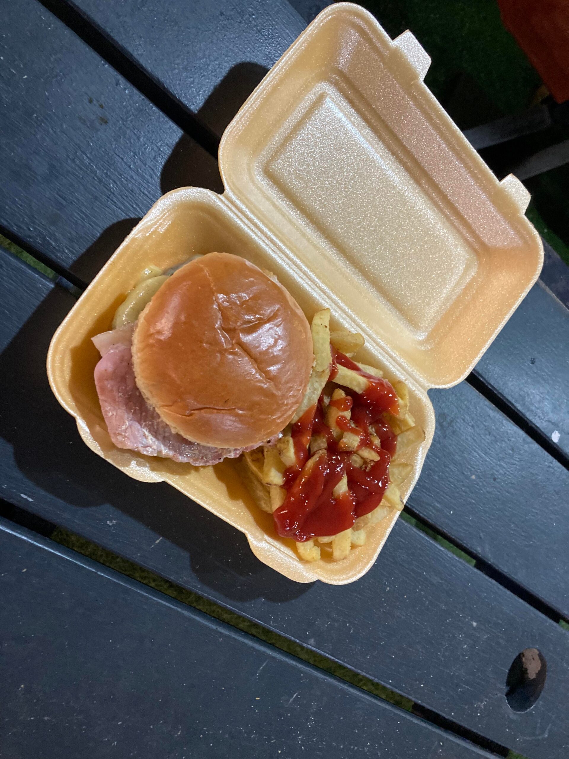 This place has featured on the Twitter page “Footy Scran” in the past so this could be tasty! Macies at Avro is the place to be… And it’s cash only… The cash I used to get in is all gone… It’s time for: “Operation Cashback!” Into the top bar and… No… But what about the bottom bar…? Yes! Into the queue, time is ticking for kick off as the players are lined up in the tunnel. £10 for an Ultimate Burger and salt & pepper fries… Will it be worth it?
