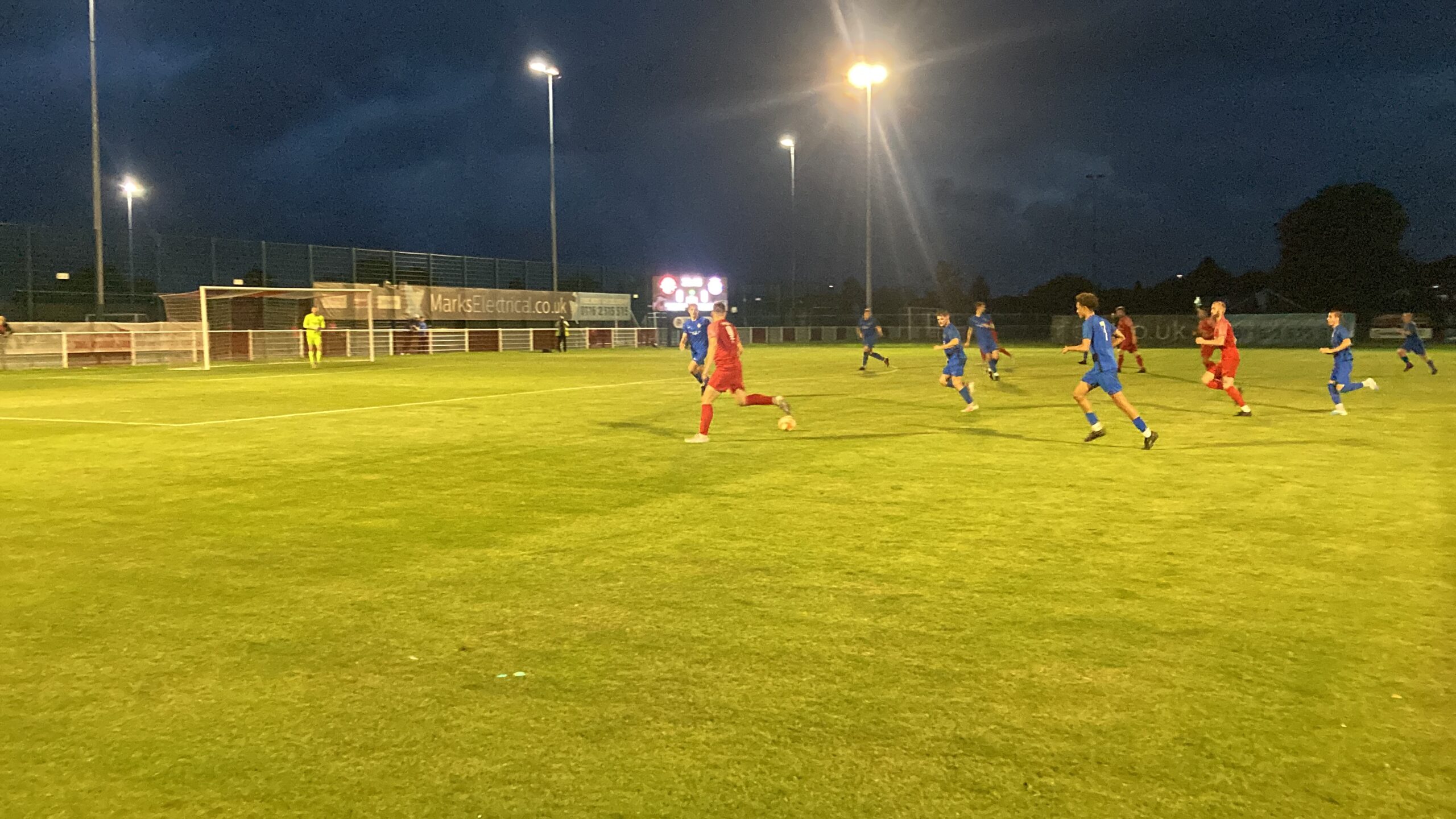 Second half, 54th minute and Aylestone Park break forward with Samuels, he gets to the edge of the box and goes for it… AND HE FINDS THE NET!!!! Aylestone deservedly in front! 1-0!
