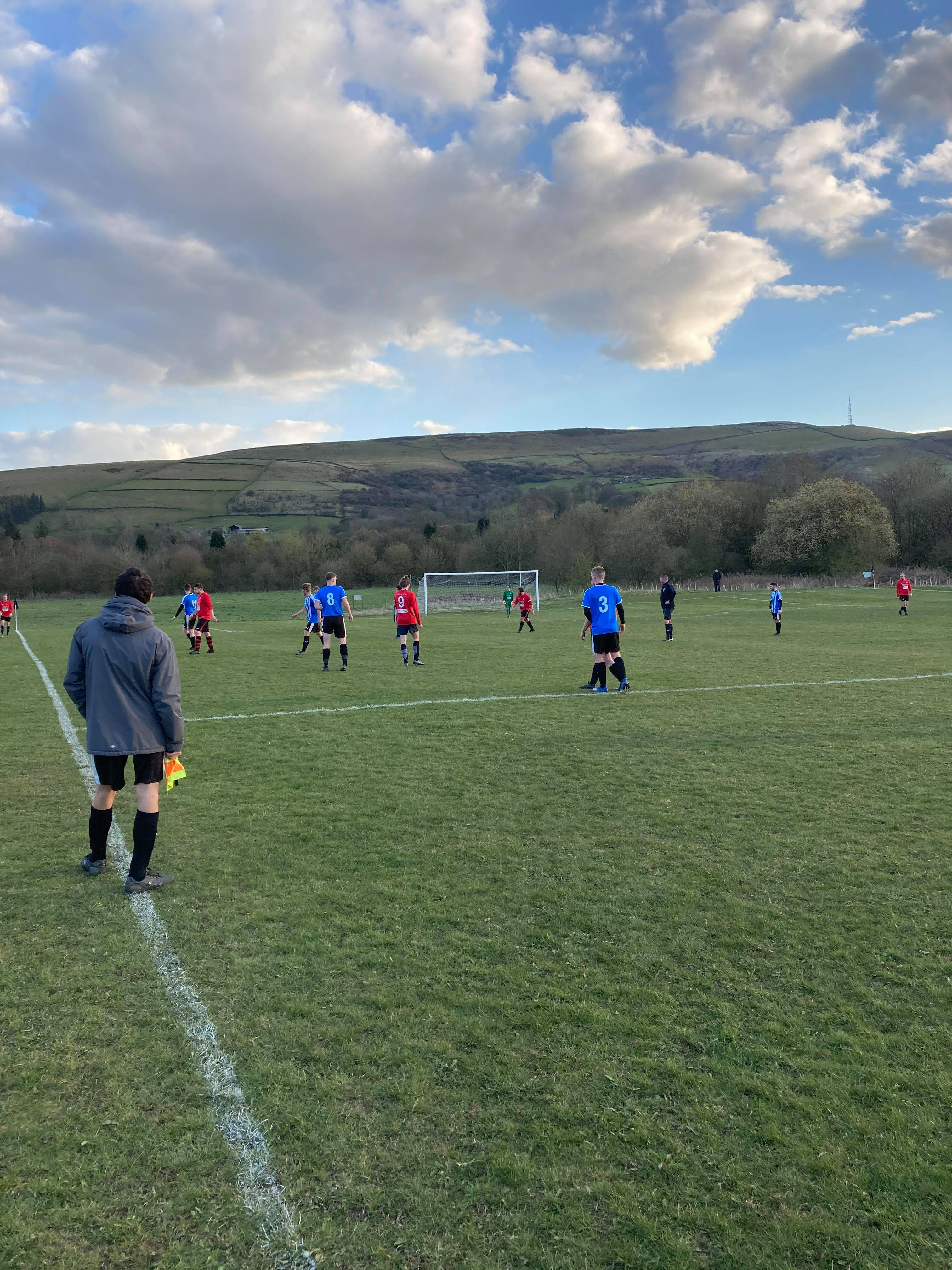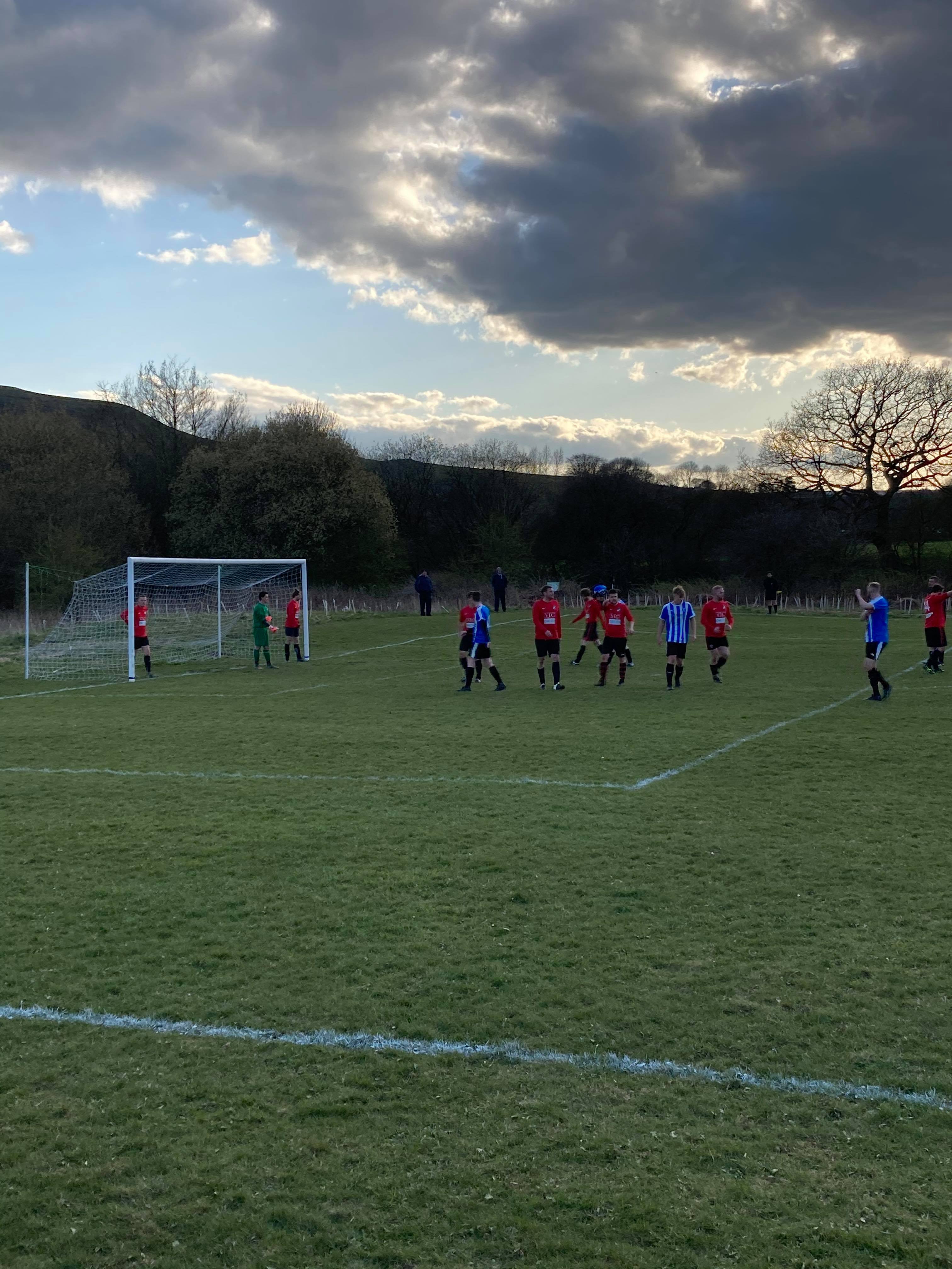 79 minutes and Bamford’s number 9 is running at Baslow again, he beats the last 2 defenders, he’s around the keeper… Keeper gets a hand to it… Cleared off the line brilliantly! A vital hand from the keeper manages to slow number 9’s momentum there. 83 minutes gonw and another long ball played by Baslow, number 4 heads down for number 15 who controls it… And finishes! 5-3 now! What a game this has been!