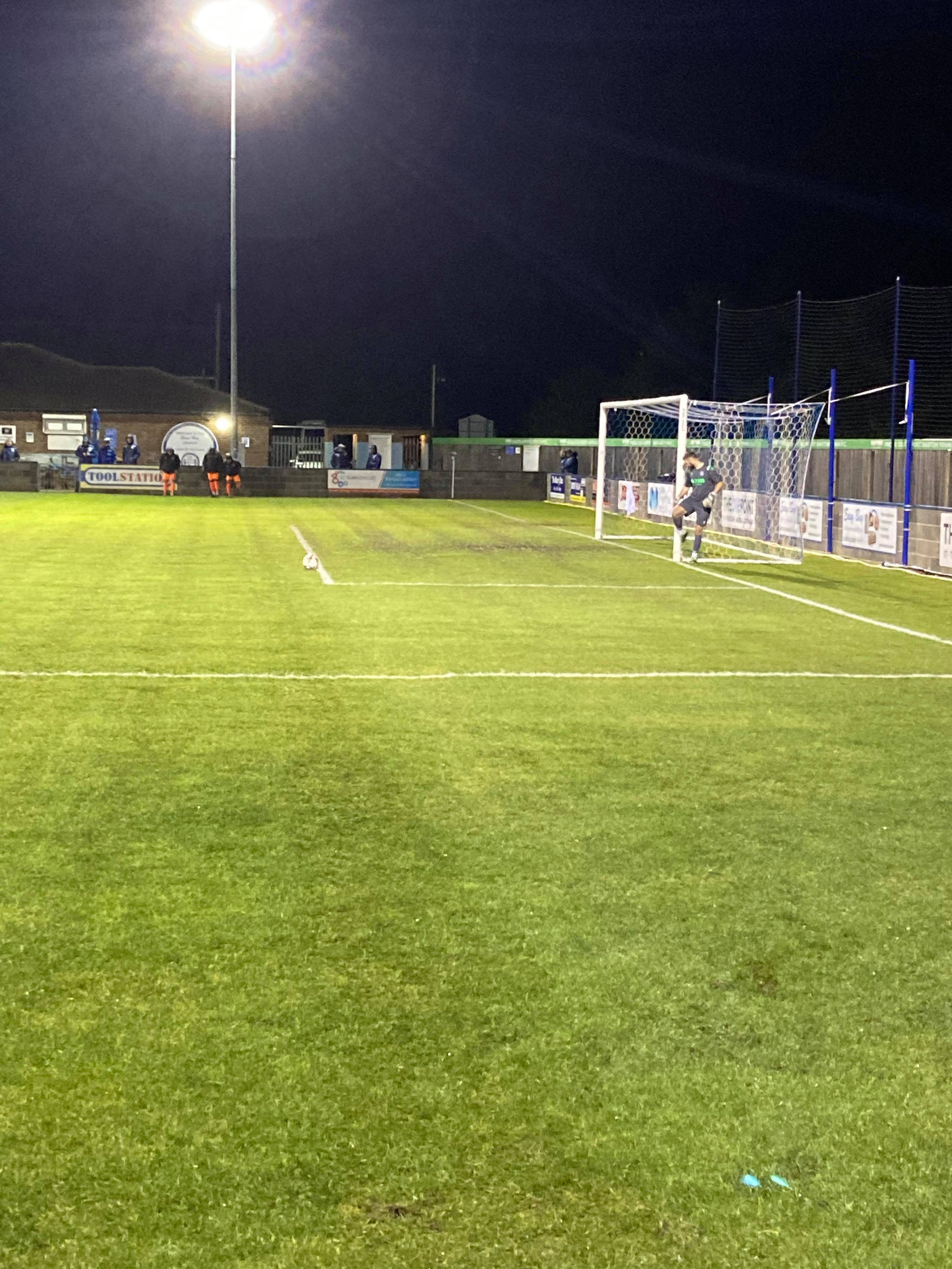 40th minute and Athersley give the ball away on halfway, Curtis Bateson drives forward, he gets into the box on the left, he shoots… Brilliant save by the keeper! A first for me and Joe here as the official who greeted us at the gate has just invited us in to the executive lounge! We’re been treated like VIPs!!! How about it! A big thank you to Owen, the community officer here tonight! The score at half time remains 1-1.