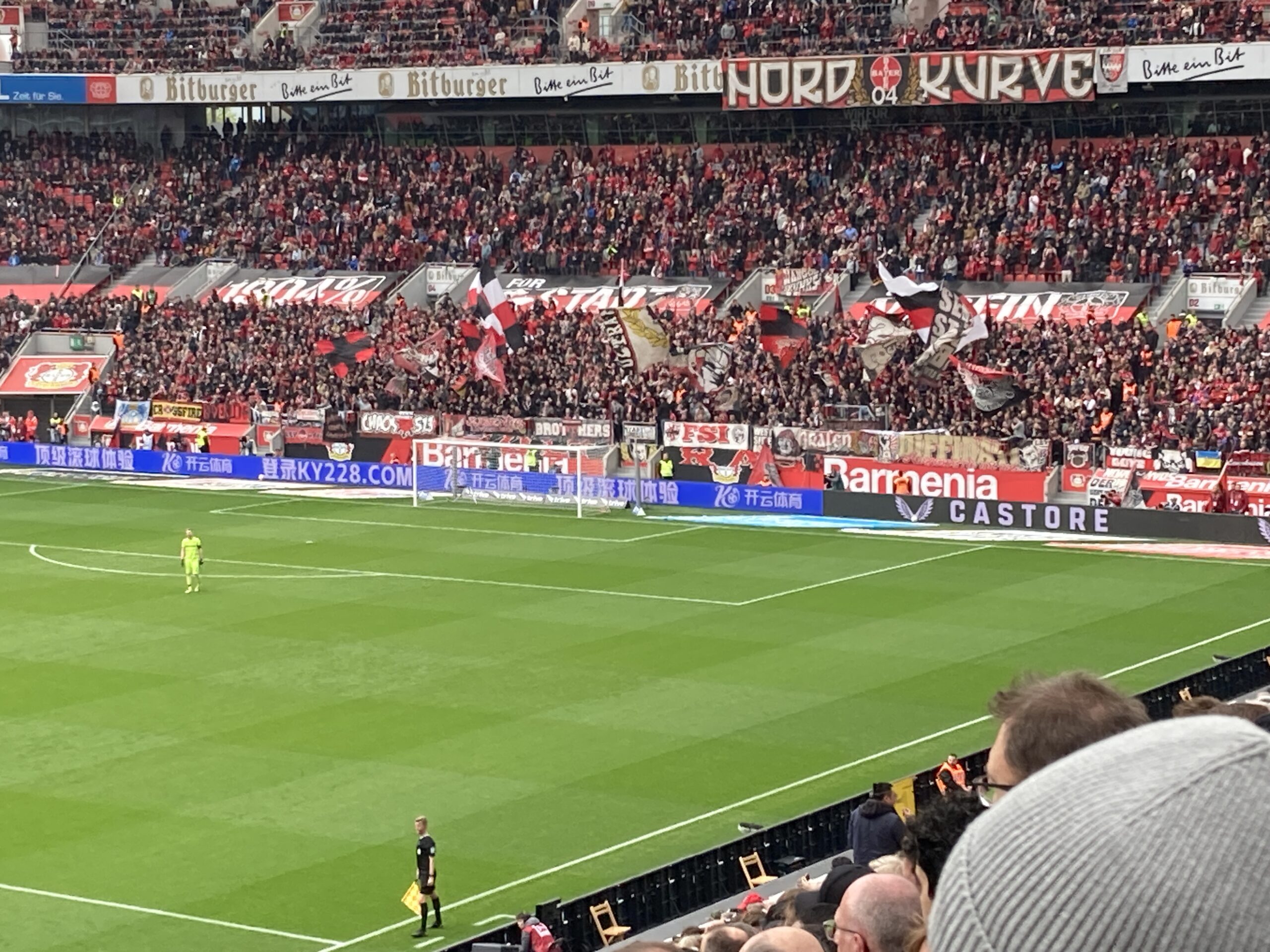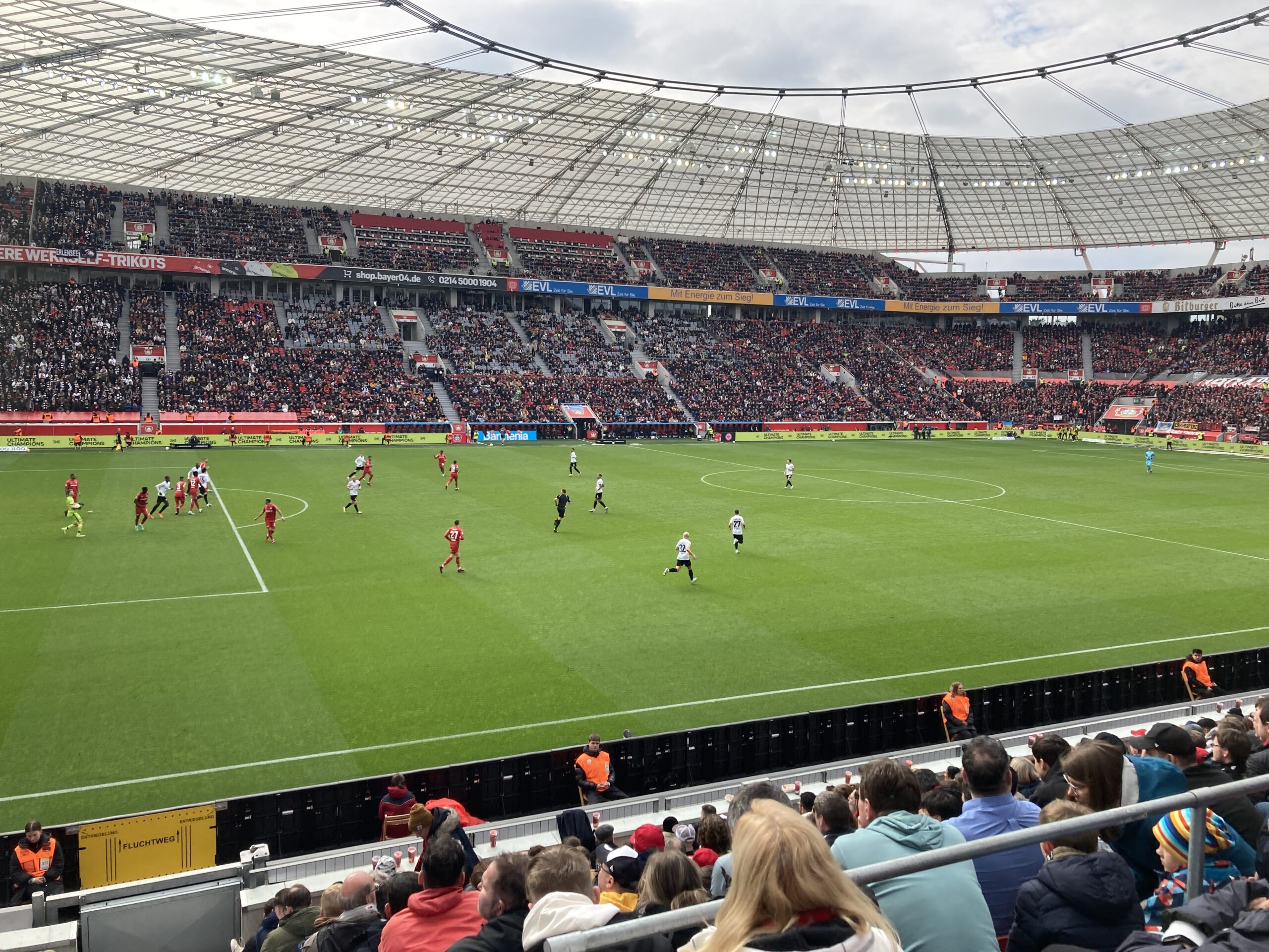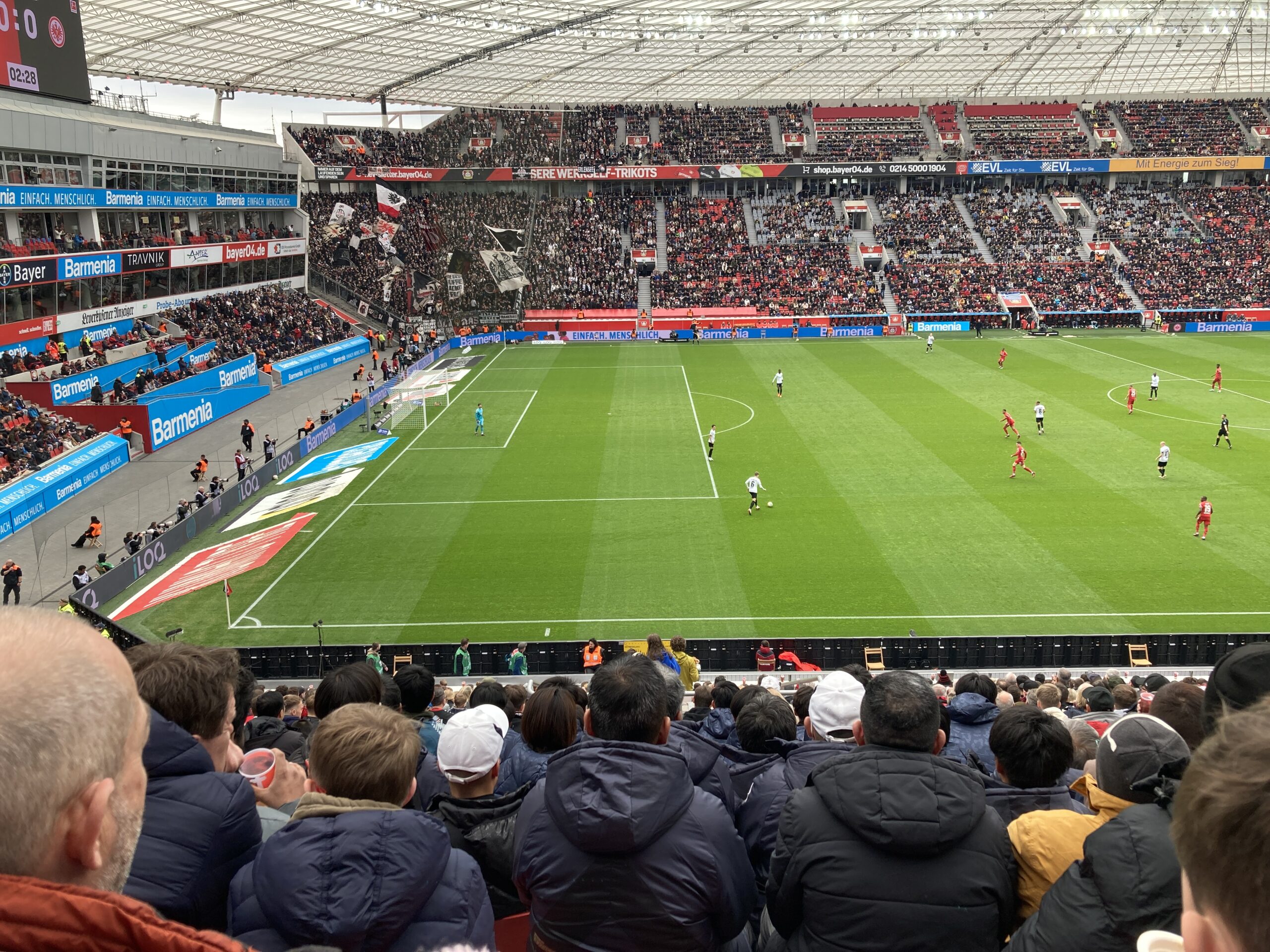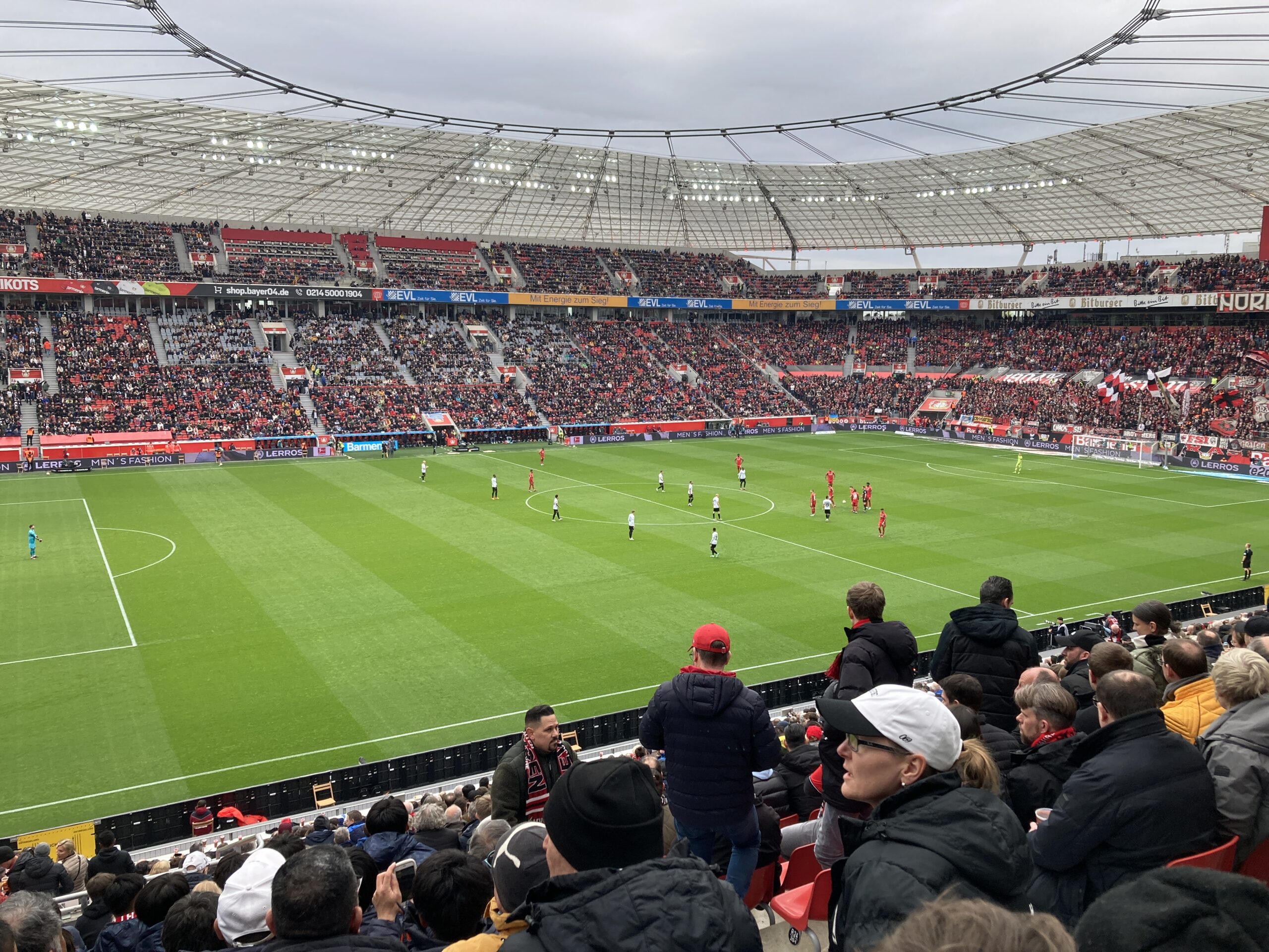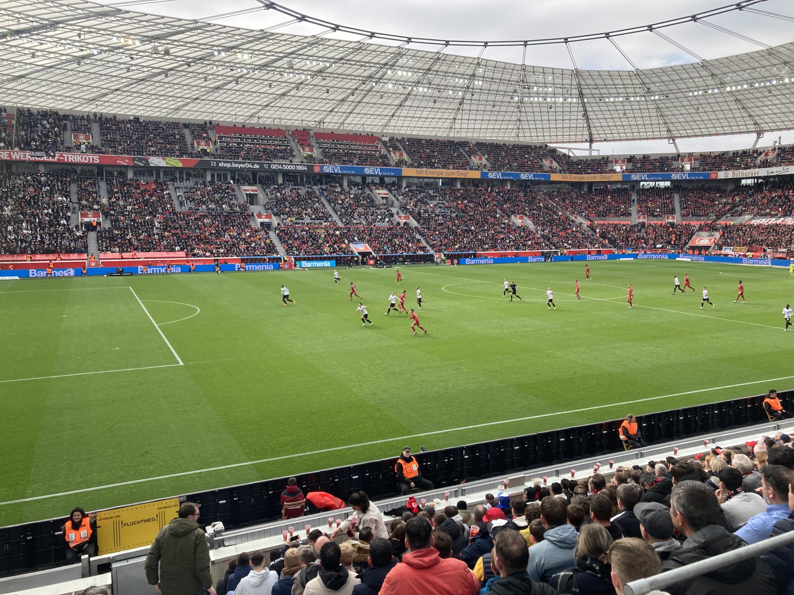 The Leverkusen anthem echoes around the ground as the players come out to the field! This is beautiful! The players are ready! International groundhopping is off and running for me today! Let’s have it!