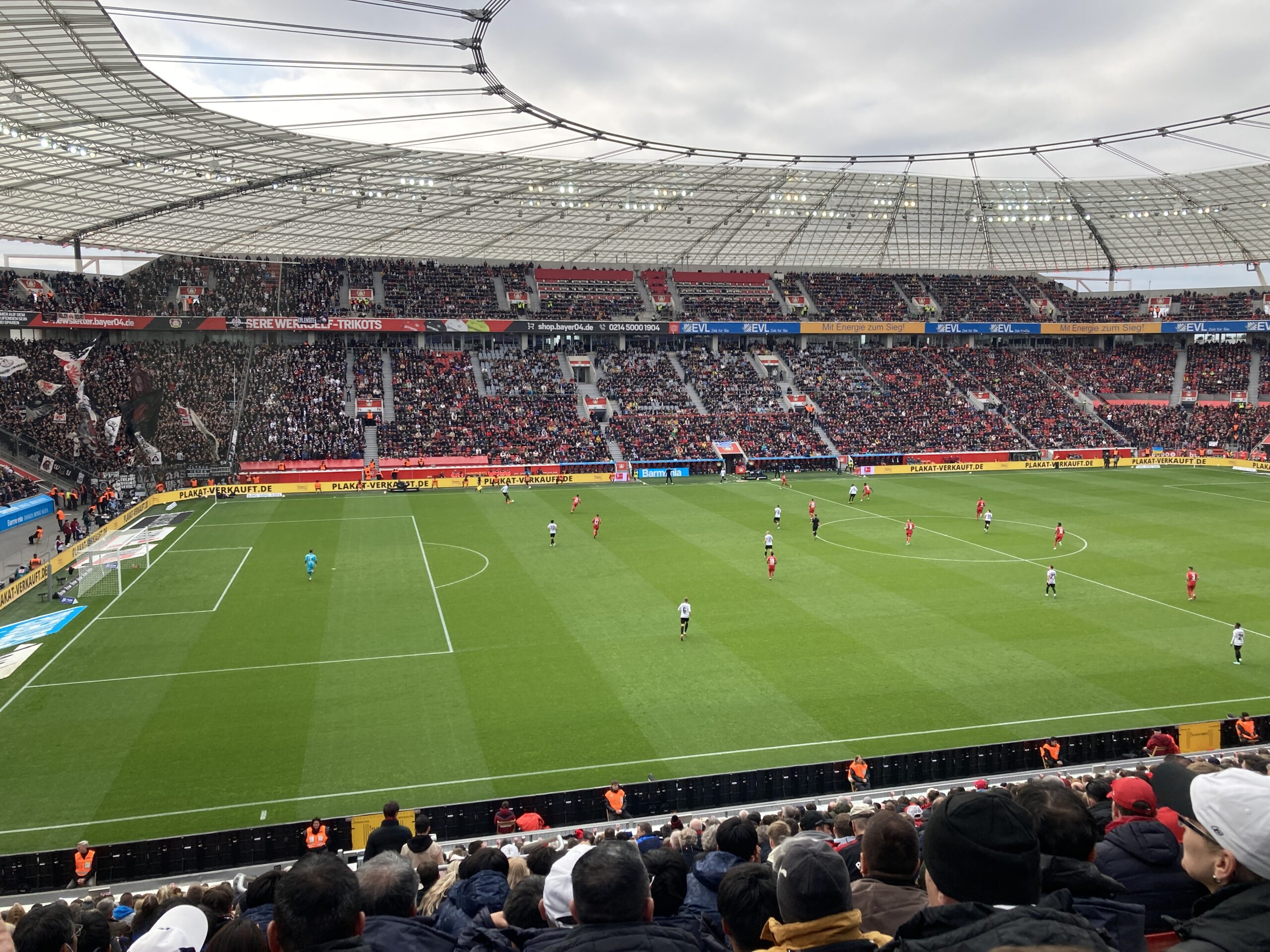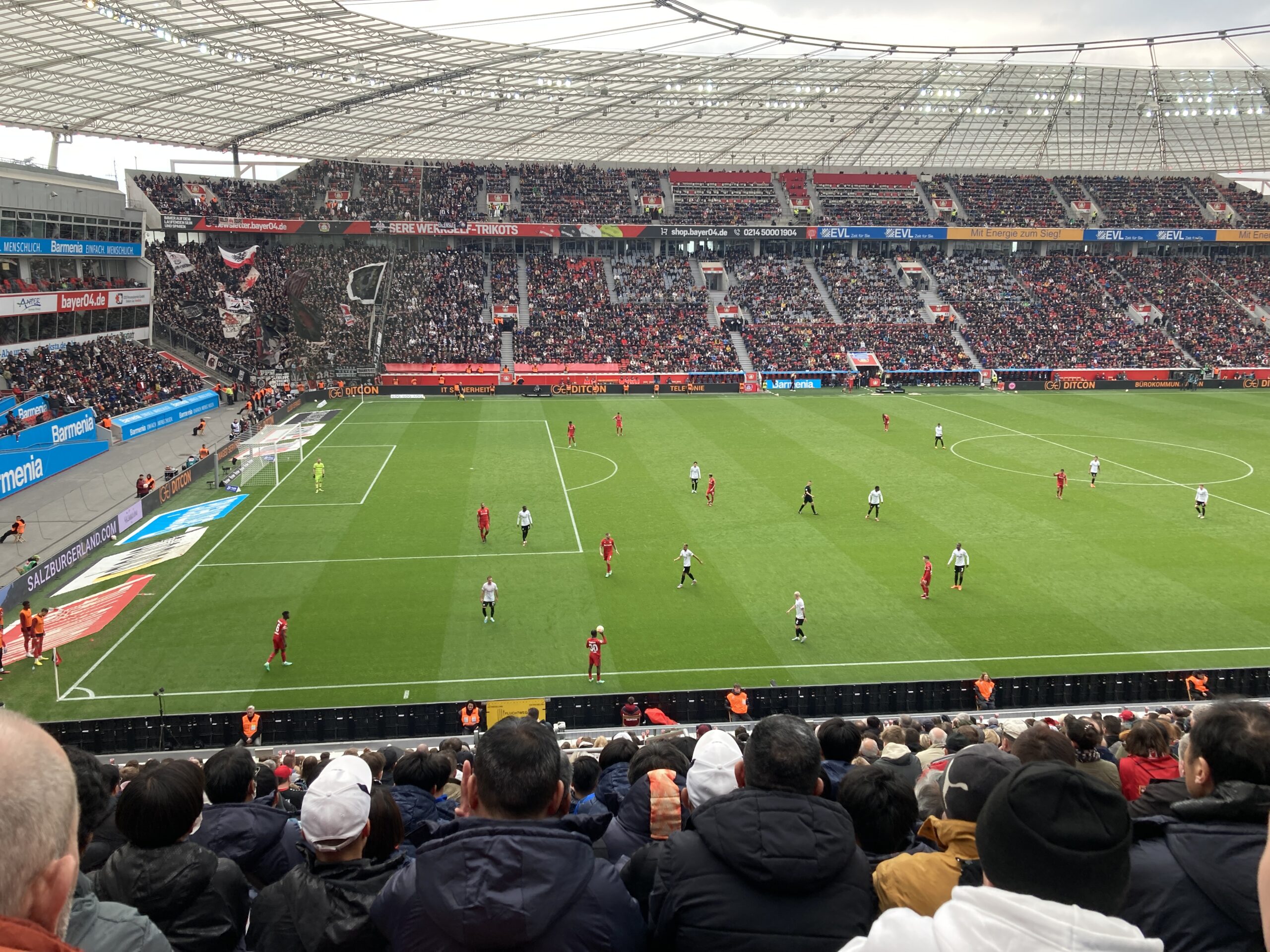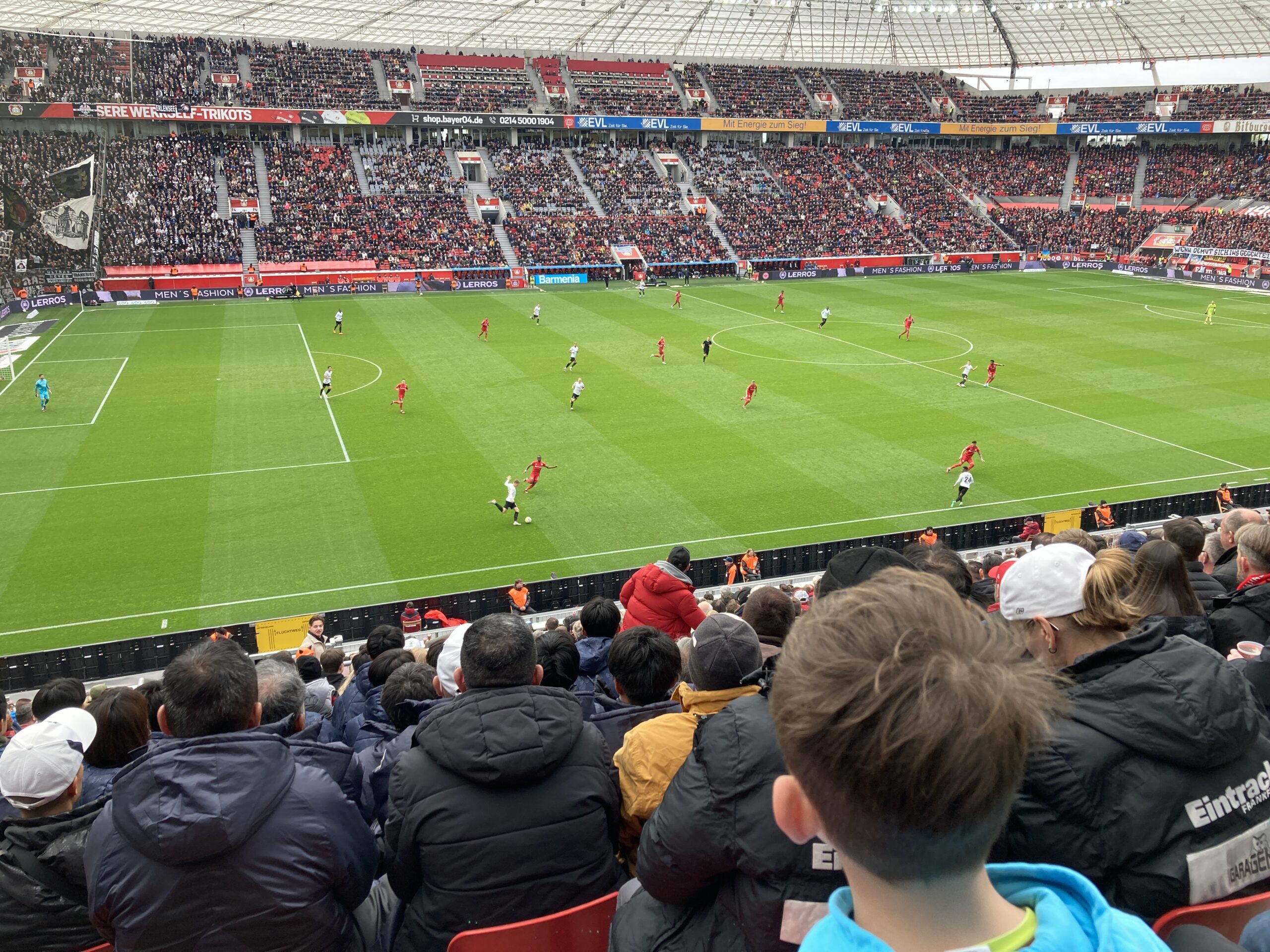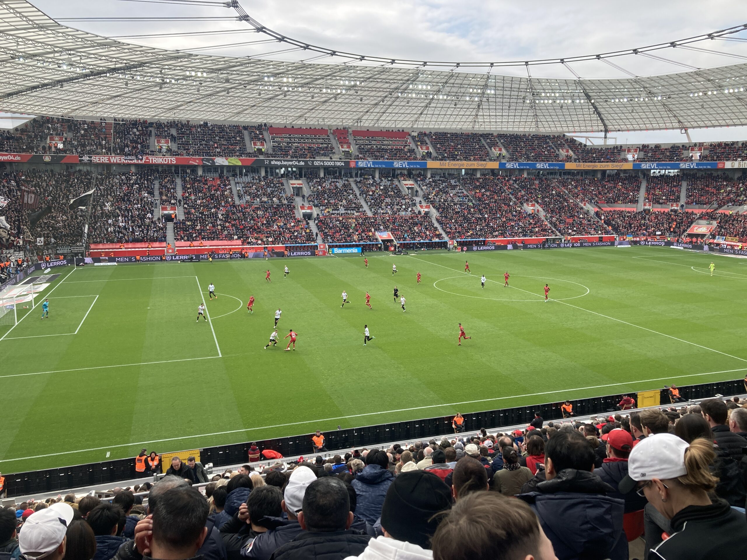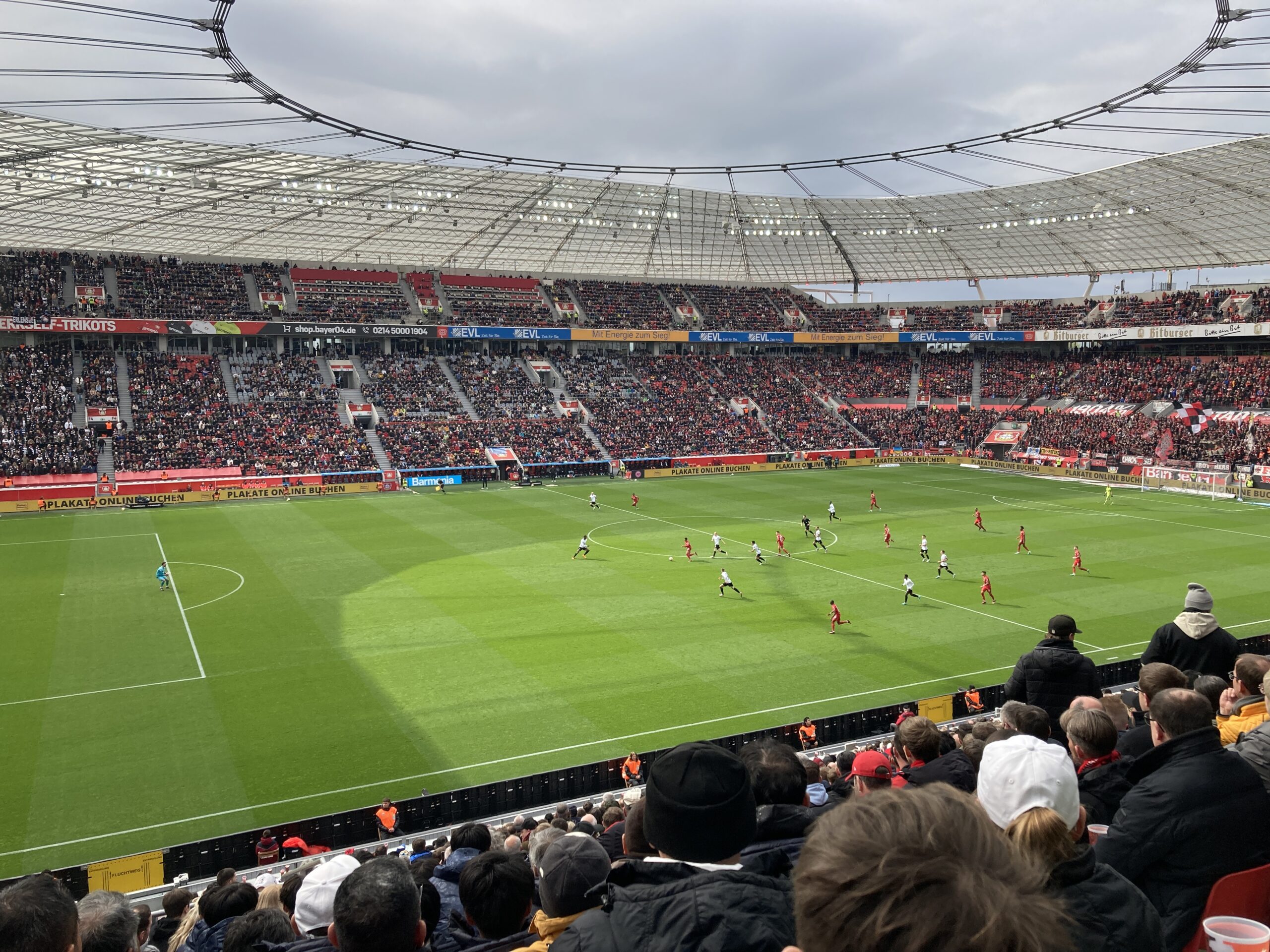 The Leverkusen anthem echoes around the ground as the players come out to the field! This is beautiful! The players are ready! International groundhopping is off and running for me today! Let’s have it!