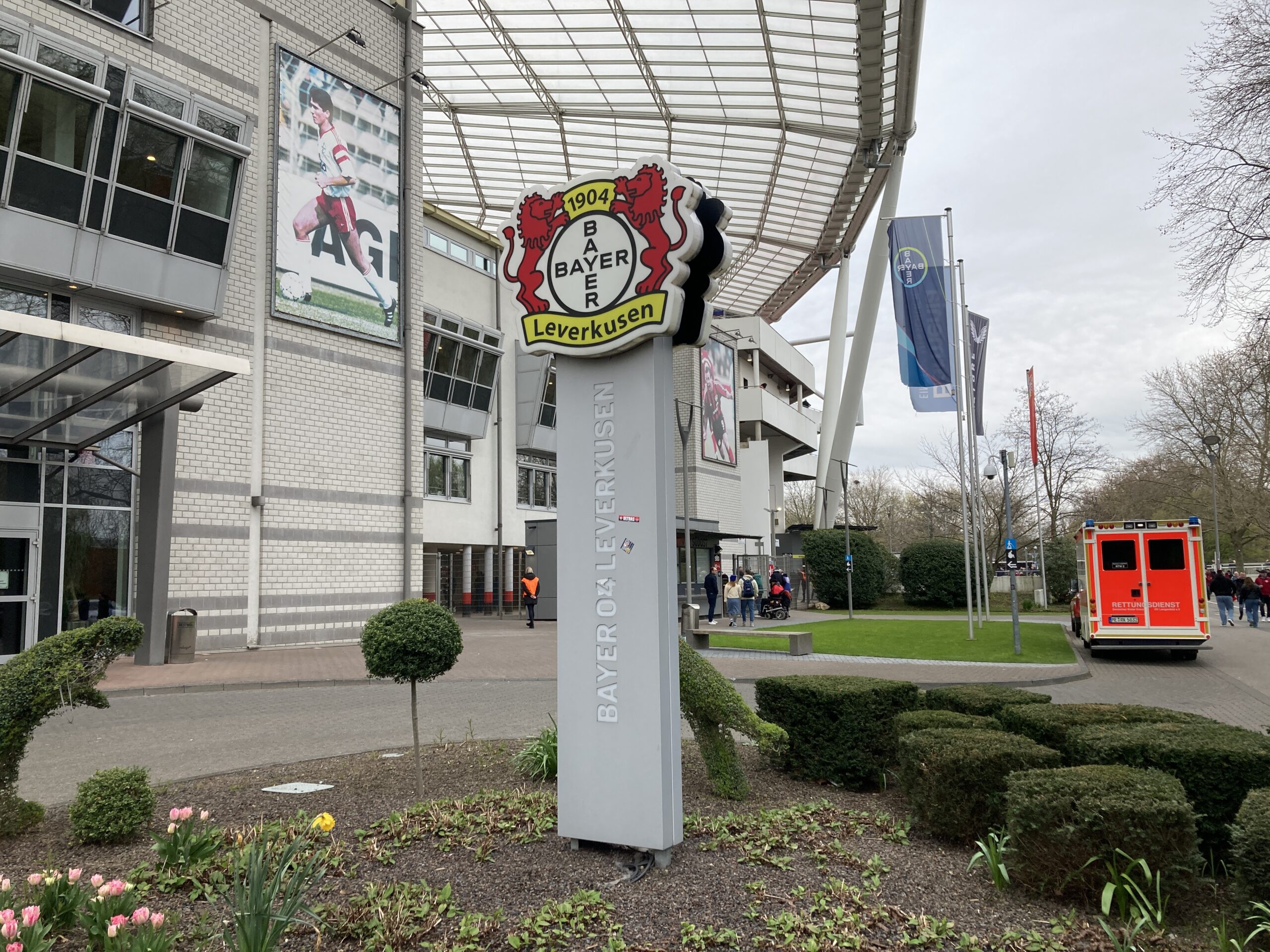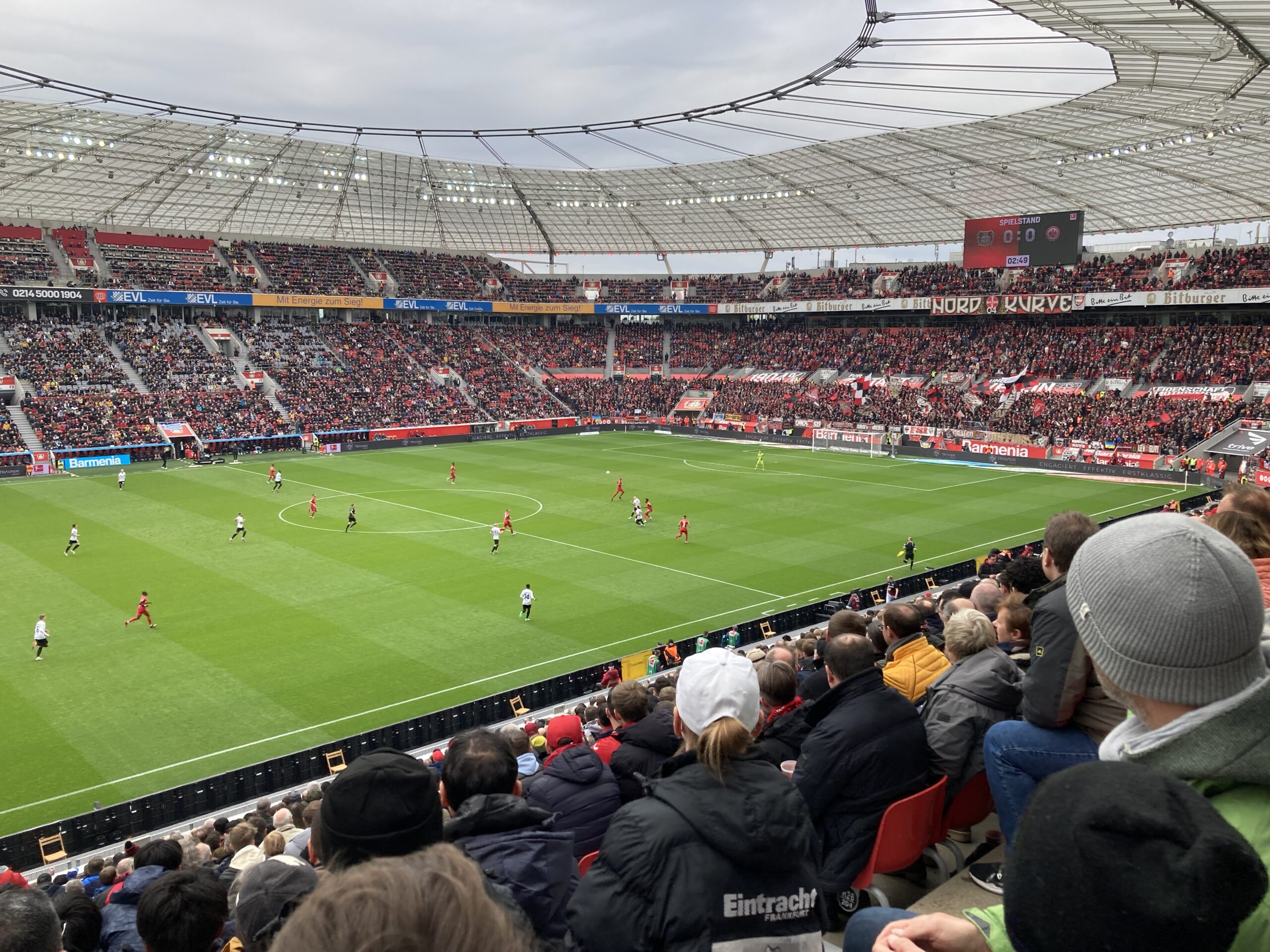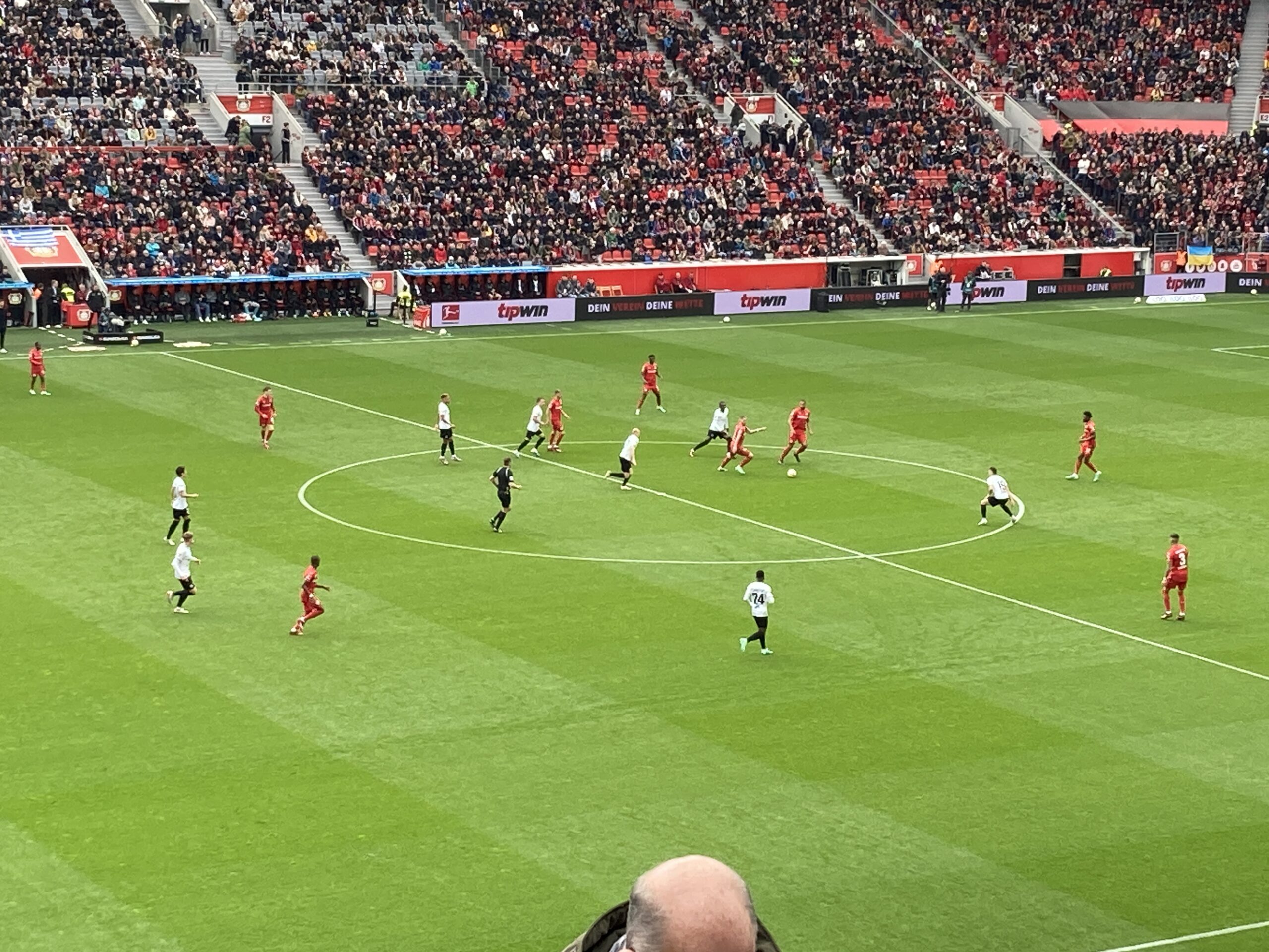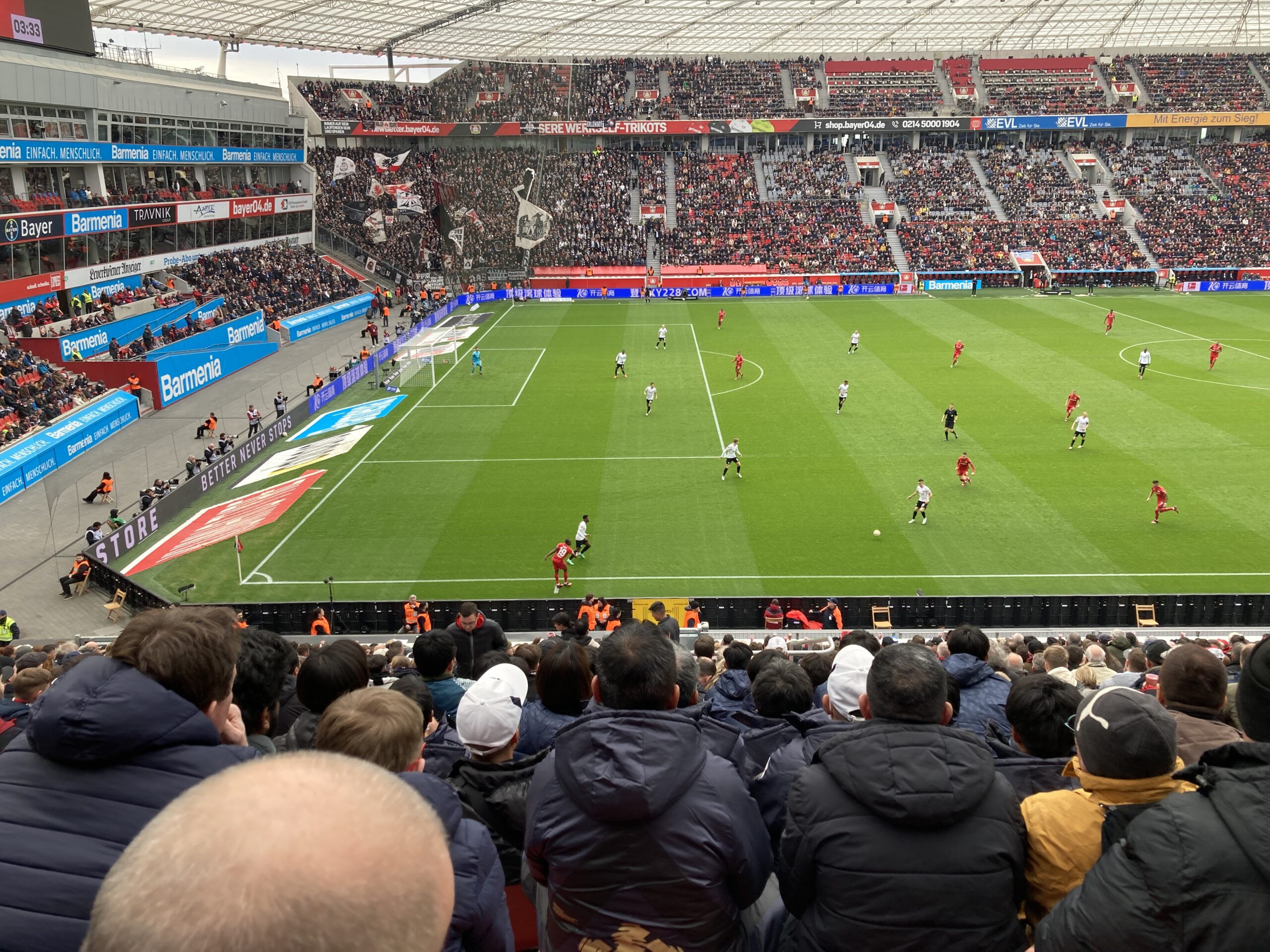 The Leverkusen anthem echoes around the ground as the players come out to the field! This is beautiful! The players are ready! International groundhopping is off and running for me today! Let’s have it!