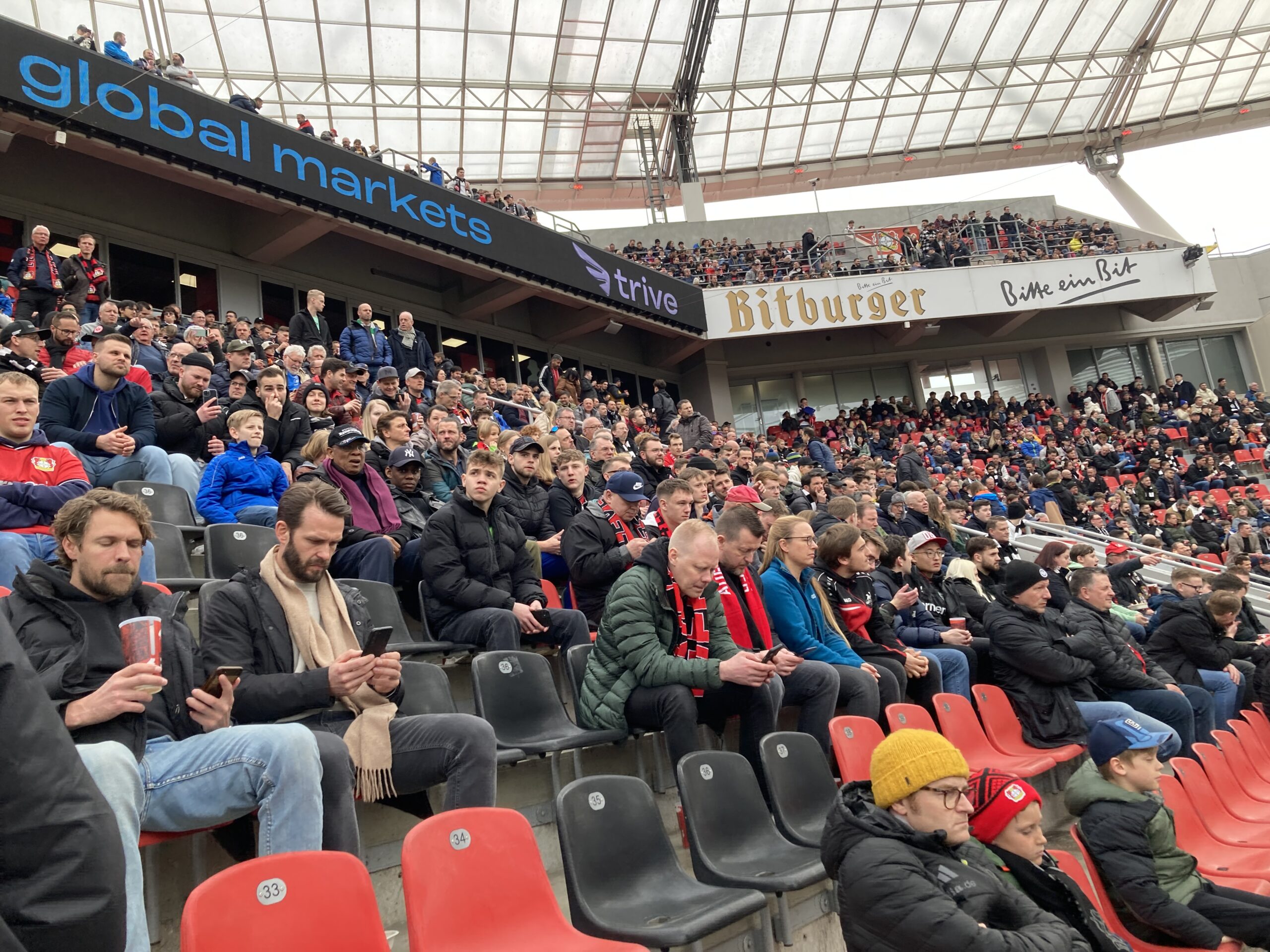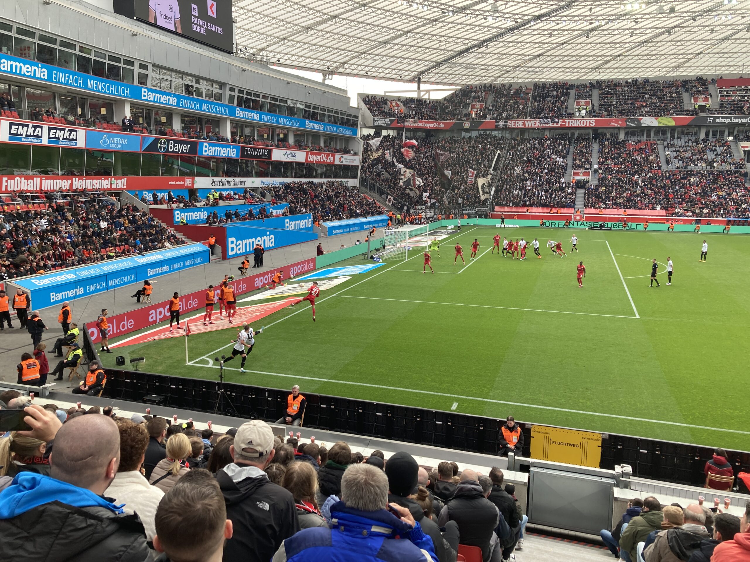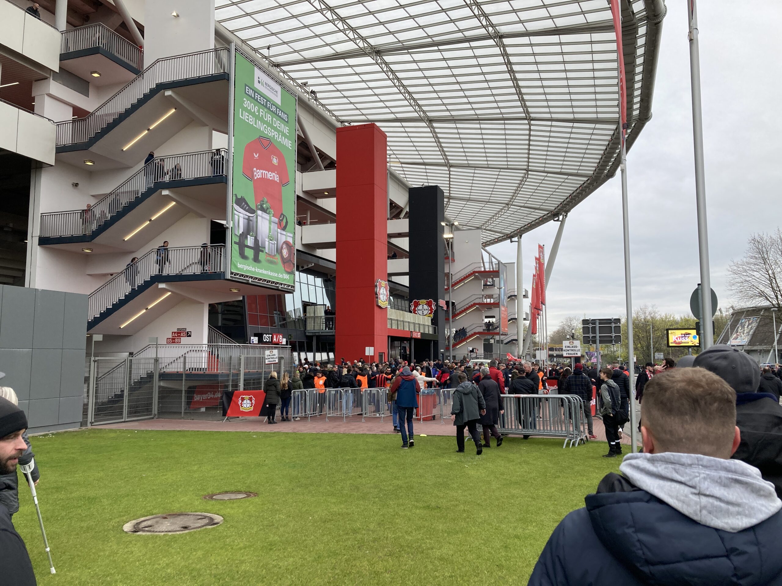 In the clubhouse with Brian now and it is nice to meet Daniel better known as “Teflon” after being given this nickname due to some poor goalkeeping in the games over the years between Wisewood & Adler Reimke… I wonder what happened there?! As Brian is telling Daniel what I do on a Saturday he says “I have a spare ticket for Bayer Leverkusen tomorrow” wait WHAT?!