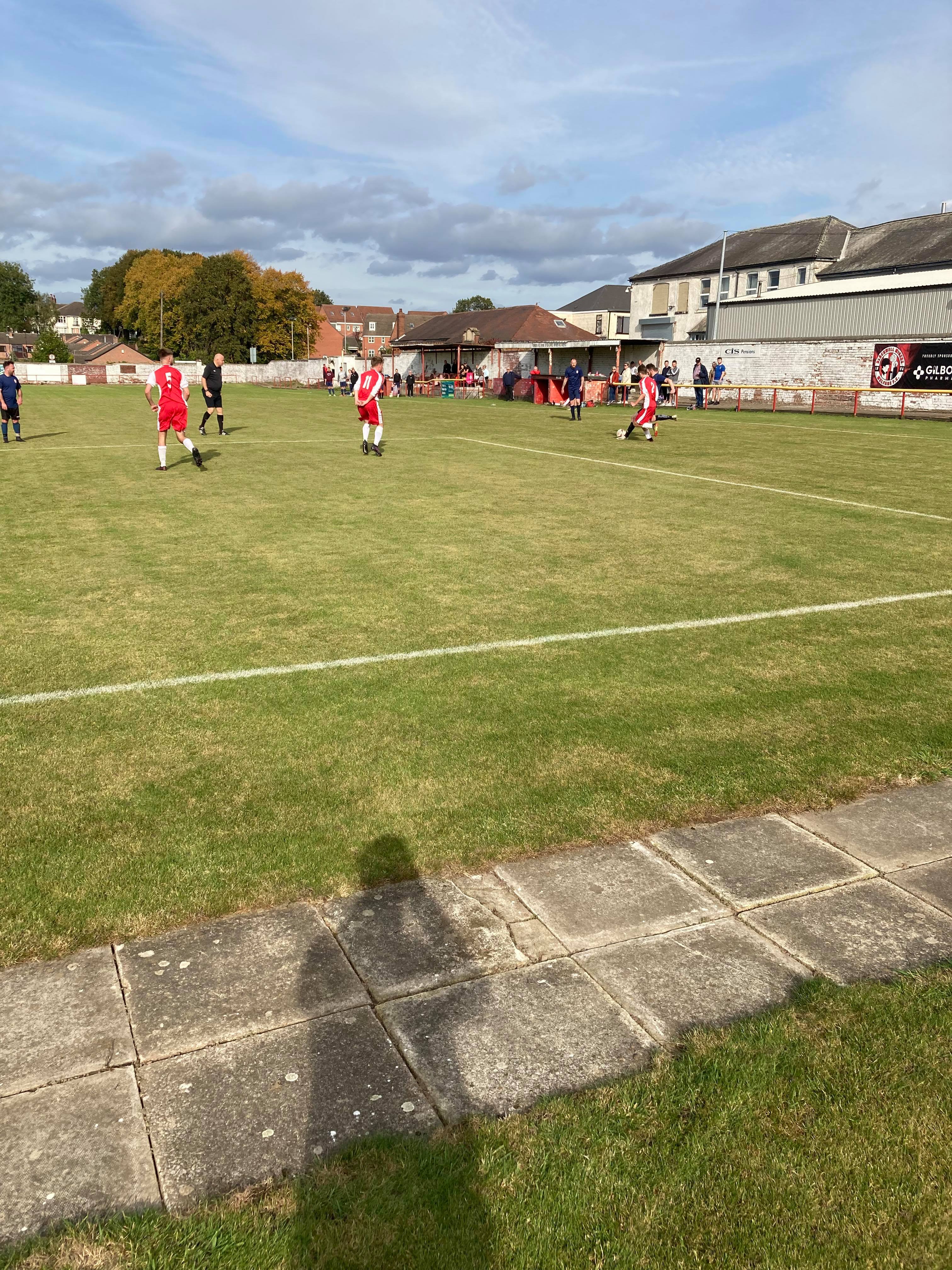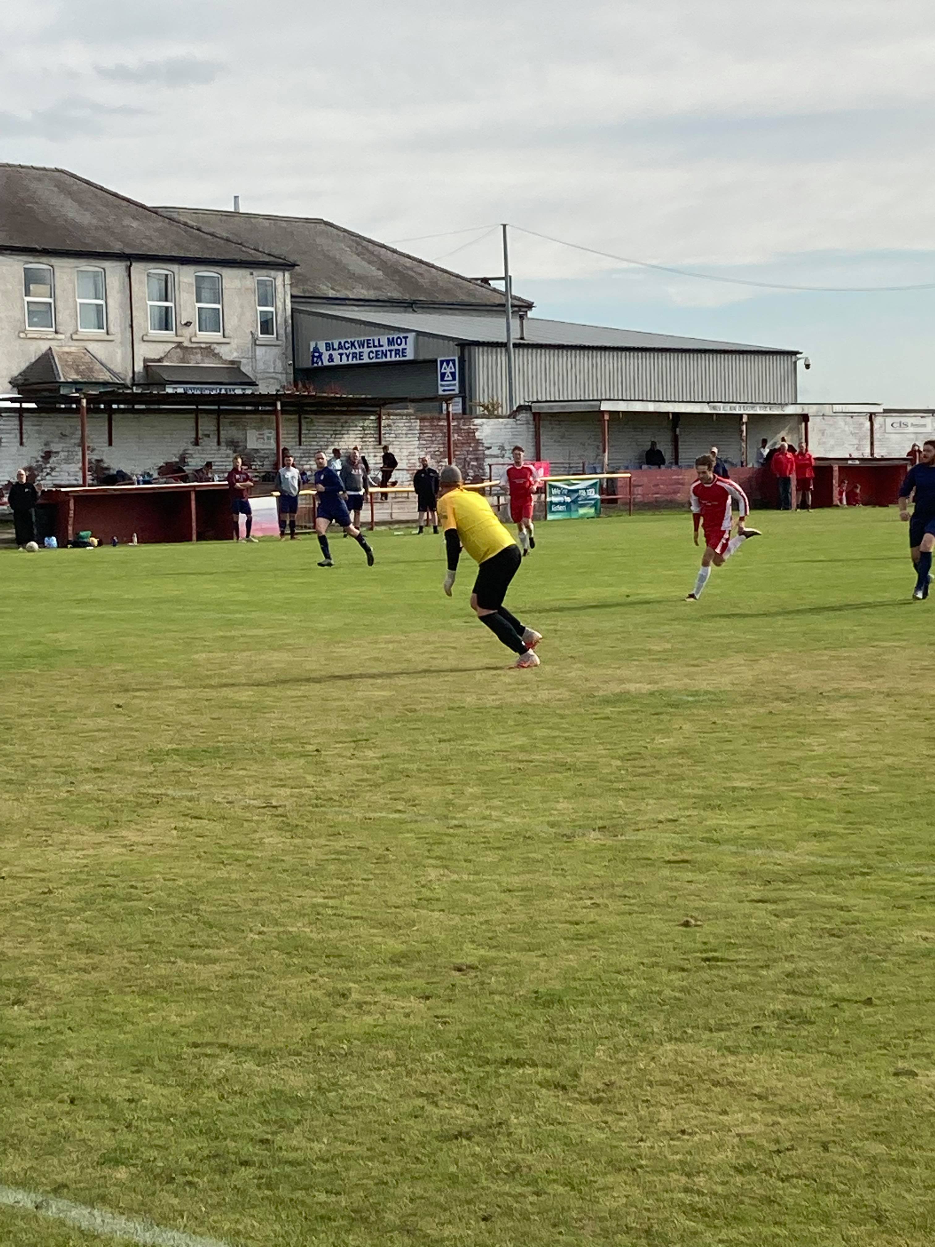 Off to Alfreton I go! Taxi!! Here I am just in time for kick off! Free Entry here today! Miraculous! A slow start to this game so far with both teams enjoying the ball equally. 21 minutes in and Blackwell play forward, number 7 chases a through ball in the box, he gets it… But he shoots wide.