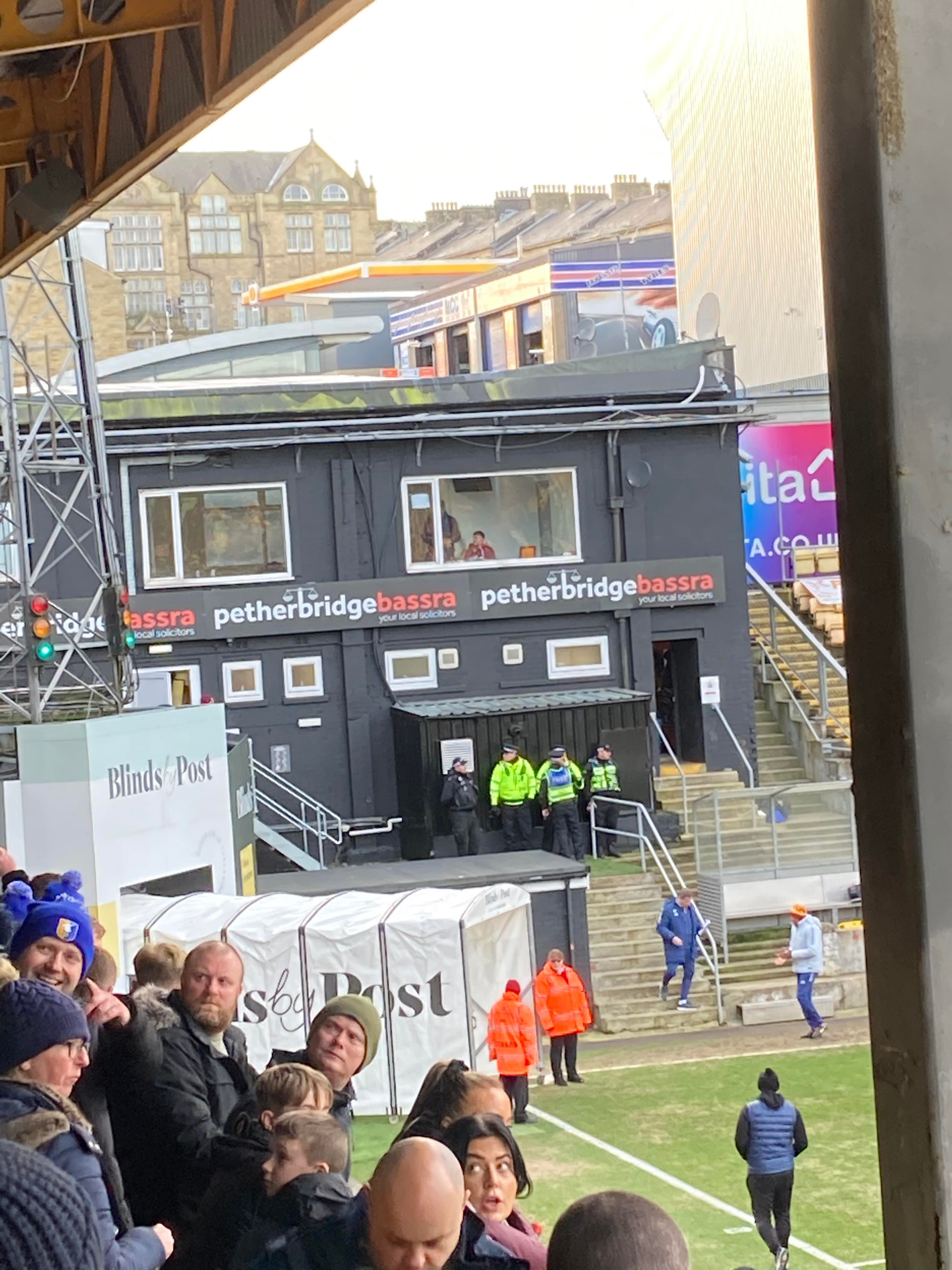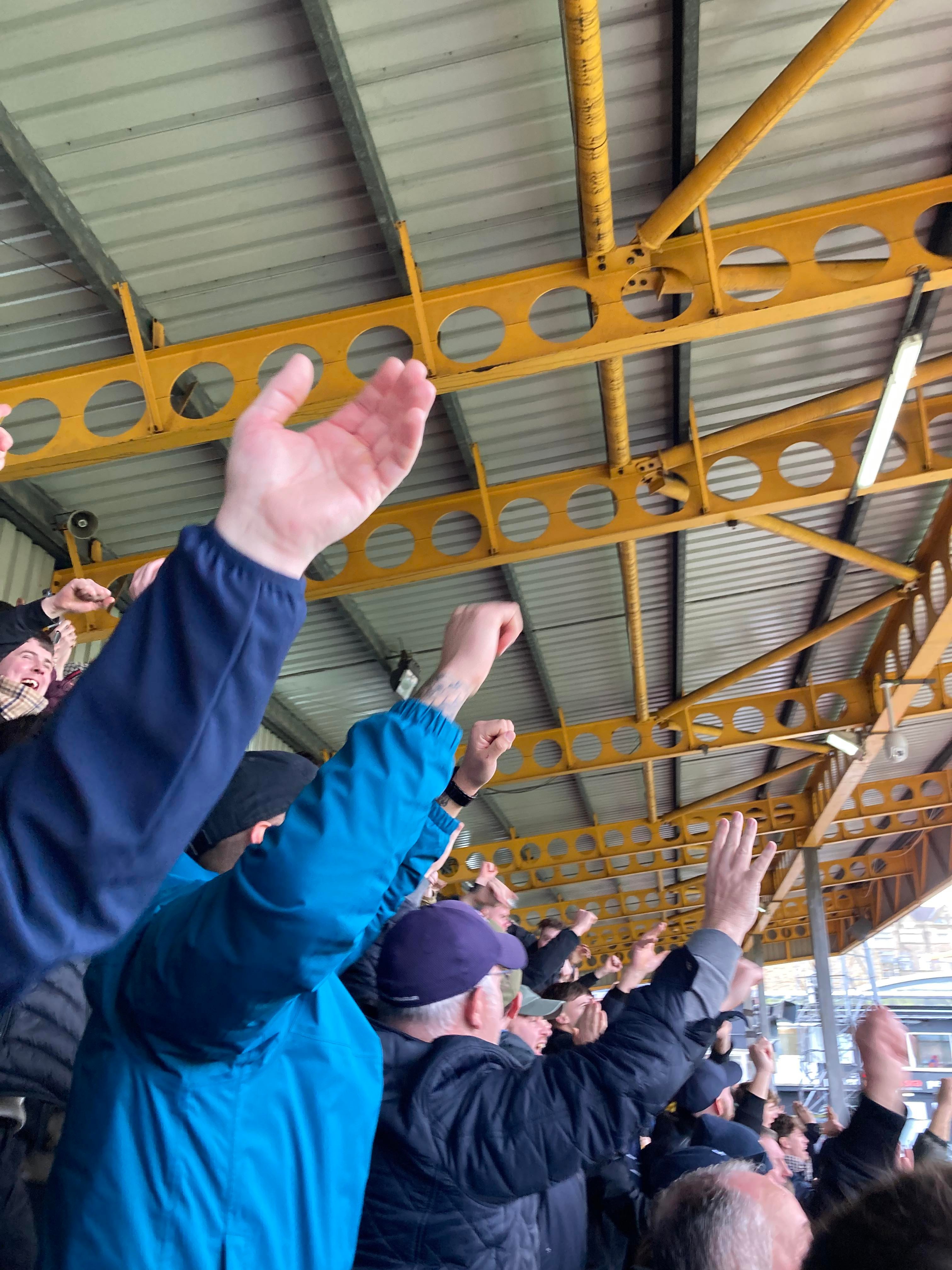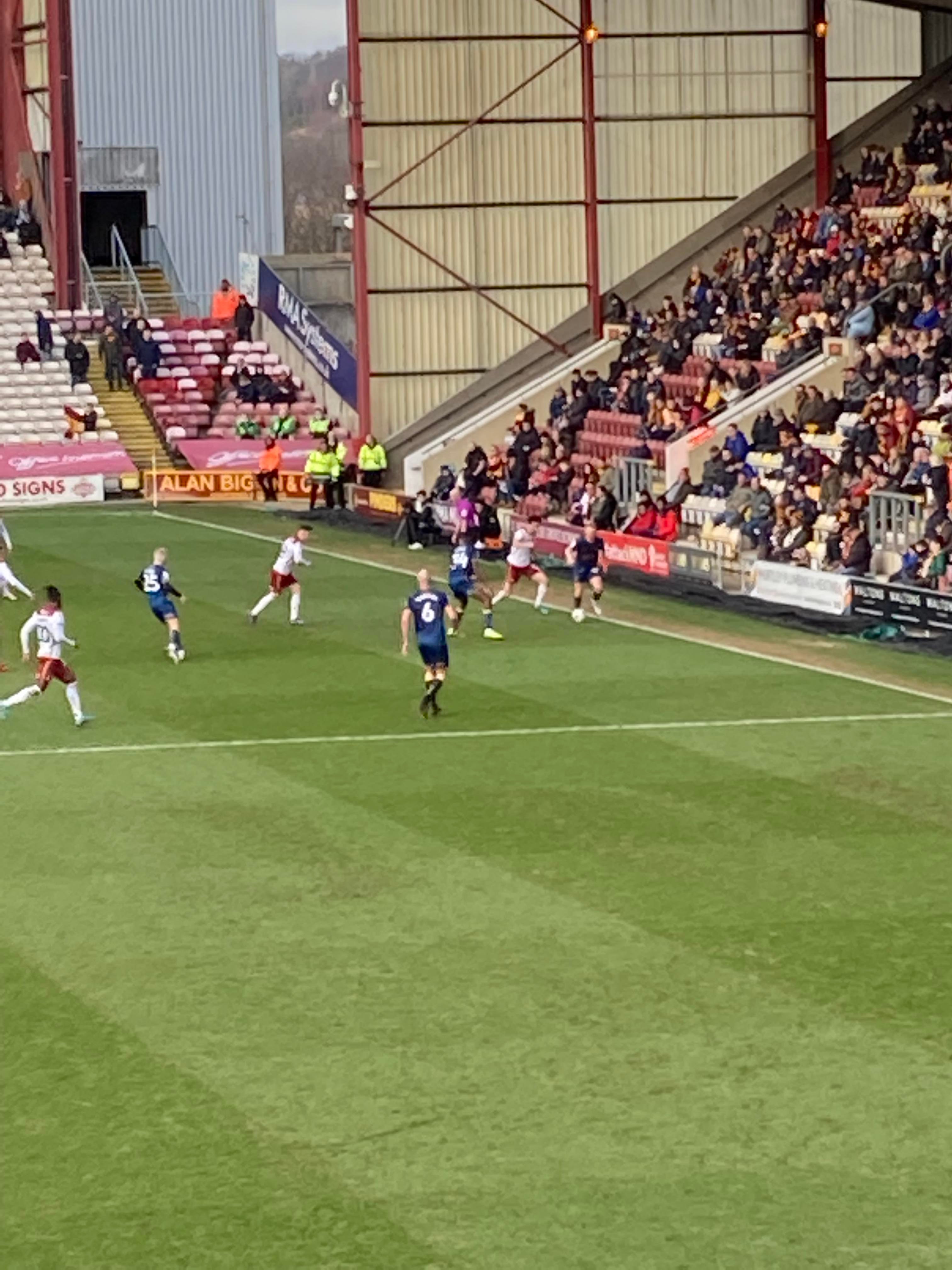 At half time the score remains 1-0 to the Mansfield!! “We’re on our way! We’re on our way! To the League One we’re on our way!!” A round of applause at half time from both sets of supporters as we stand with Ukraine!!