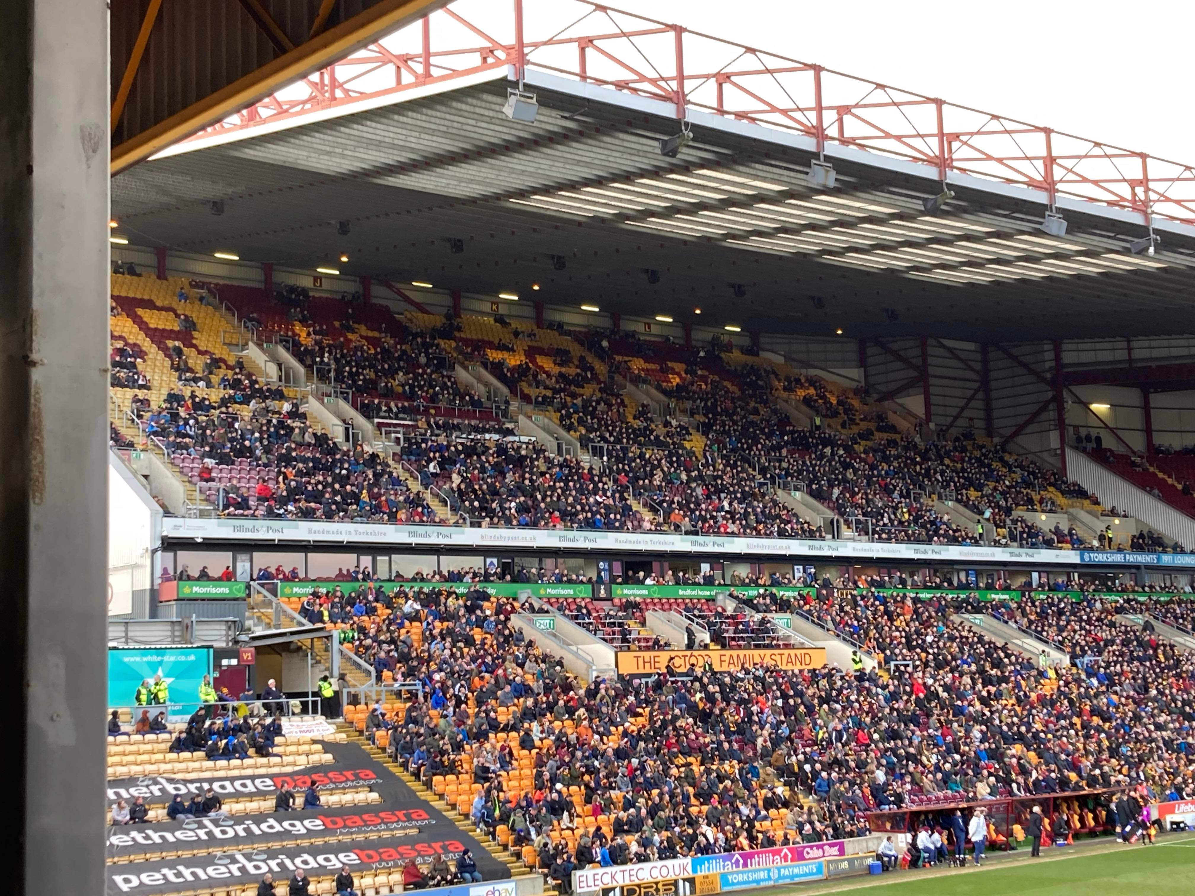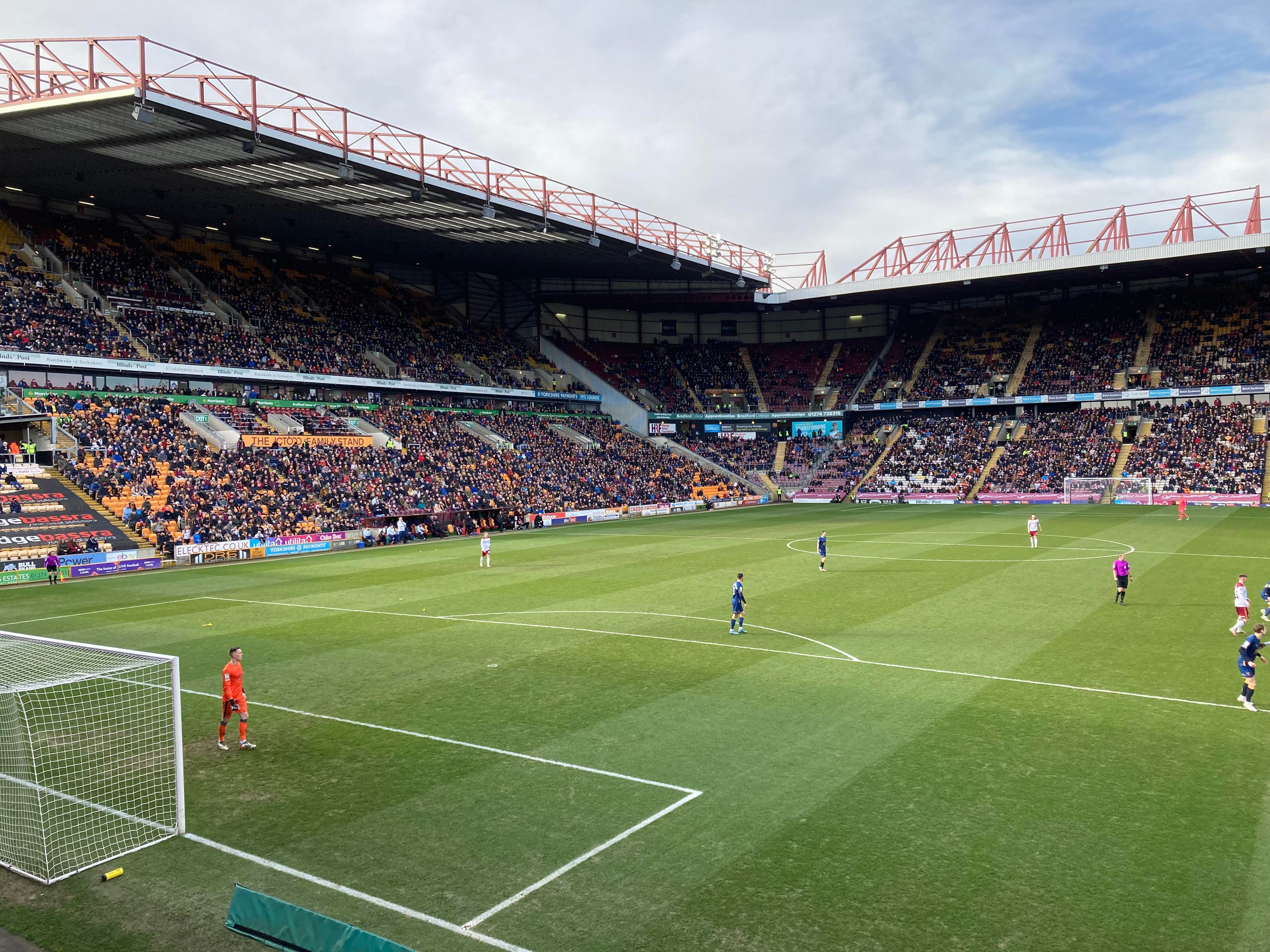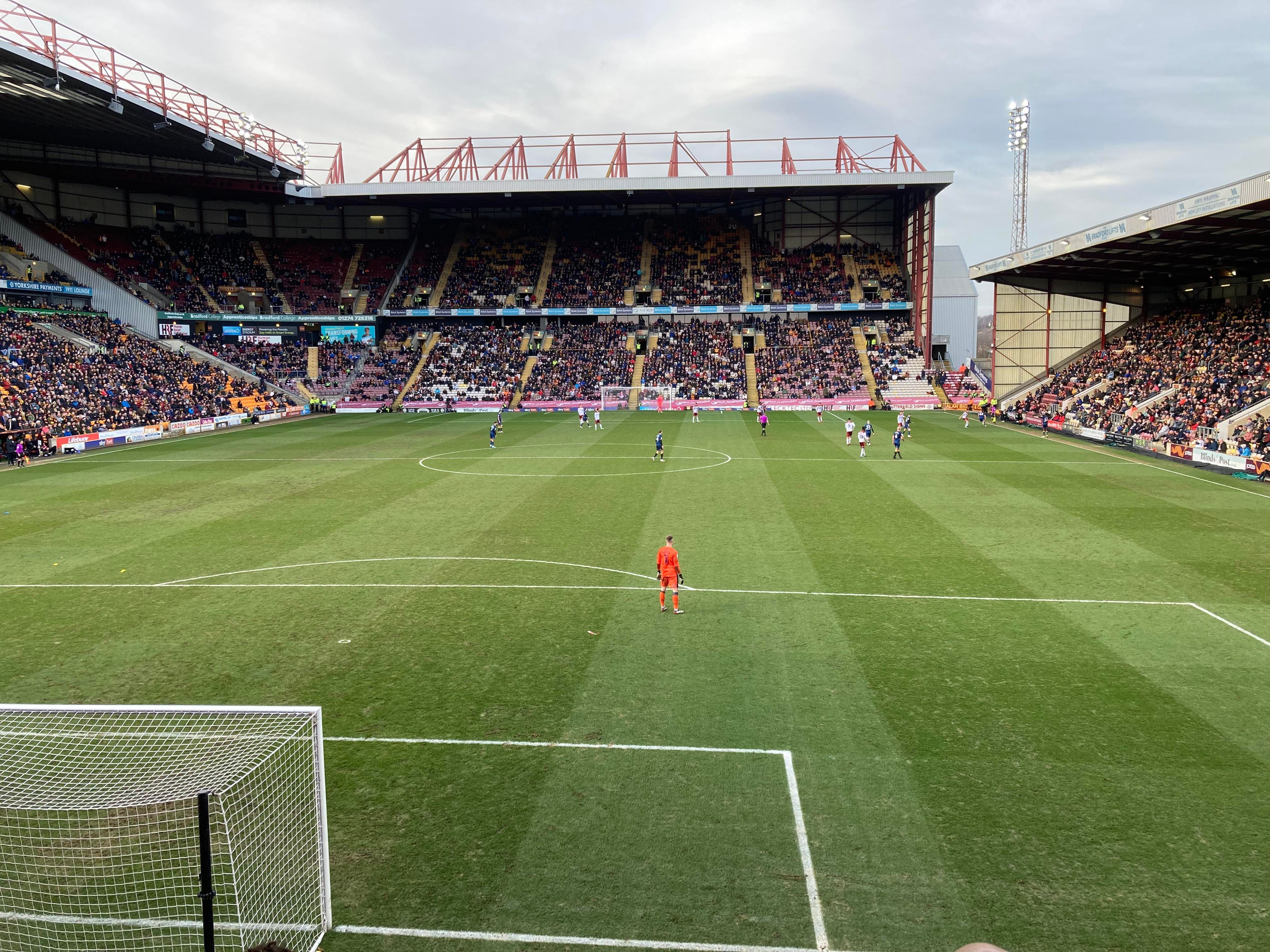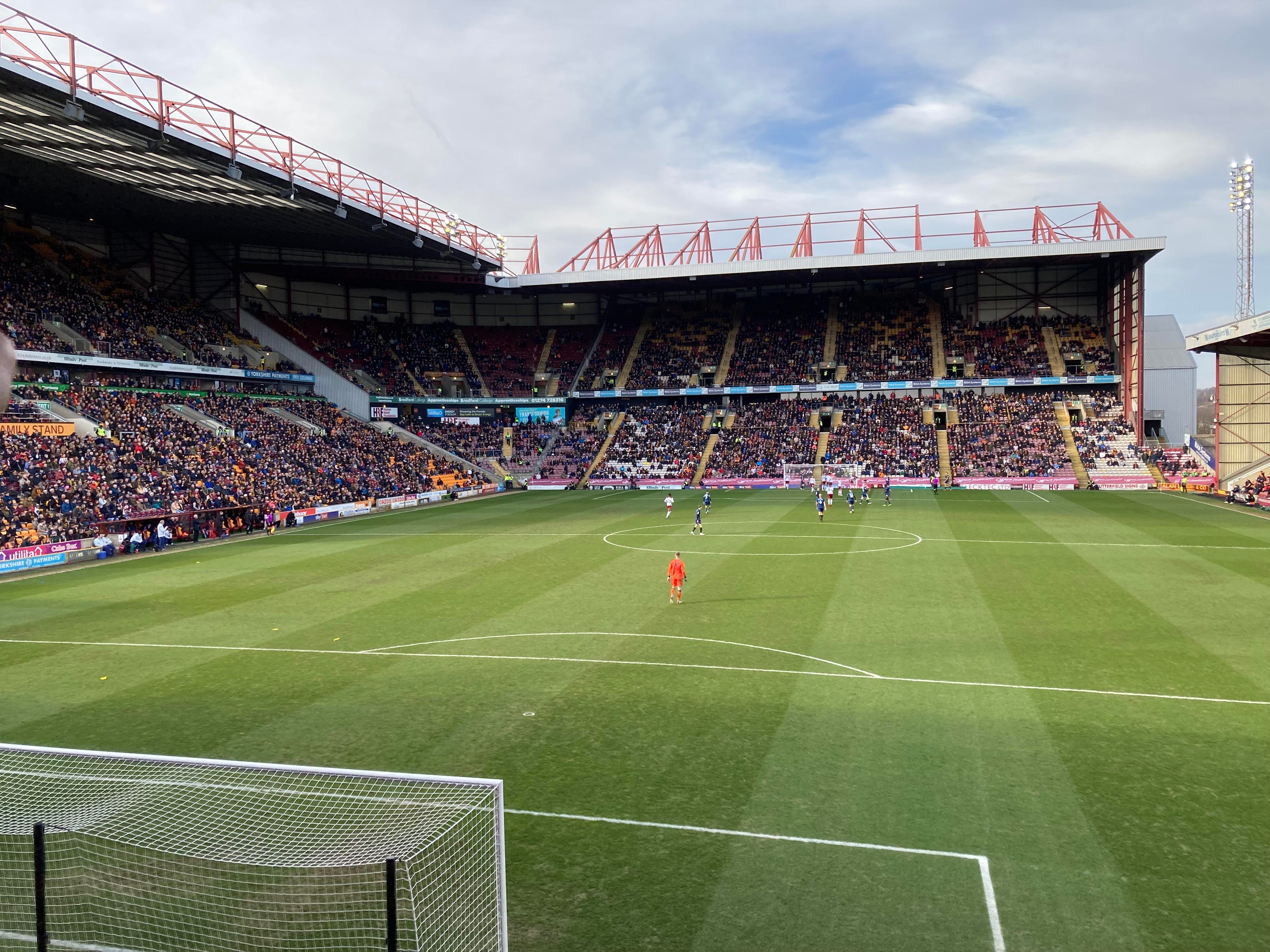 Valley Parade, home of Bradford City based in West Yorkshire and play their trade in League 2. Nicknamed the “Bantams” as they have a Bantam which features on the club badge. A former Premier League club for 2 seasons just over 20 years ago but today the club finds itself in the 4th tier of English Football. Will the club ever reach the heights it once reached? 9 years ago the club defied the odds and went all the way to the League Cup final and what a journey it was but sadly lost in the final to Swansea City… It sure is a big club for this level!