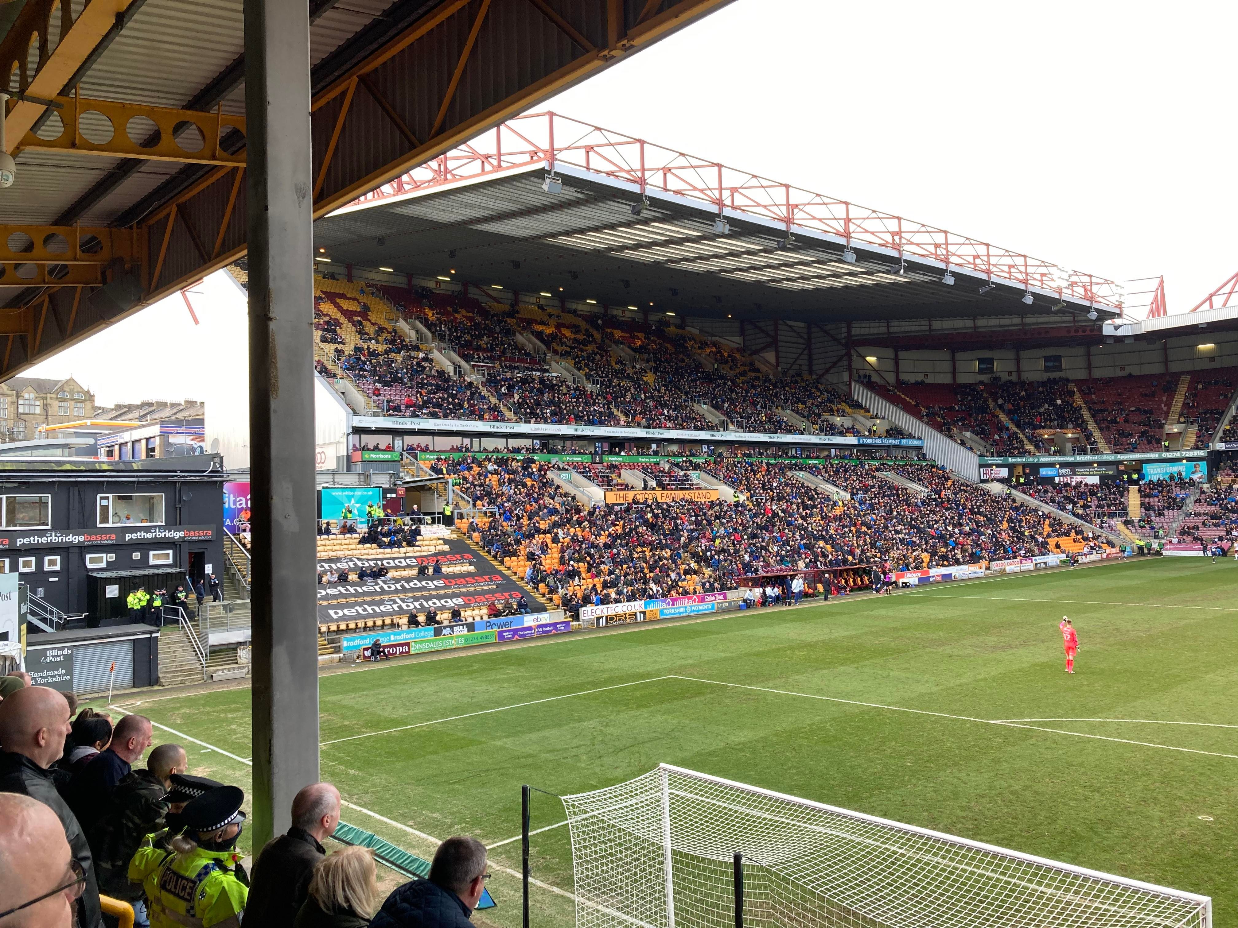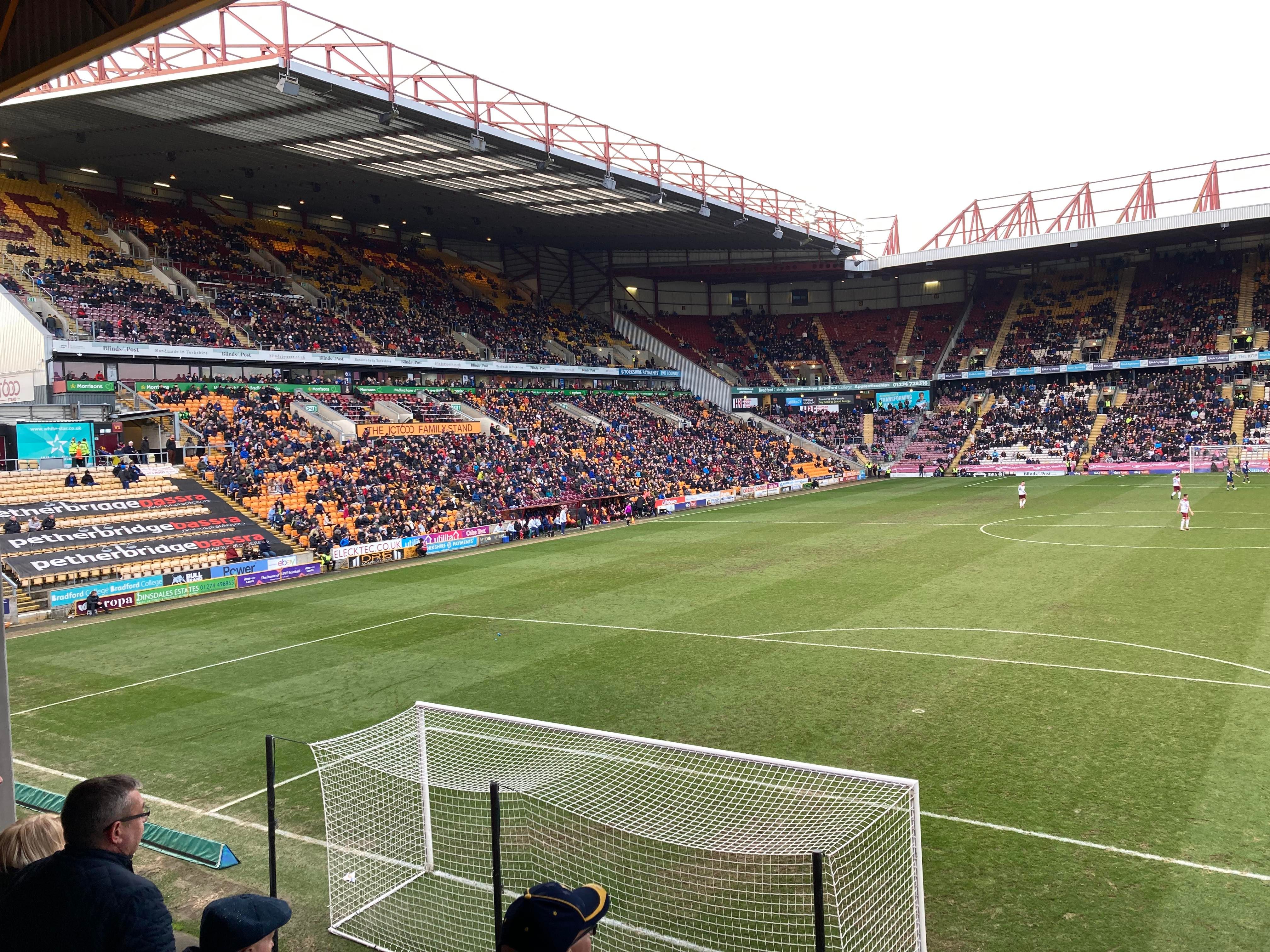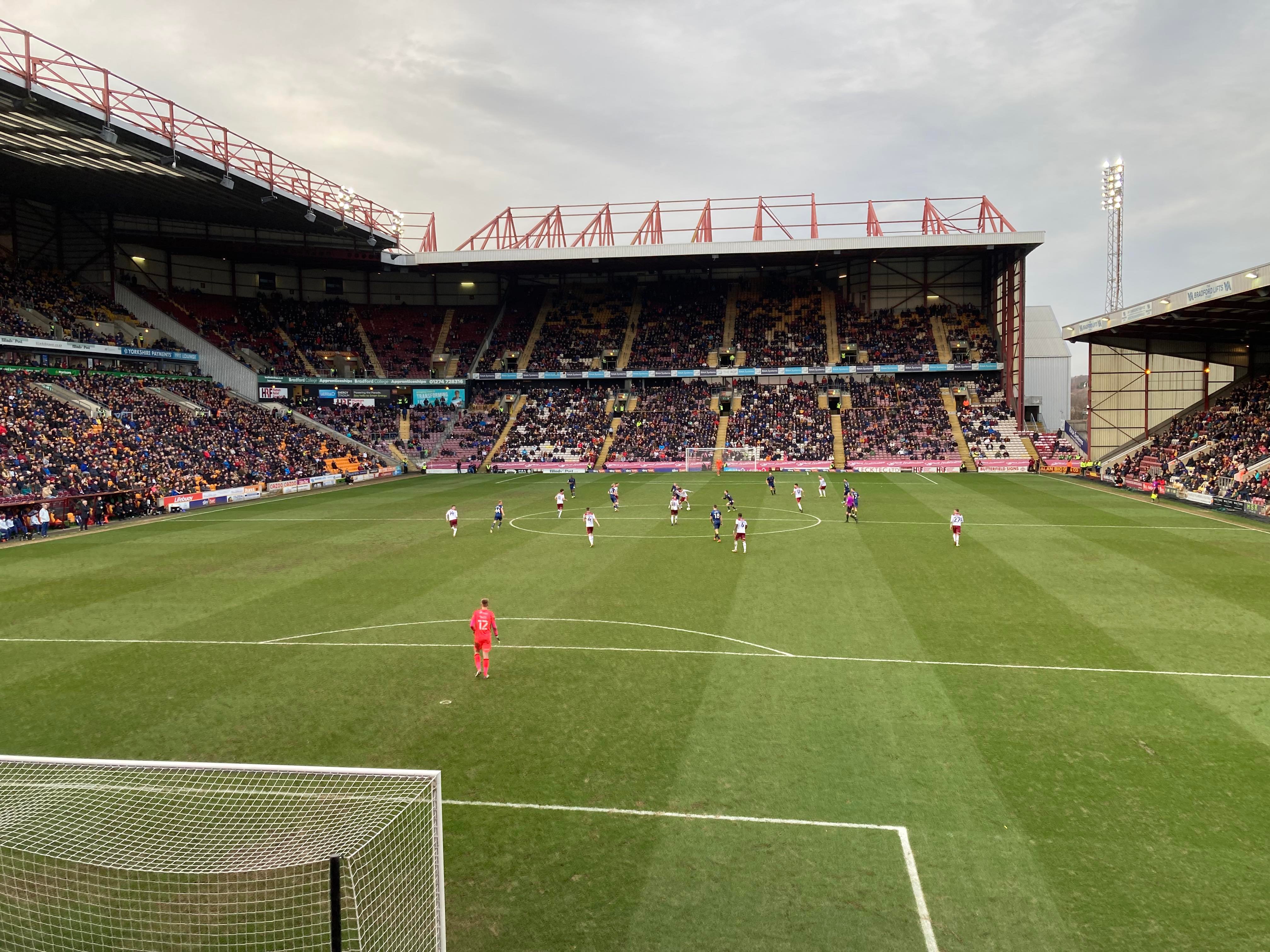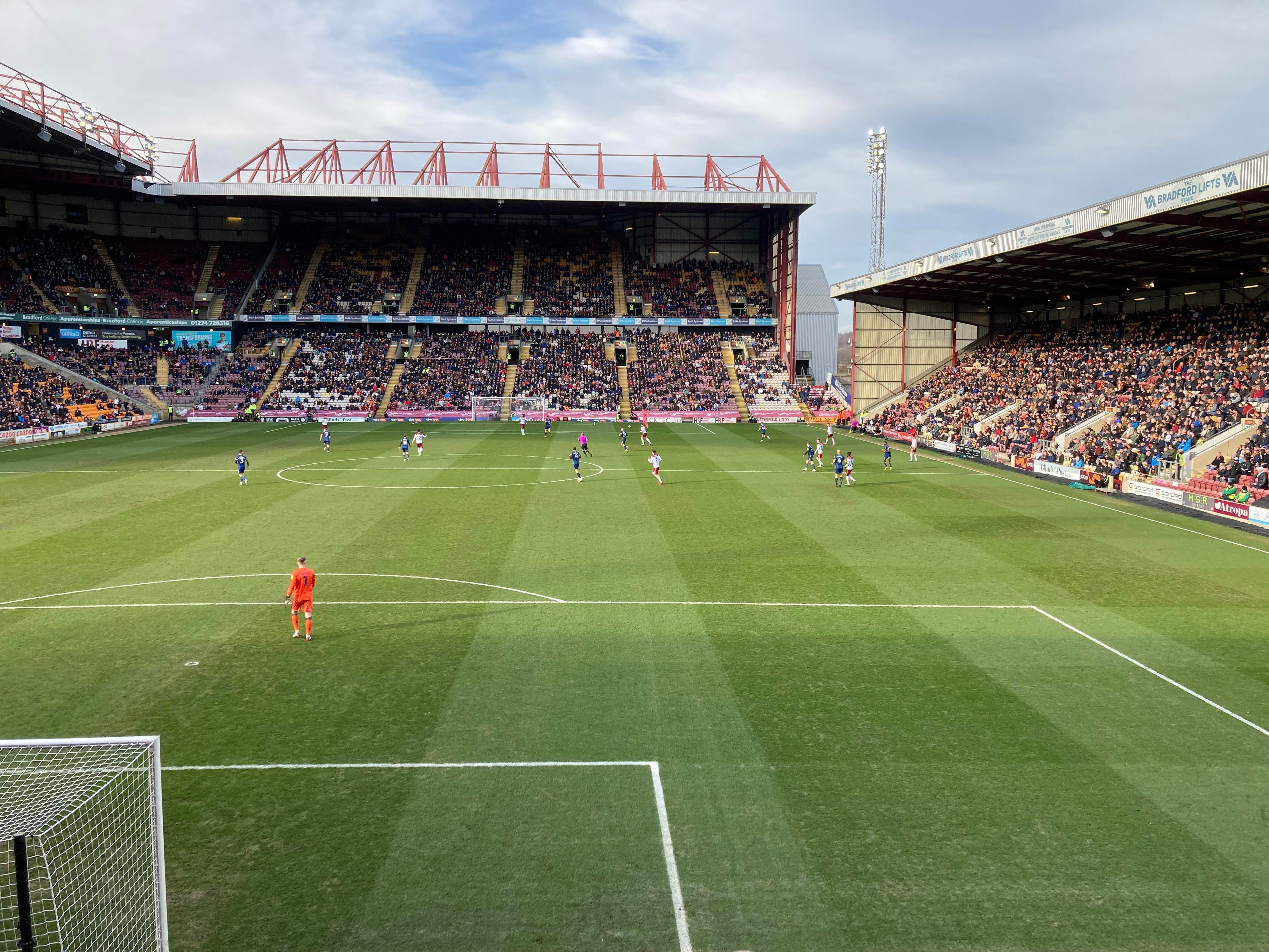 Valley Parade, home of Bradford City based in West Yorkshire and play their trade in League 2. Nicknamed the “Bantams” as they have a Bantam which features on the club badge. A former Premier League club for 2 seasons just over 20 years ago but today the club finds itself in the 4th tier of English Football. Will the club ever reach the heights it once reached? 9 years ago the club defied the odds and went all the way to the League Cup final and what a journey it was but sadly lost in the final to Swansea City… It sure is a big club for this level!