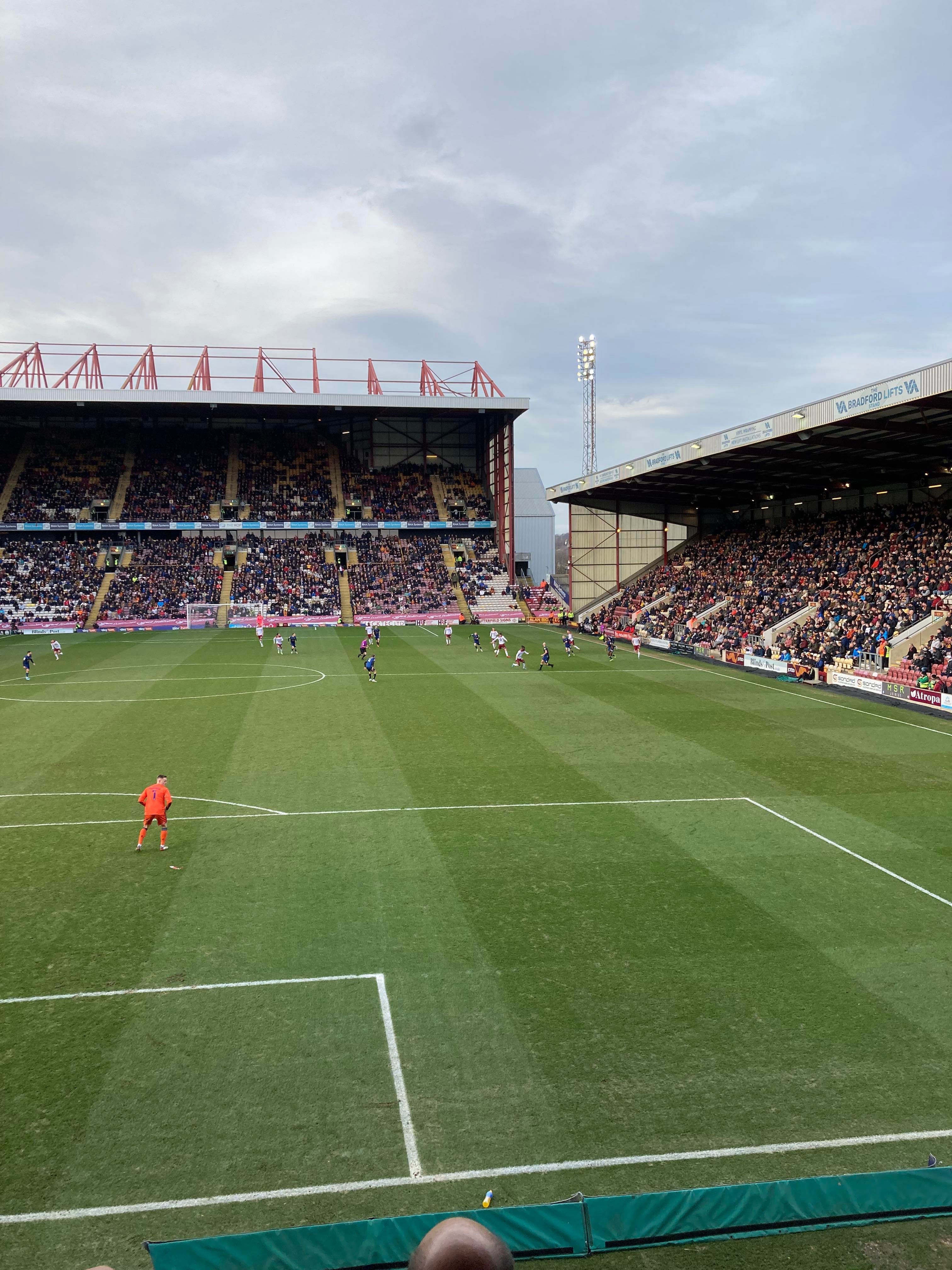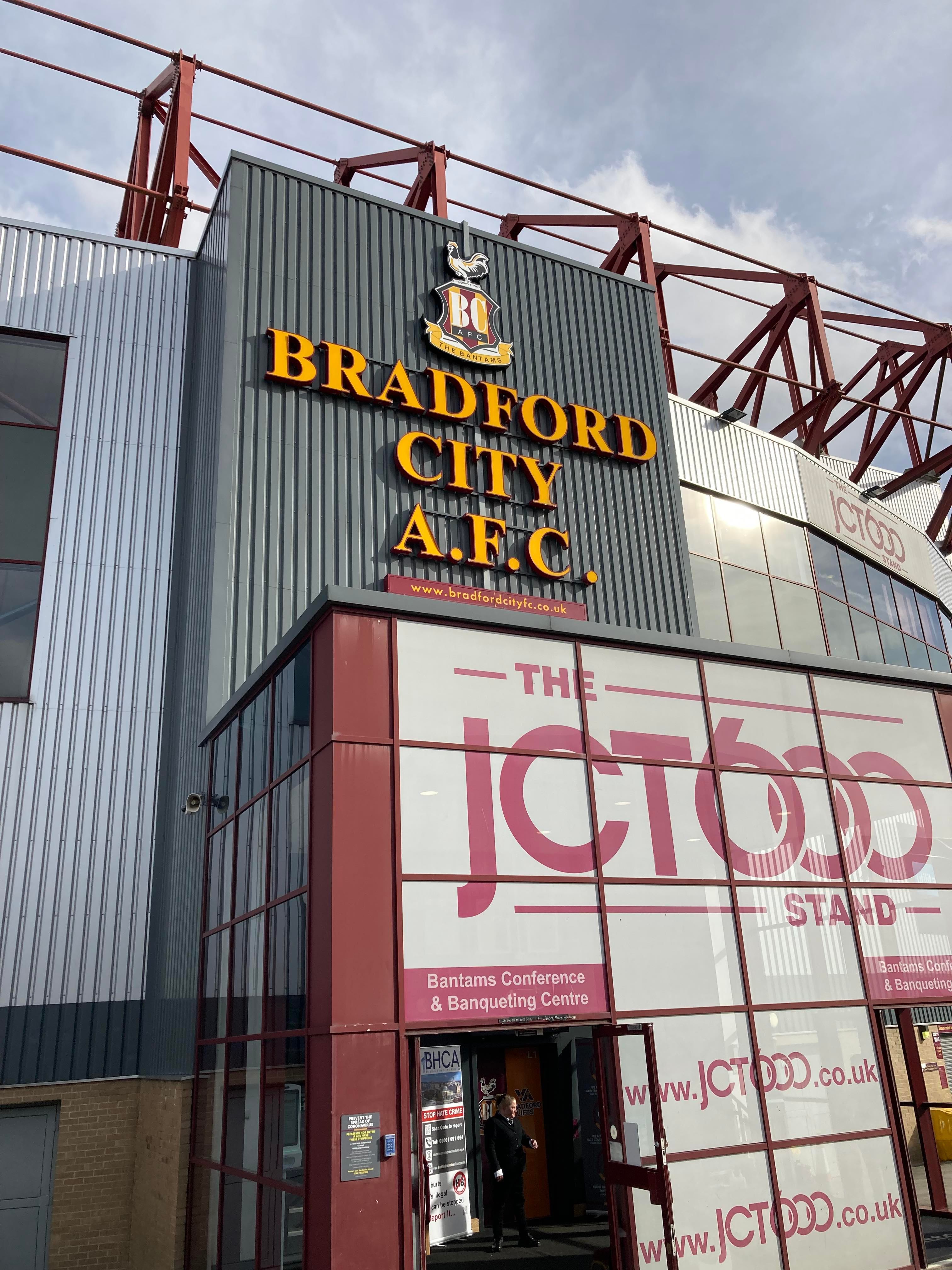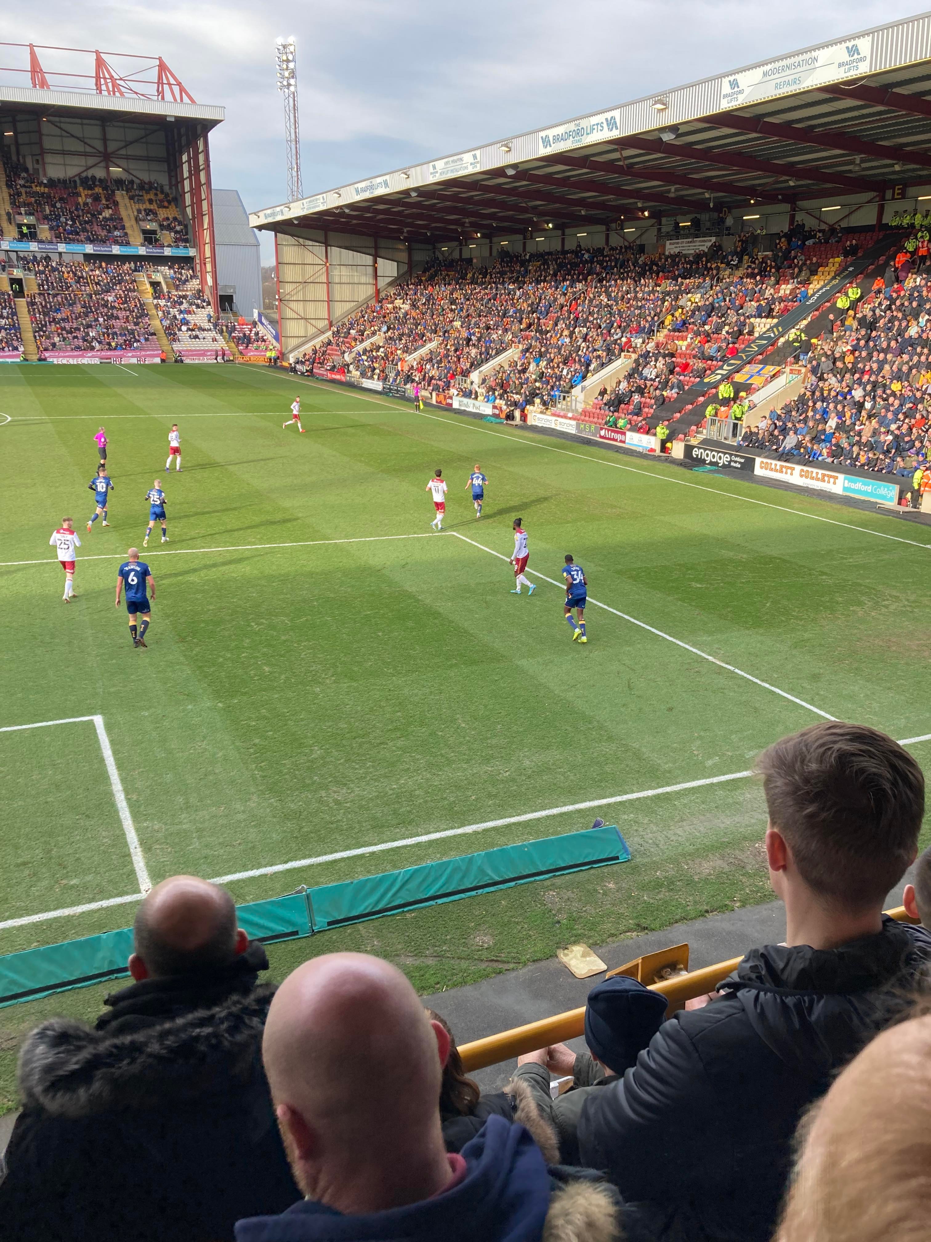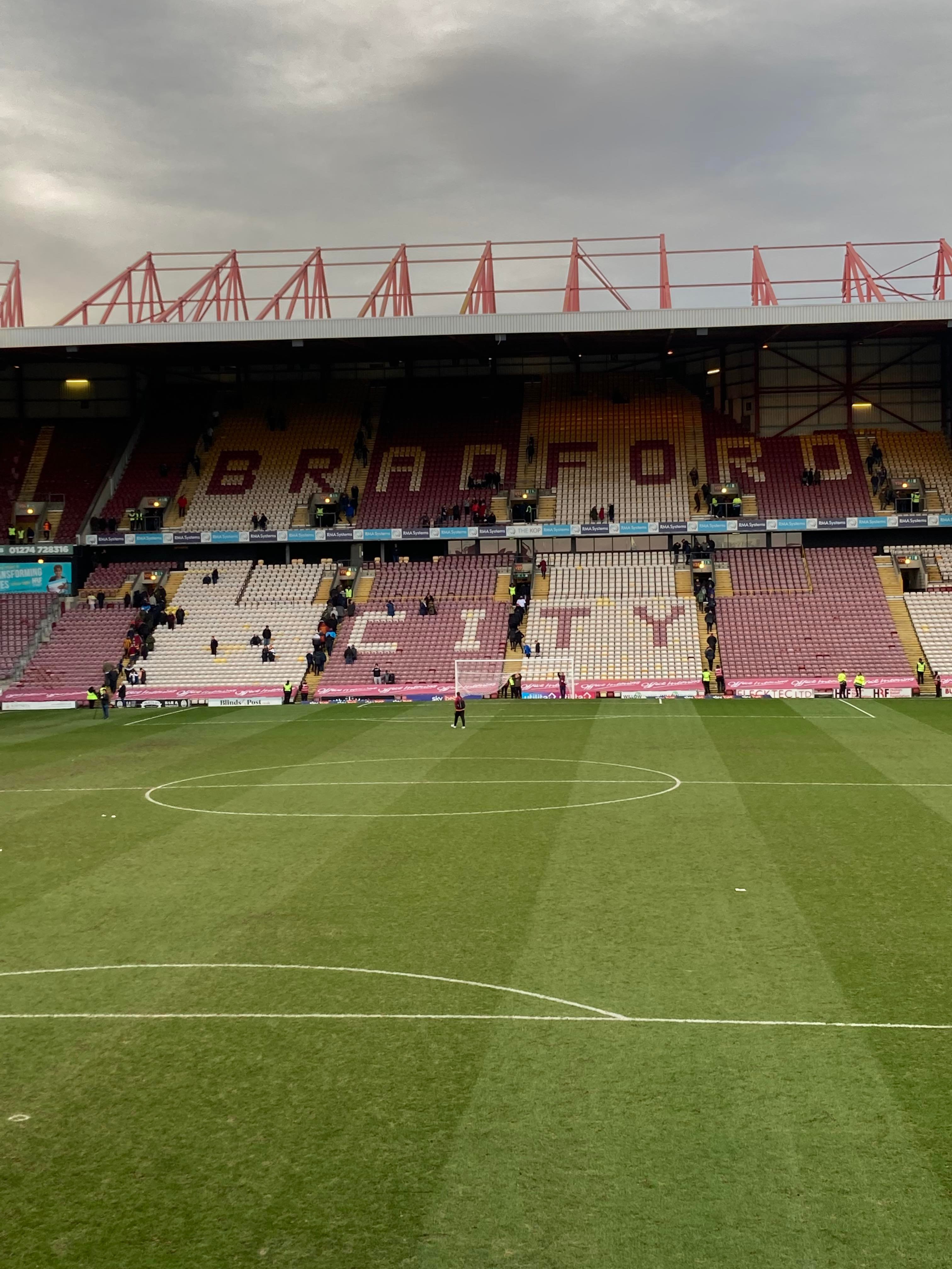Would you believe it… And that is why owning a car is best! Typical to be back on trains and have a cancellation… We’re going to have to go with Plan B! Off to Bradford Forster Square instead. 12:12pm and we are en route! 25 minutes later and here we are! Now we walk to the ground!