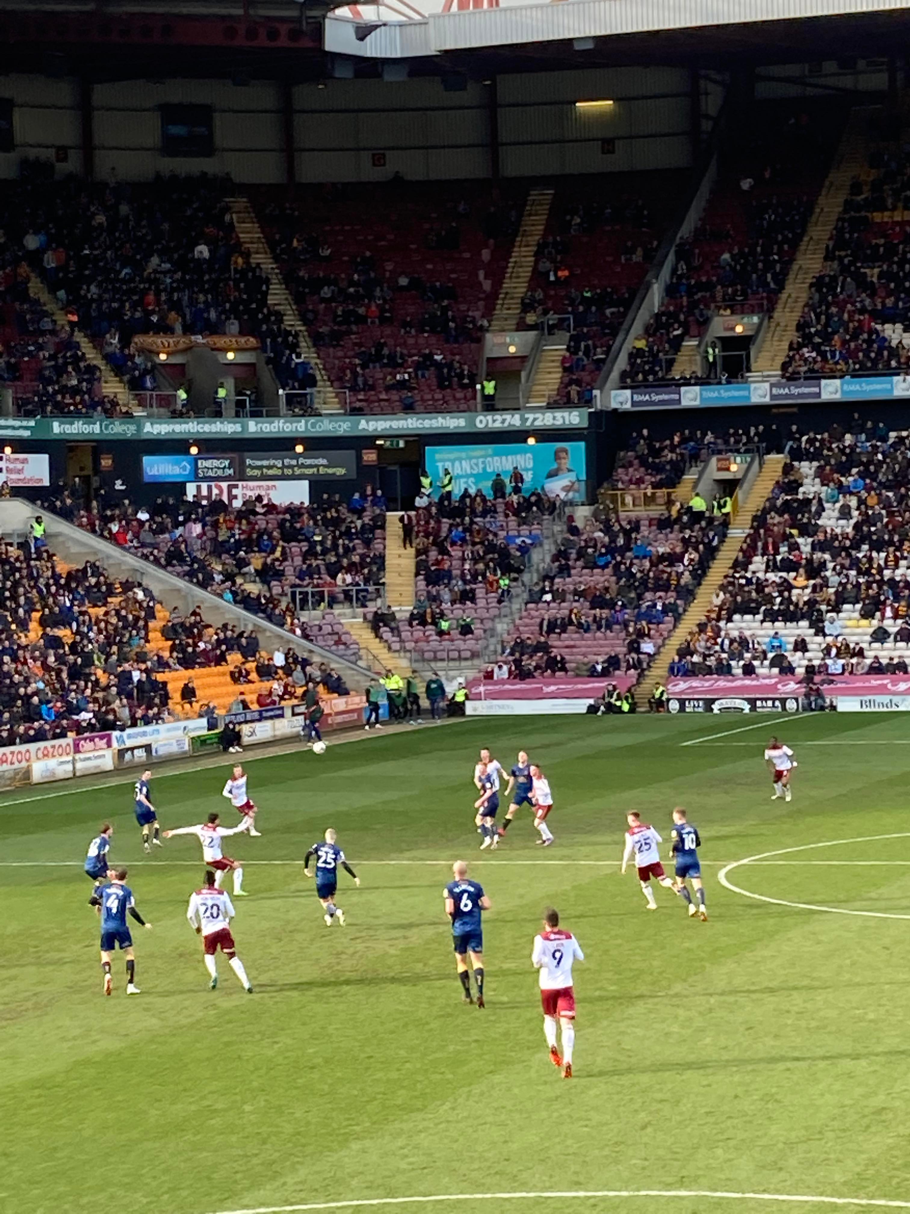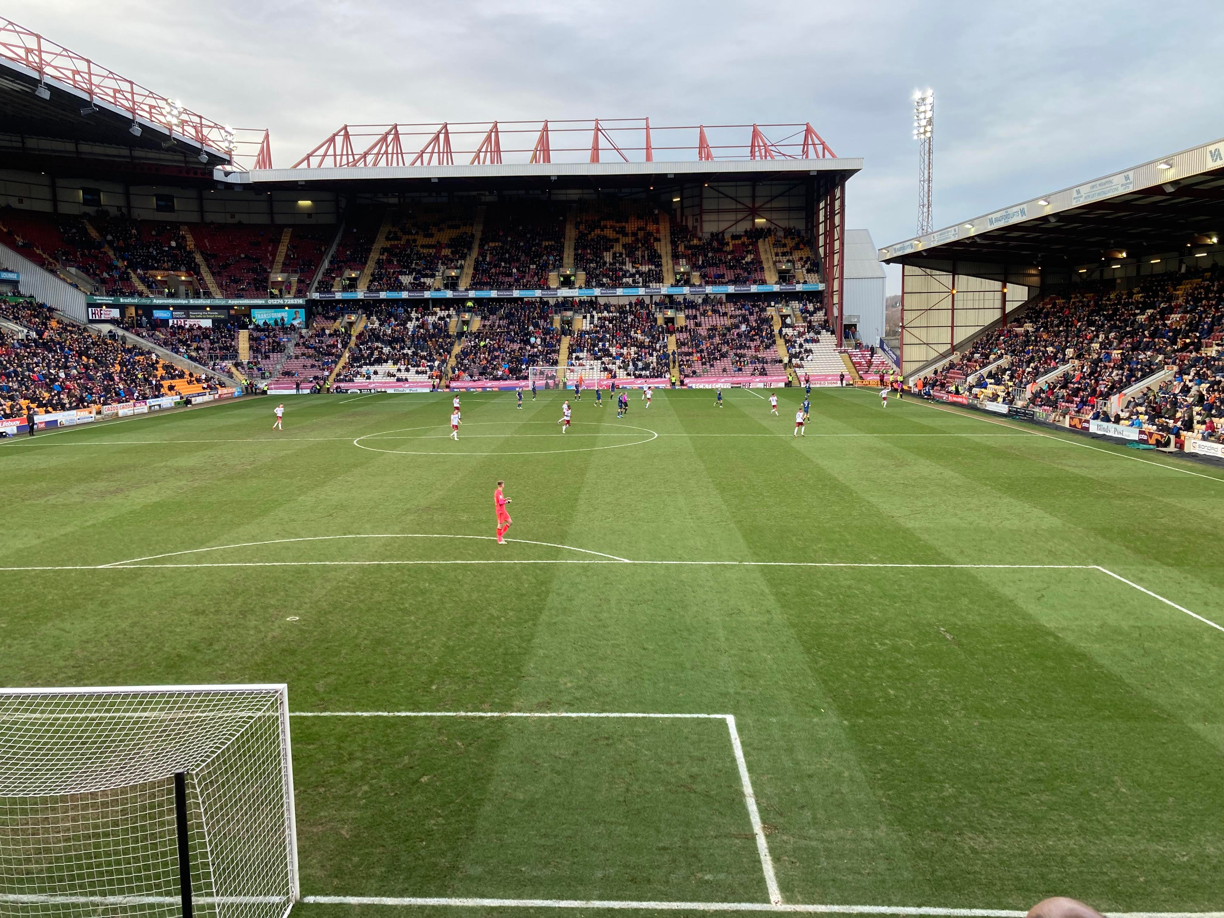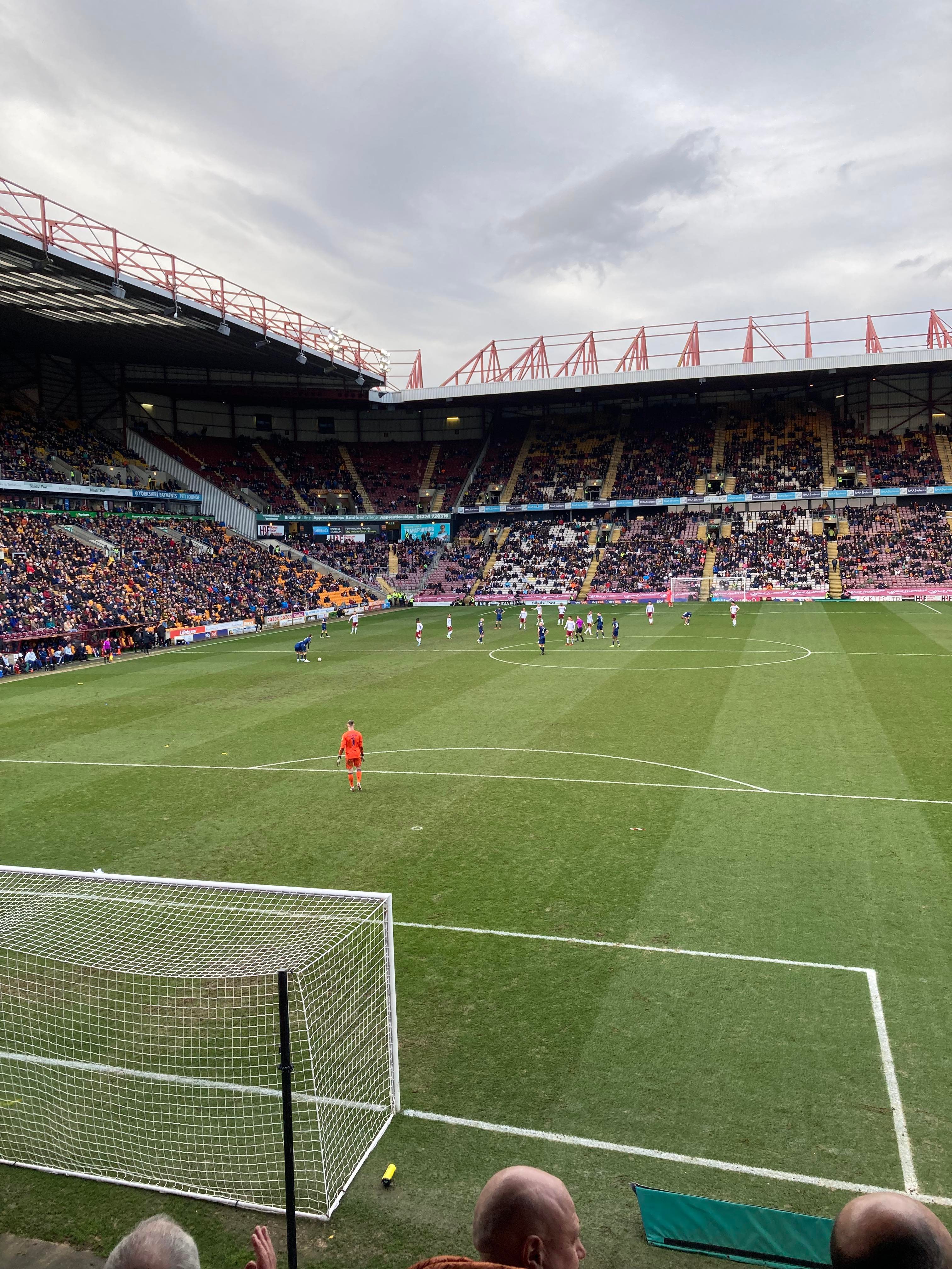 Would you believe it… And that is why owning a car is best! Typical to be back on trains and have a cancellation… We’re going to have to go with Plan B! Off to Bradford Forster Square instead. 12:12pm and we are en route! 25 minutes later and here we are! Now we walk to the ground!