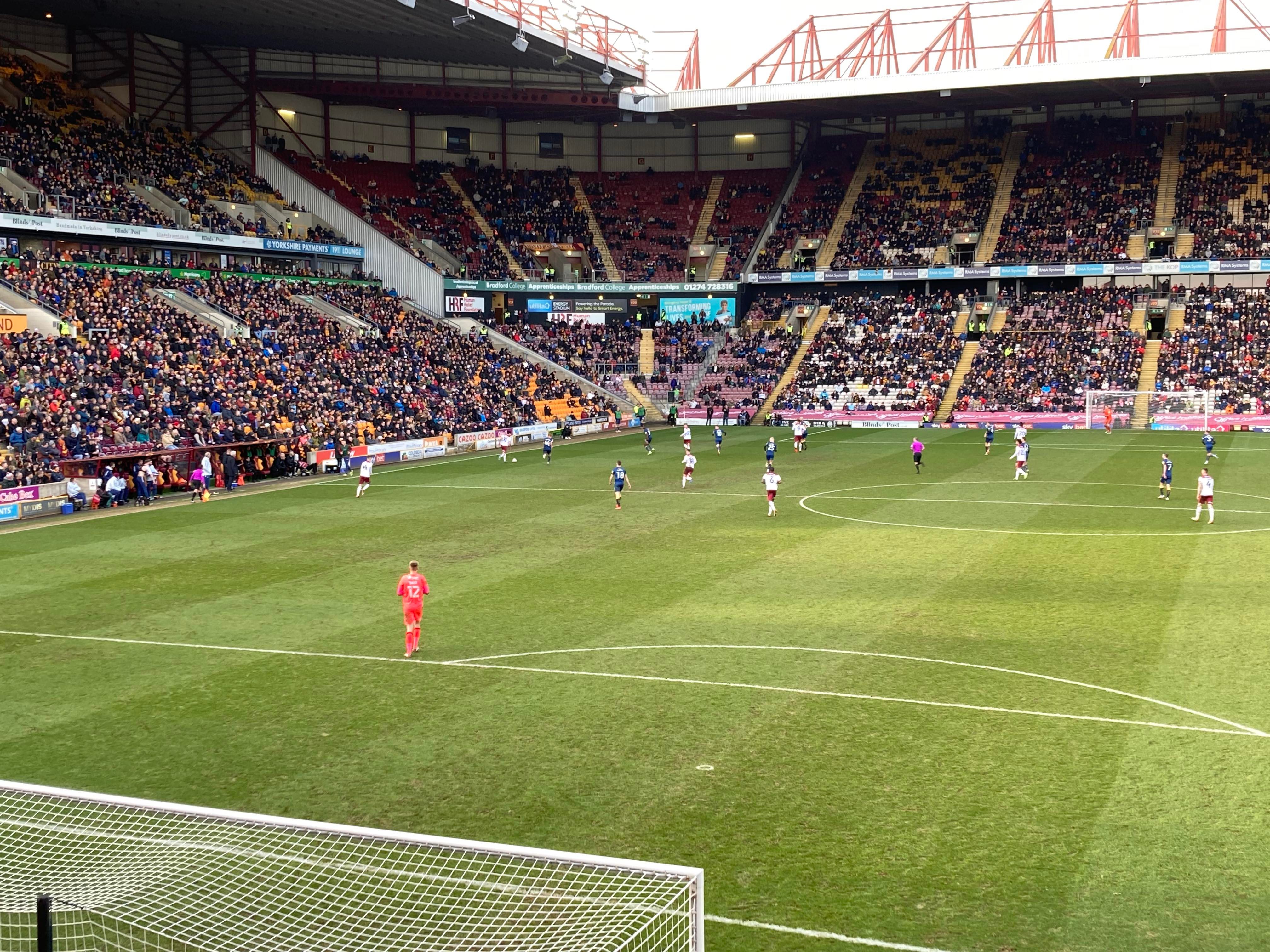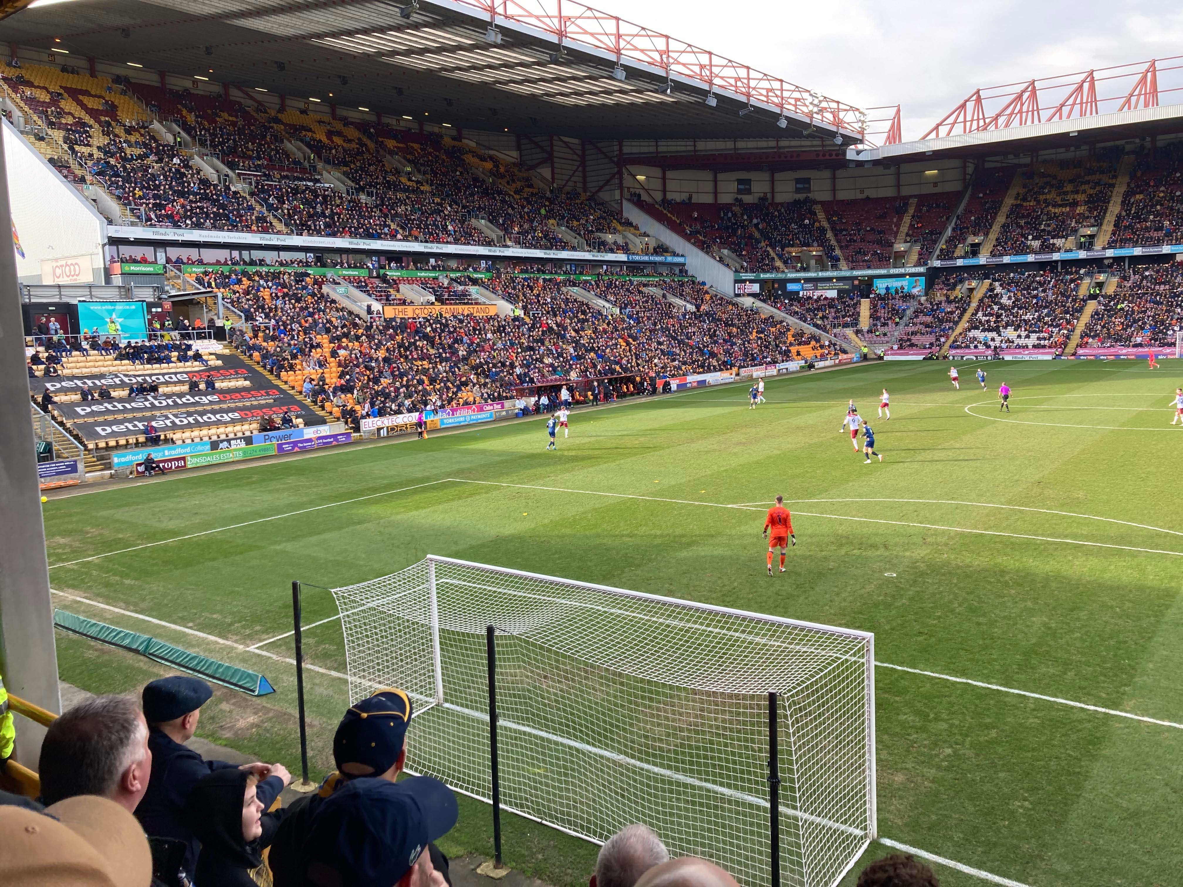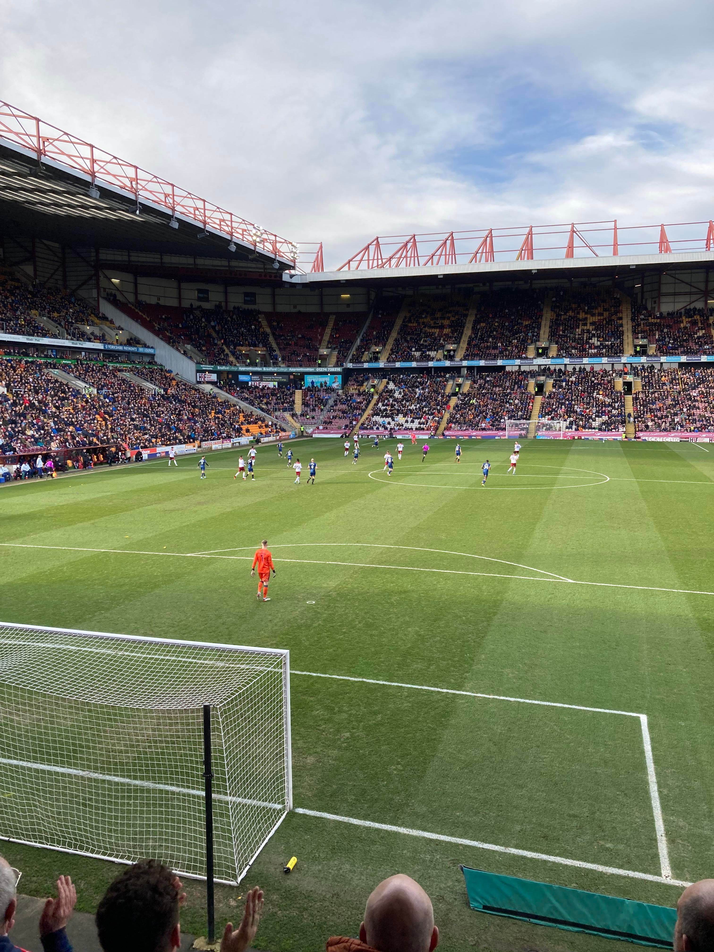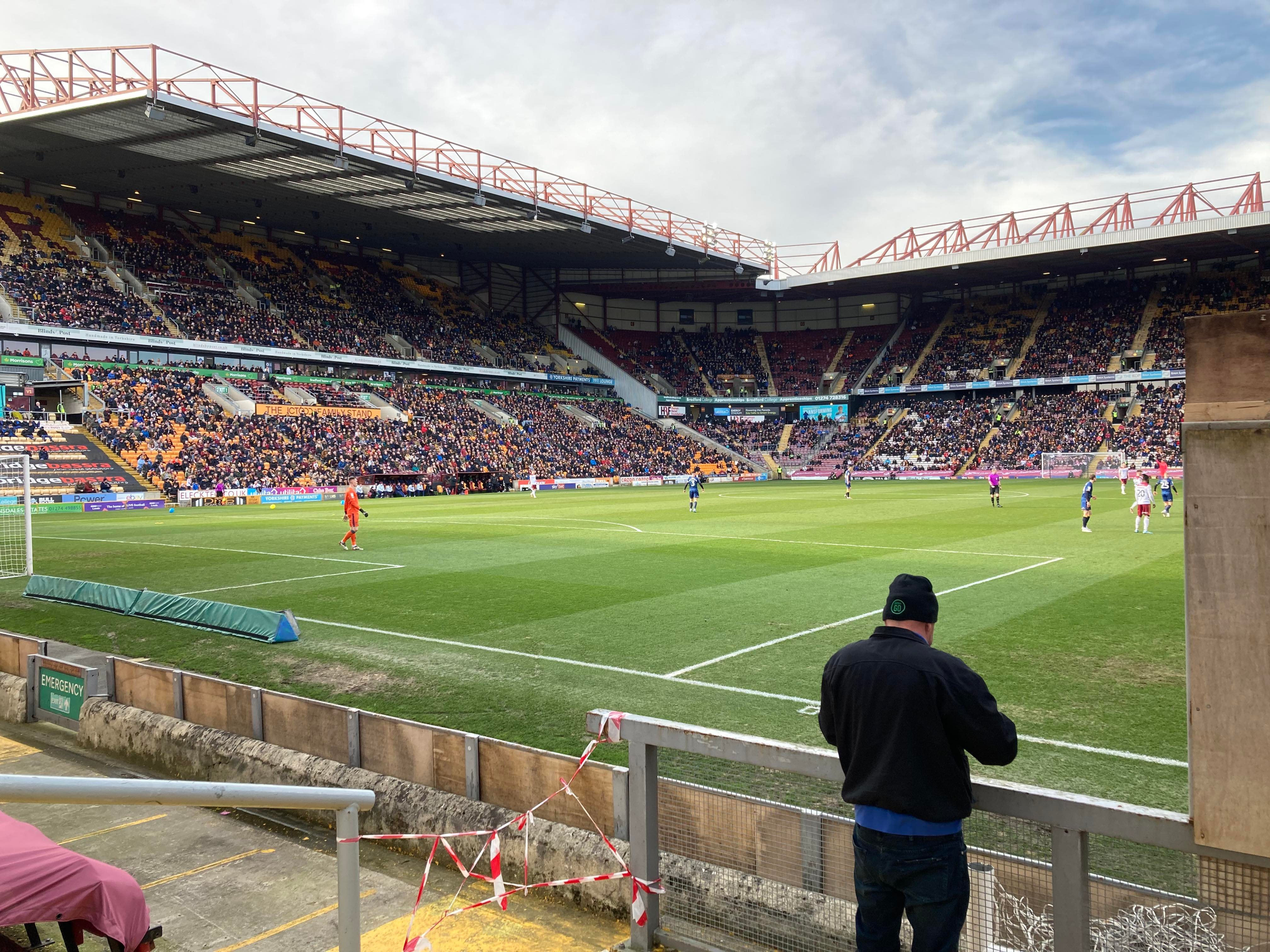Would you believe it… And that is why owning a car is best! Typical to be back on trains and have a cancellation… We’re going to have to go with Plan B! Off to Bradford Forster Square instead. 12:12pm and we are en route! 25 minutes later and here we are! Now we walk to the ground!