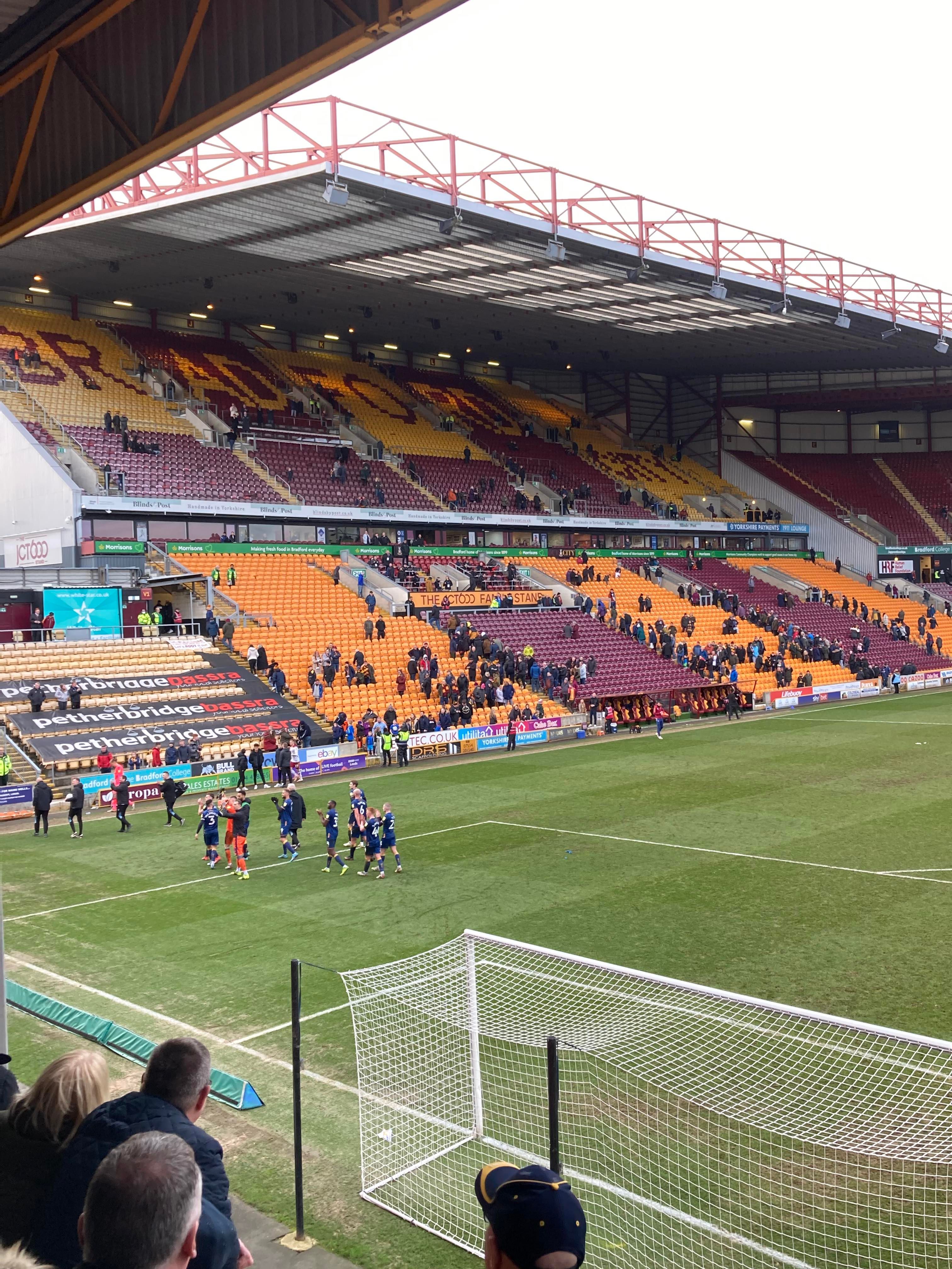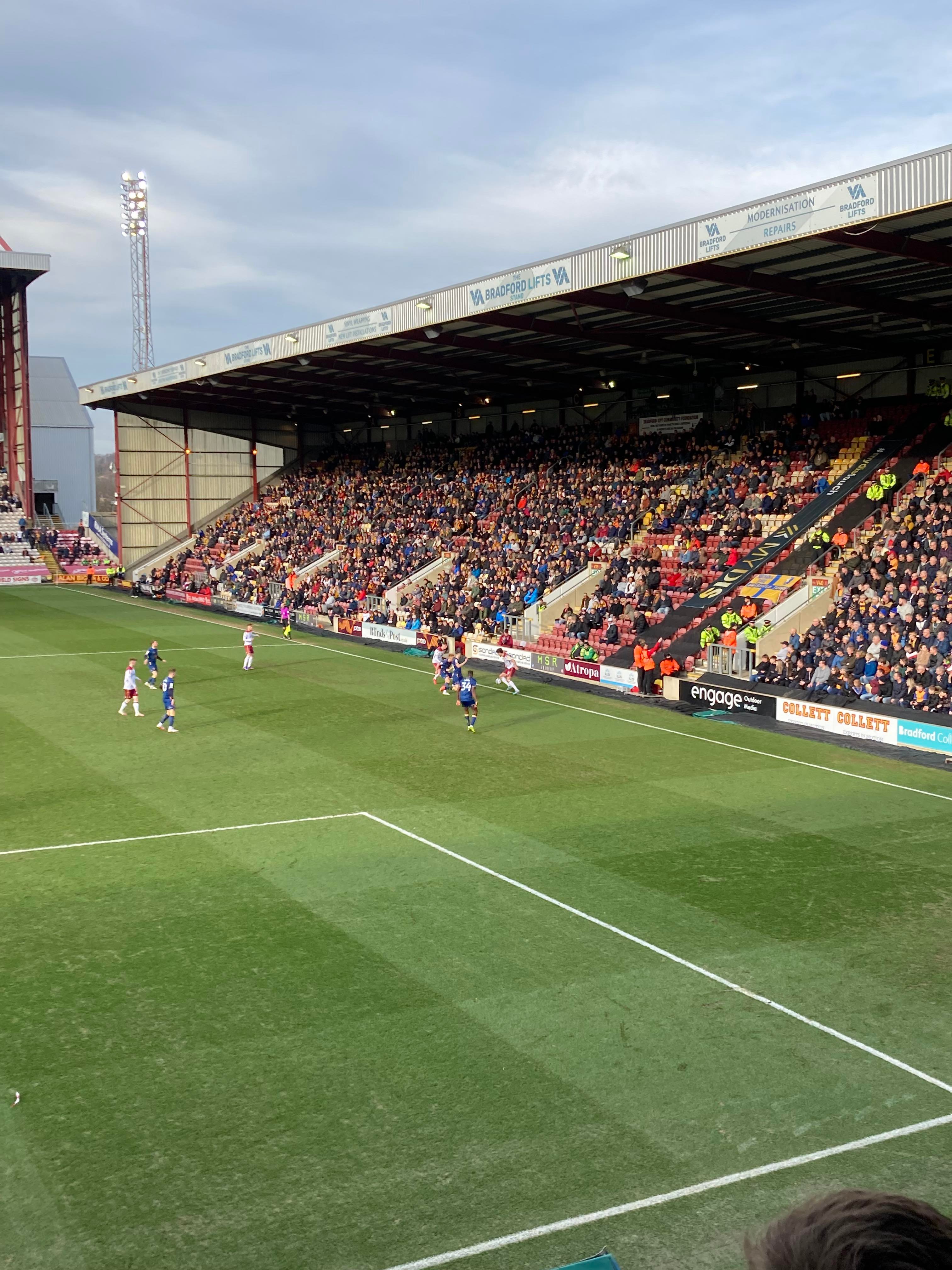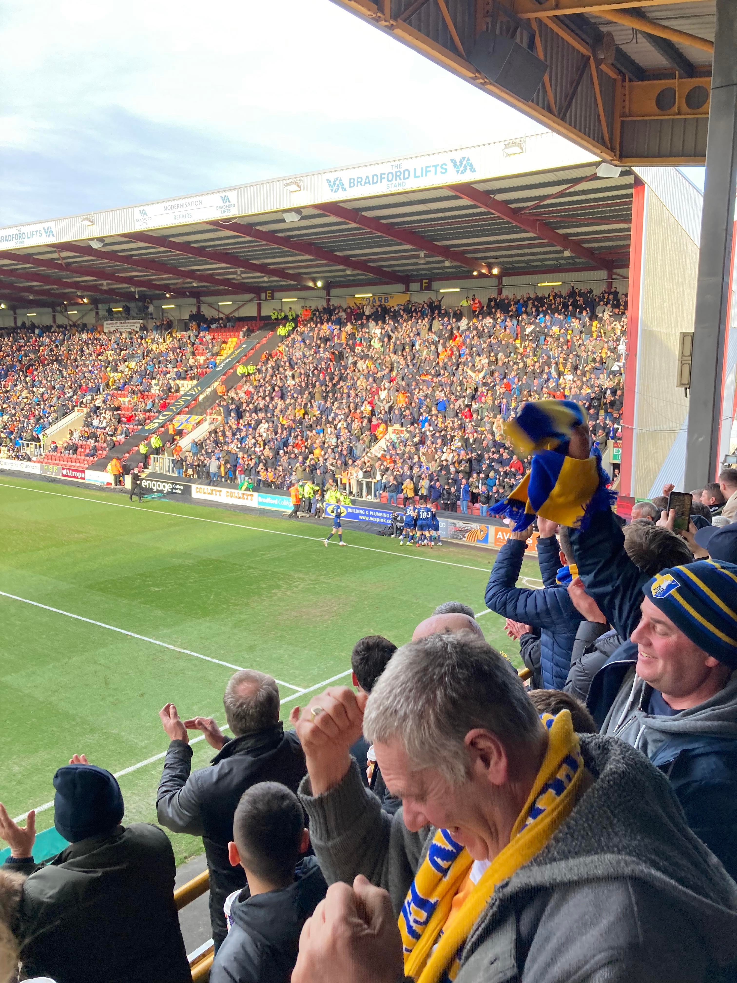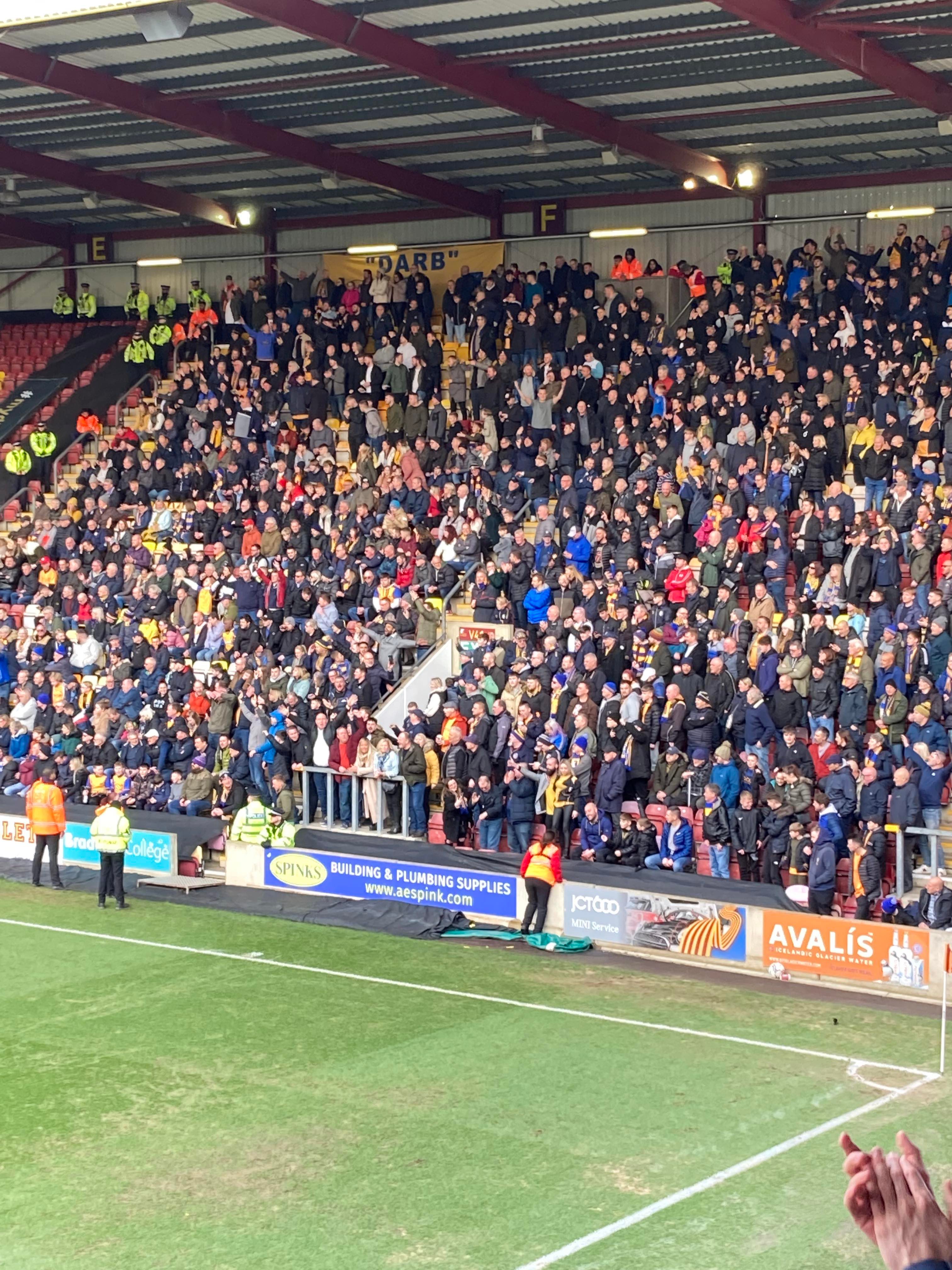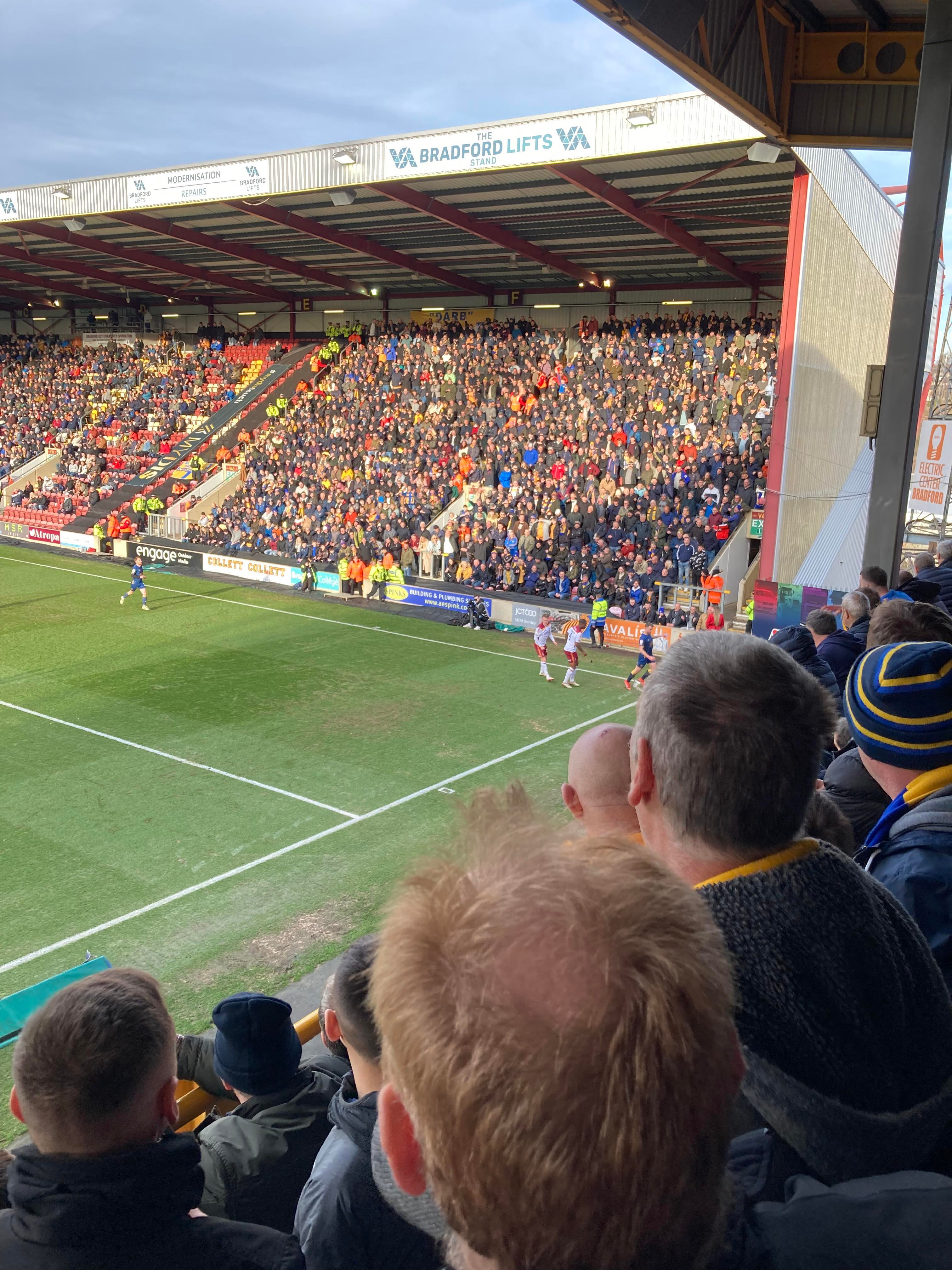 - Atmosphere: 9/10 – Fantastic once again from the Mansfield fans!! Bradford gave it a little go but nothing too much for them to cheer about sadly for them.
