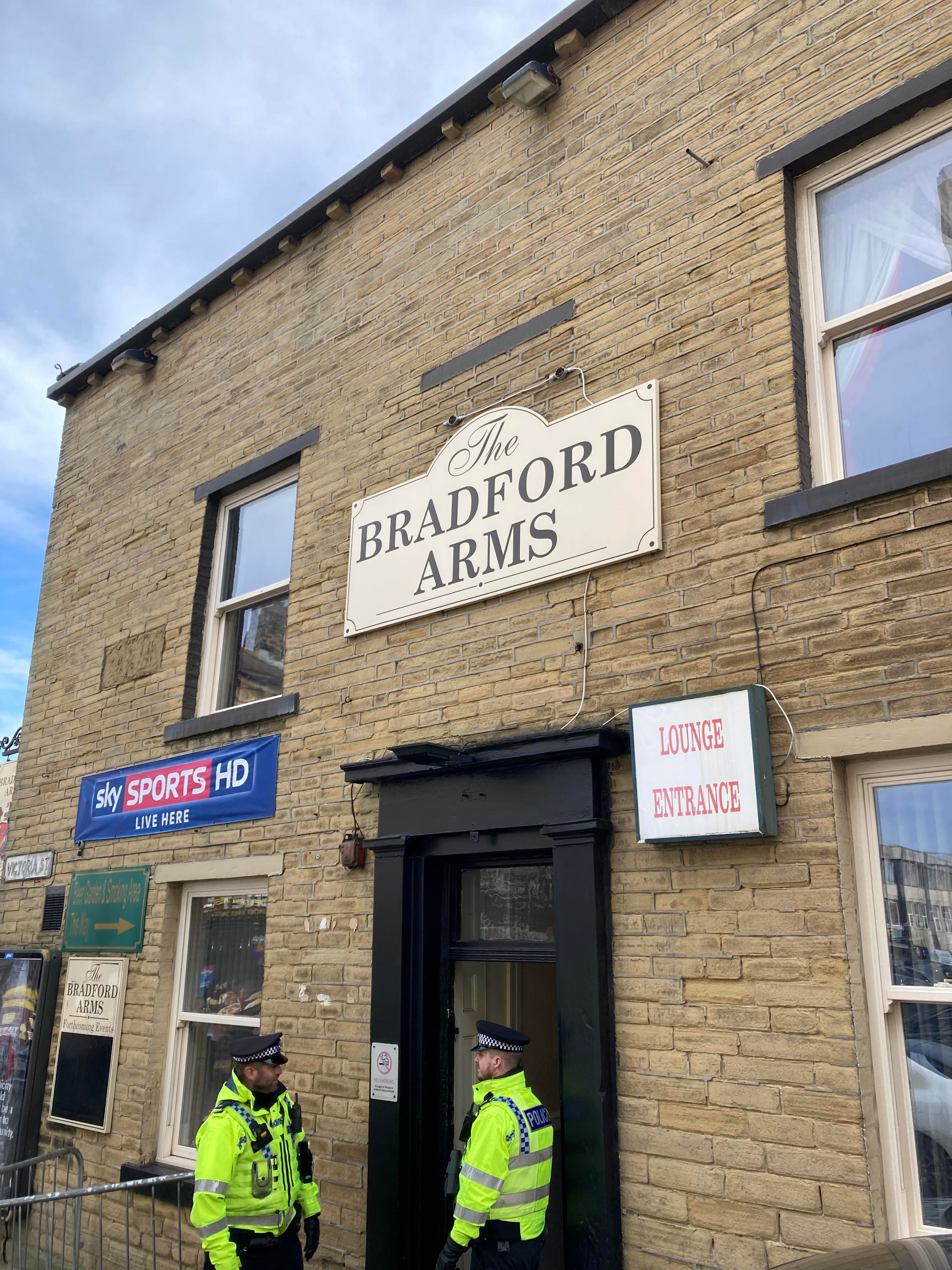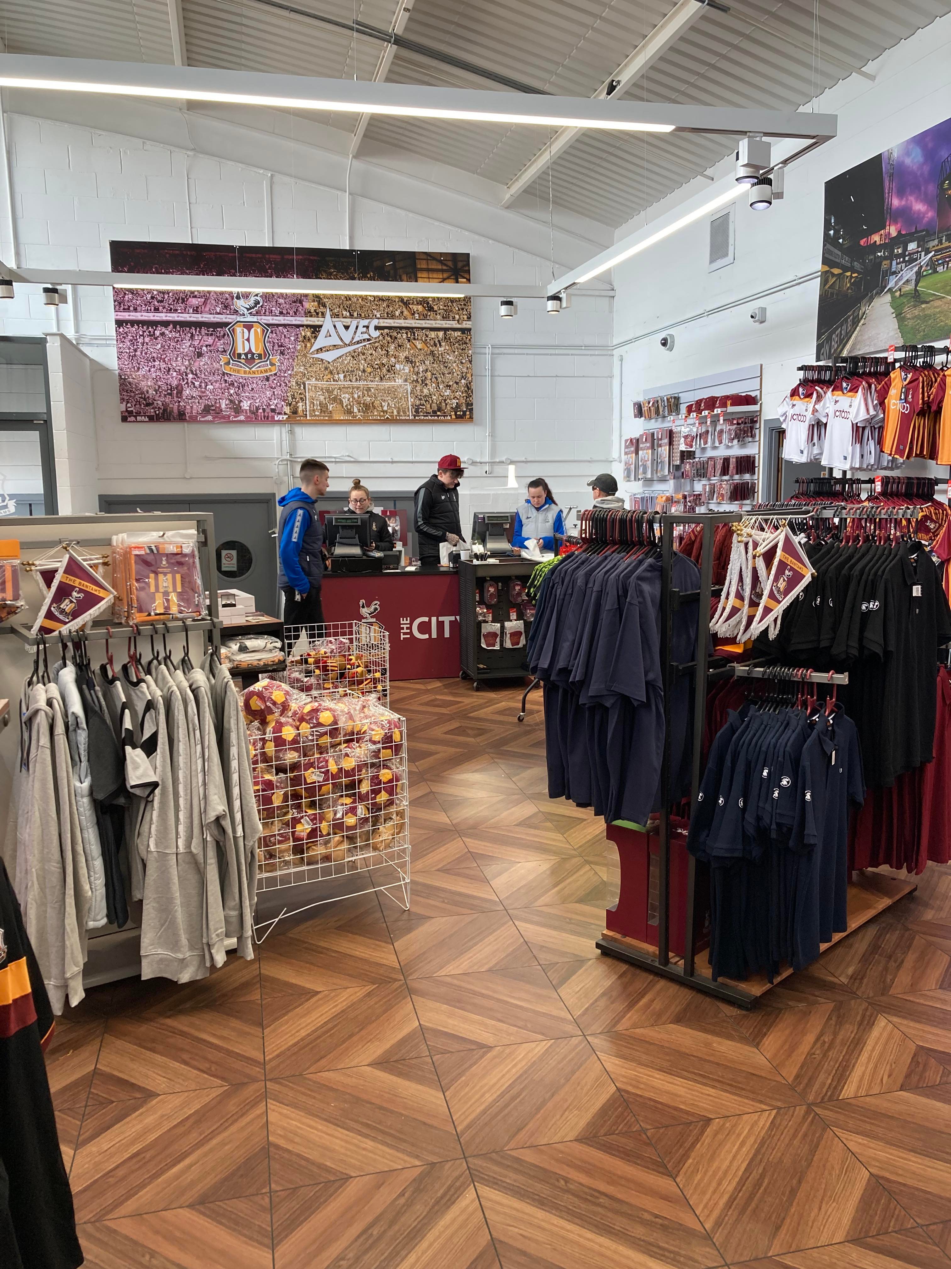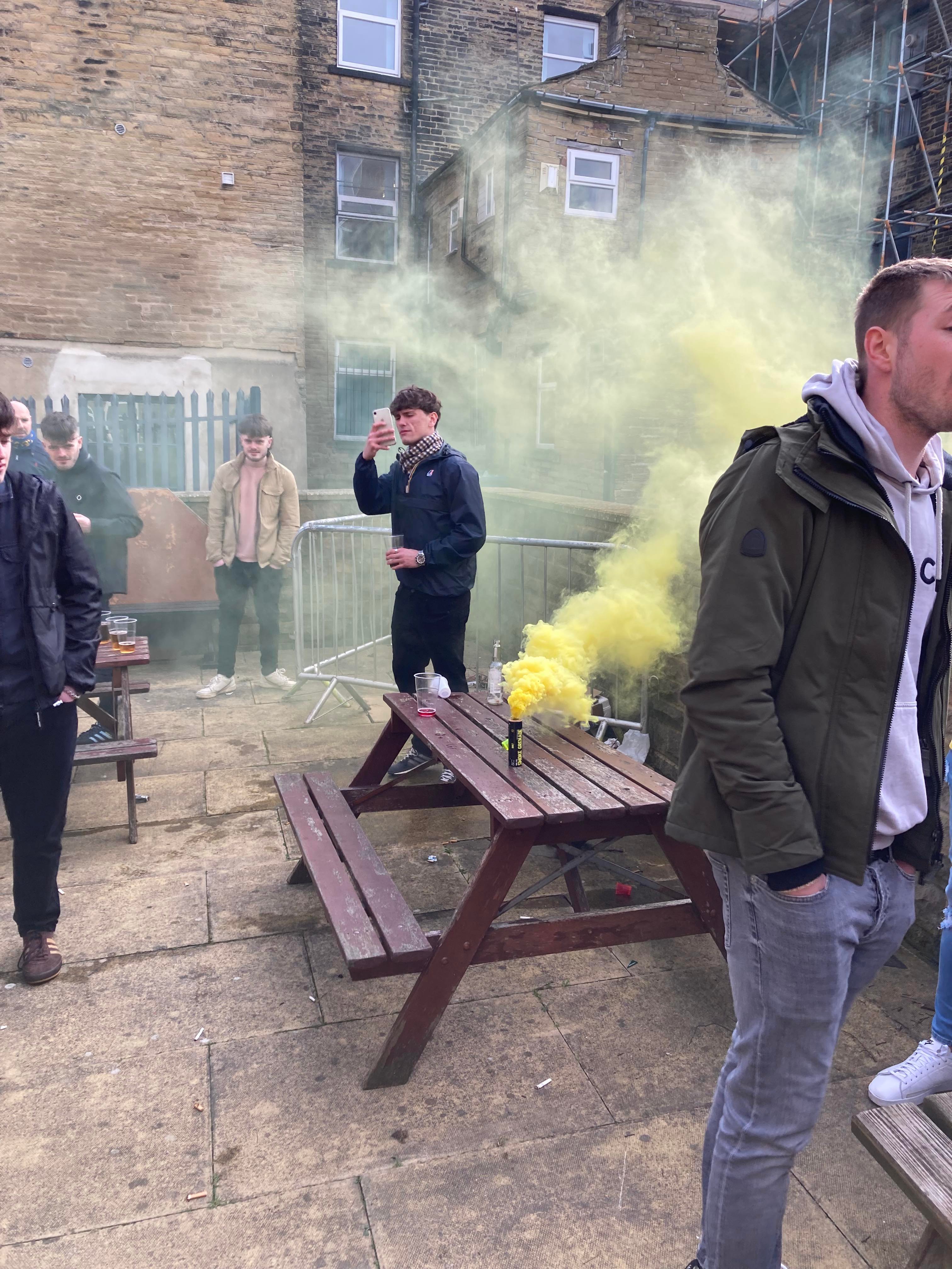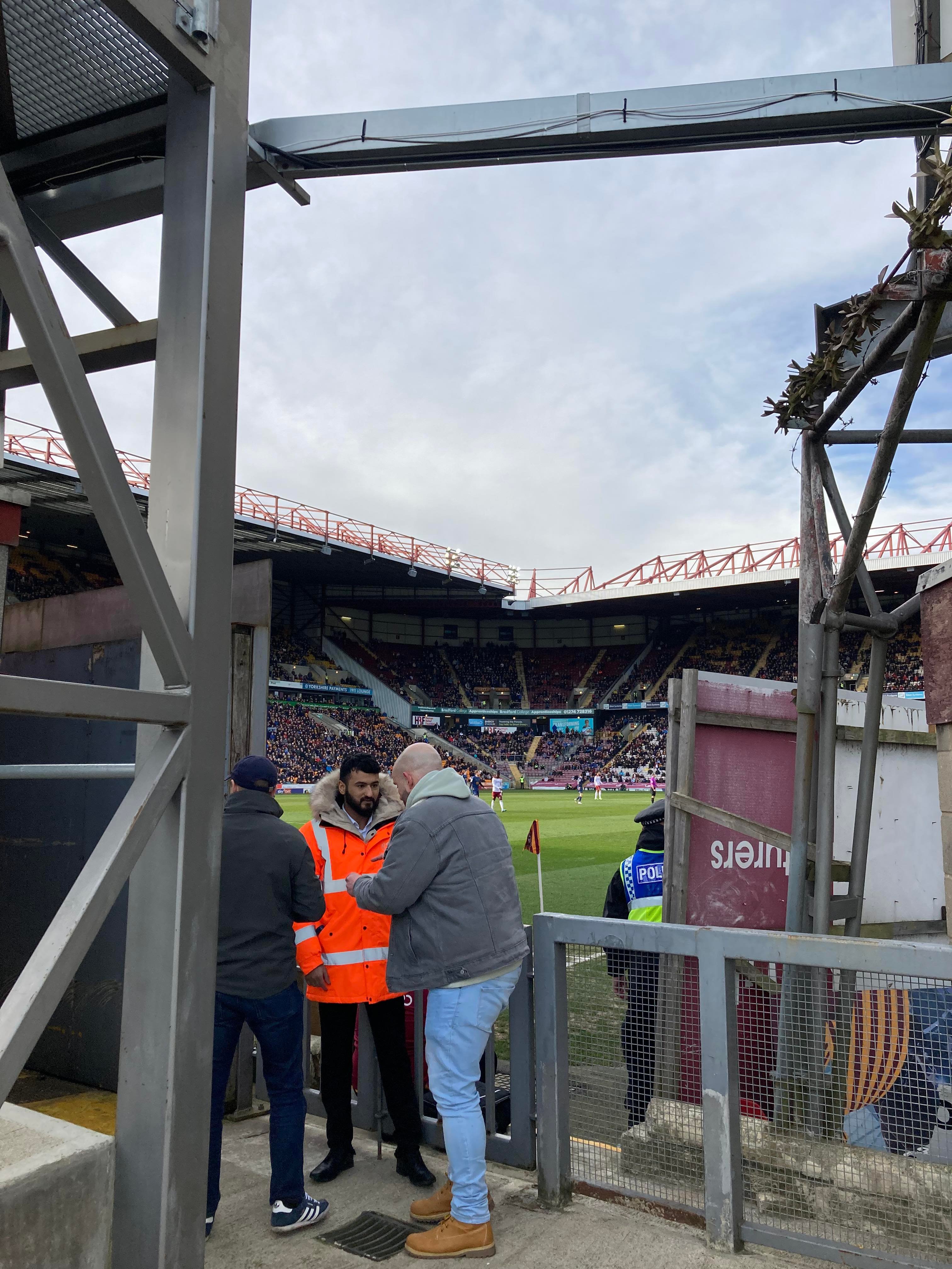 It certainly looks great from the outset but we’ve got 2 hours to kill… Off we go to the club shop and then to find somewhere to hang out. Just up the road and here we are at the Bradford Arms with some other travelling Mansfield fans!!! Lovely! Time goes on and the mood is starting to rise in excitement!! Good to see Owen here too!