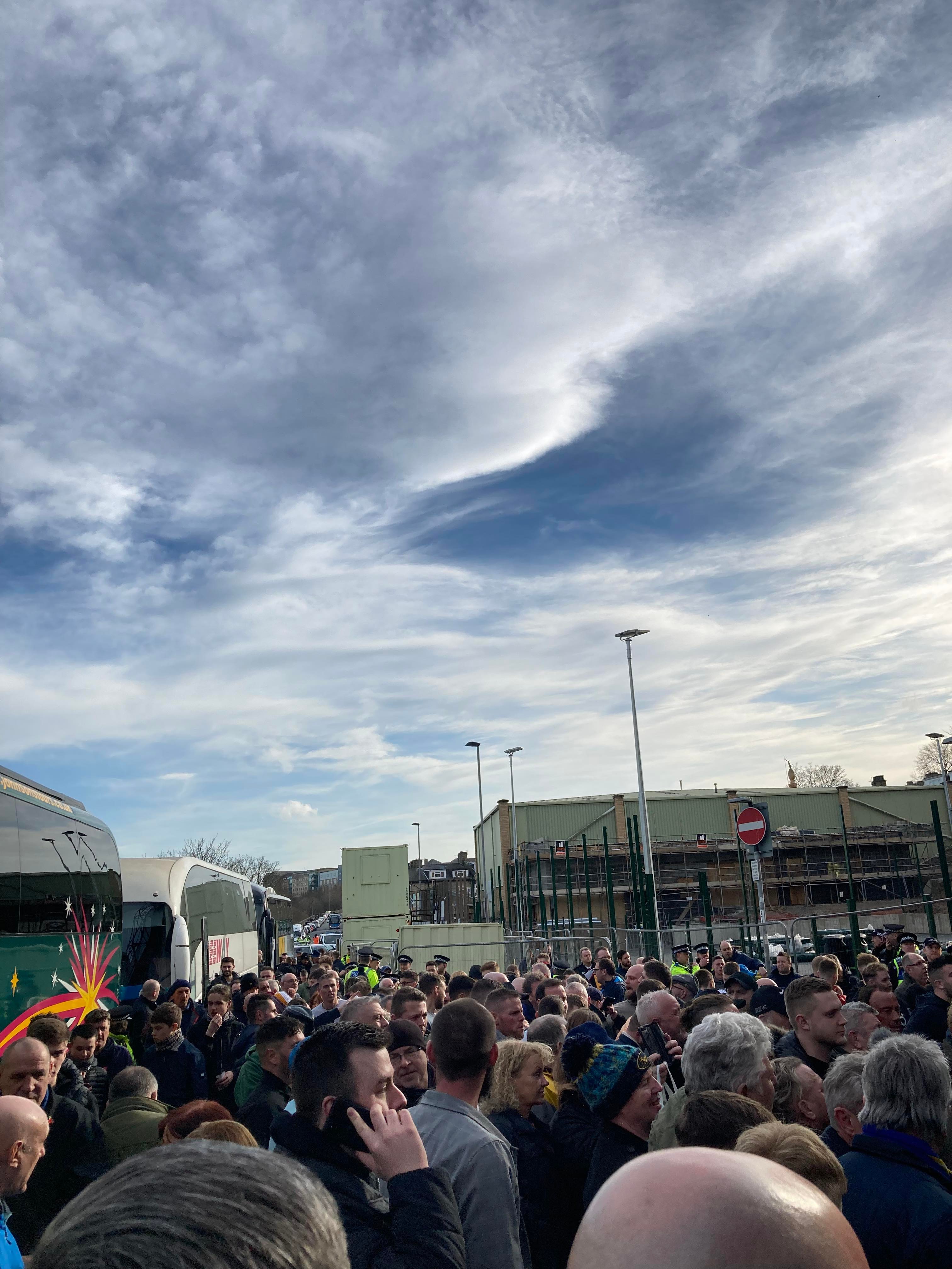 2:25pm and it’s time for the game so off we go back to the ground. Outside the turnstile and now we wait for the rest to show up… 2:40pm and here come the buses… But it’s starting to pile up outside… The atmosphere is booming in the away end!! “Wahheeeey! Wahooaaah! Super Mansfield!” The game has kicked off and I’m just at the front now but the mood is starting to turn sour… About 2 minutes into the game and I am in!! £20 for this League 2 tie! Ok then!