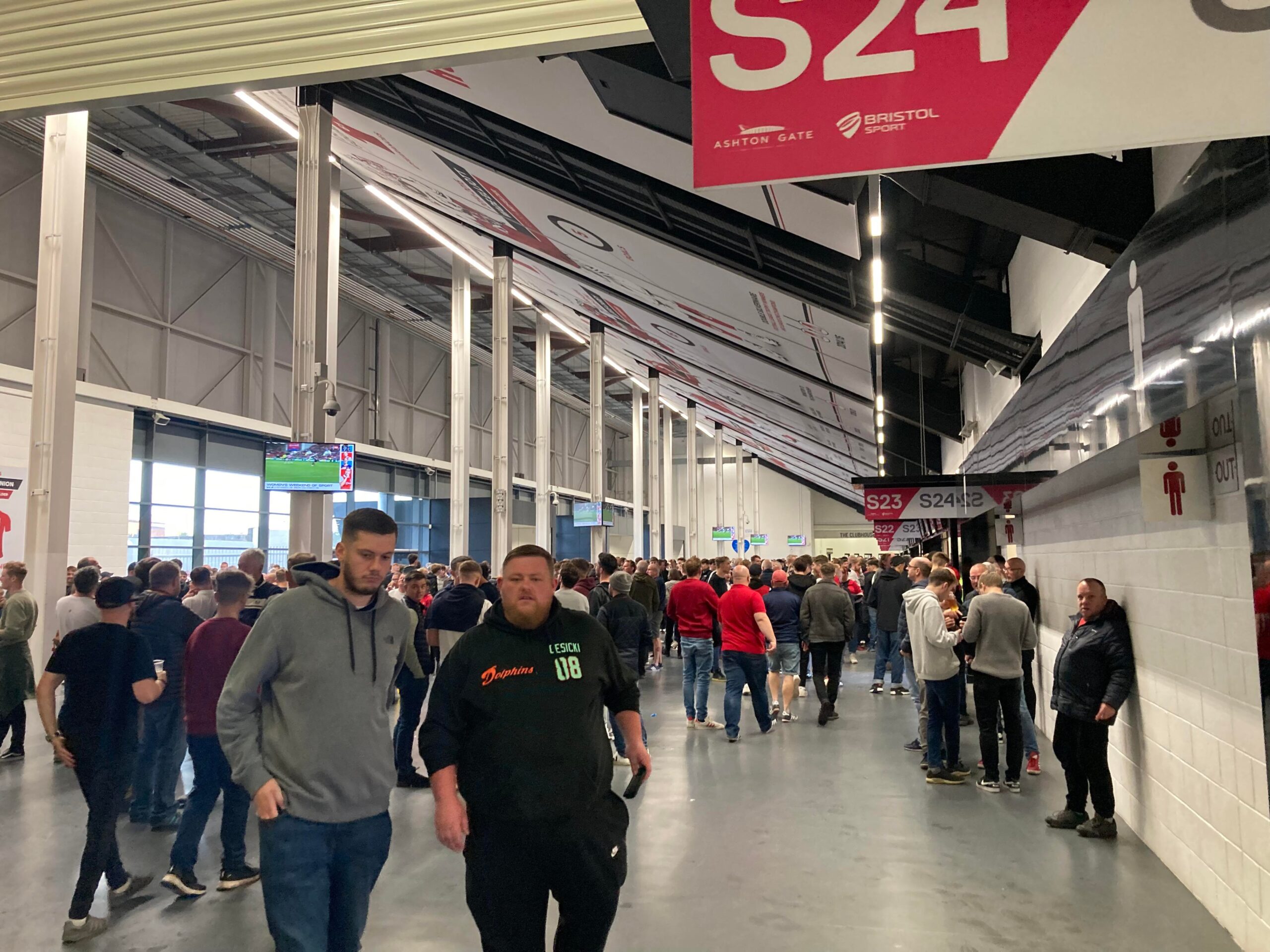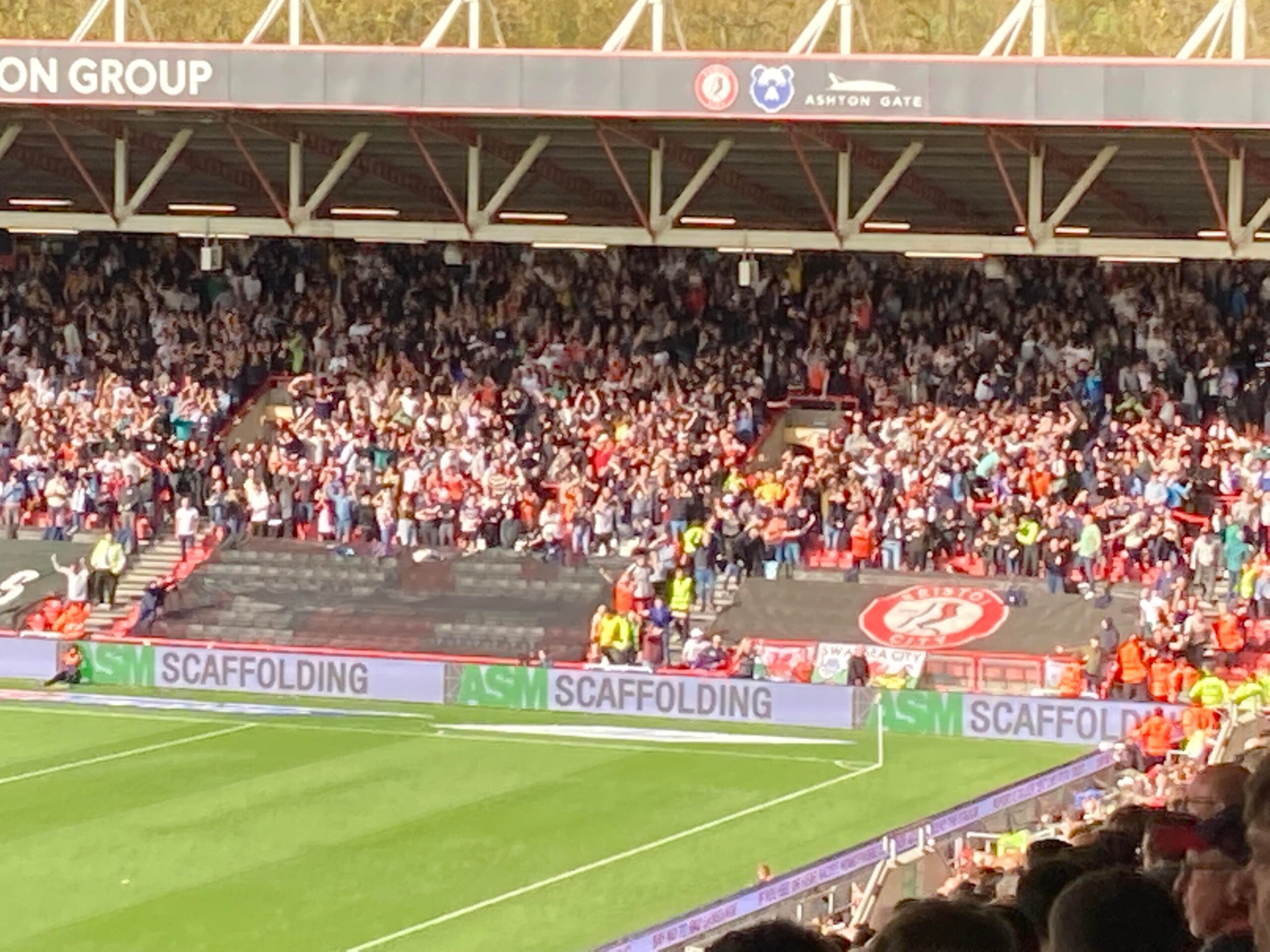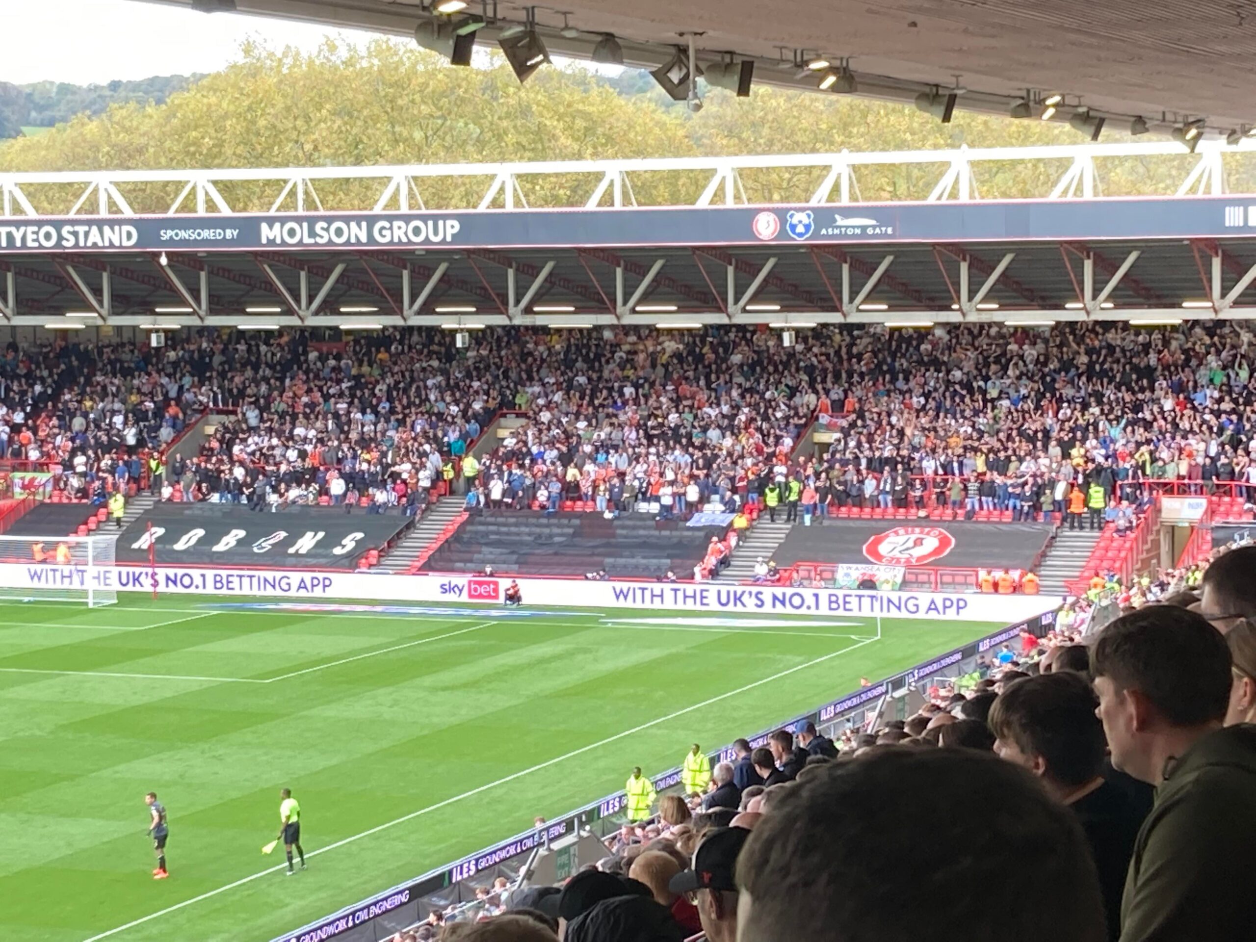 - The Ground: 10/10 – I love this ground!! It’s a proper football ground with a good safe standing section! I love the trees view from my end as well! I have to say as well, what a concourse! The redevelopment has been very successful for Ashton Gate! It’s a definite and hopefully future Premier League ground!