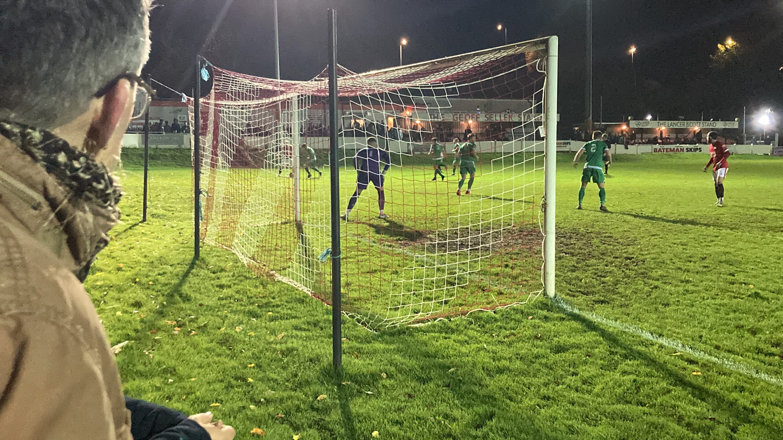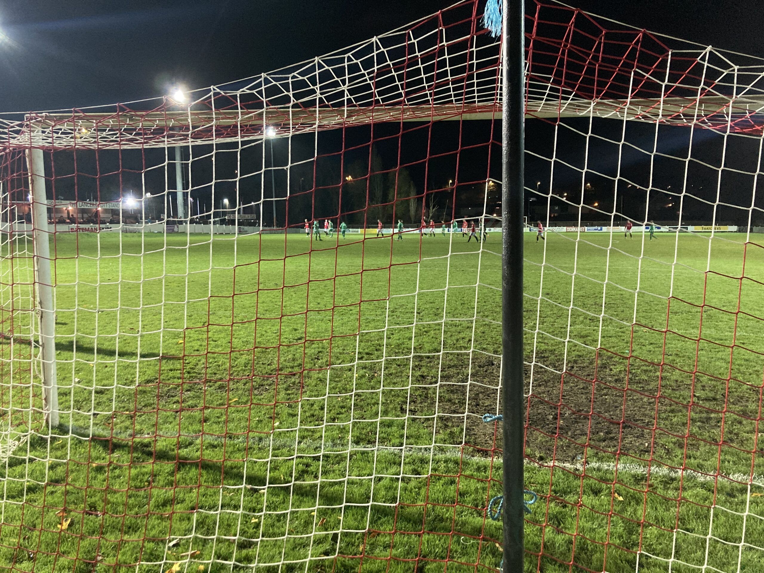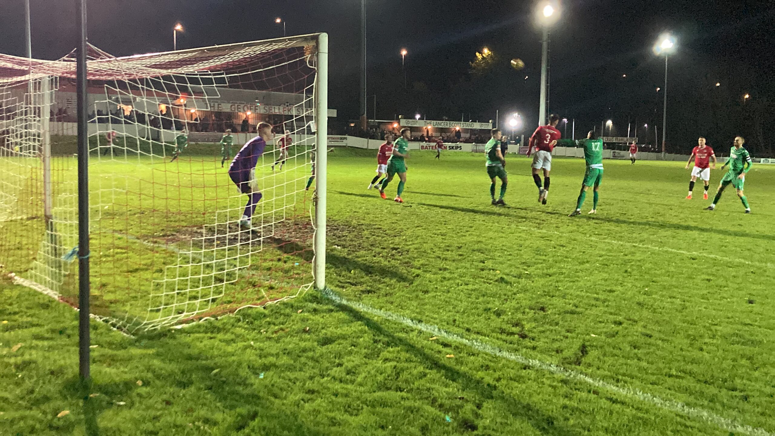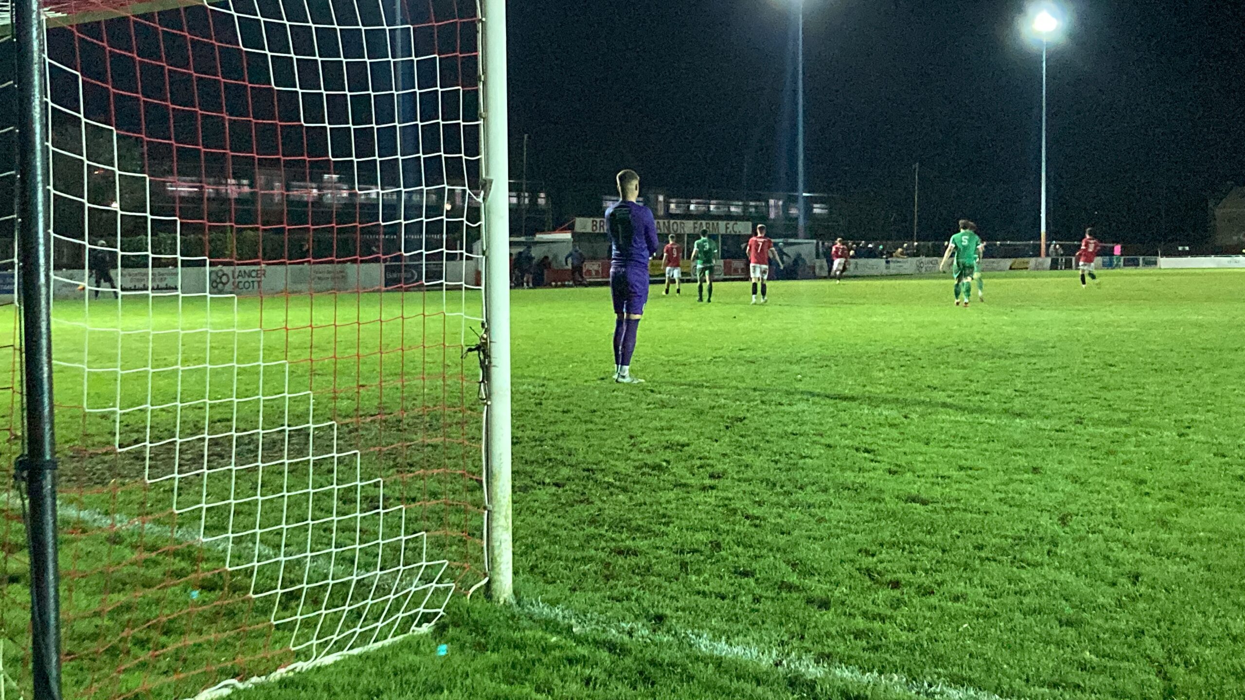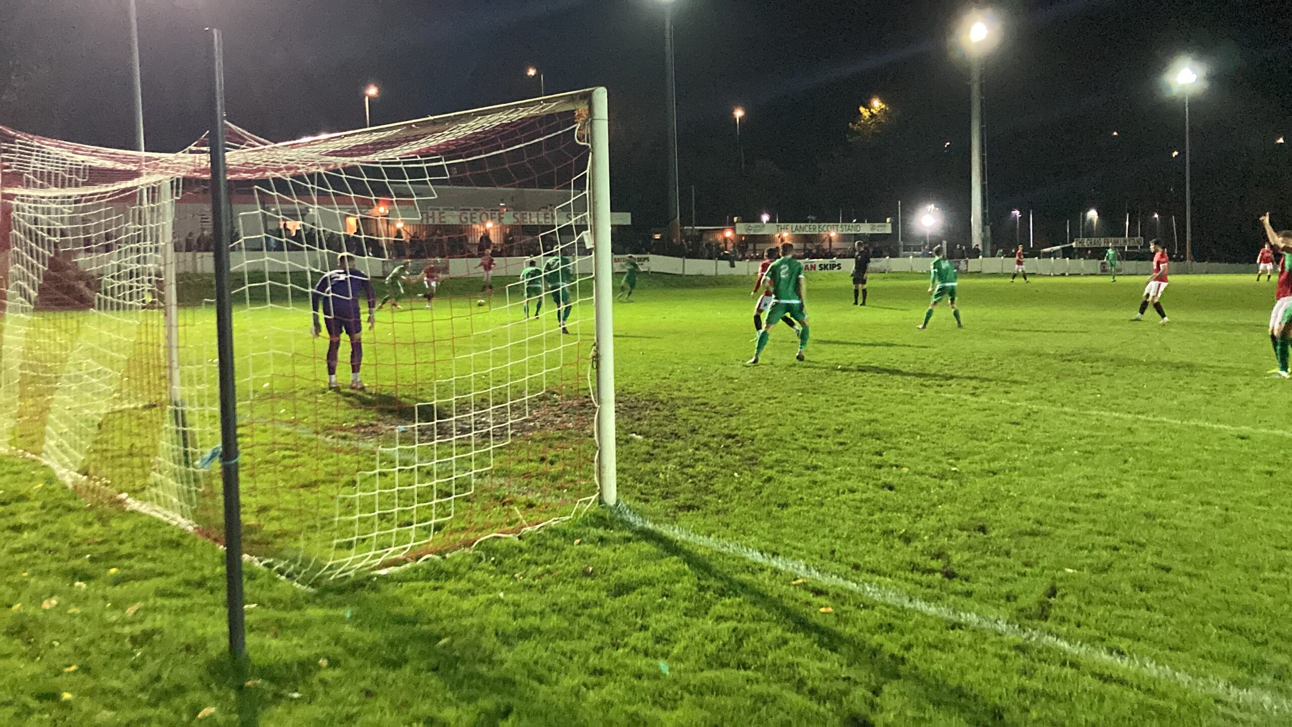 64th minute and Manor Farm have it on the right, it’s played across to George Kellow… BANG! What a finish! He’s placed it right into the top corner and Manor Farm are level! 1-1!