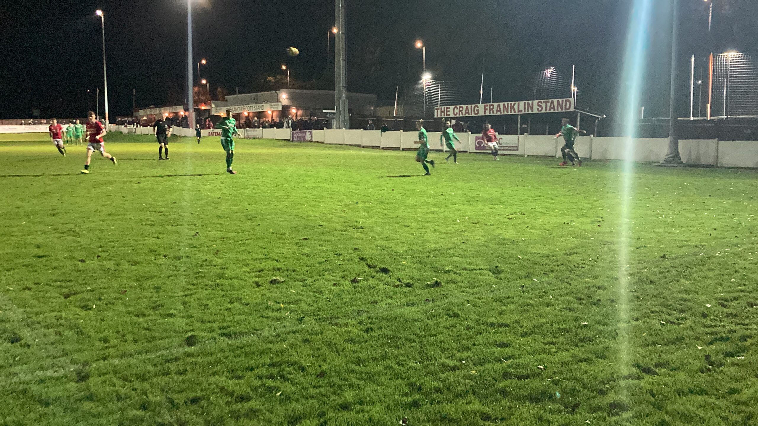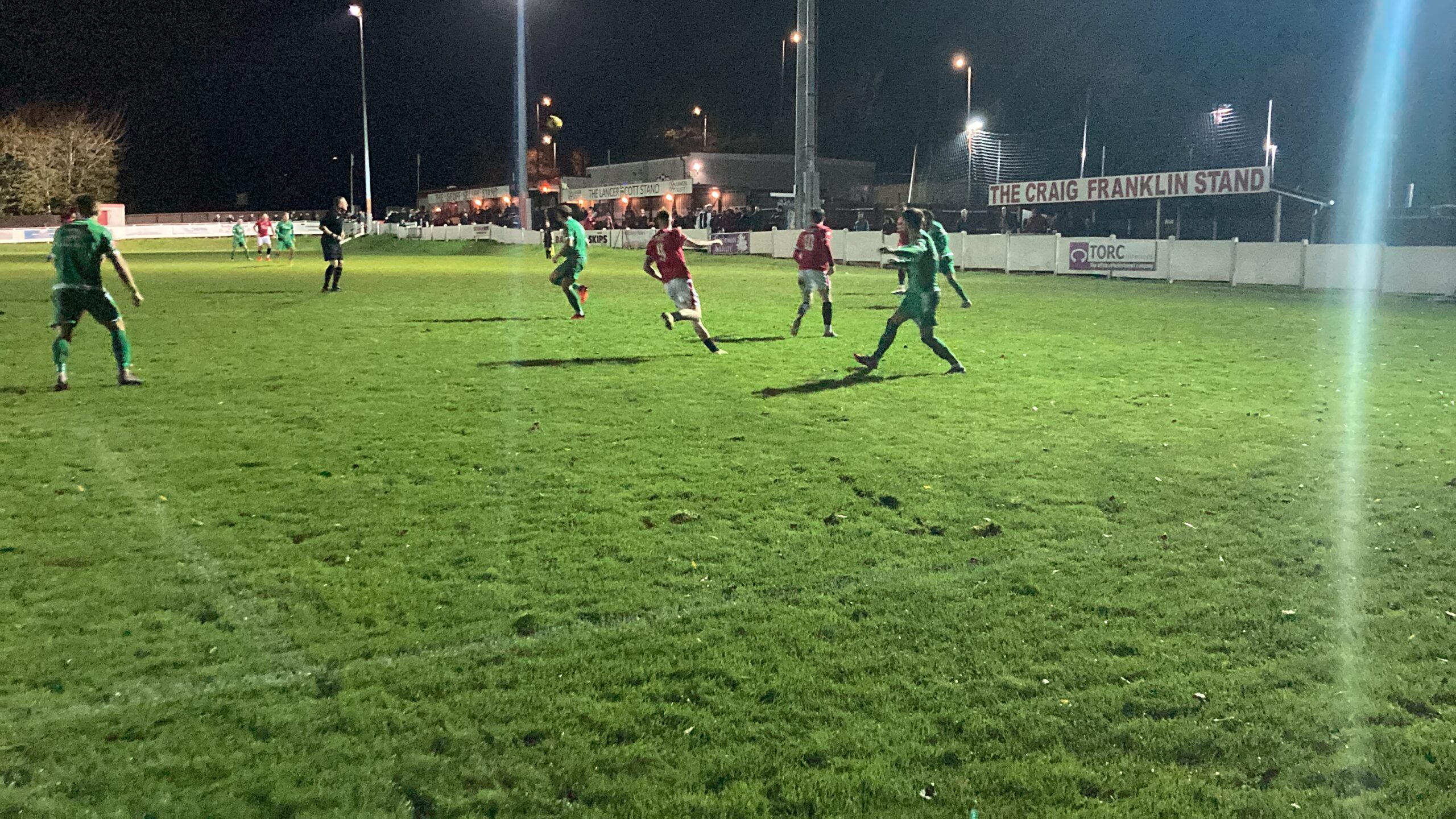 3 minutes later and here come Manor Farm again, they play it across and the shot comes in from just outside the box… OH IT’S OFF THE POST! Manor Farm so close there to completing the turnaround!