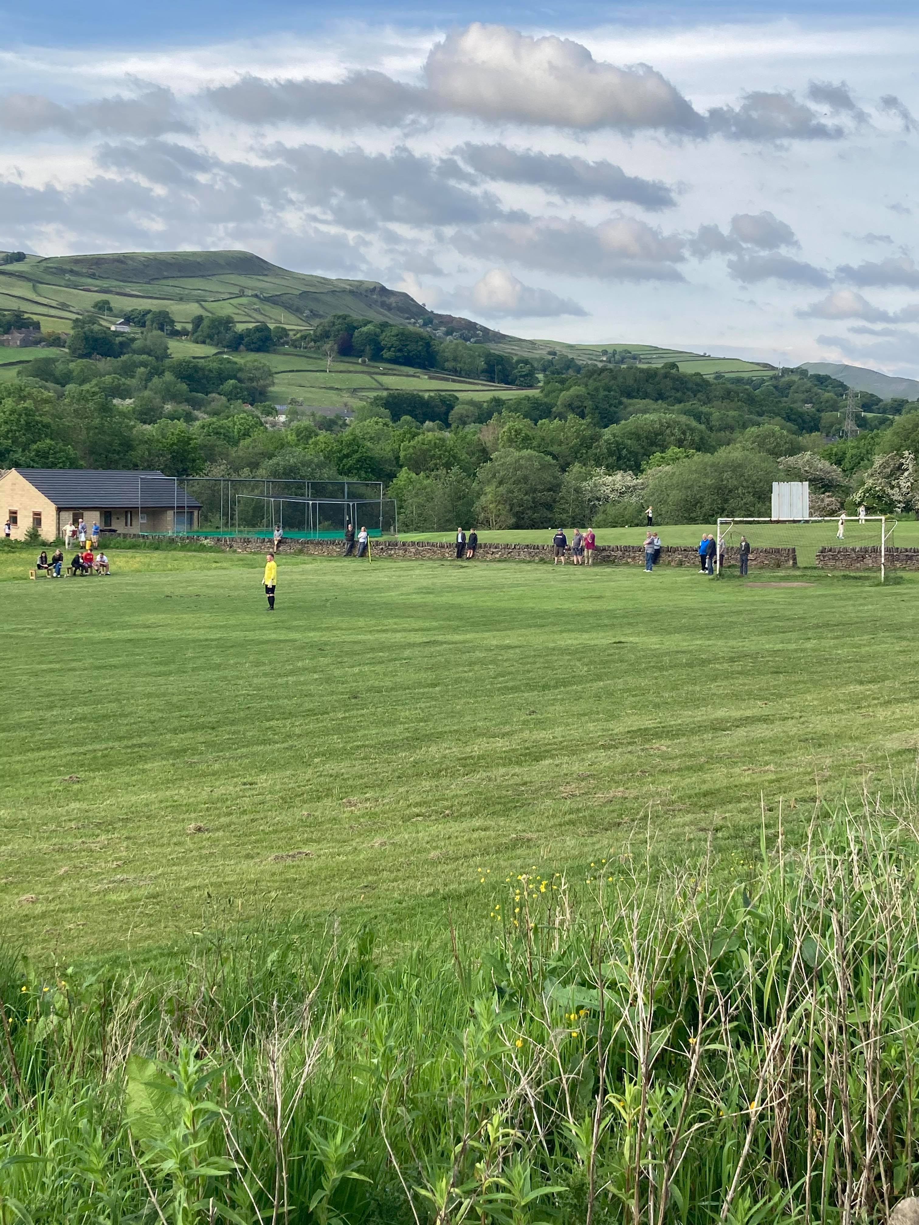 On the train to Chinley and then the long walk to the ground. A beautiful walk I must say!! About half an hour later and here we are! Cricket game on the other side as well! Sports!!!!! Beautiful views!! The Hope Valley really is something else!! Free Entry to this one! Fantabulous!! And great to see Tony yet again tonight!!