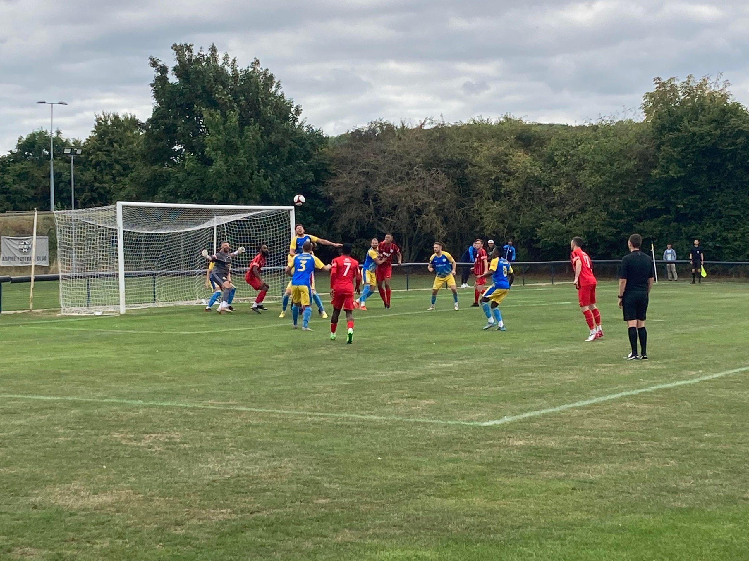 4 minutes later and Carlton play down the left flank, it’s crossed in, it’s Niall Davie with the header… Ooooooh! Just over the bar! The keeper had to stretch for that one!