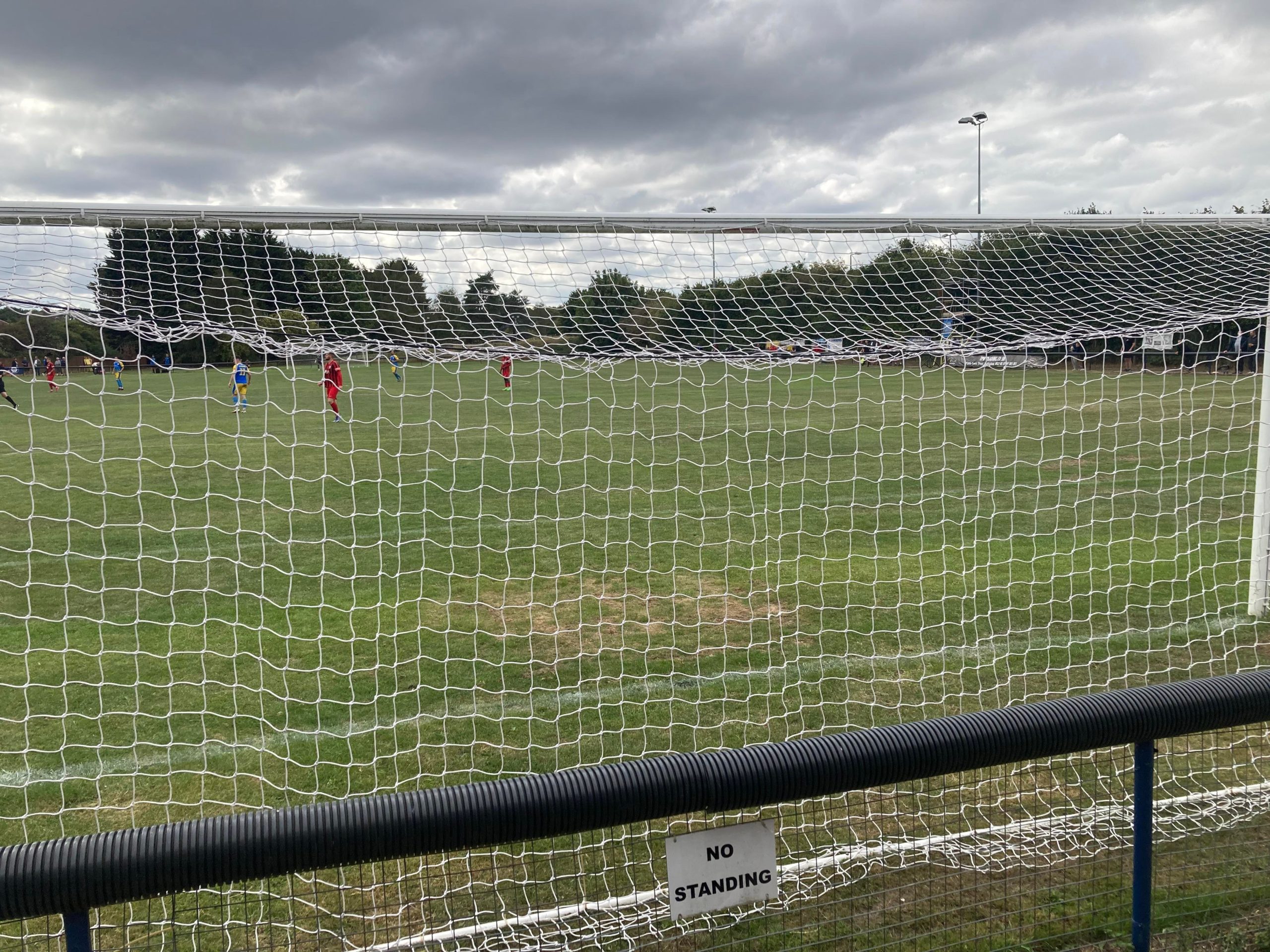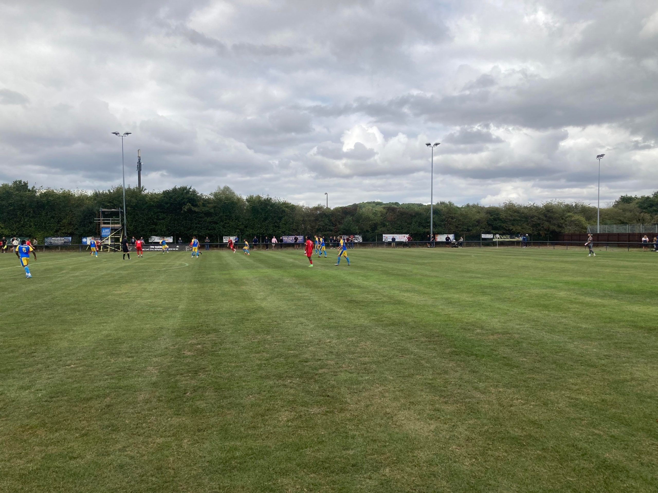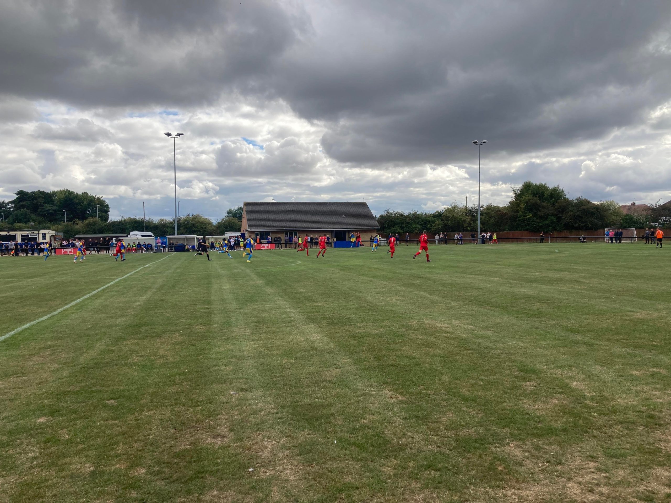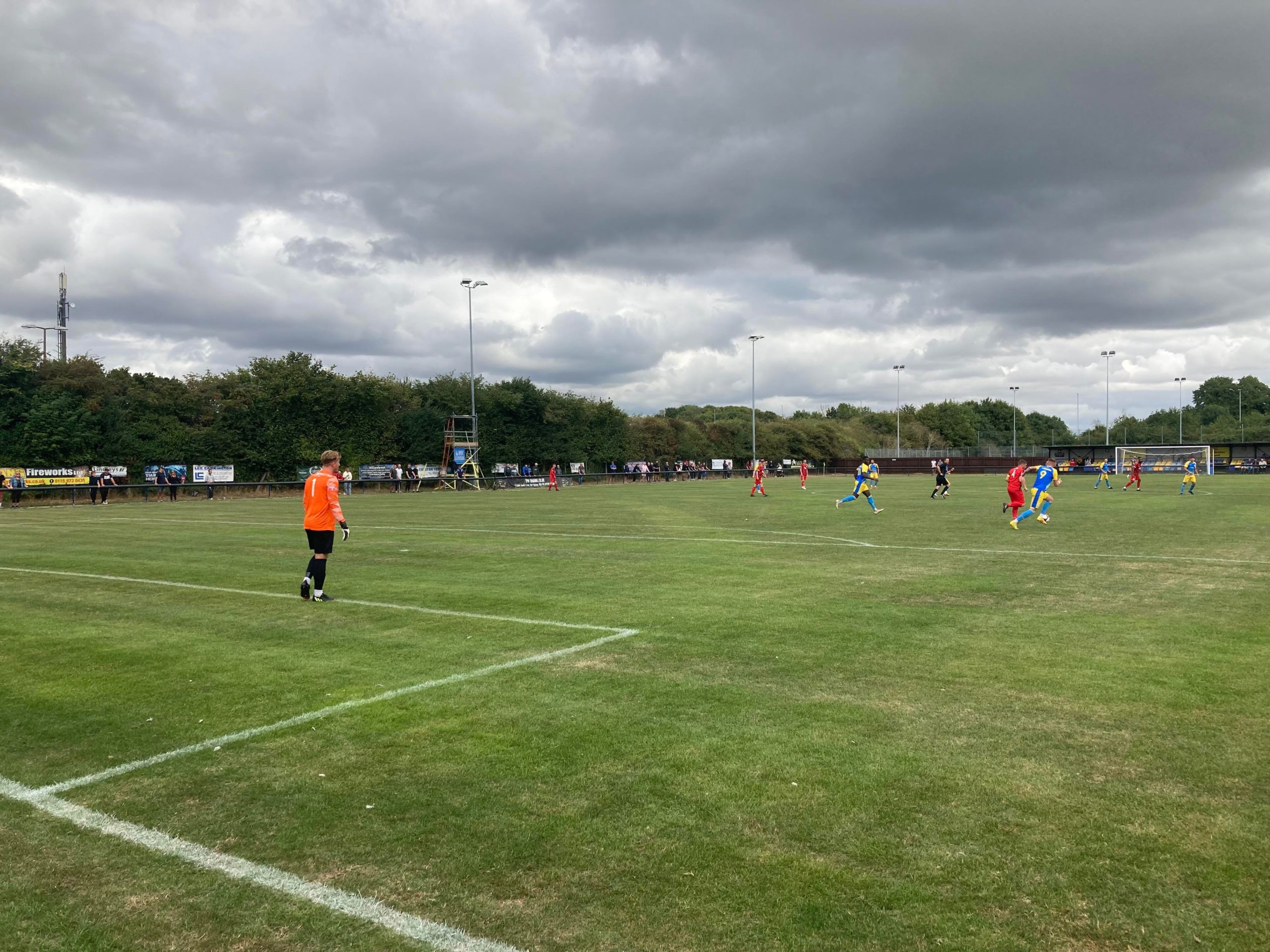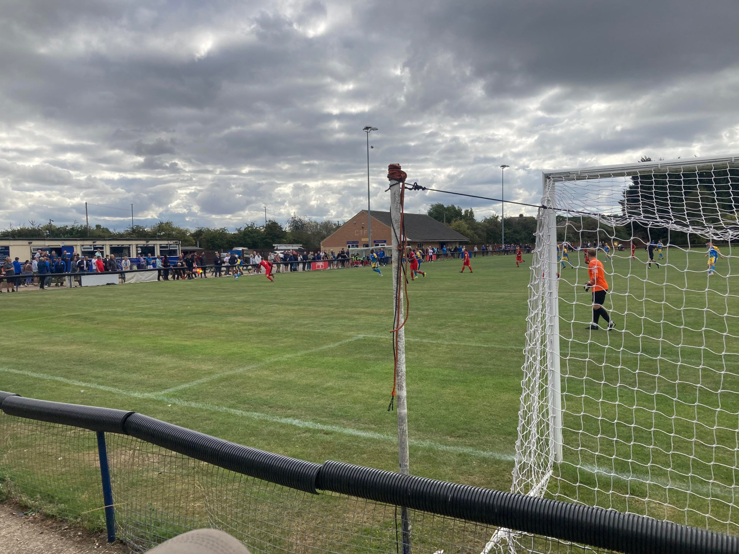 1 minute later and Long Eaton have a free kick on the halfway line now, it’s lumped into the box, it’s loose… The Carlton defence get there and play it back to the keeper… Who’s picked it up… That’s a back pass! Referee blows and it will be an indirect free kick in the box for Long Eaton, you don’t see those everyday! It’s set up for Alex Marshall… Blocked! The Referee has blown and it will be retaken, Alex Marshall again… Blocked and Carlton clear! Long Eaton continue to press but at half time it remains 1-0.