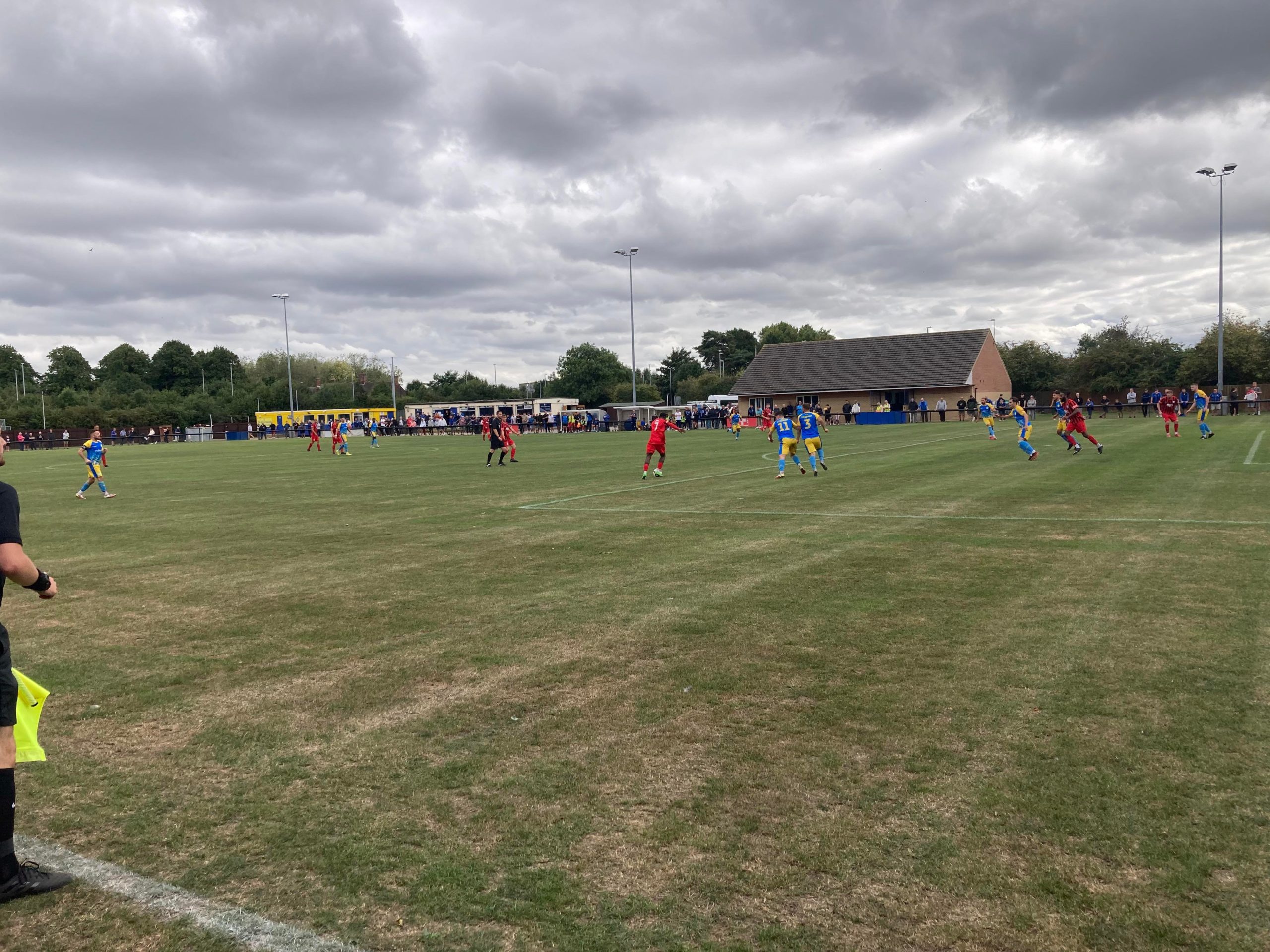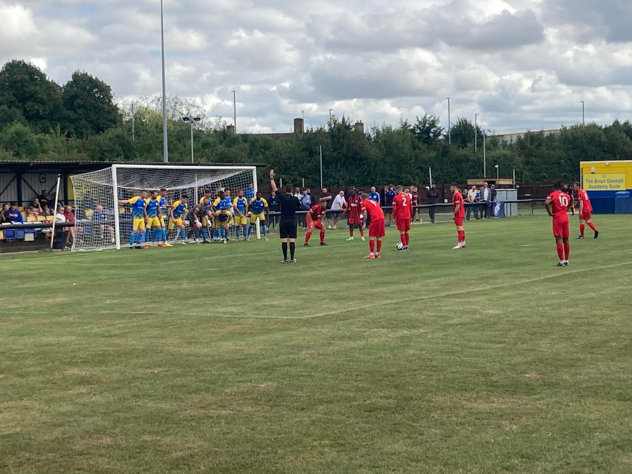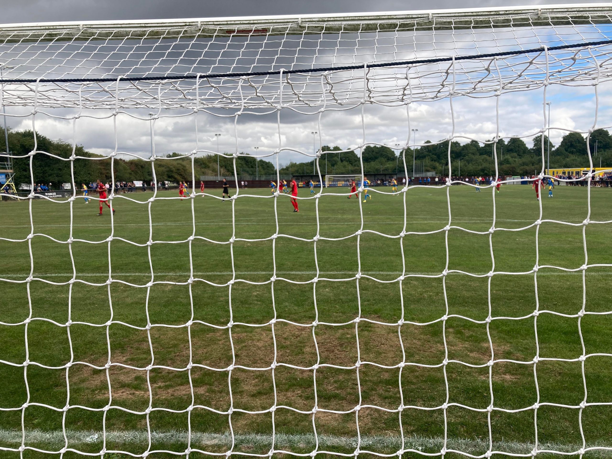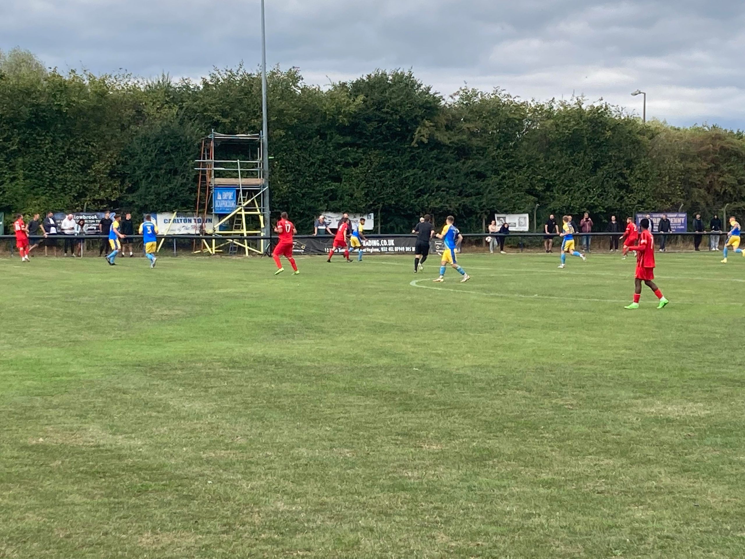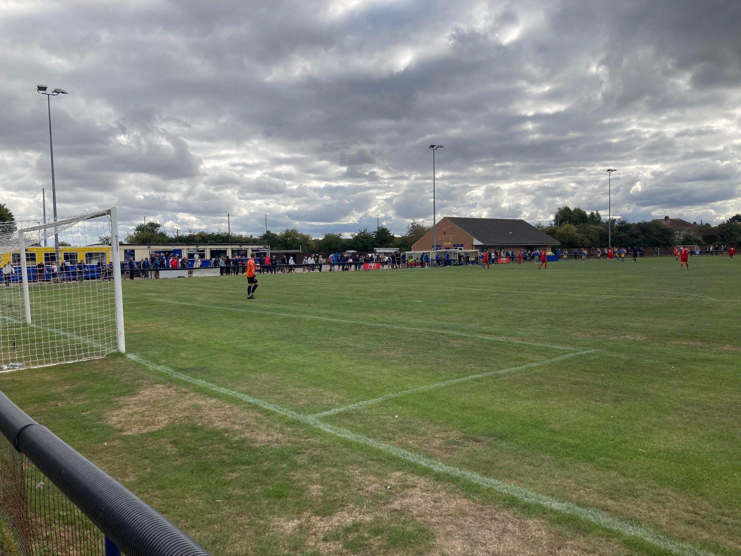 1 minute later and Long Eaton have a free kick on the halfway line now, it’s lumped into the box, it’s loose… The Carlton defence get there and play it back to the keeper… Who’s picked it up… That’s a back pass! Referee blows and it will be an indirect free kick in the box for Long Eaton, you don’t see those everyday! It’s set up for Alex Marshall… Blocked! The Referee has blown and it will be retaken, Alex Marshall again… Blocked and Carlton clear! Long Eaton continue to press but at half time it remains 1-0.