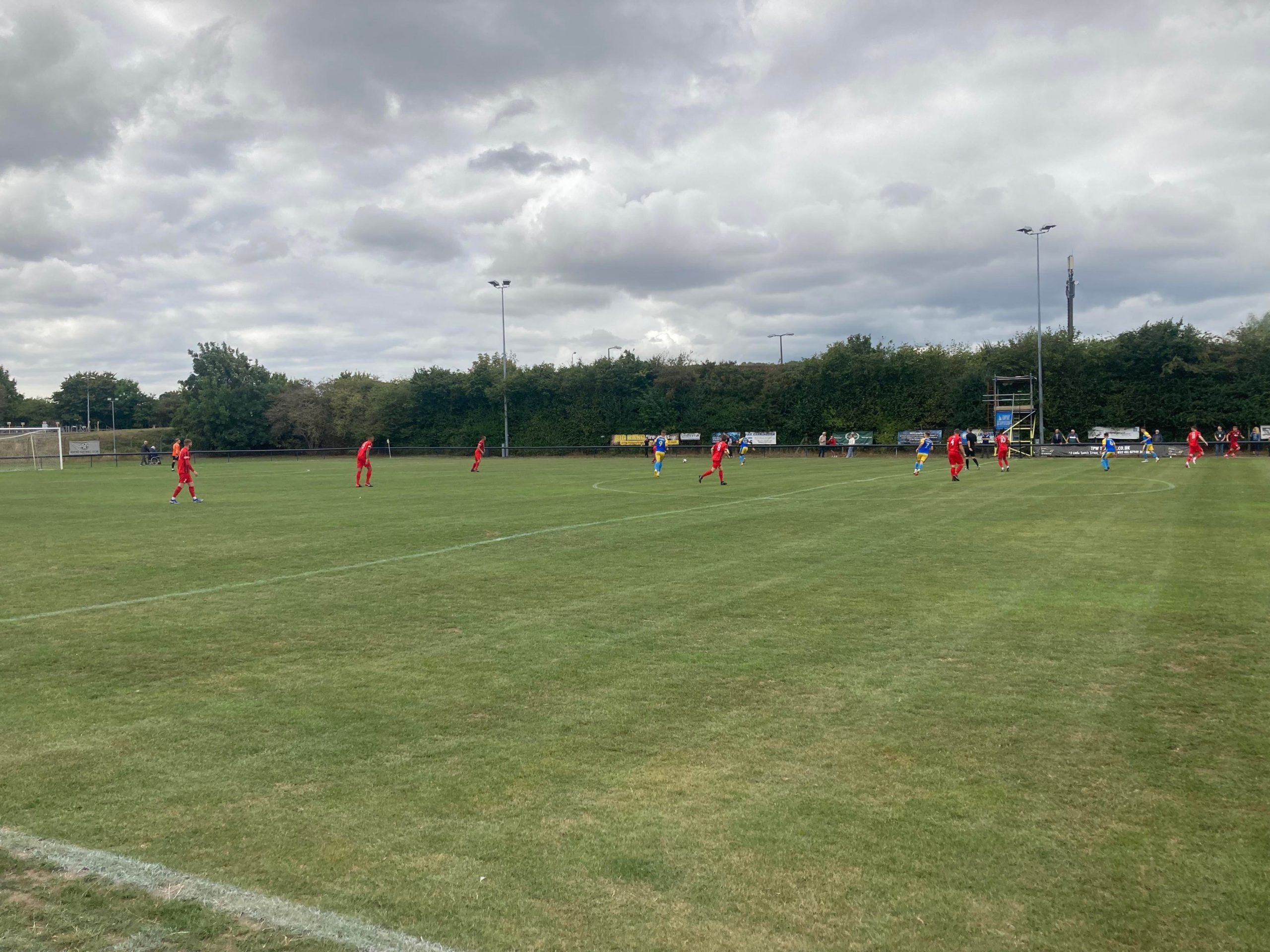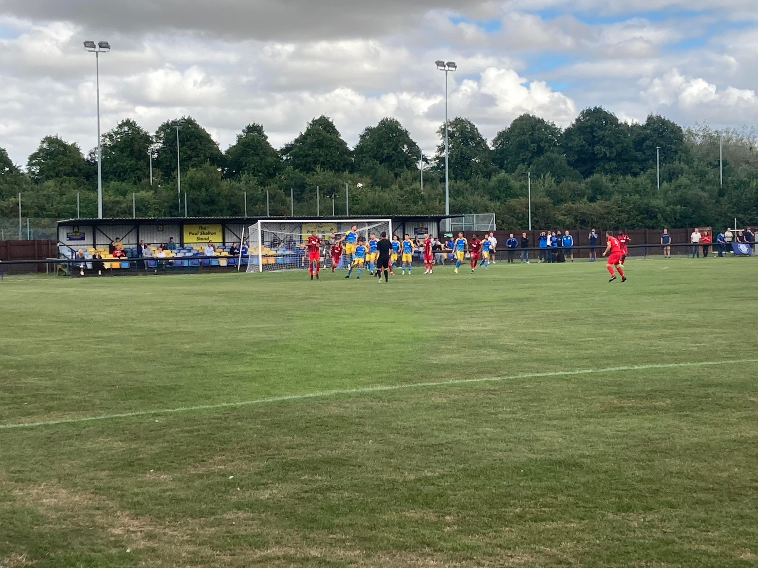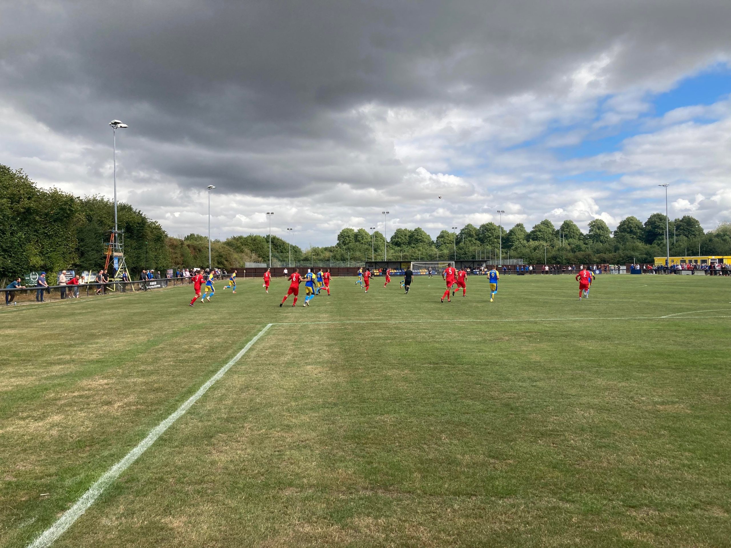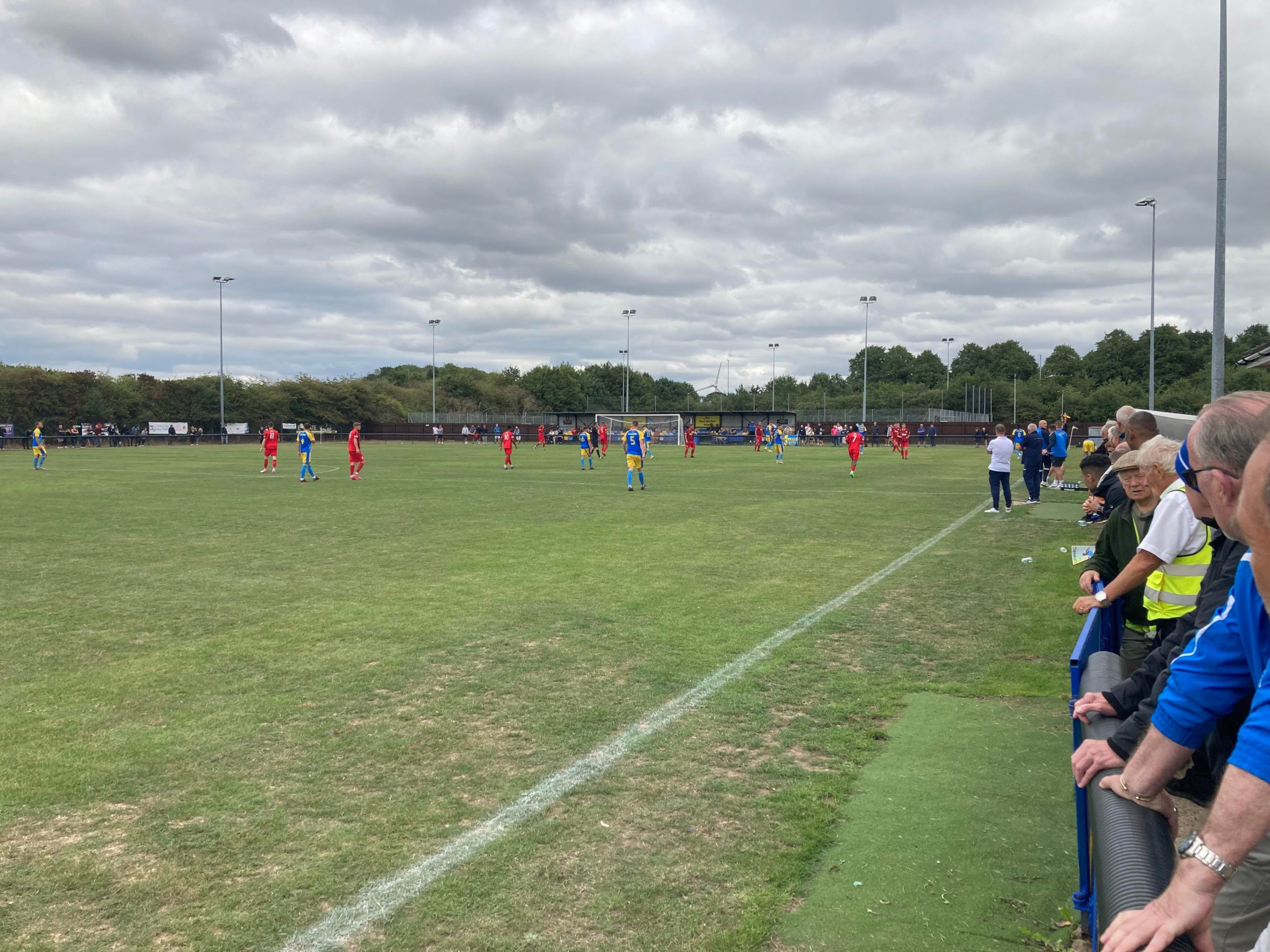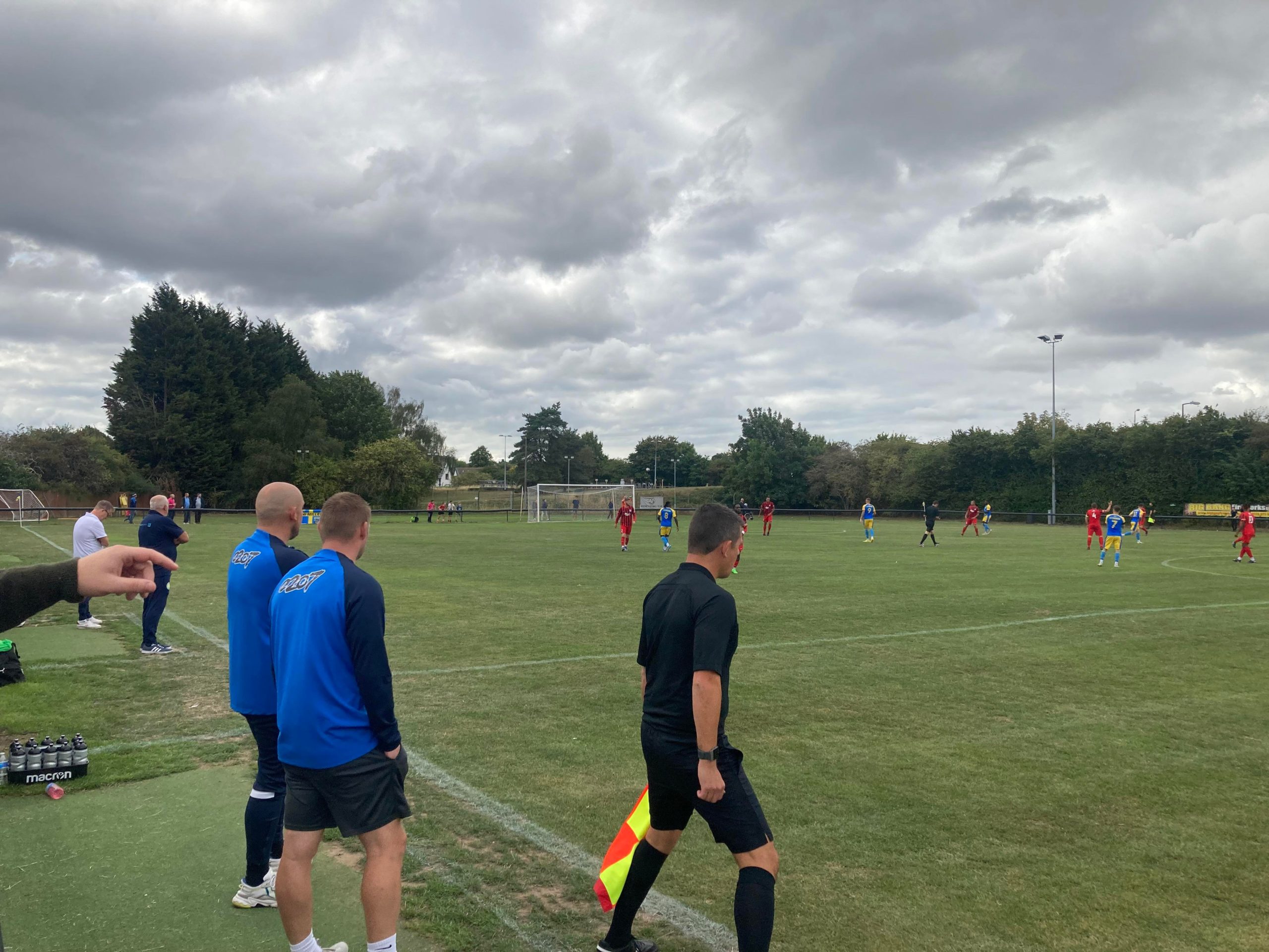 1 minute later and Long Eaton have a free kick on the halfway line now, it’s lumped into the box, it’s loose… The Carlton defence get there and play it back to the keeper… Who’s picked it up… That’s a back pass! Referee blows and it will be an indirect free kick in the box for Long Eaton, you don’t see those everyday! It’s set up for Alex Marshall… Blocked! The Referee has blown and it will be retaken, Alex Marshall again… Blocked and Carlton clear! Long Eaton continue to press but at half time it remains 1-0.