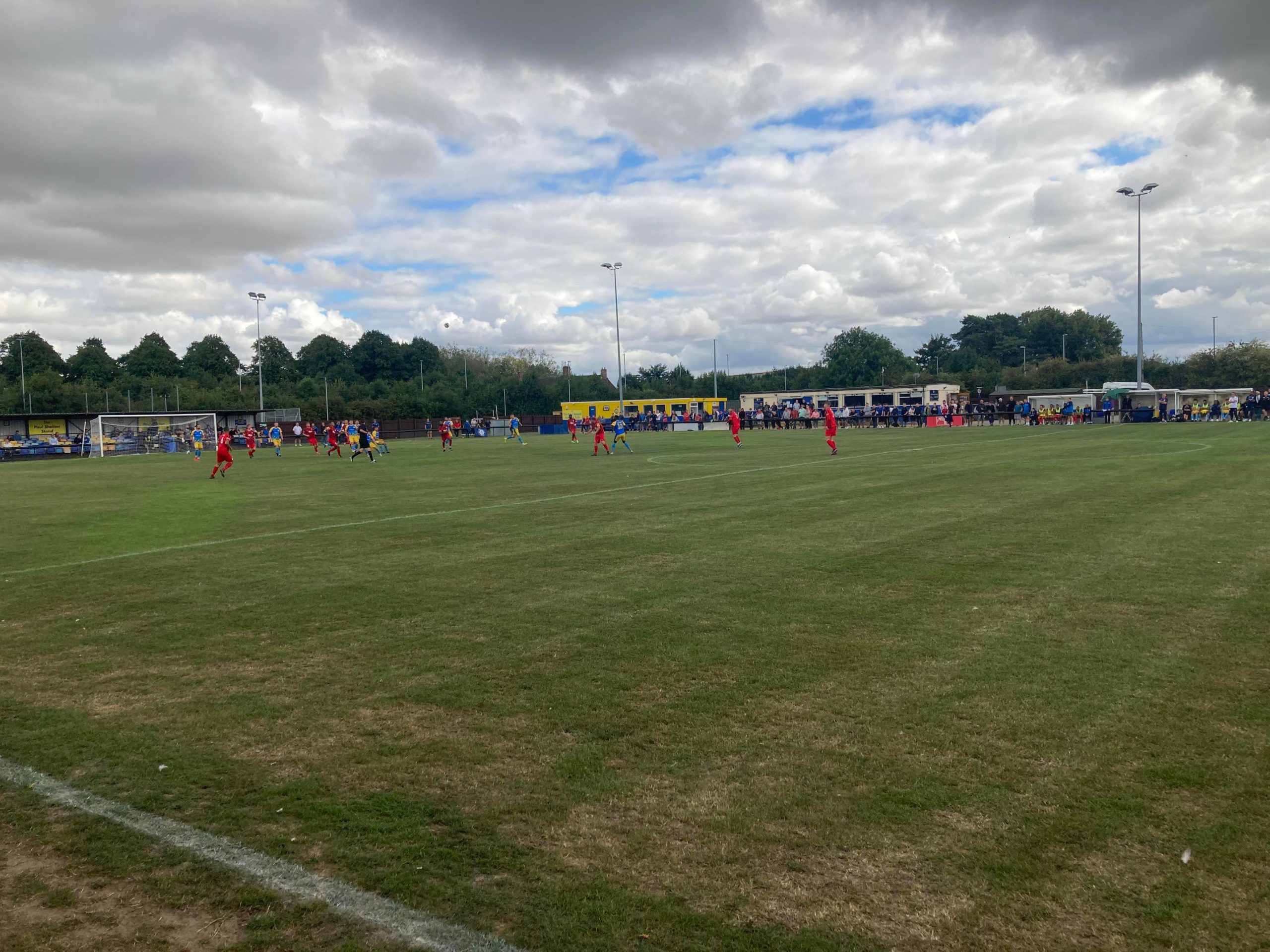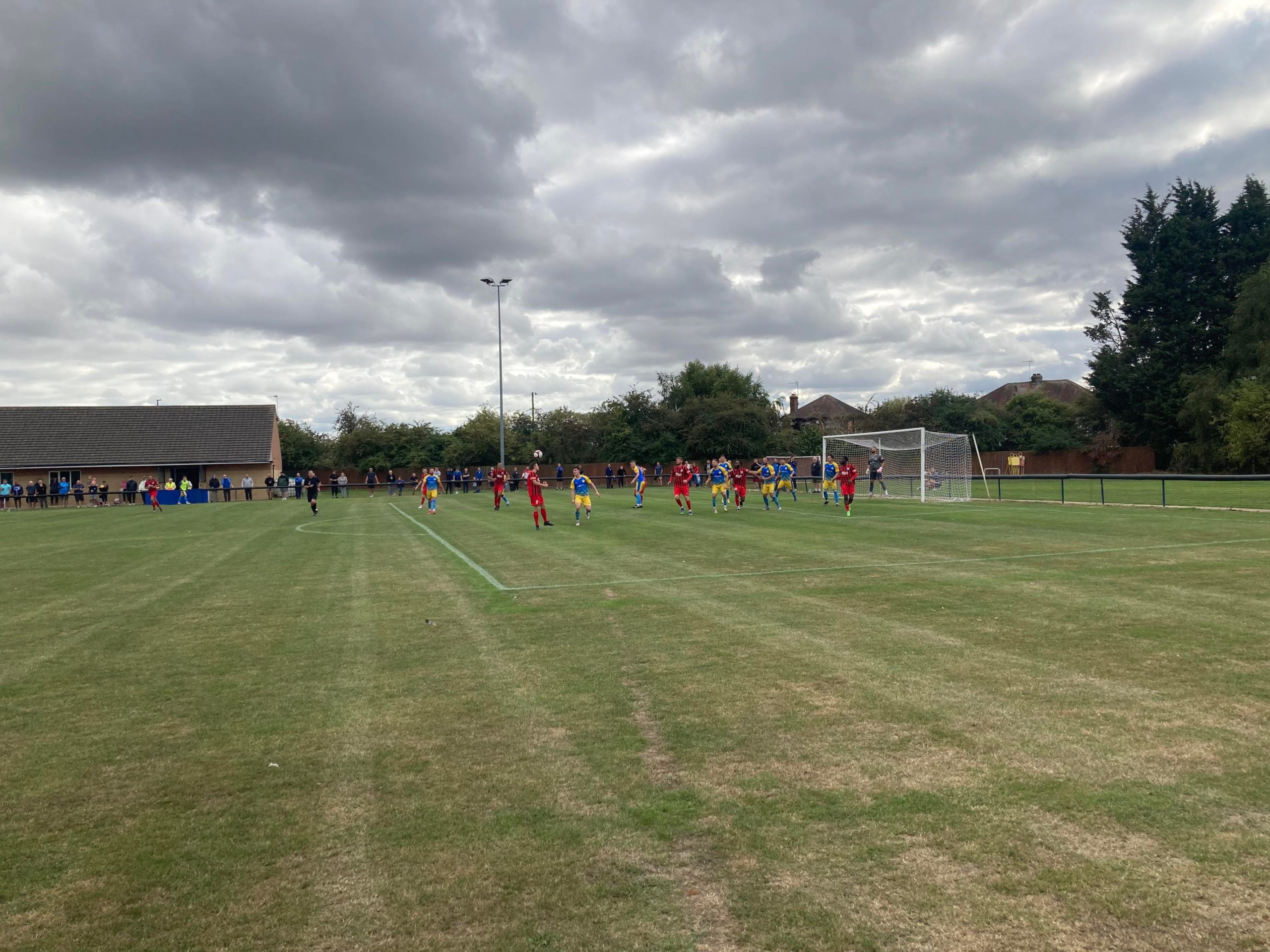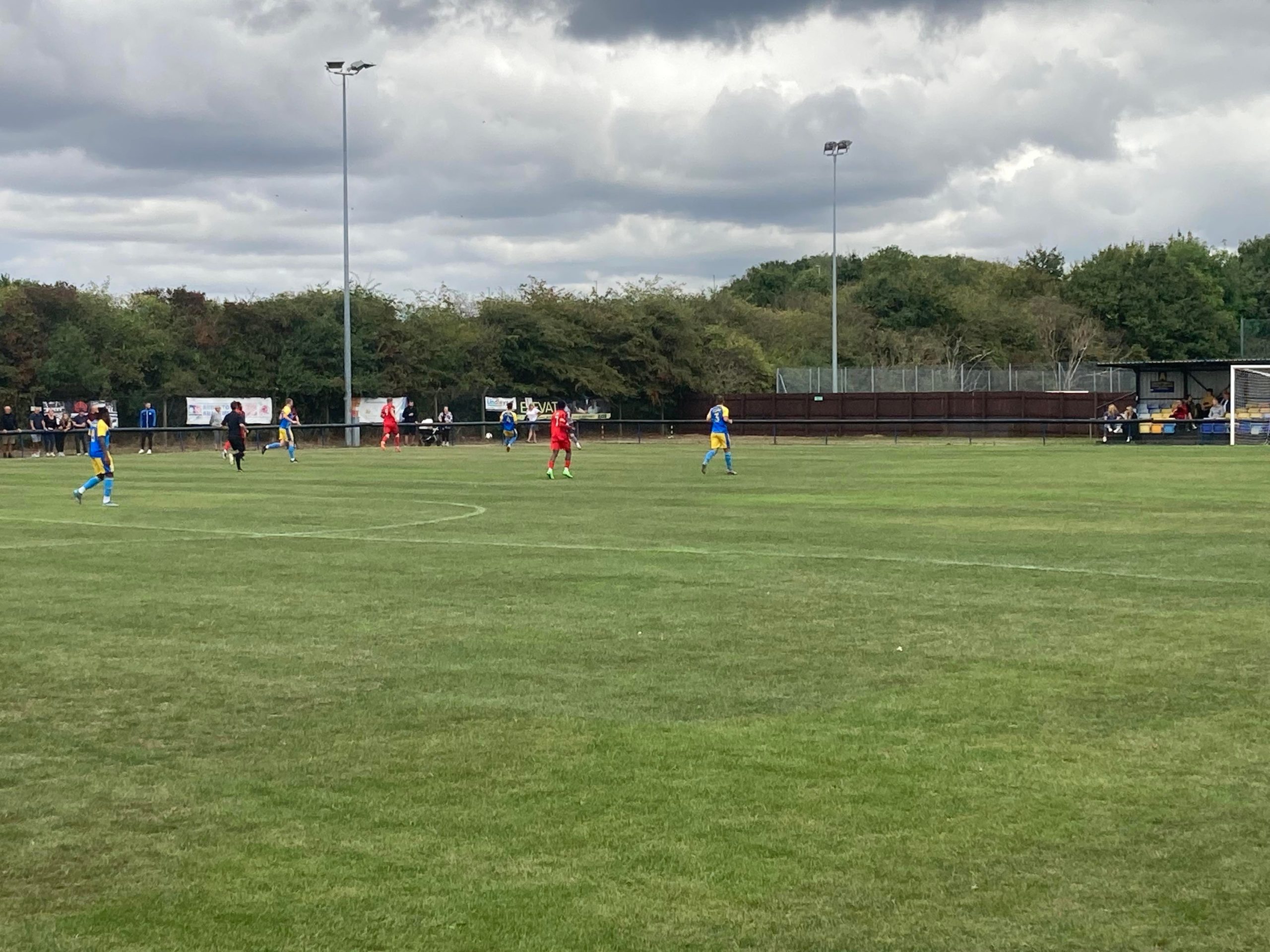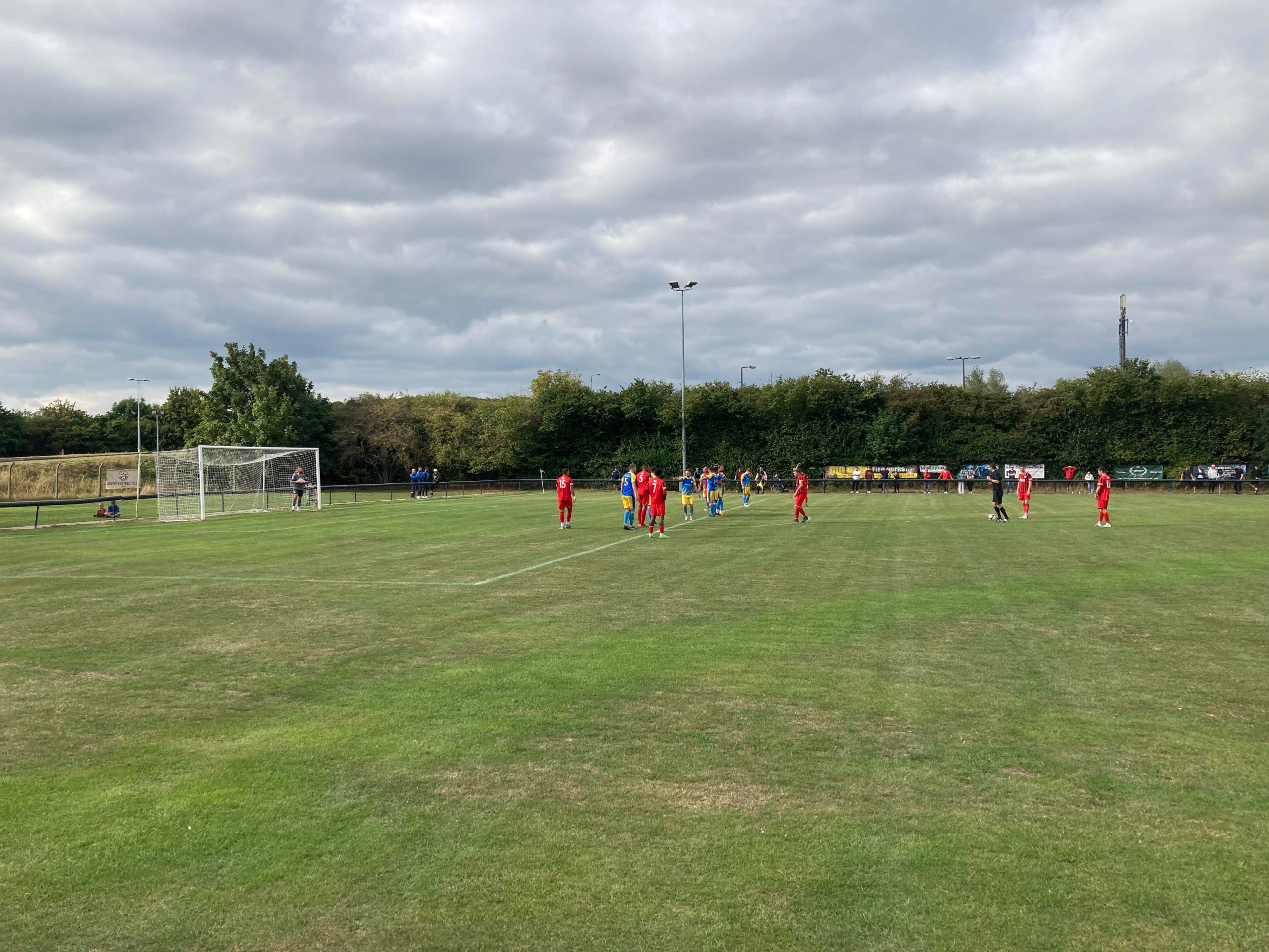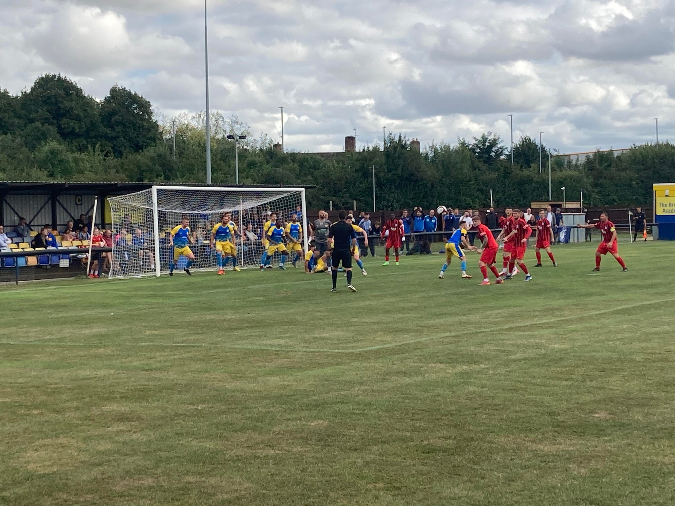 1 minute later and Long Eaton have a free kick on the halfway line now, it’s lumped into the box, it’s loose… The Carlton defence get there and play it back to the keeper… Who’s picked it up… That’s a back pass! Referee blows and it will be an indirect free kick in the box for Long Eaton, you don’t see those everyday! It’s set up for Alex Marshall… Blocked! The Referee has blown and it will be retaken, Alex Marshall again… Blocked and Carlton clear! Long Eaton continue to press but at half time it remains 1-0.