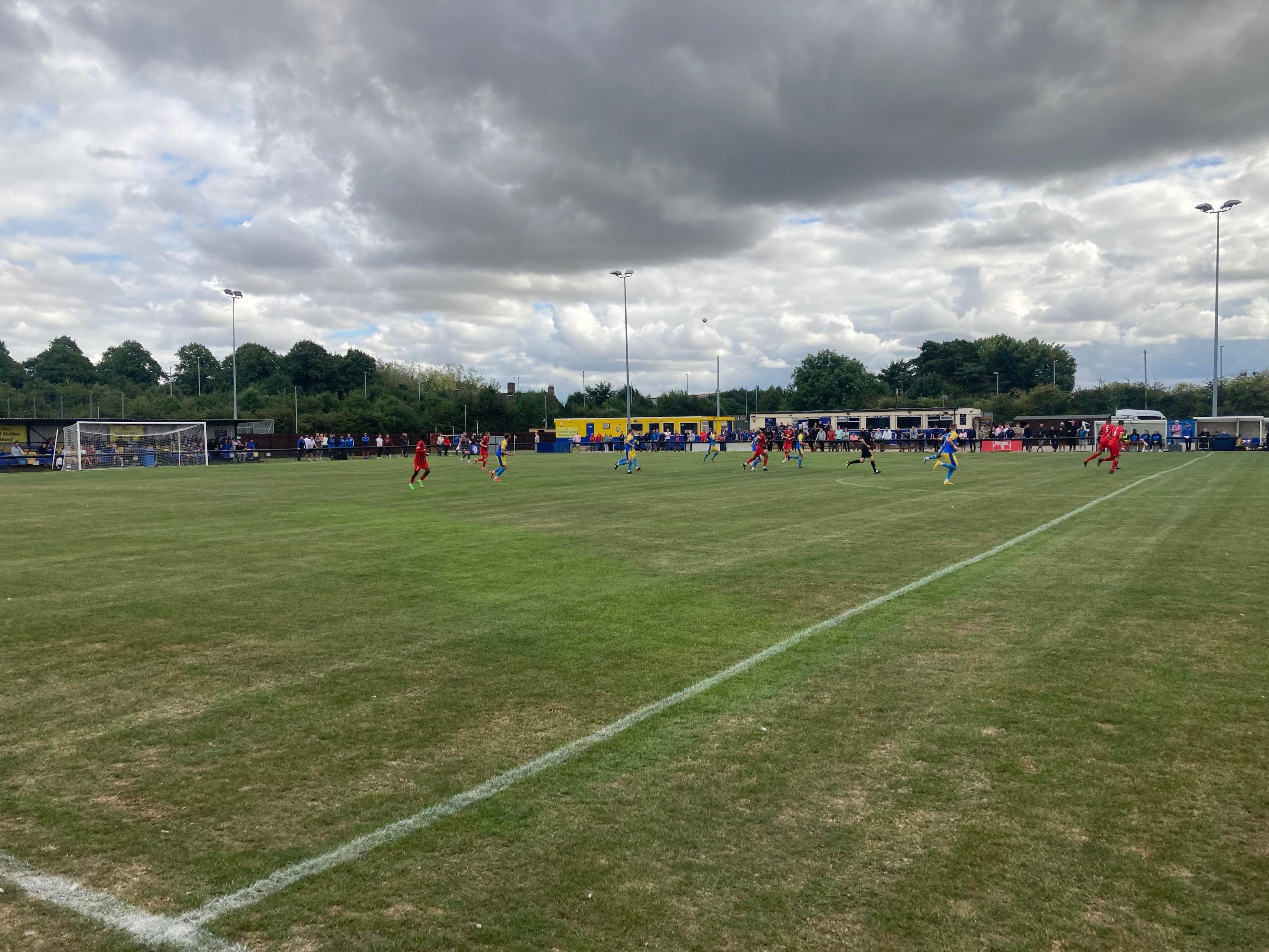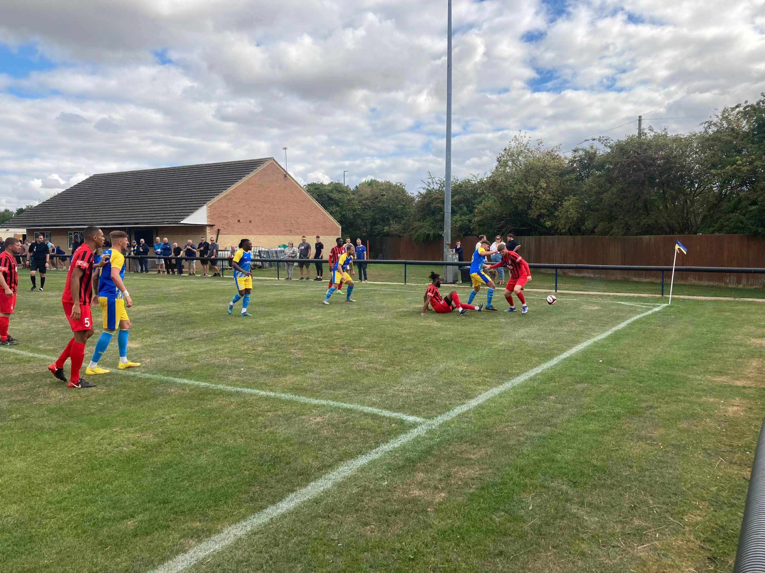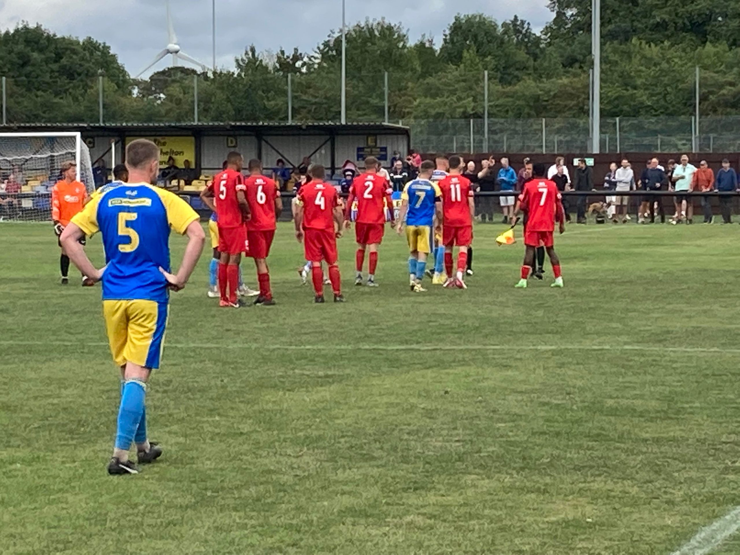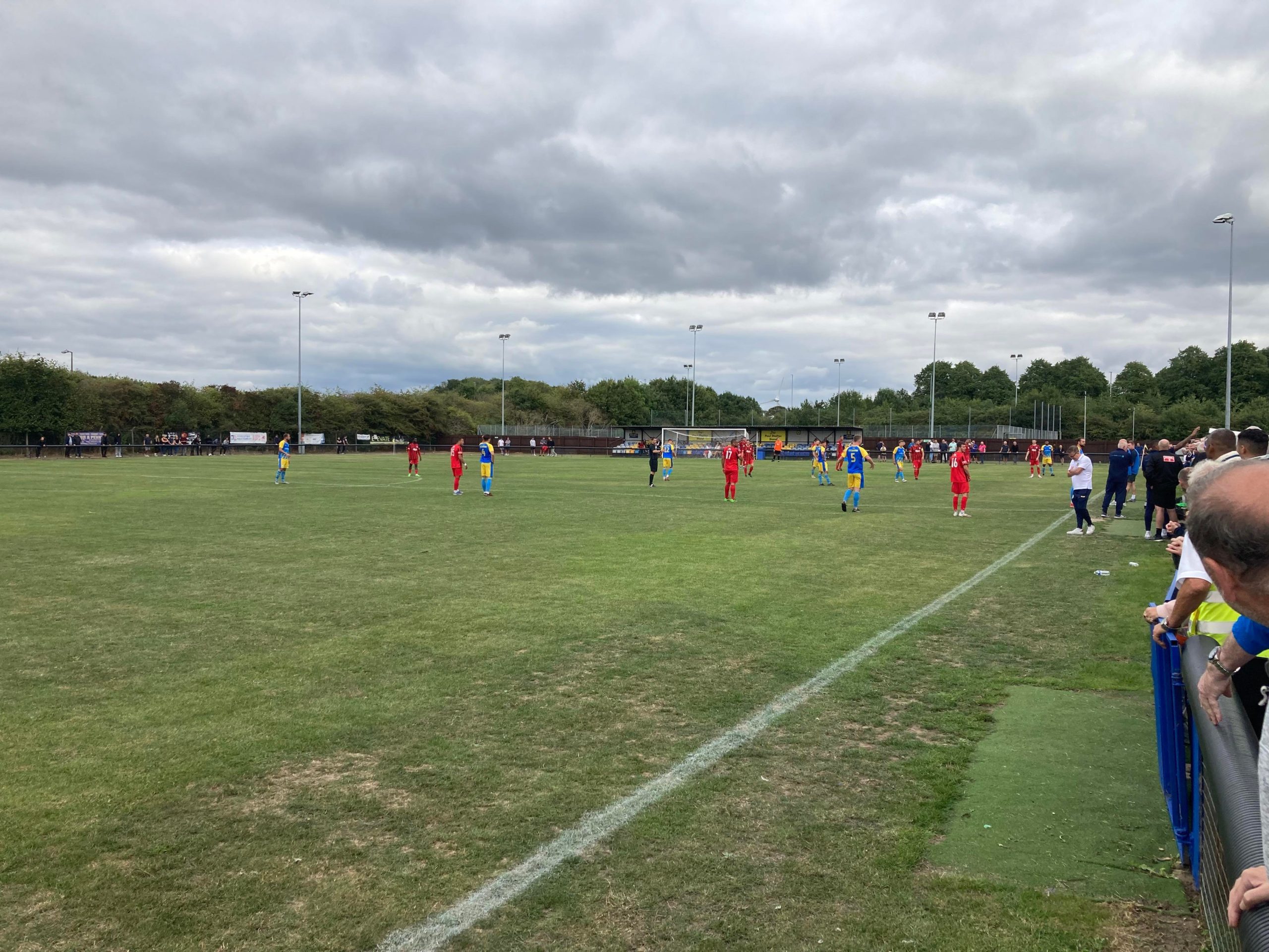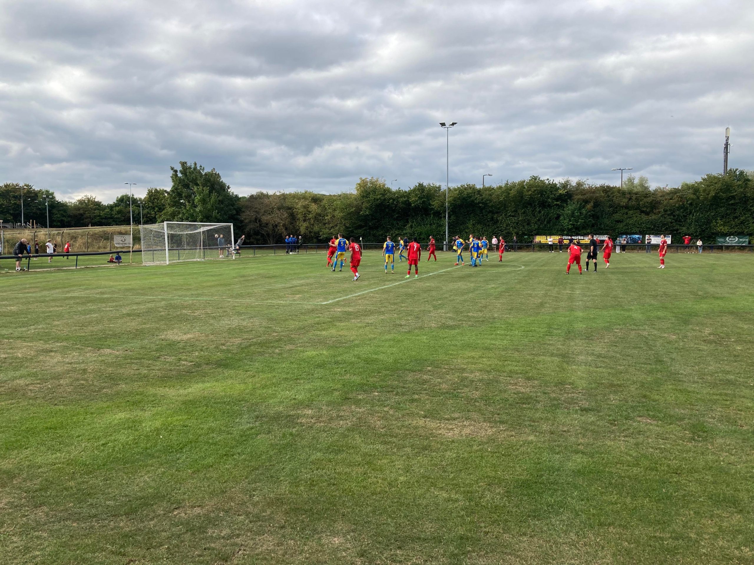 1 minute later and Long Eaton have a free kick on the halfway line now, it’s lumped into the box, it’s loose… The Carlton defence get there and play it back to the keeper… Who’s picked it up… That’s a back pass! Referee blows and it will be an indirect free kick in the box for Long Eaton, you don’t see those everyday! It’s set up for Alex Marshall… Blocked! The Referee has blown and it will be retaken, Alex Marshall again… Blocked and Carlton clear! Long Eaton continue to press but at half time it remains 1-0.