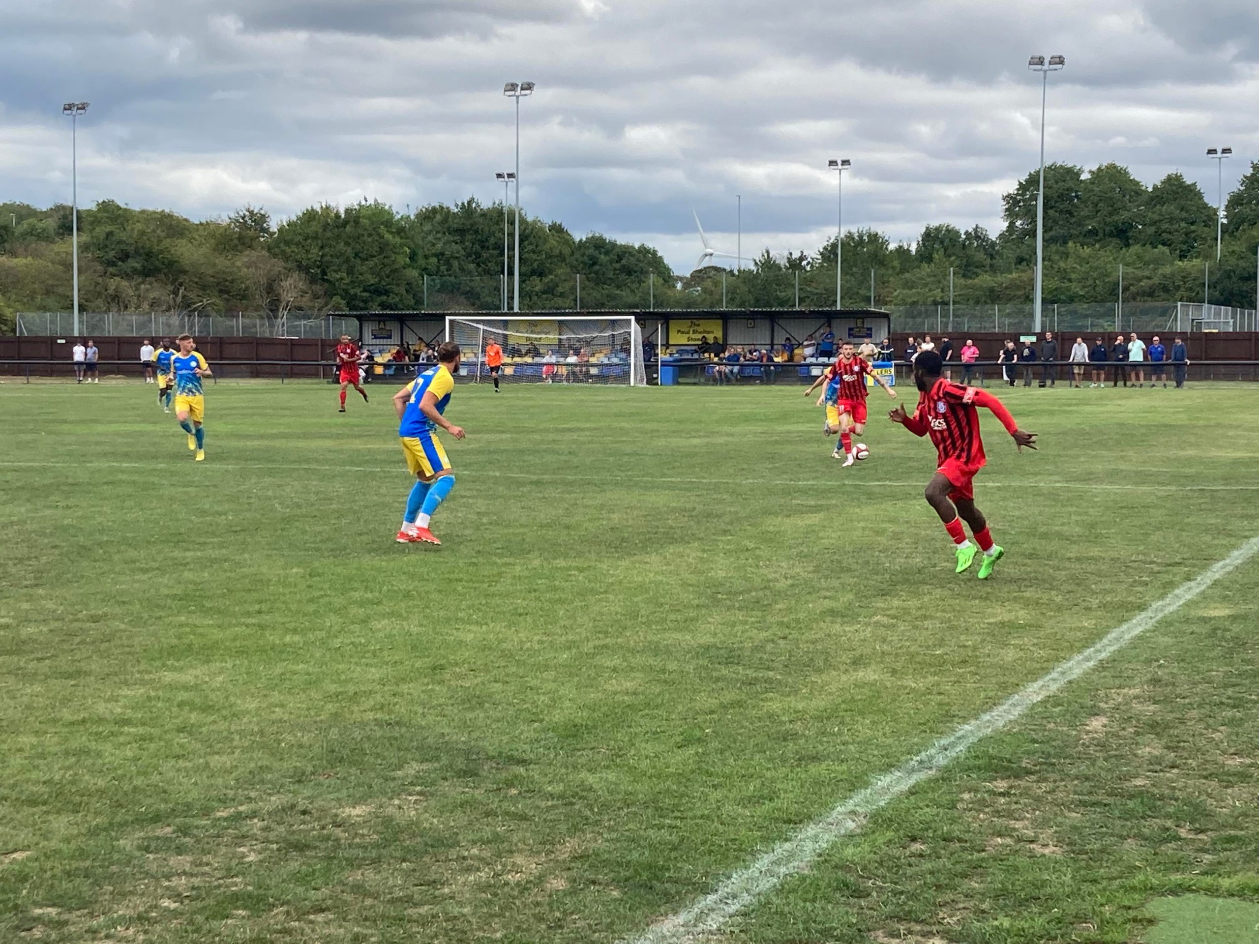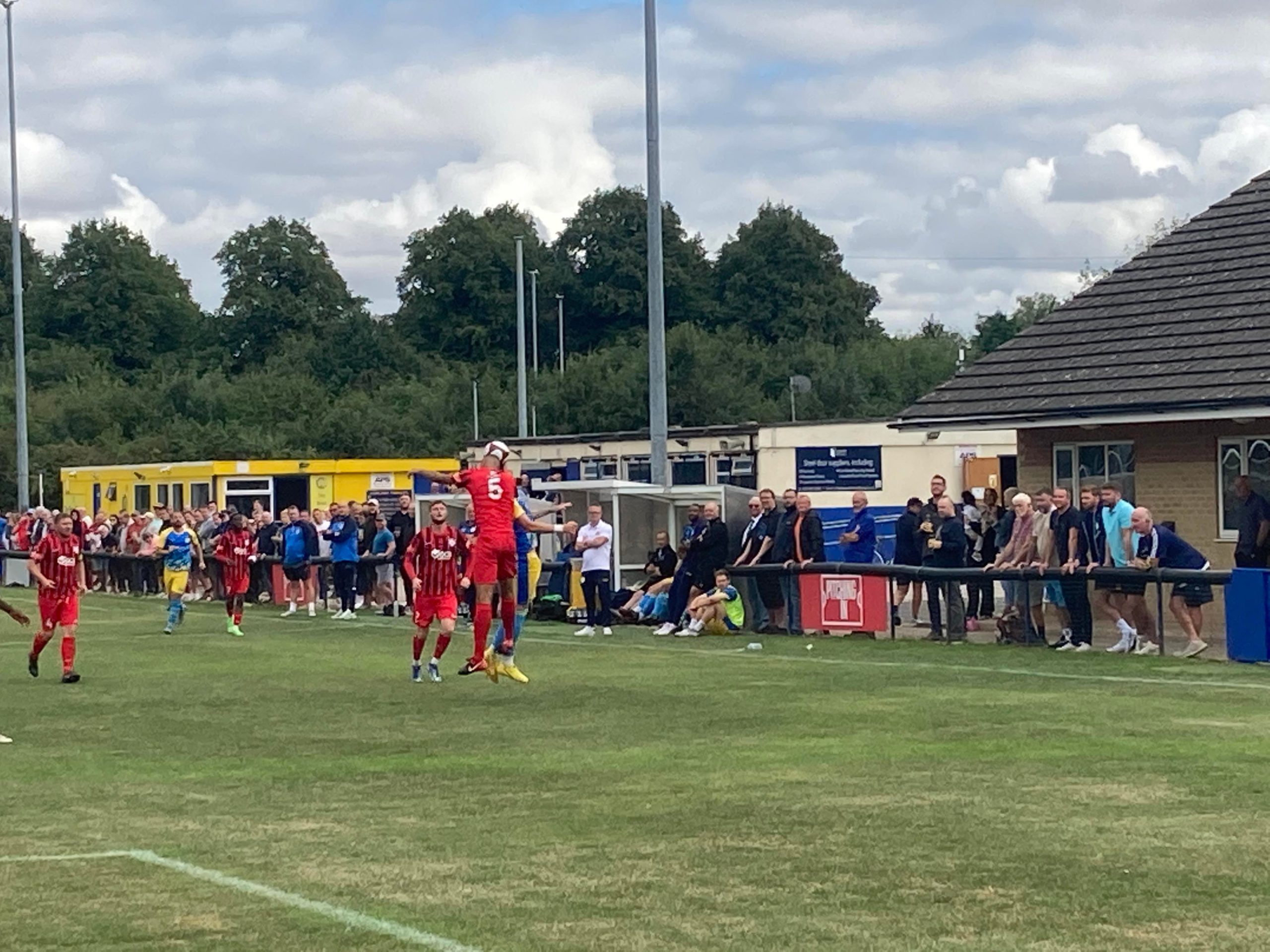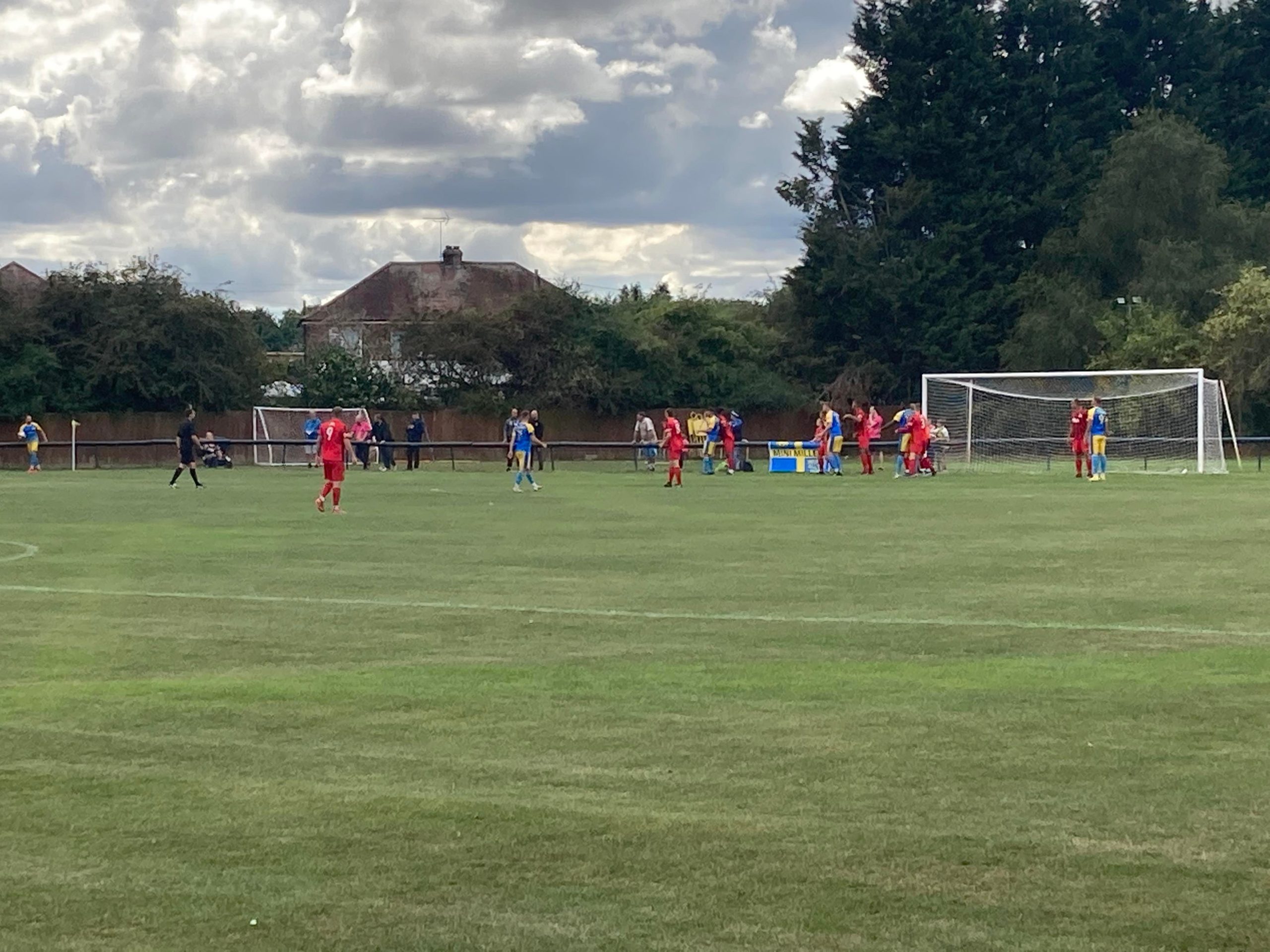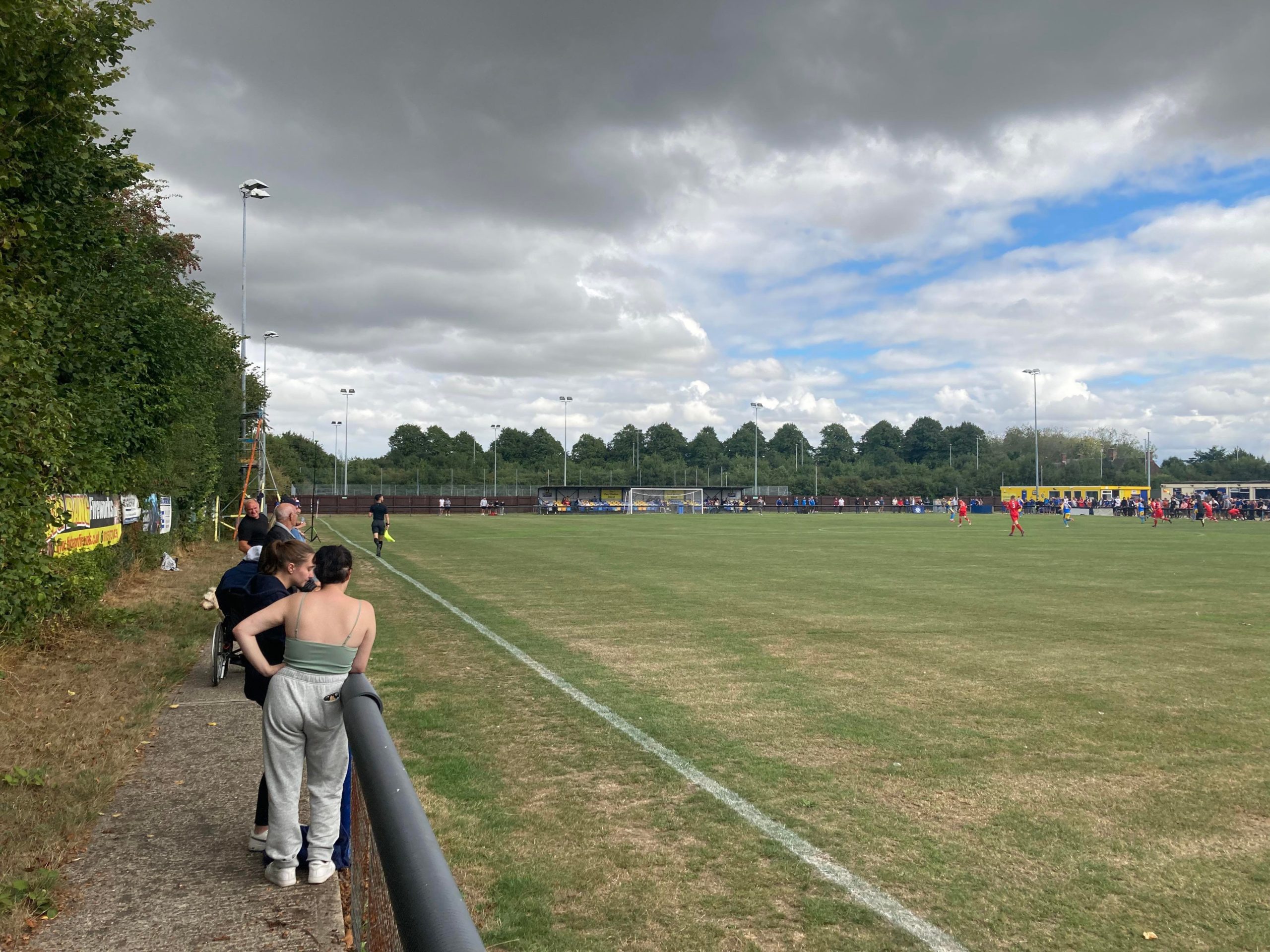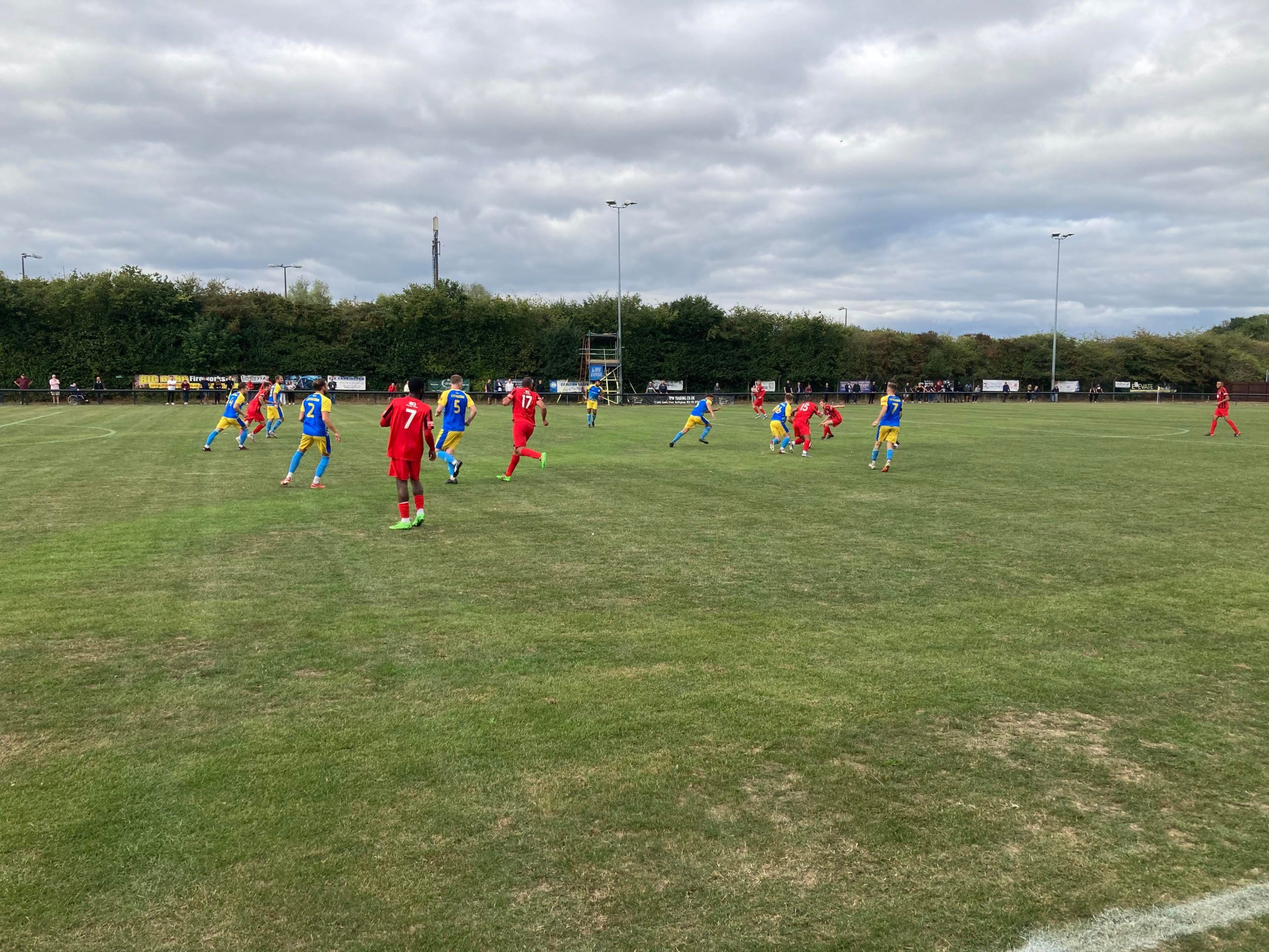 1 minute later and Long Eaton have a free kick on the halfway line now, it’s lumped into the box, it’s loose… The Carlton defence get there and play it back to the keeper… Who’s picked it up… That’s a back pass! Referee blows and it will be an indirect free kick in the box for Long Eaton, you don’t see those everyday! It’s set up for Alex Marshall… Blocked! The Referee has blown and it will be retaken, Alex Marshall again… Blocked and Carlton clear! Long Eaton continue to press but at half time it remains 1-0.