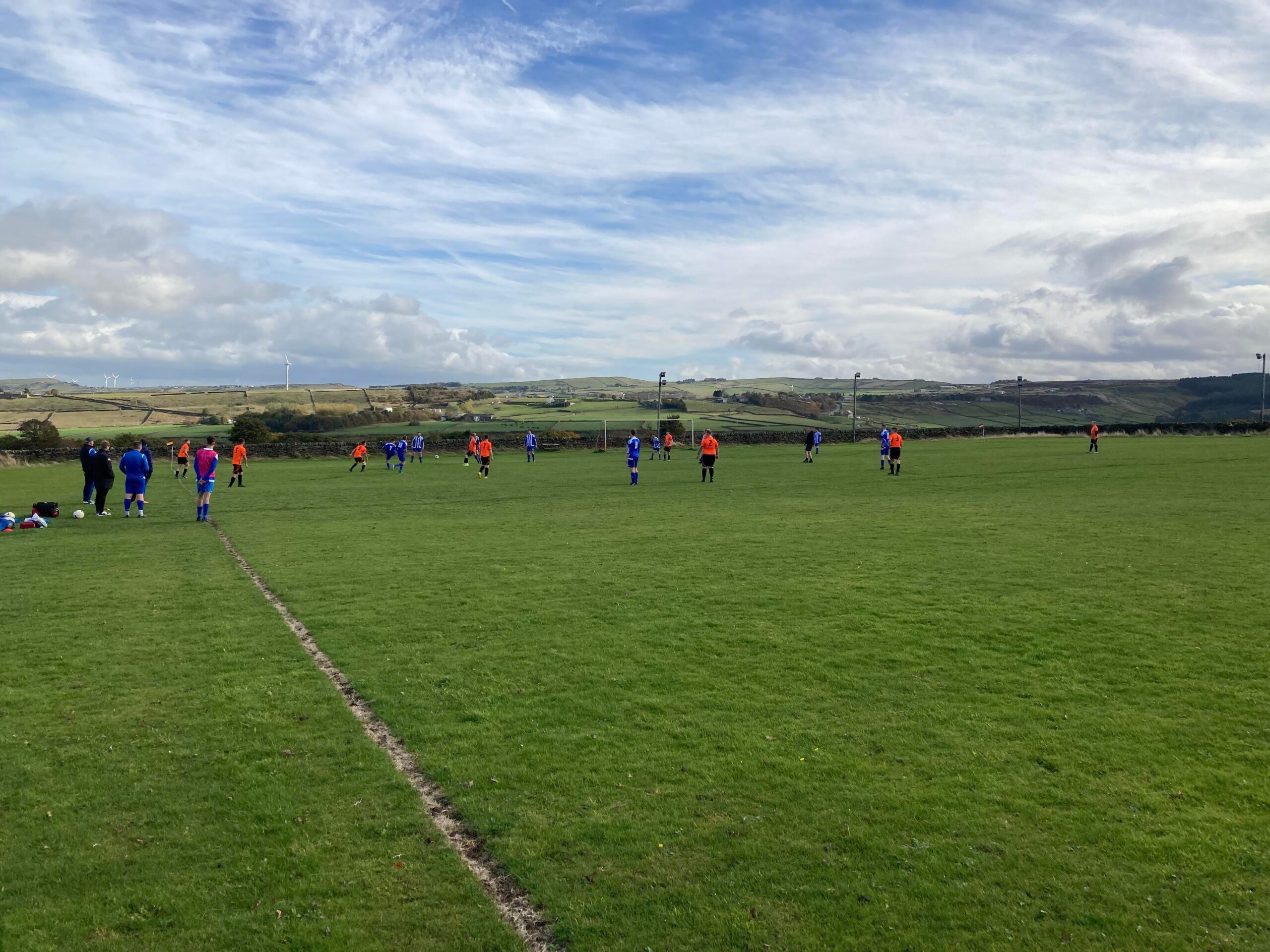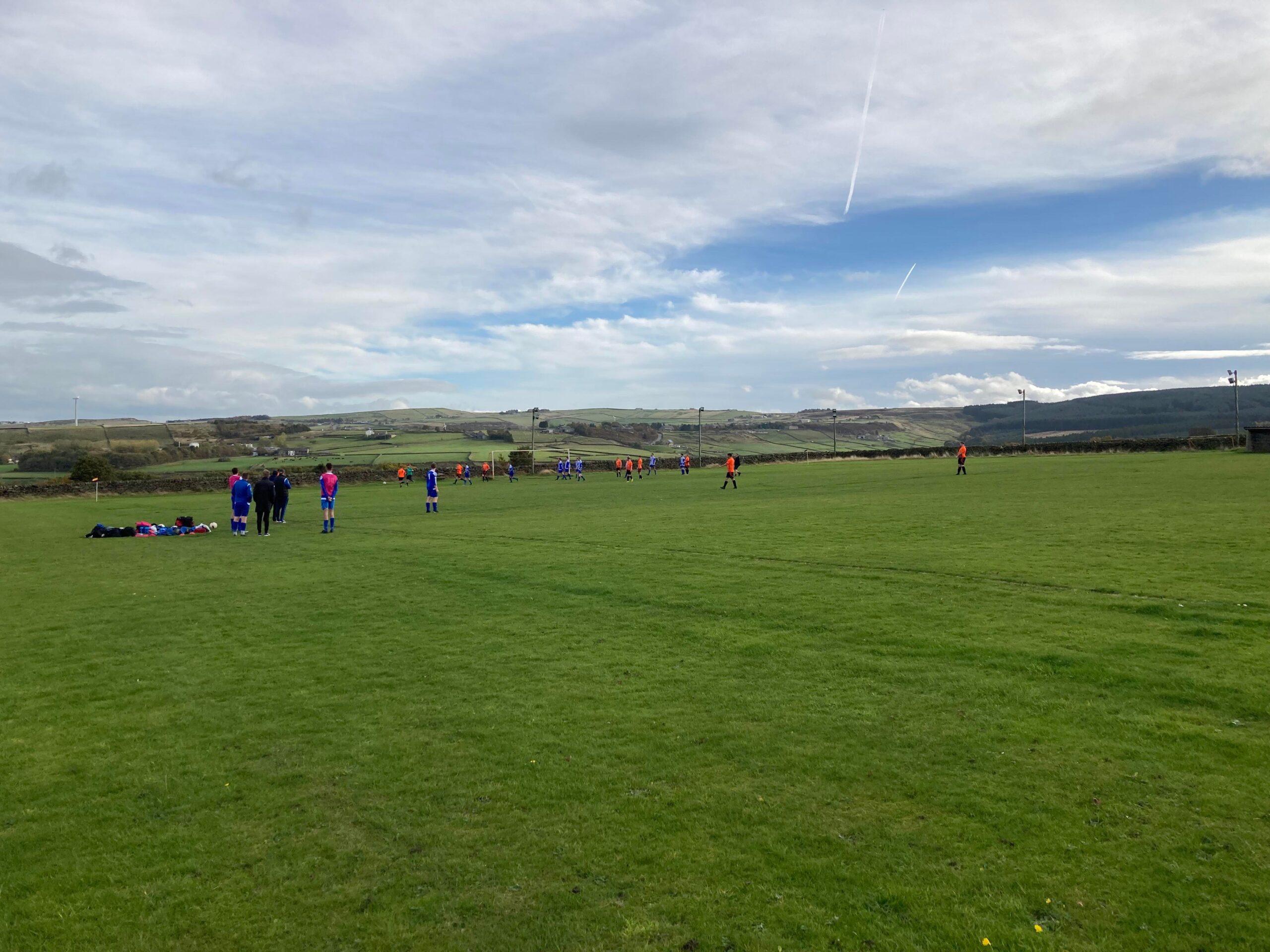 The short journey up into the hills of Huddersfield up some steep hills sees me here with about 45 minutes till kick off with the teams warming up. Is this one of the highest pitches in the country? The views are fantastic!