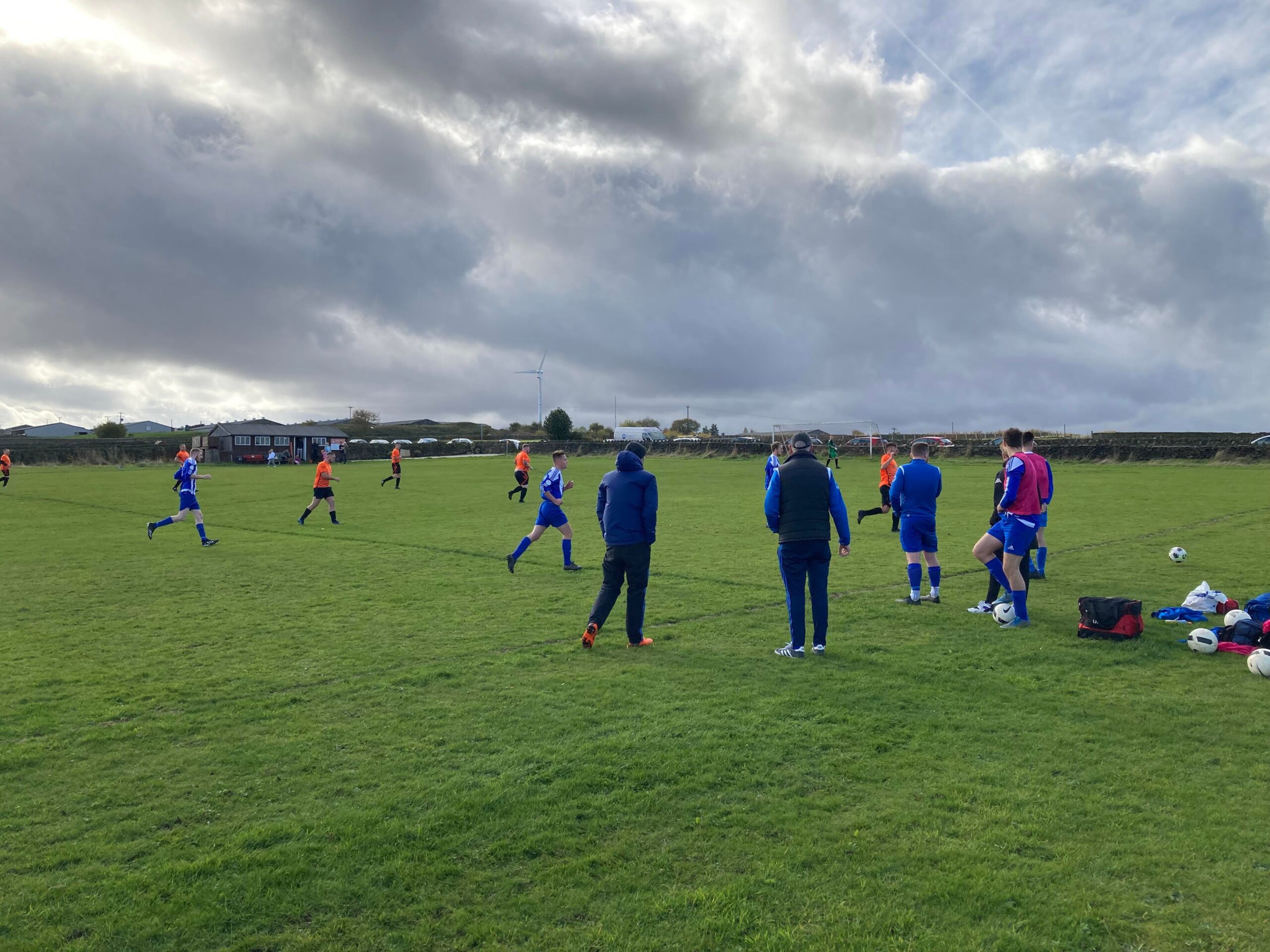 20 minutes on the watch now and Brighouse play down the right, it’s crossed in, it’s cleared but only to number 6 who chests it and shoots… And he scores!! Keeper went with his legs but should’ve gone with his hands and it’s past him! 0-1! Brighouse deservedly in front you have to say!
