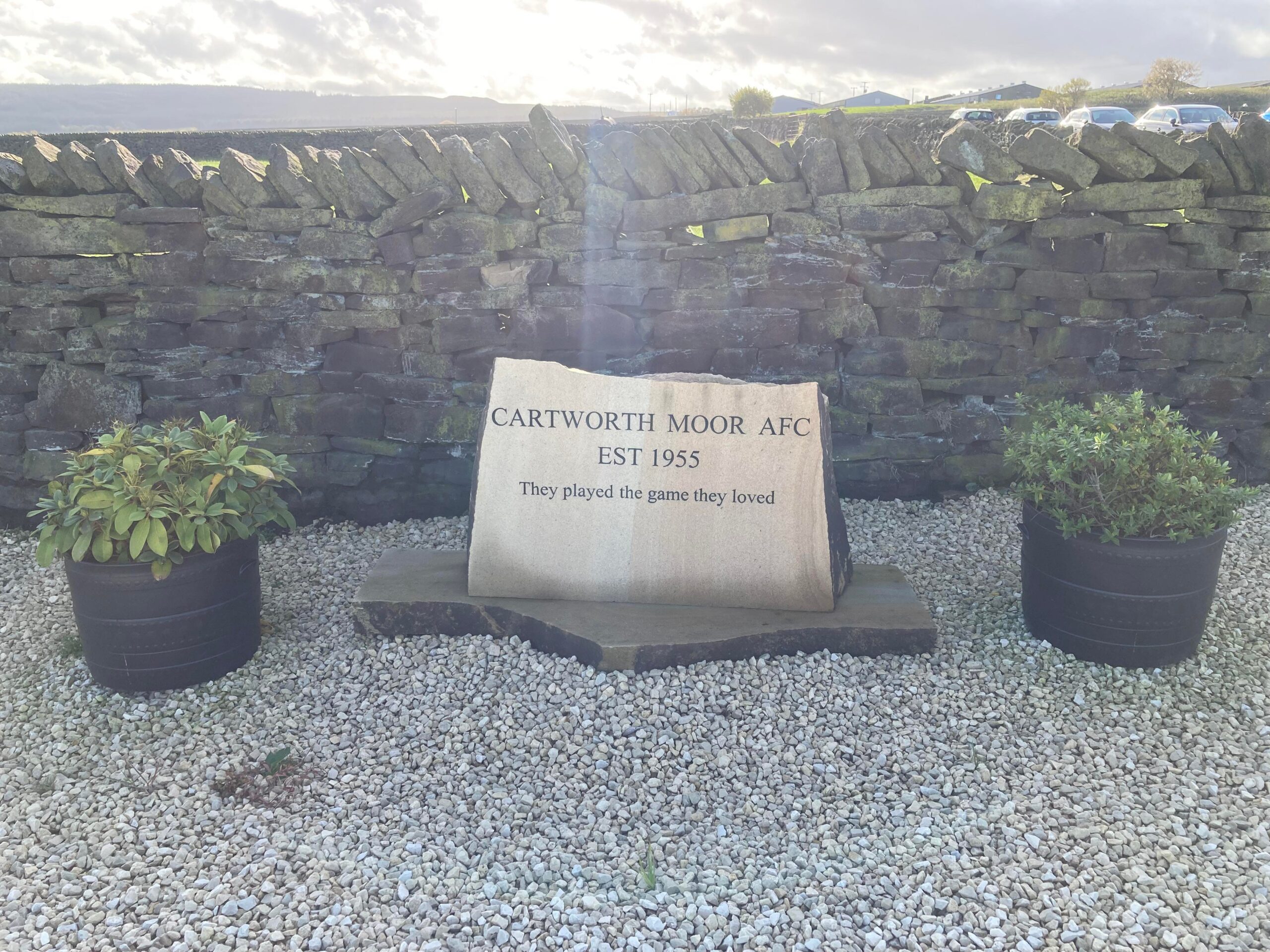 - The Ground: 8.5/10 – Absolutely glorious ground!! Beautiful scenery here at Cartworth!! A little stand like dugout and a plaque with “They played the game they loved” which gives it a bit of character. Not the biggest fan of grounds with pitches on a slope but this really is a beautiful setup!