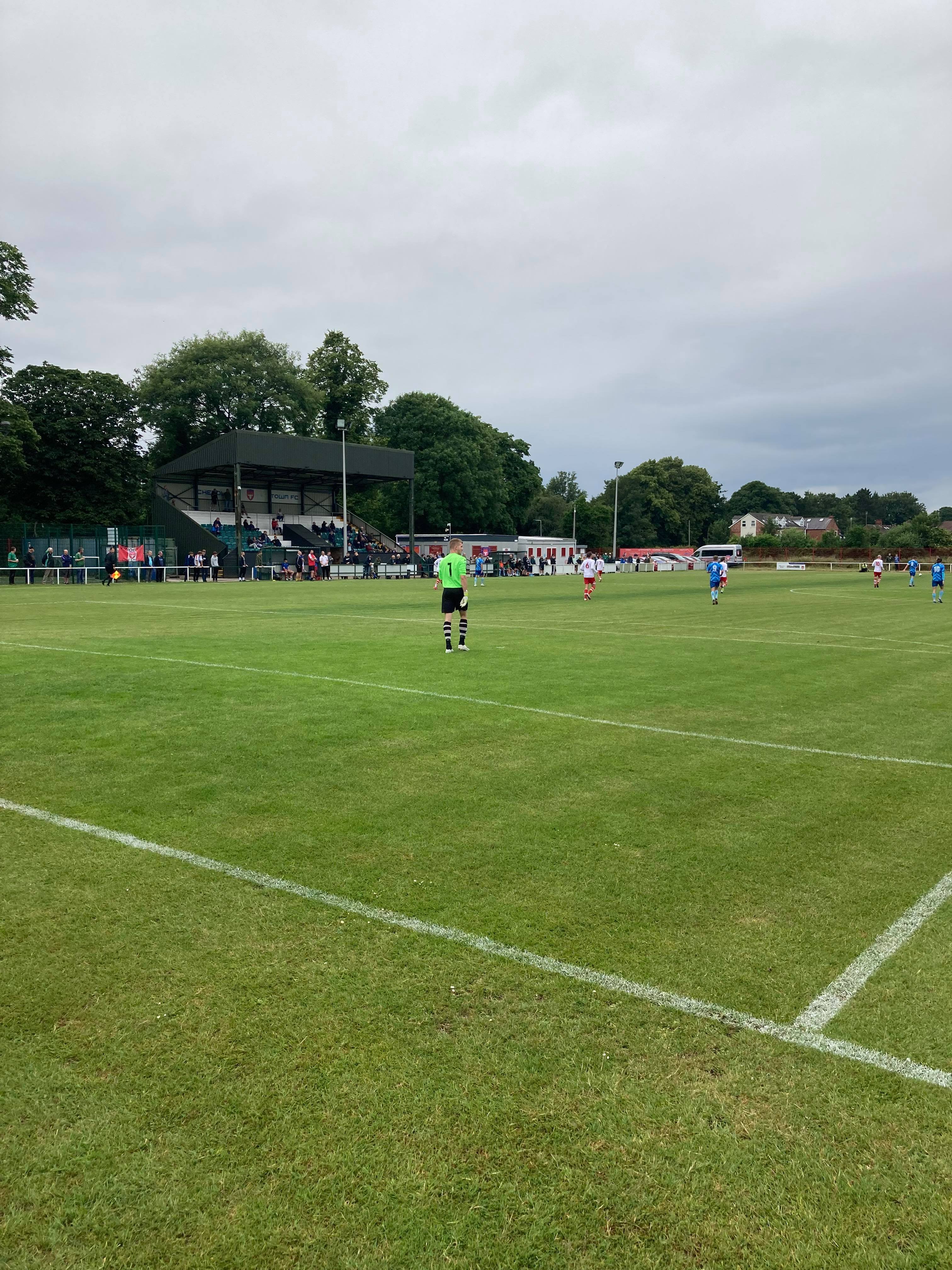 Train to Stockport and then bus into Cheadle and here we are. £6.50 ticket to get into this pre-season game! Emphatic! Plenty of green Northwich shirts on show today, let’s hope they bring some atmosphere too!