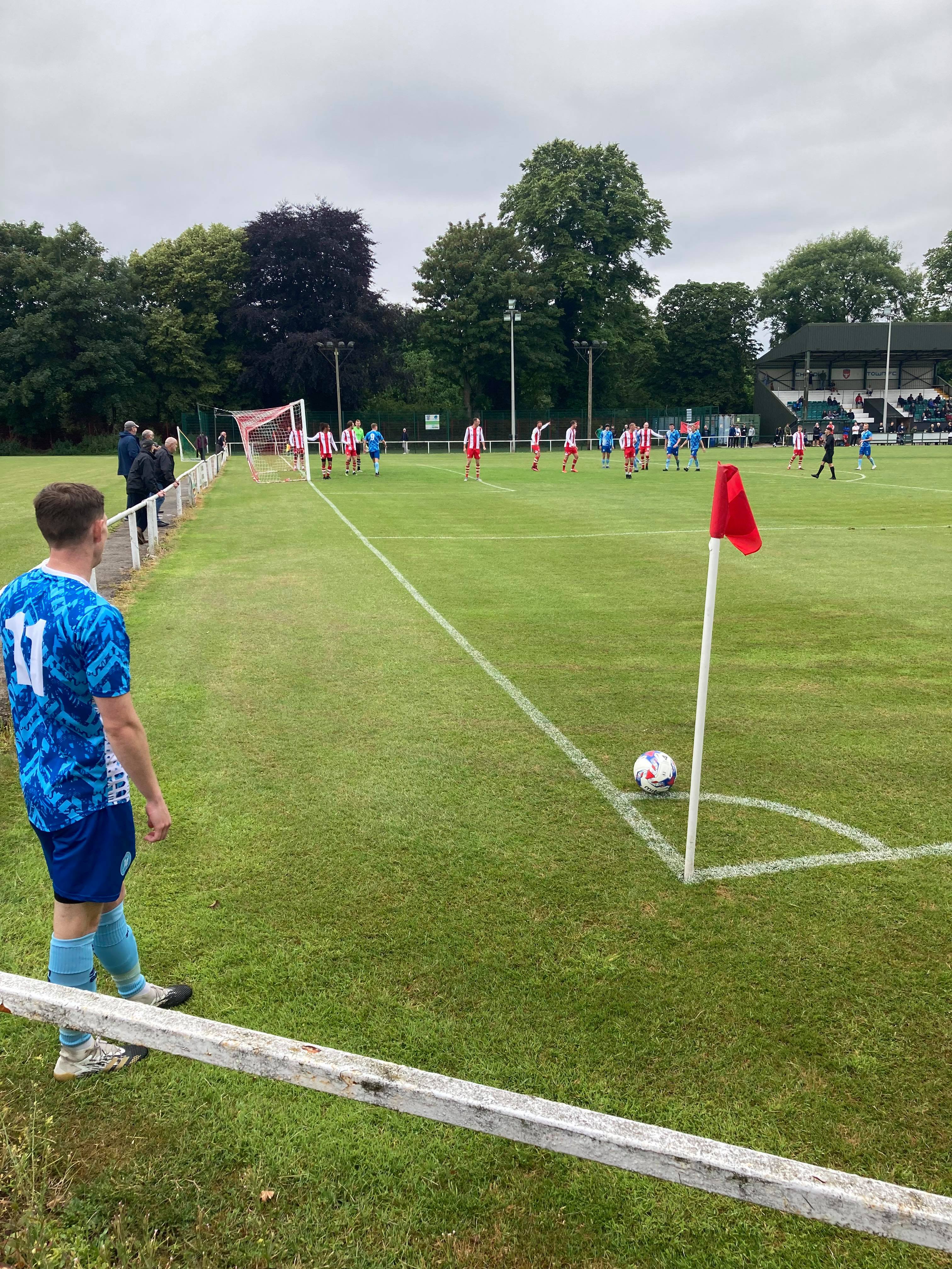 17th minute now and Cheadle have a free kick in a crossing position on the right, in comes the cross, number 10 has broken free at the back post… He can’t divert his shot goalward but it goes into the air to be attacked… It gets defended by Northwich and they head clear.