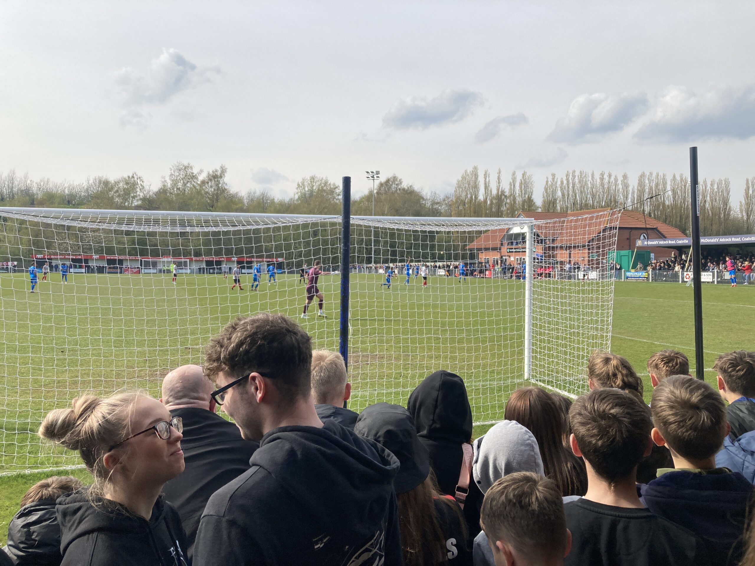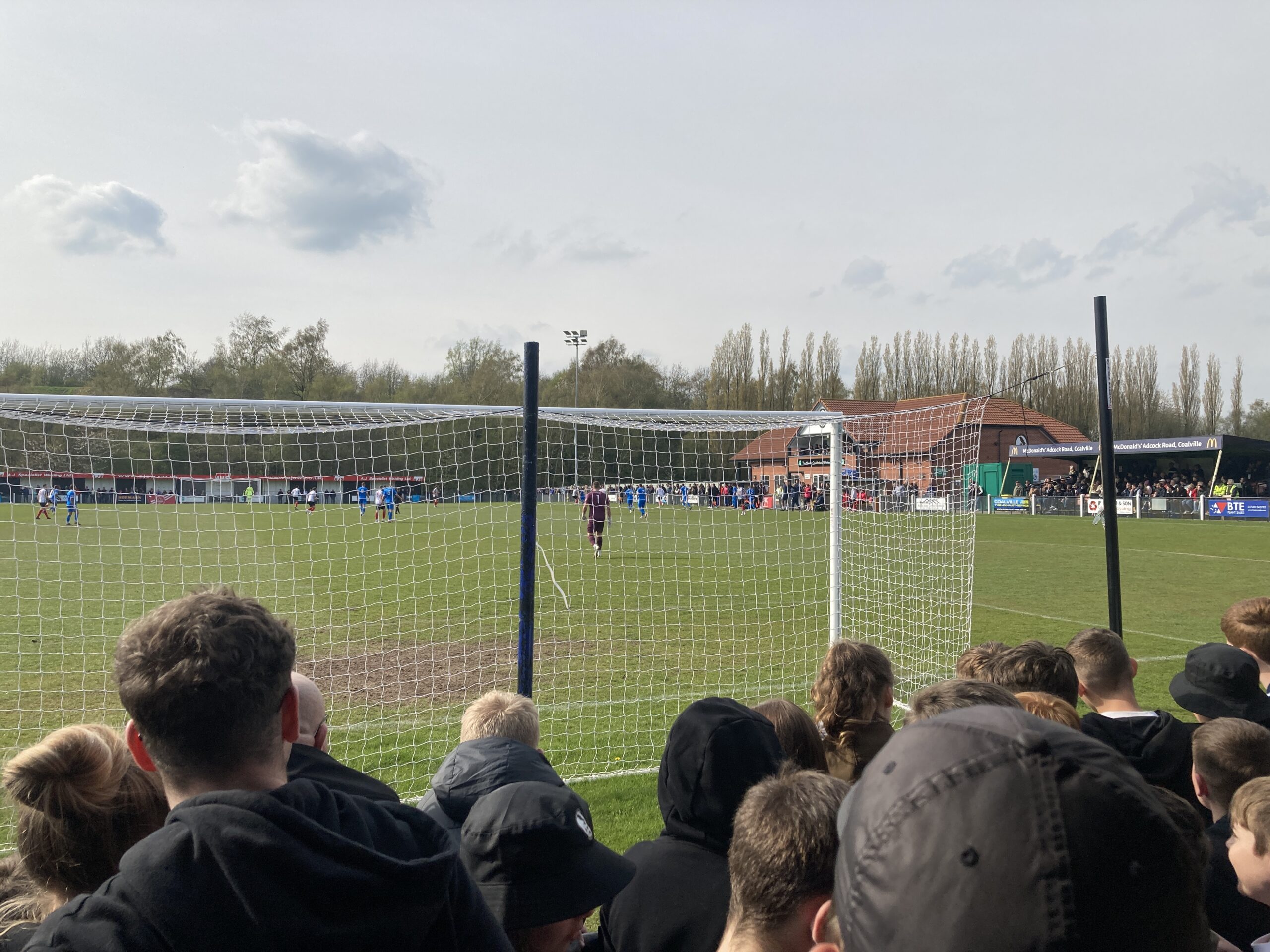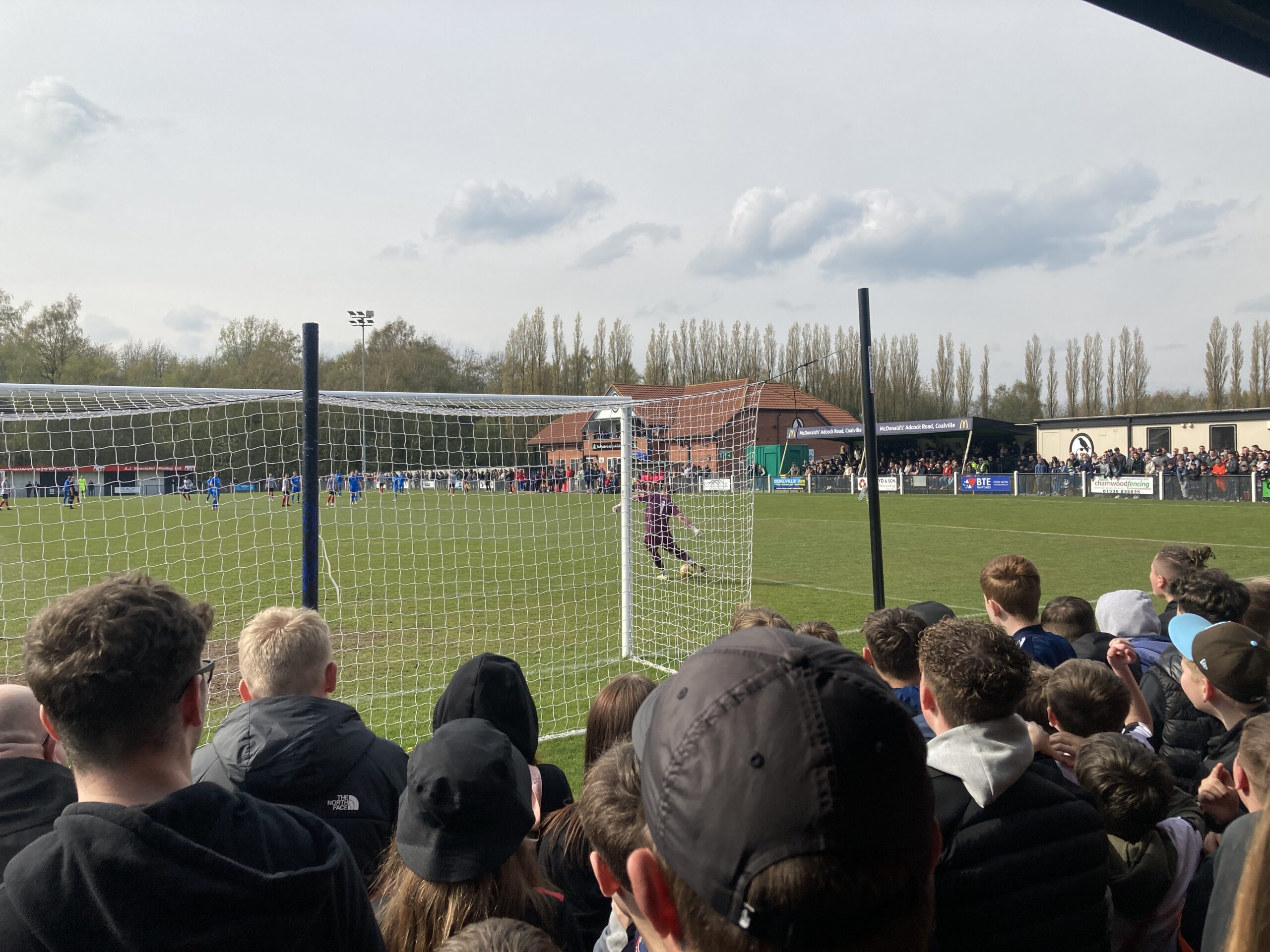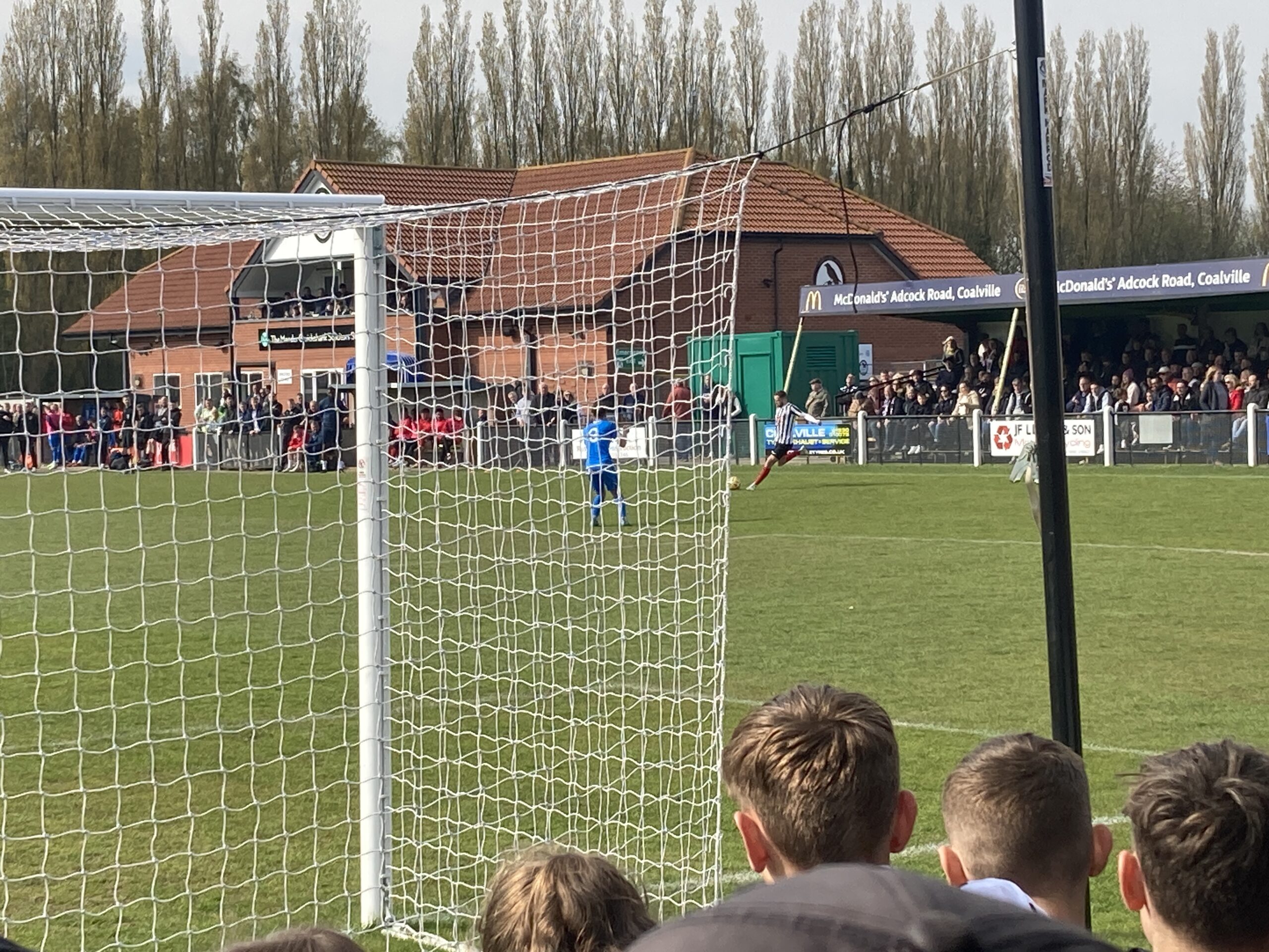 26th minute and Coalville come forward again, George Wilson drives forward and he goes for goal from 25 yards… AND HE’S FOUND THE BOTTOM CORNER!!! There’s one!! Carnage again in the shed end!!