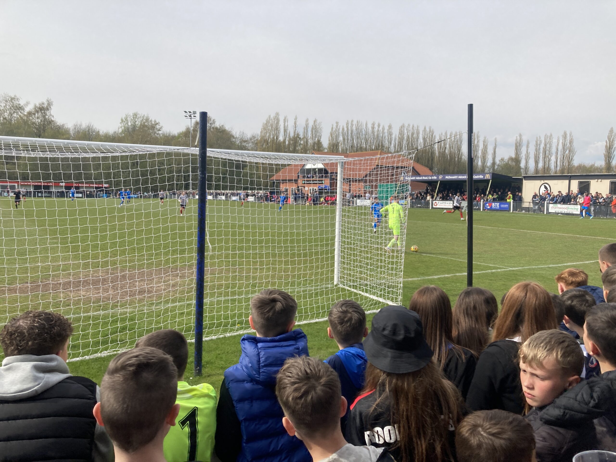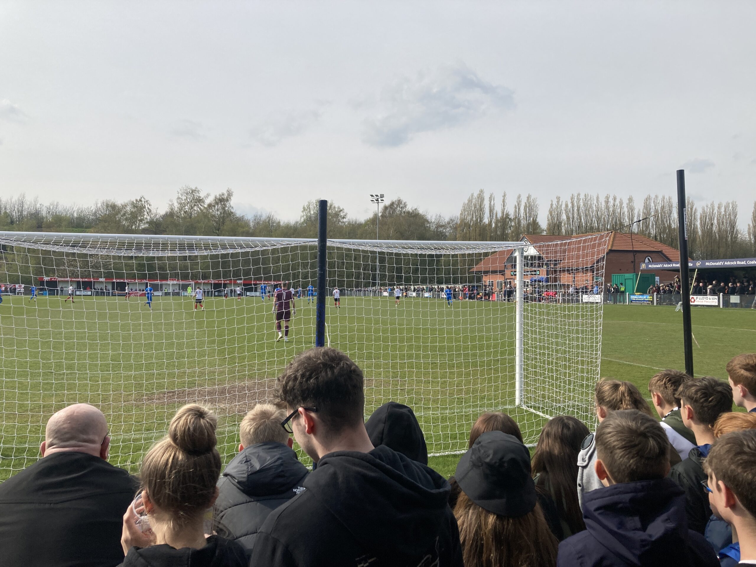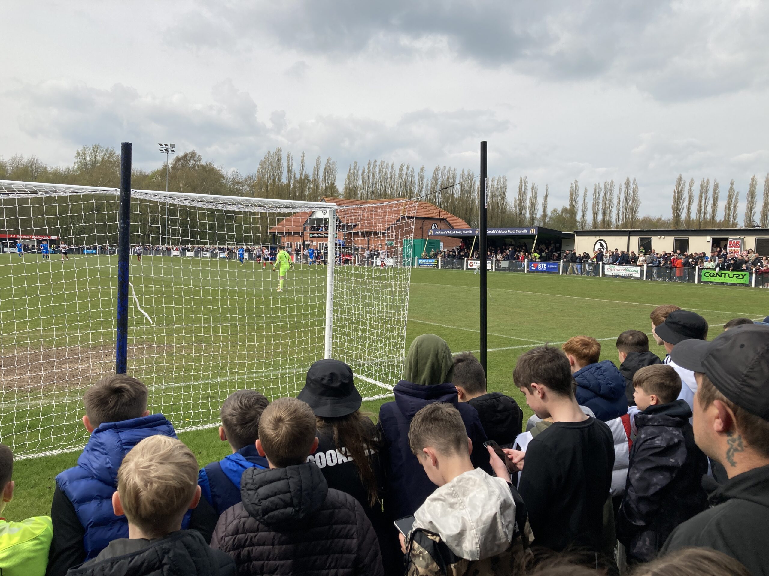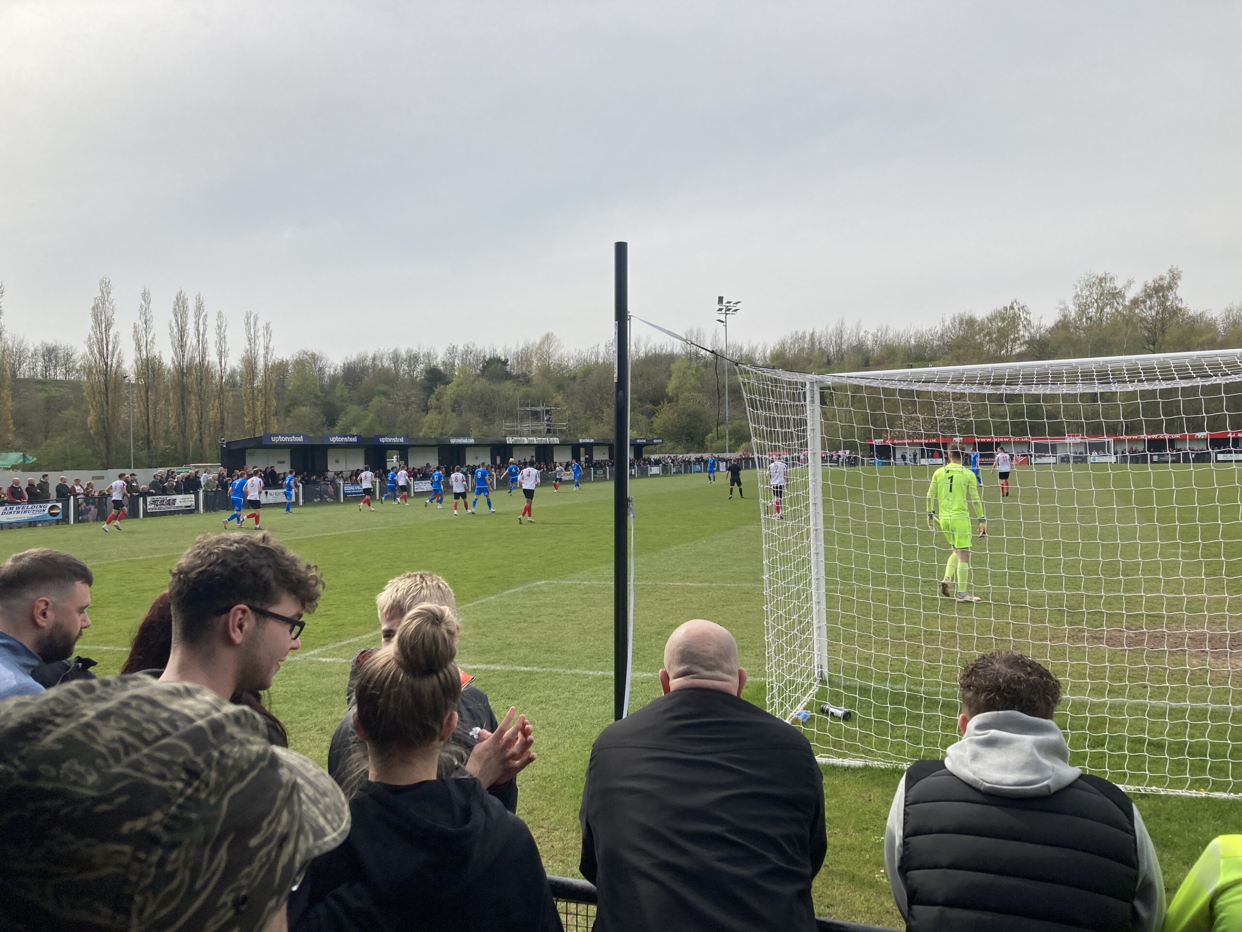 26th minute and Coalville come forward again, George Wilson drives forward and he goes for goal from 25 yards… AND HE’S FOUND THE BOTTOM CORNER!!! There’s one!! Carnage again in the shed end!!