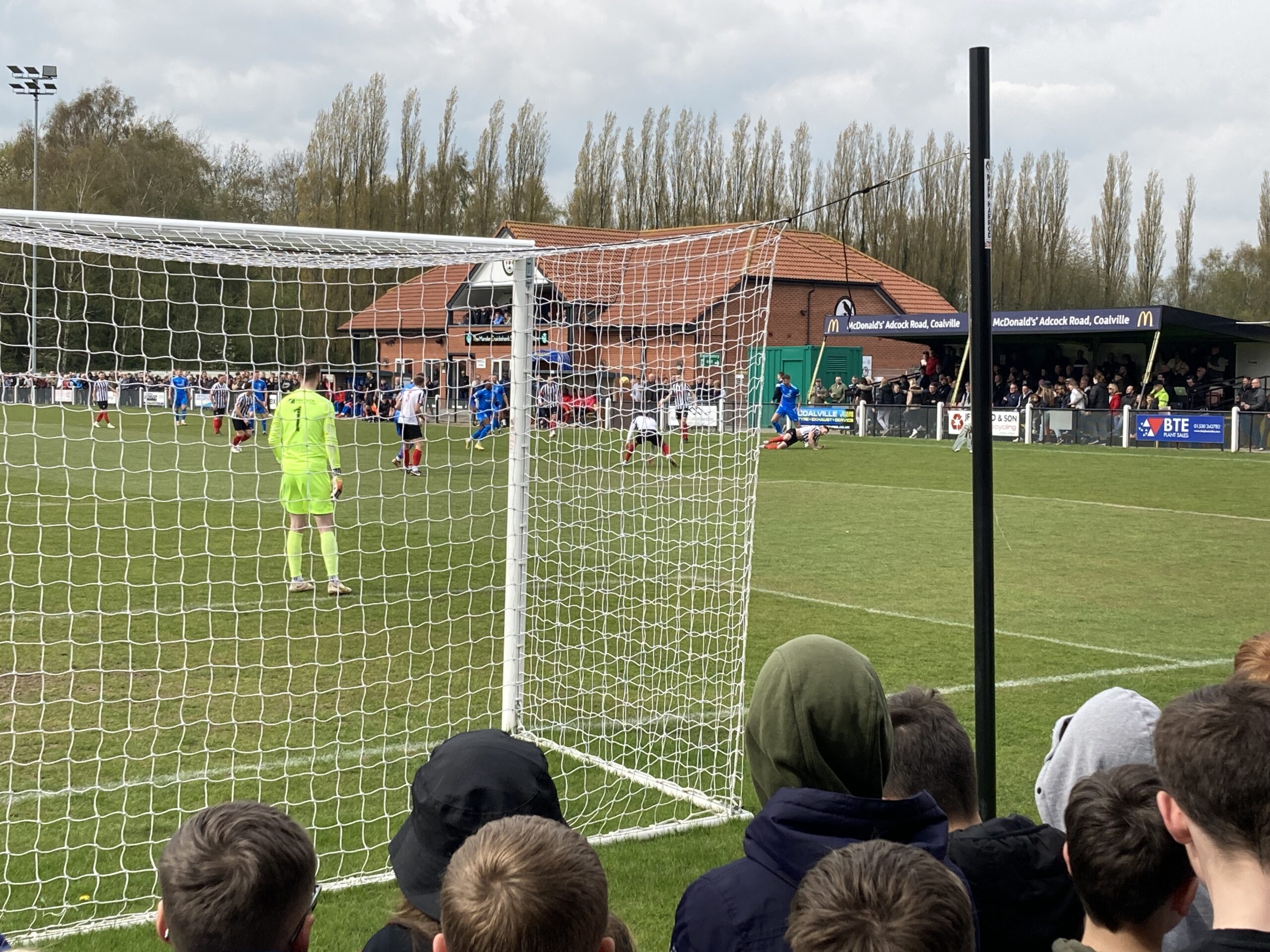 56th minute and Coalville play down the left, it’s played across to Tim Berridge, he takes a touch and shoots… Oooooh! He’s dragged it wide!