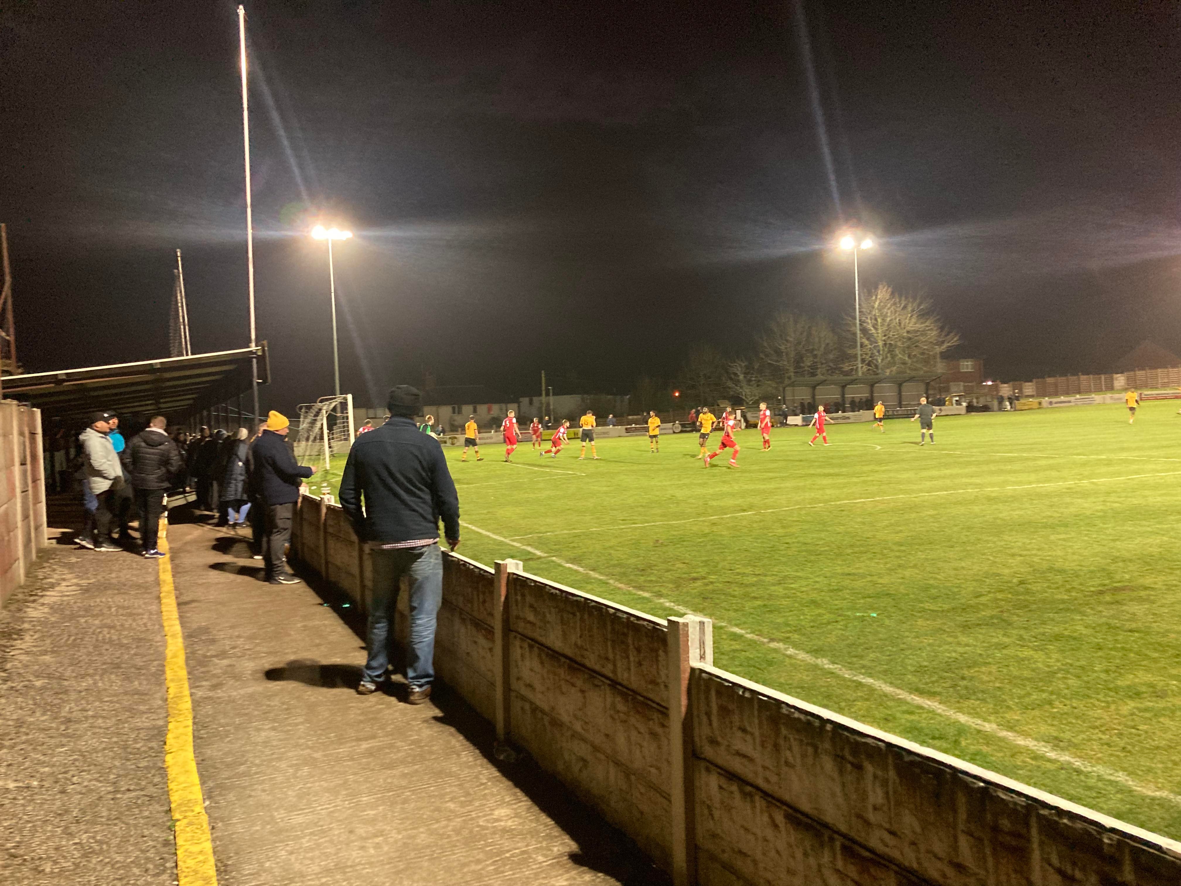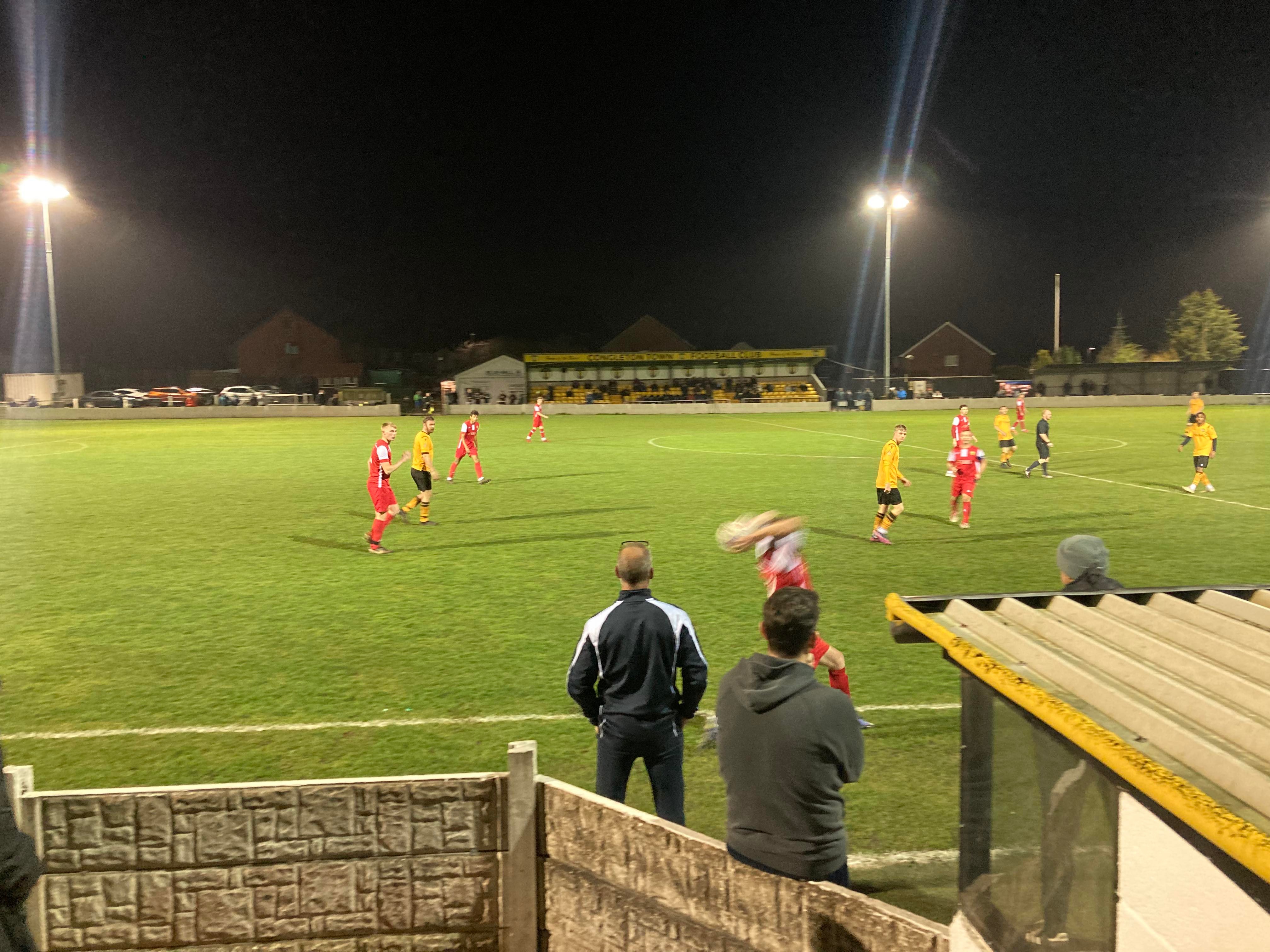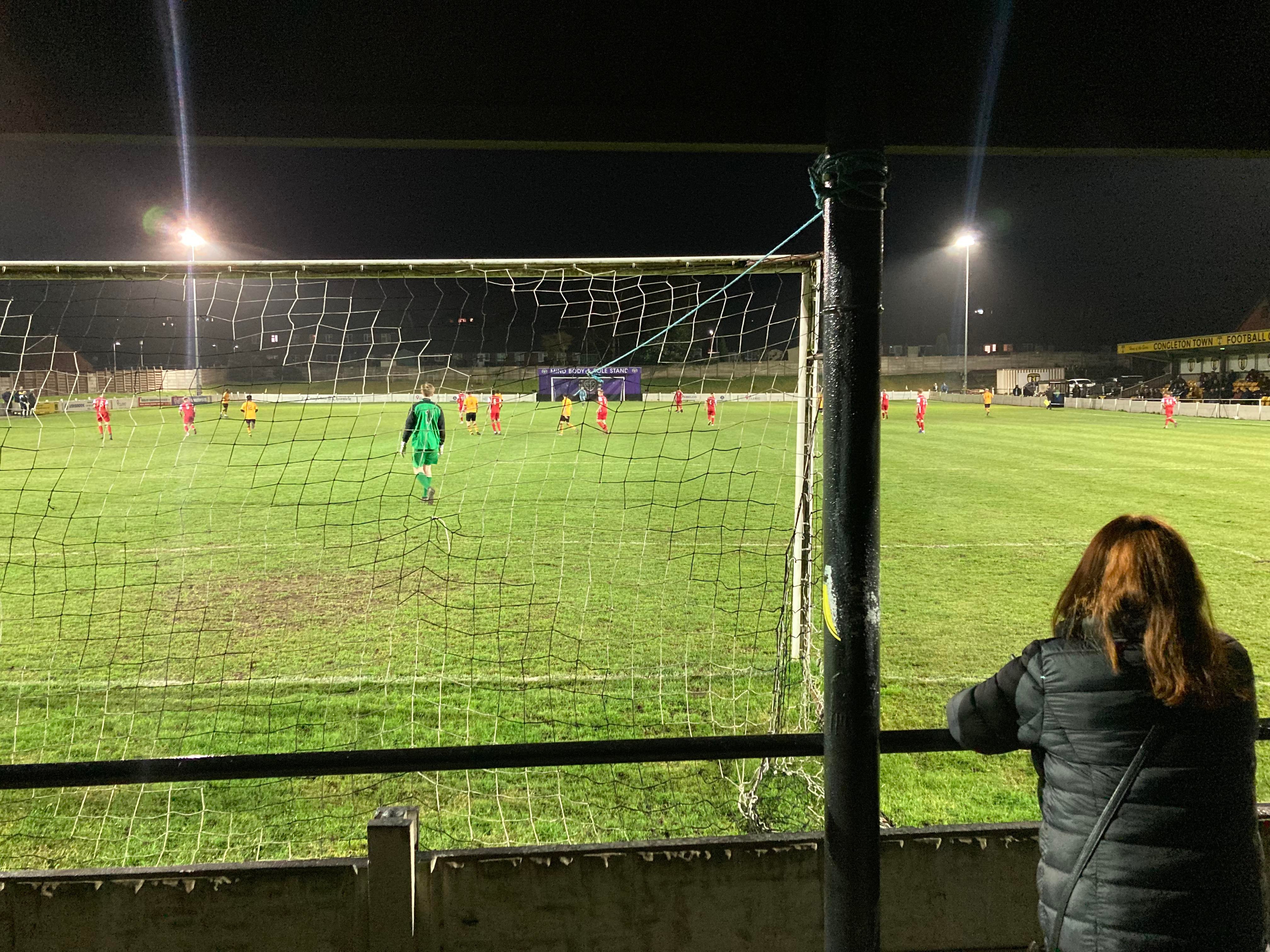 Great to see the Oldham boys in town again tonight in Andy, Jack and Jake! 13th minute and Congleton play it out wide to the right to Will Buckley and he drives into the box and he gets a cross in towards Daniel Needham at the far post totally unmarked… And he heads home!!! Congleton deservedly in front!! 1-0!! “Come on you bears!!” The Congleton faithful in good spirits now!!