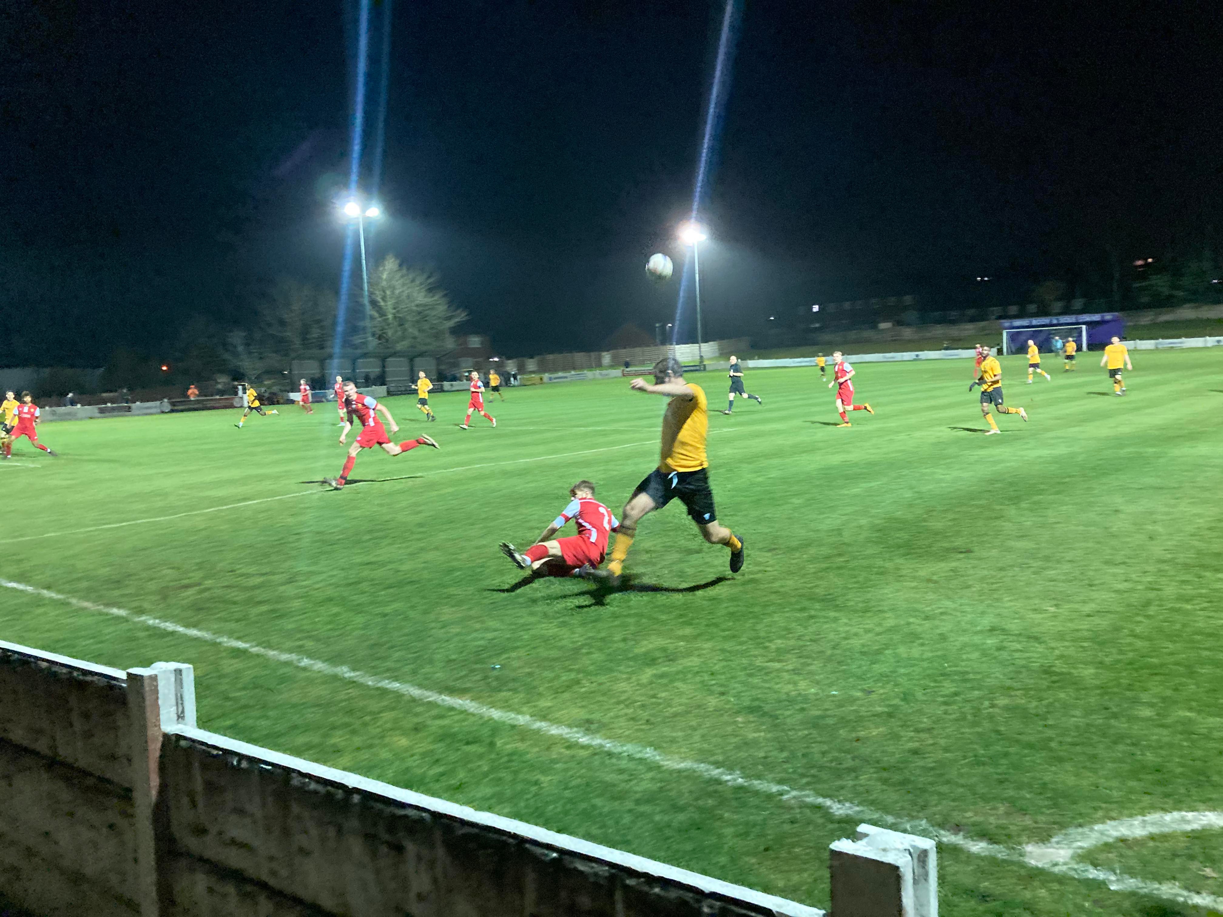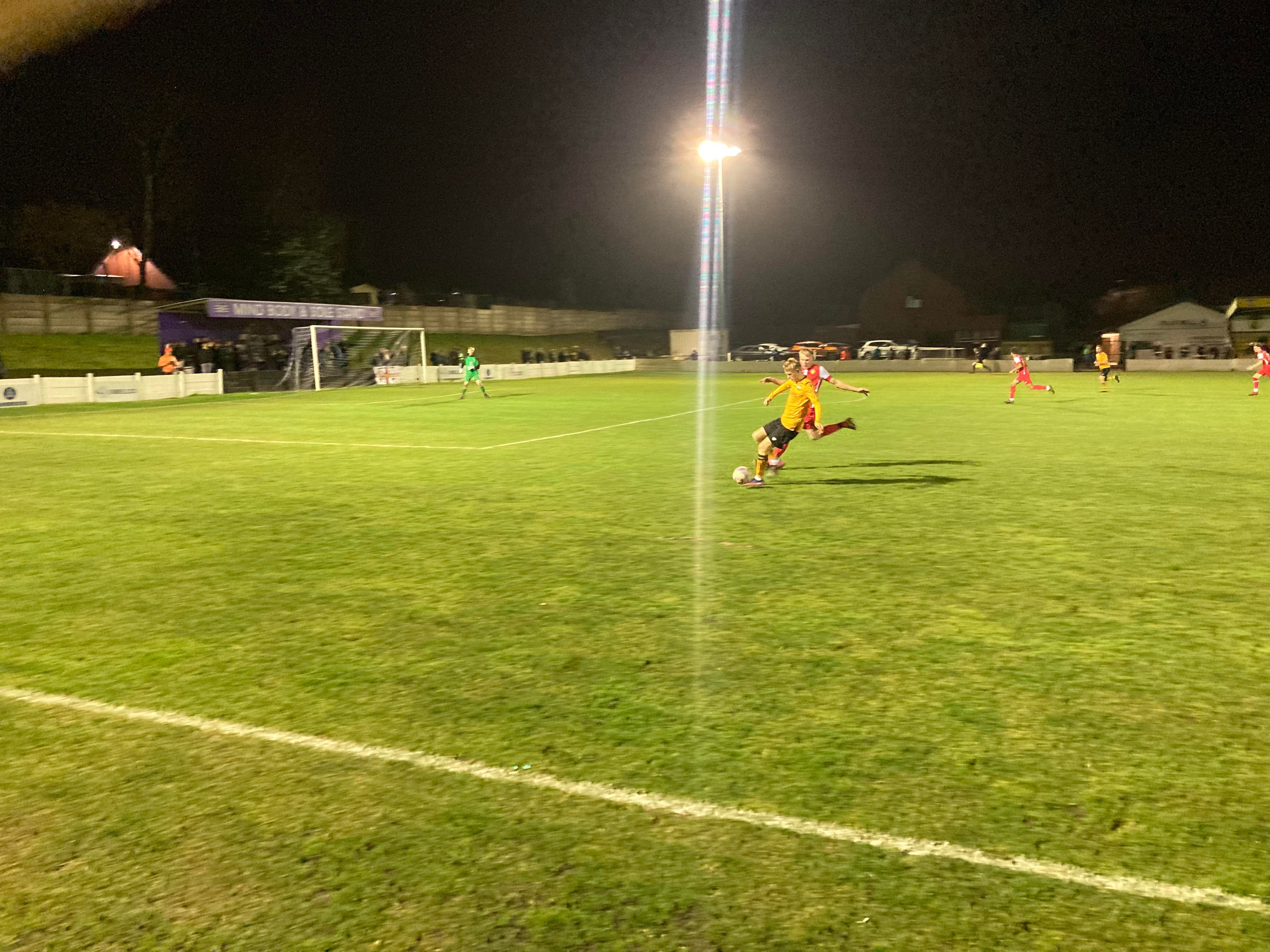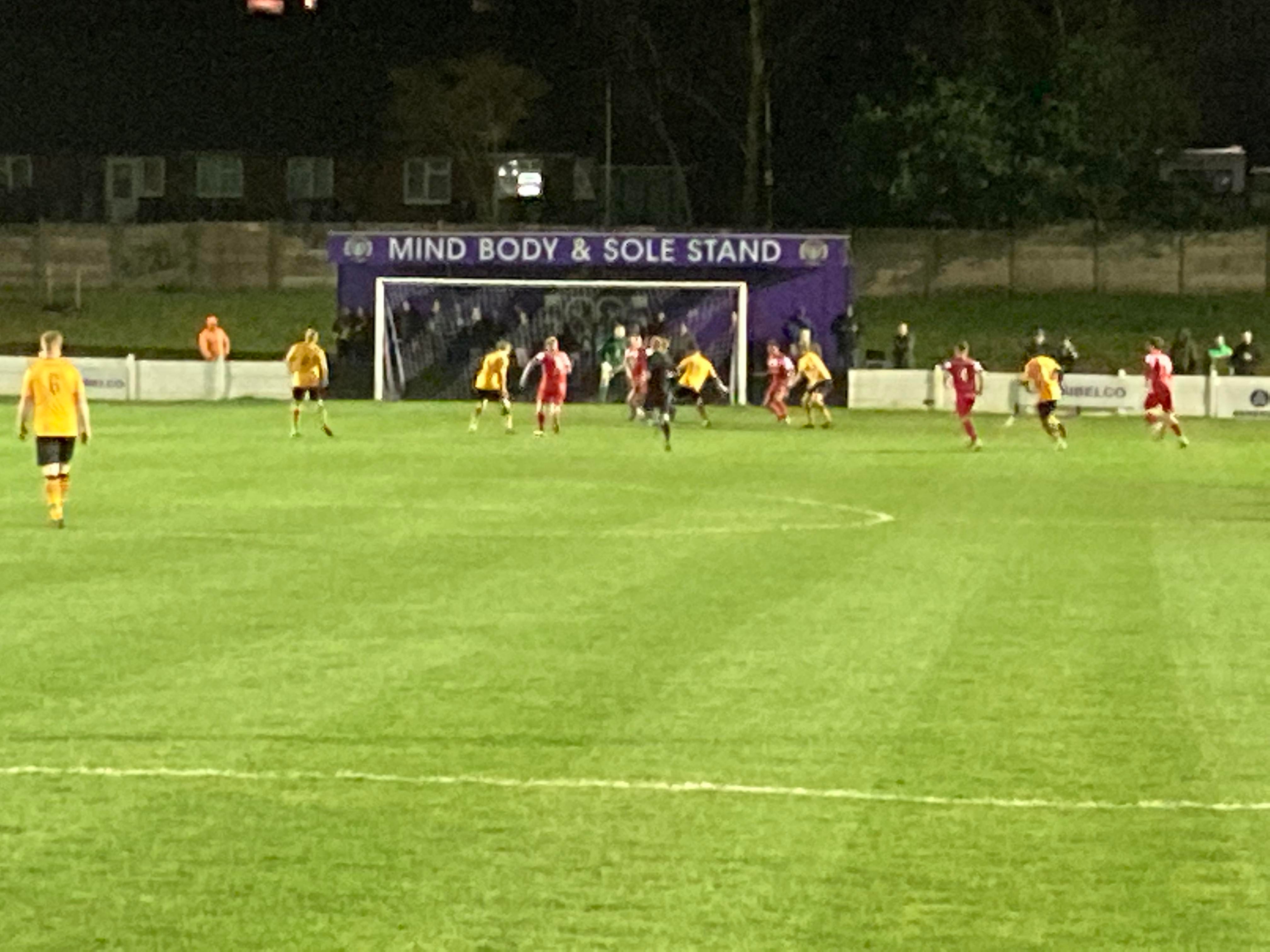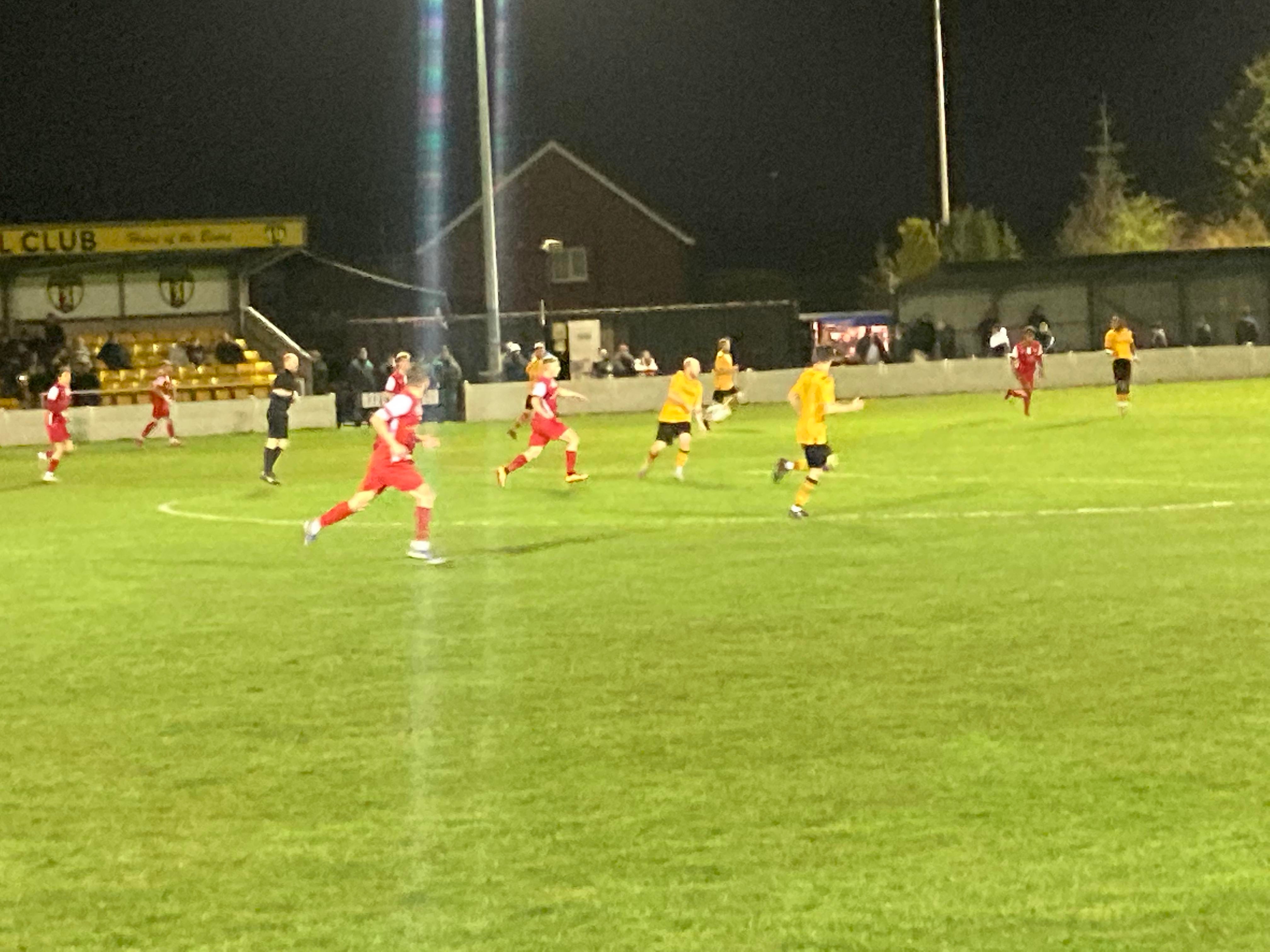 Great to see the Oldham boys in town again tonight in Andy, Jack and Jake! 13th minute and Congleton play it out wide to the right to Will Buckley and he drives into the box and he gets a cross in towards Daniel Needham at the far post totally unmarked… And he heads home!!! Congleton deservedly in front!! 1-0!! “Come on you bears!!” The Congleton faithful in good spirits now!!
