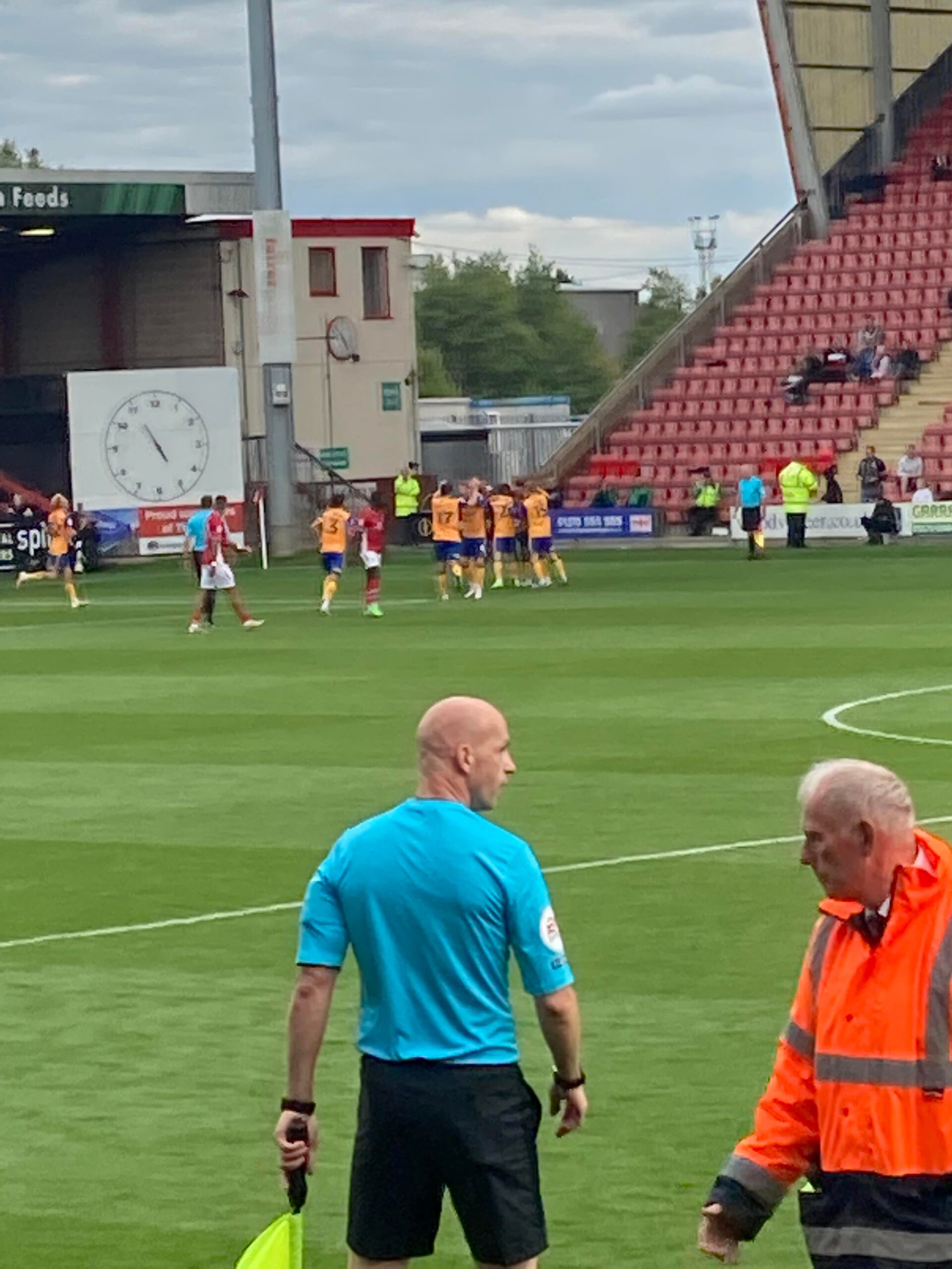 62nd minute and Mansfield play a long throw in into the box… It’s headed away but only to Ollie Clarke who goes for the volley… OH! Brilliant save!! Corner again for Mansfield, in it comes again… Cleared but only to George Maris, Mansfield lose possession and give away a free kick.