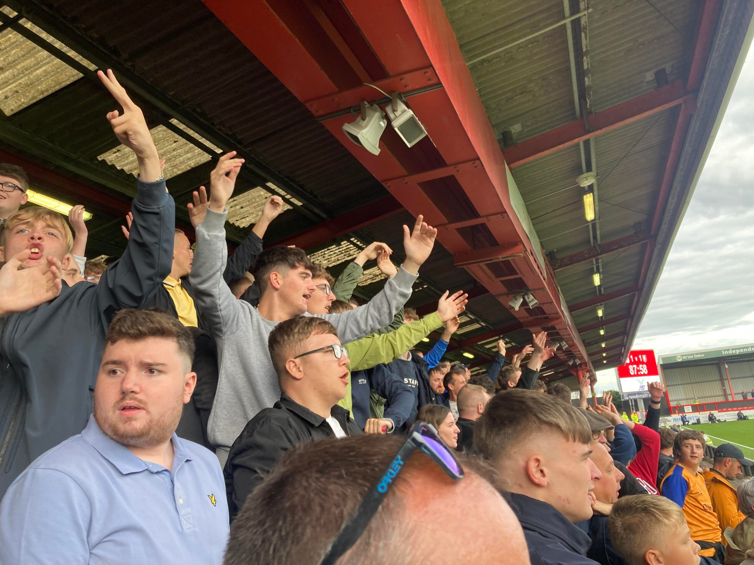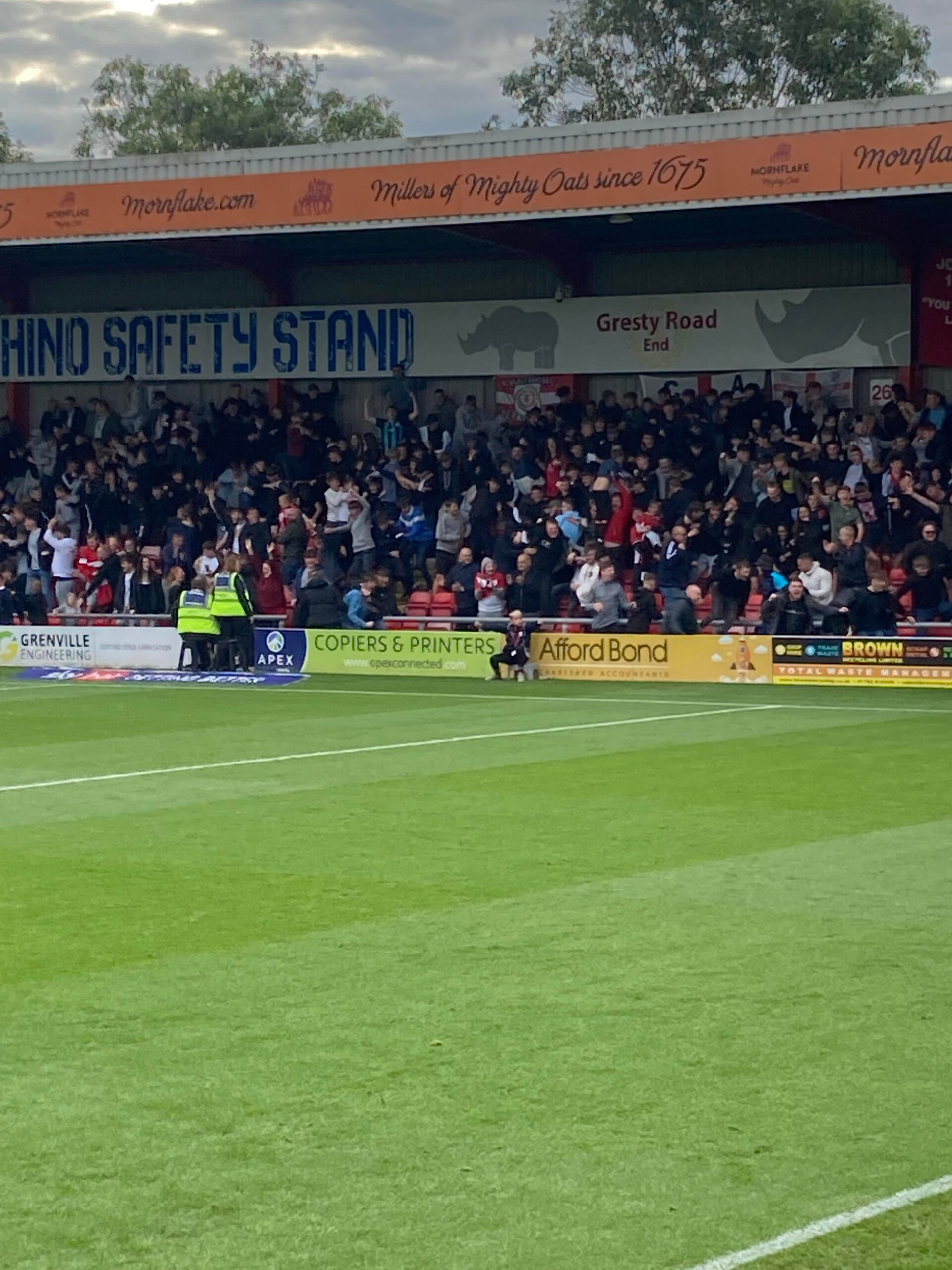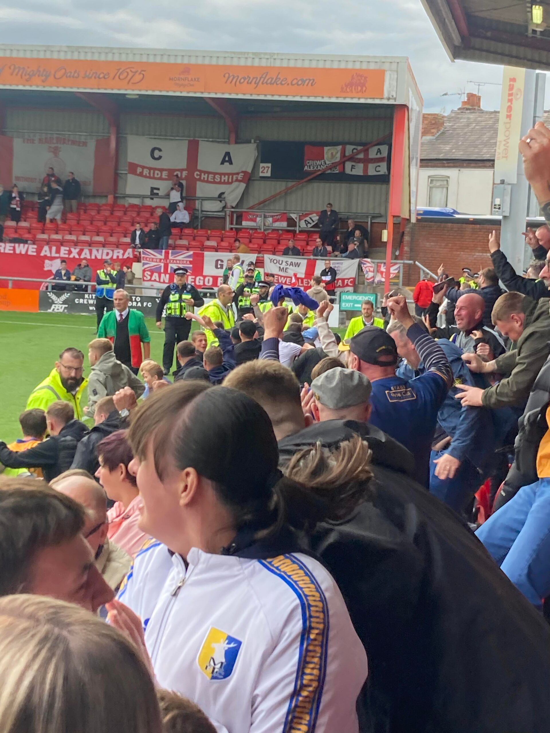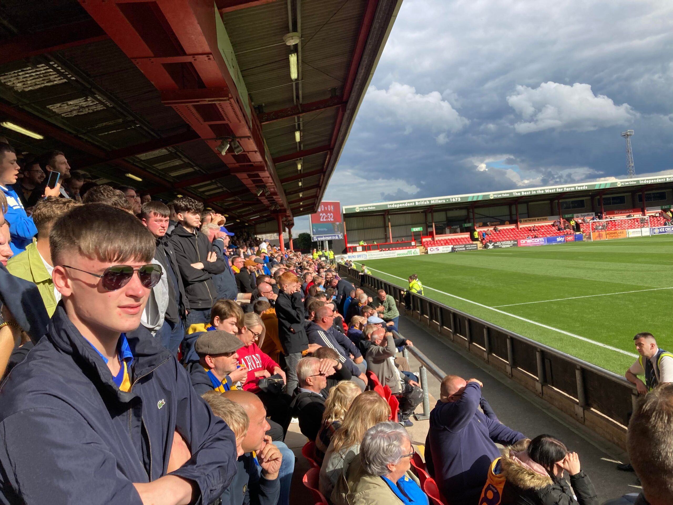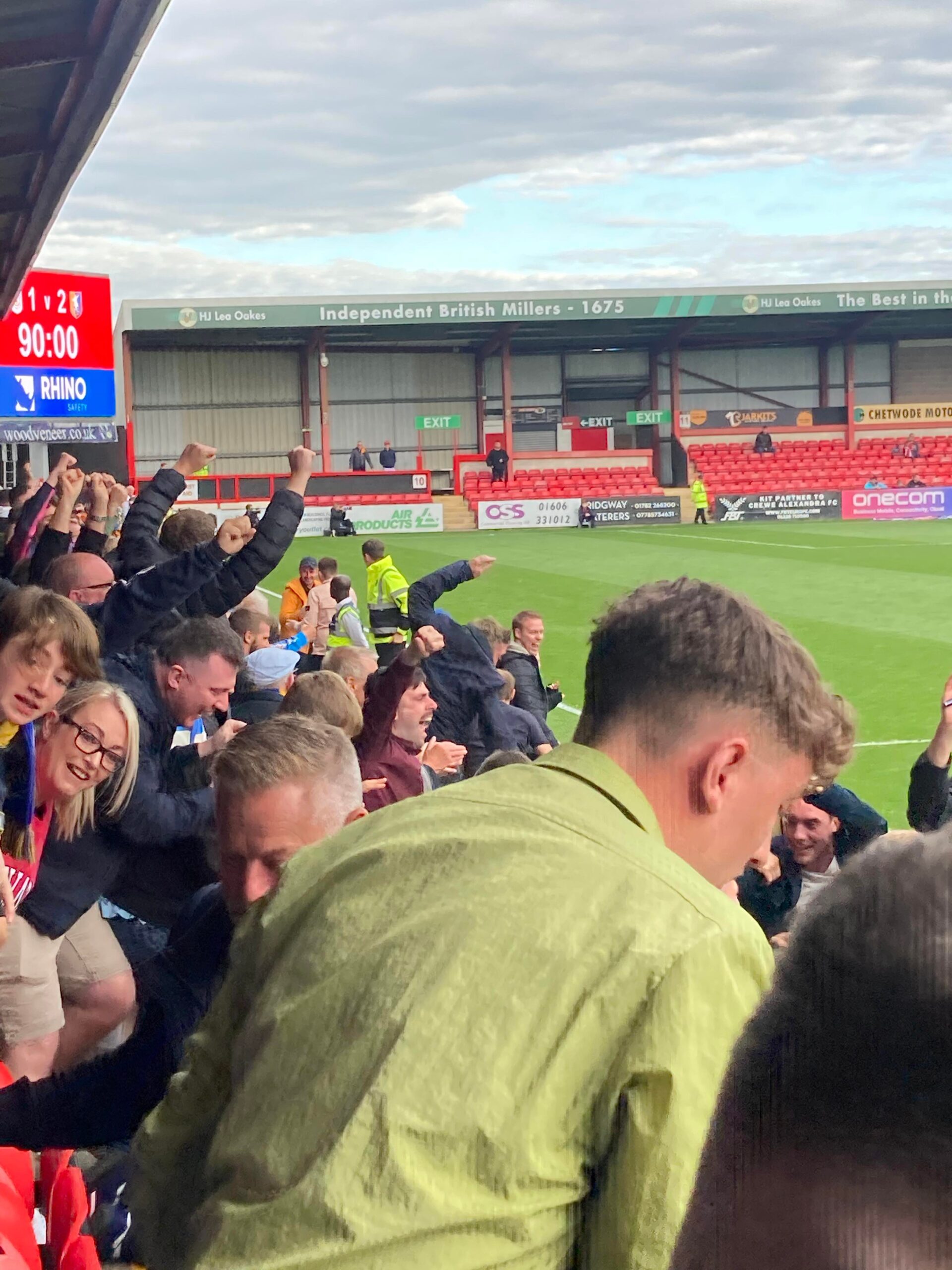 “Since I was young! I followed them! CAFC! The team for me!” Crewe fans in good spirits now. “Yellow & Blue army!” Mansfield fans aren’t finished yet though!