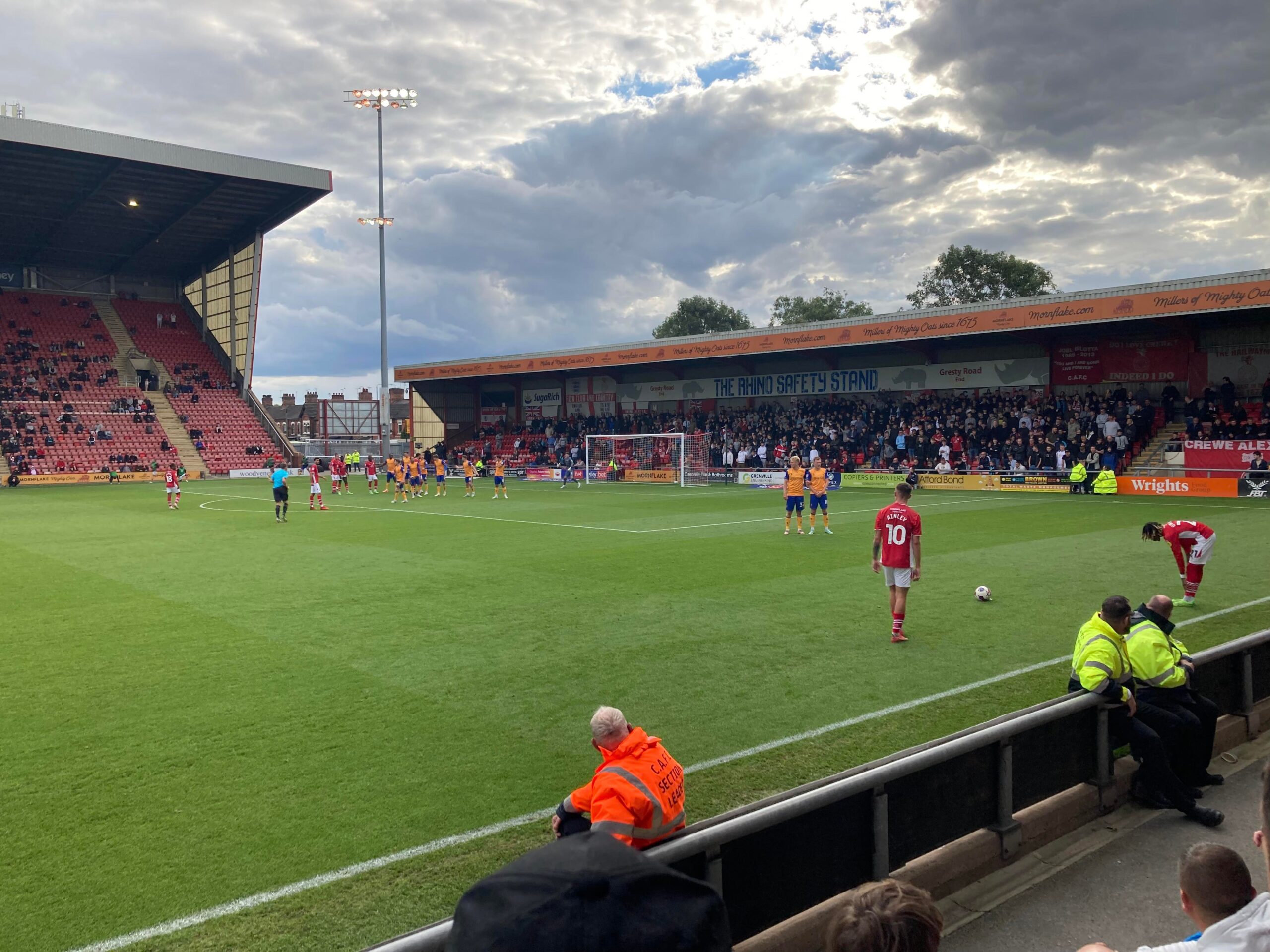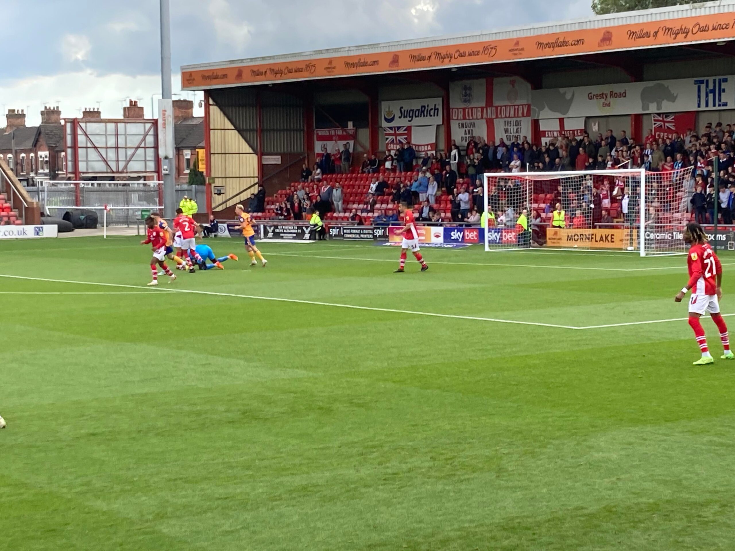 The Mornflake Stadium, Gresty Road, home of Crewe Alexandra based in Cheshire and play their trade in League 2. Nicknamed the “Railwaymen…” Do they like trains? They do play pretty close to the train station as well, that could be why I suppose.
