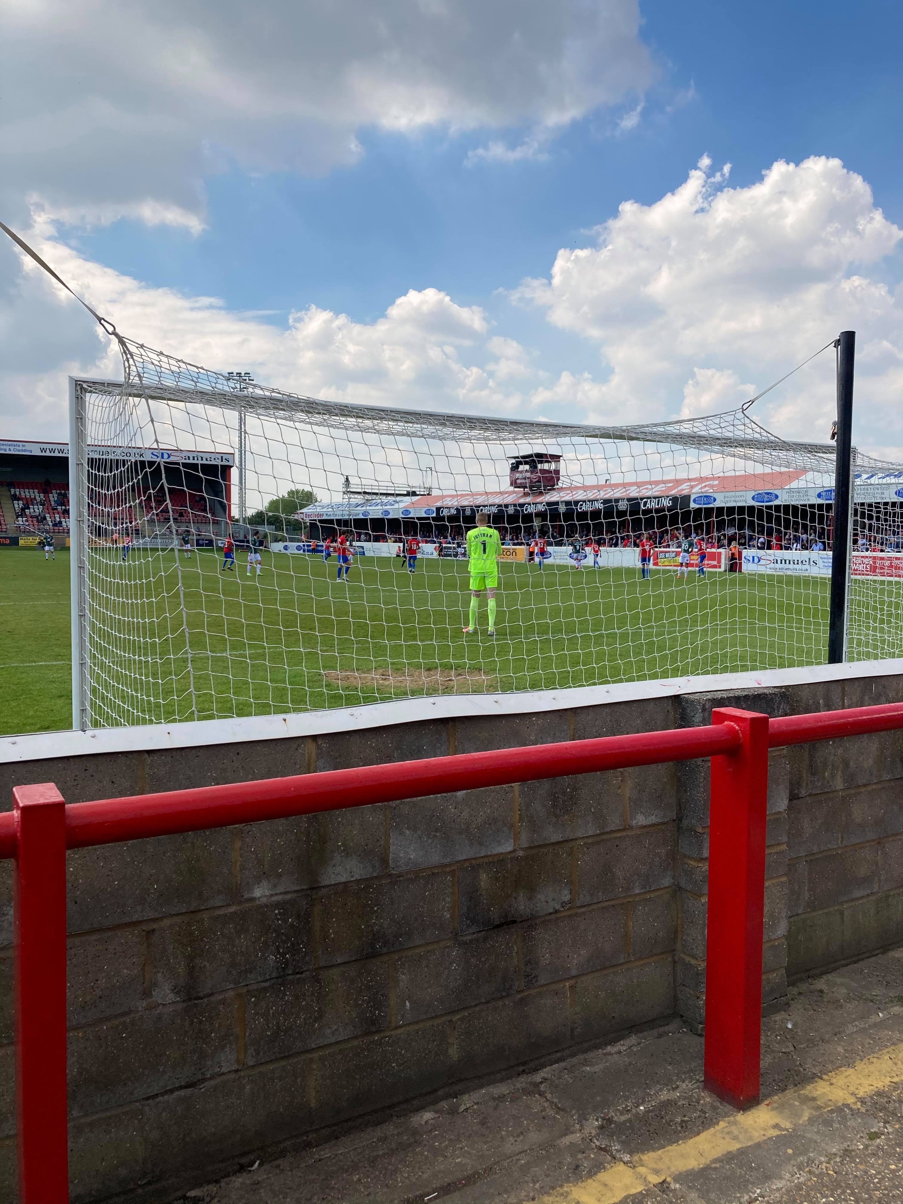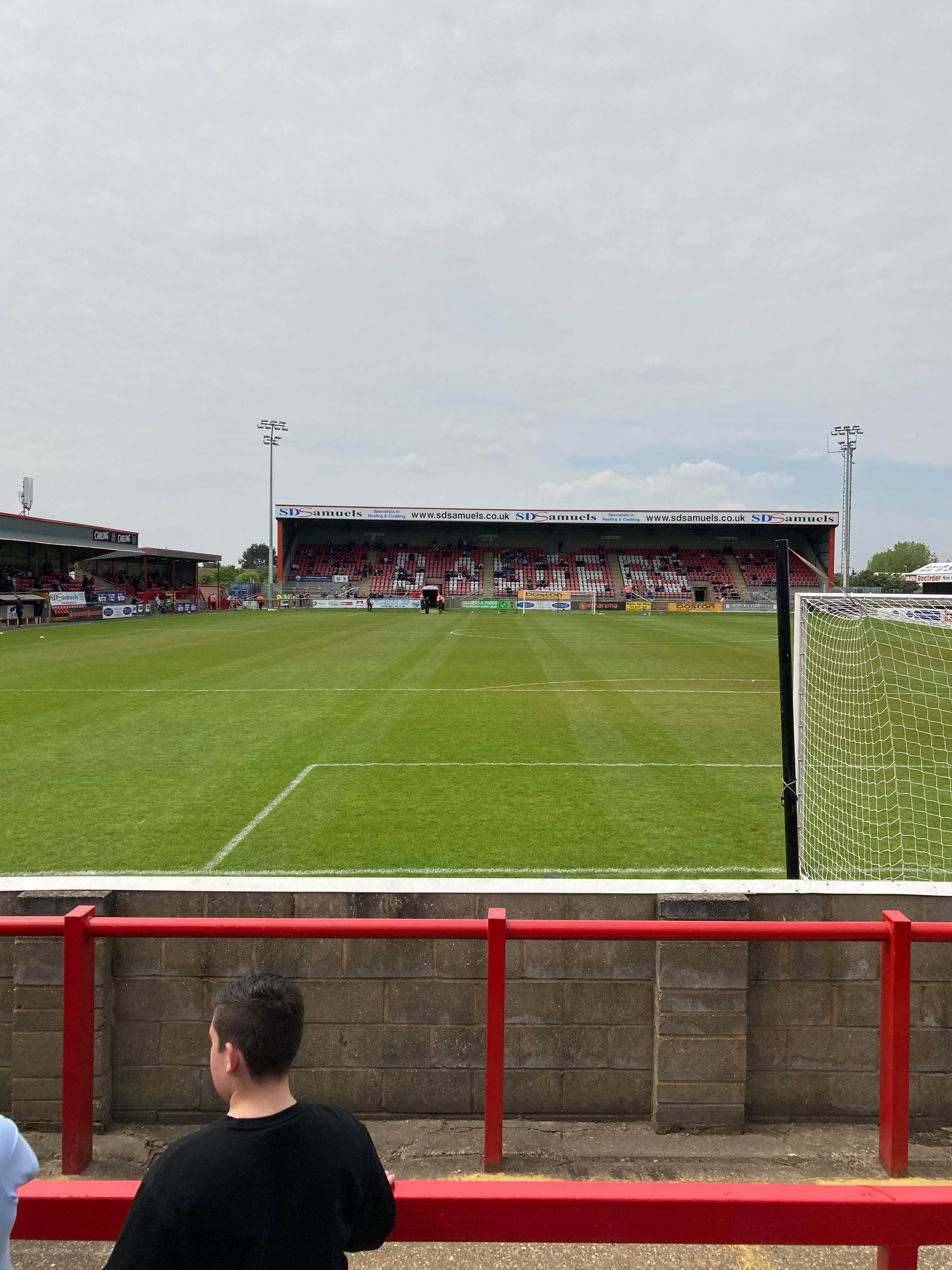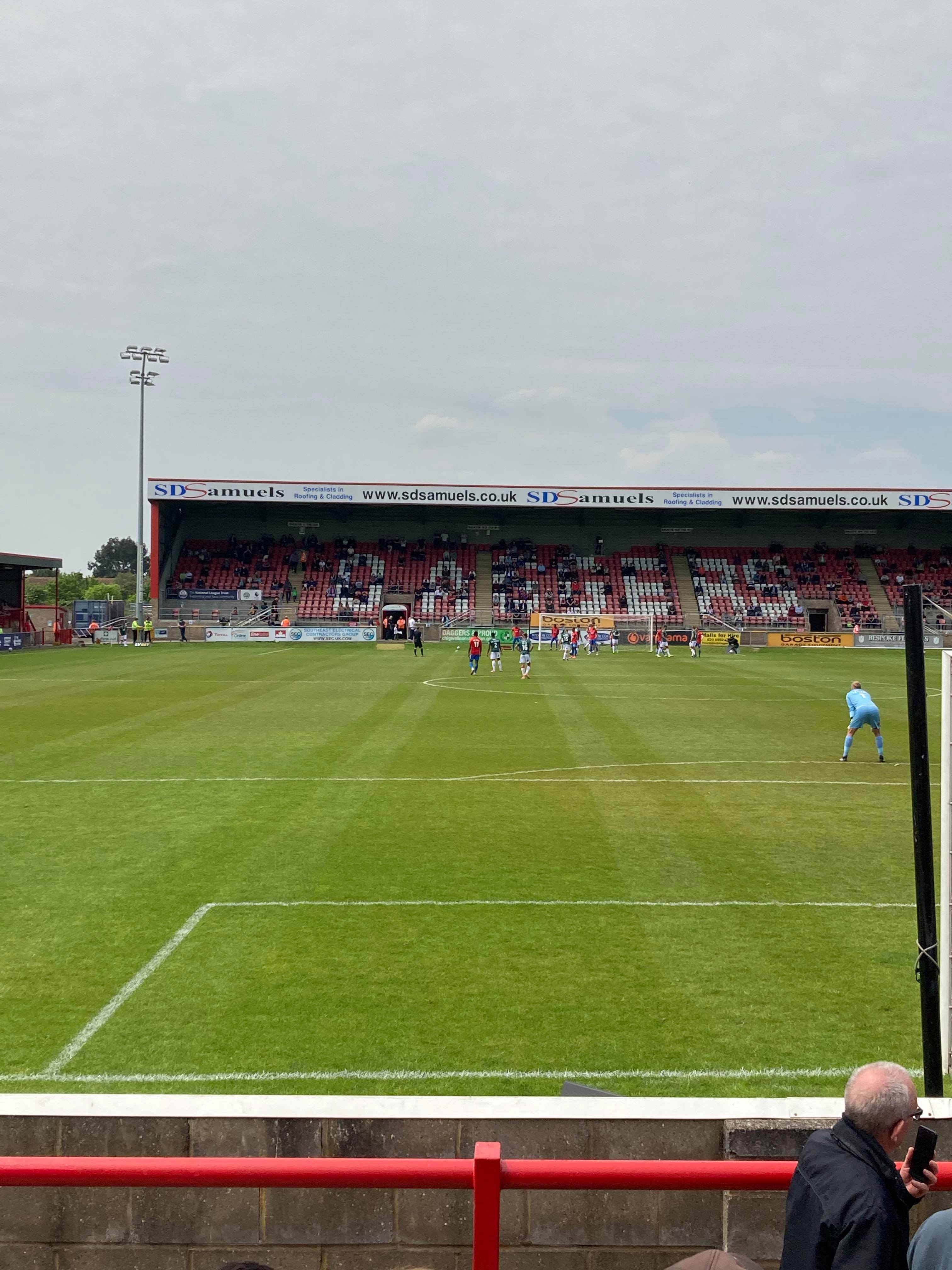 - The Ground: 8.5/10 – A fantastic ground for this level!!! Definitely a Football League ground!! Great seated stands with standing terraces on either side!!